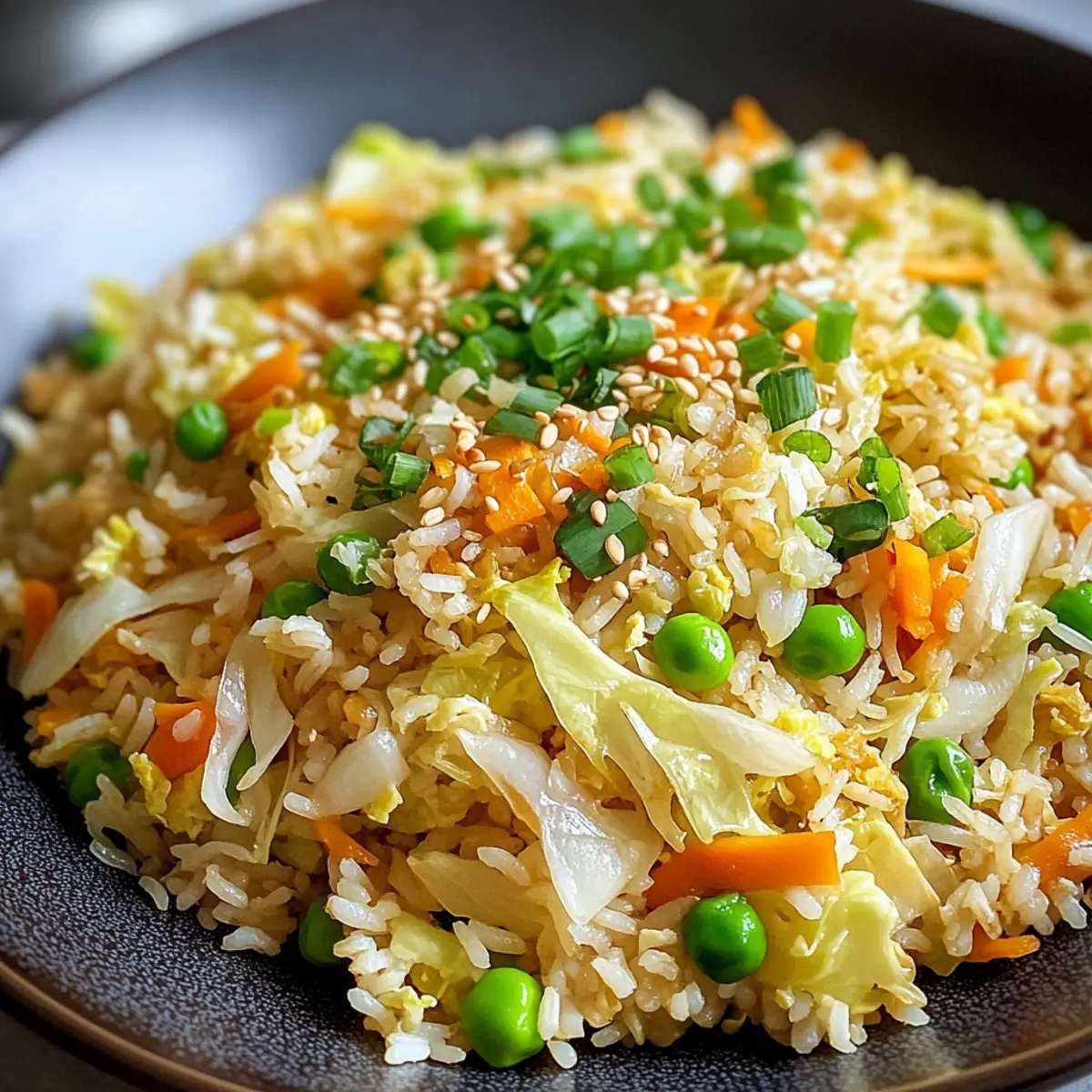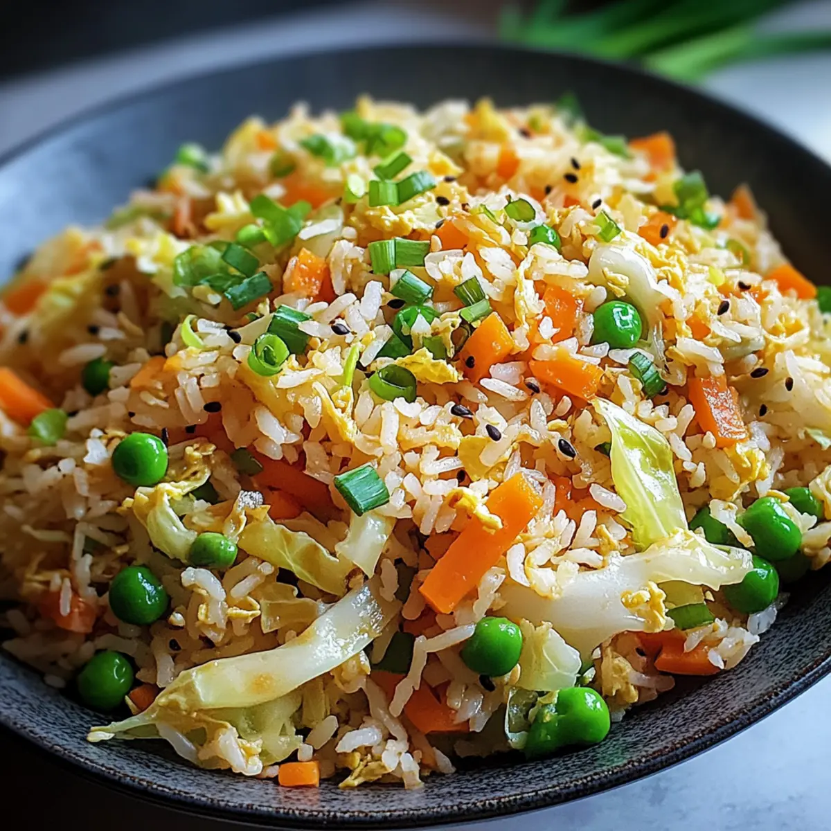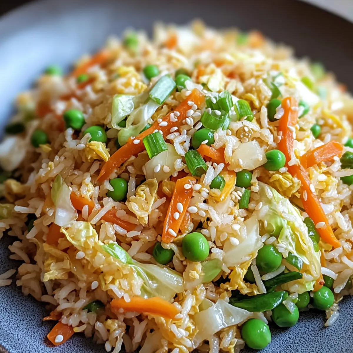 Als ich letzte Woche nach einer schnellen und gesunden Lösung für das Abendessen suchte, fiel mir eine bunte Mischung aus frischem Gemüse und duftendem Reis ein: Kohl gebratener Reis! Diese köstliche, vegetarische Pfanne kombiniert zarte Reisstränge mit knusprigen Kohlstreifen, süßen Erbsen und lebhaften Karotten – alles in nur 30 Minuten zubereitet. Perfekt für hektische Wochentage oder entspannte Wochenenden, wird dieses Gericht mit ein paar einfachen Zutaten zum ultimativen Komfortfood. Das Beste daran? Du kannst es nach Lust und Laune anpassen, indem du Gemüse oder Proteine hinzufügst, die du zur Hand hast. Bist du bereit, in die faszinierende Welt des Kohl gebratenen Reises einzutauchen? Warum ist Kohl gebratener Reis so besonders? Vielseitigkeit: Kohl gebratener Reis ist eine leere Leinwand für deine Kreativität in der Küche. Individualisierbar: Du kannst verschiedene Gemüsearten oder Proteine hinzufügen, um es deinem Geschmack anzupassen. Schnell zubereitet: Mit nur 30 Minuten Kochzeit ist dieses Rezept perfekt für geschäftige Abende. Gesund und nahrhaft: Die Kombination aus frischem Gemüse und Reis sorgt für eine ausgewogene Mahlzeit, die nicht nur lecker, sondern auch sättigend ist. Köstlicher Geschmack: Die Aromen von Sojasauce und geröstetem Sesamöl verleihen diesem Gericht einen unverwechselbaren und herzhaften Geschmack. Probiere auch die köstlichen Knoblauch Huehnchen Wraps als Beilage, um noch mehr Abwechslung auf den Tisch zu bringen! Kohl gebratener Reis Zutaten • Um deine Neugier zu wecken, hier sind die notwendigen Zutaten, um köstlichen kohl gebratenen Reis zuzubereiten! Für die Basis Reis – Ideal sind gekochte Reisreste, damit der Reis nicht matschig wird. Gemüseöl – Ein neutrales Hochtemperaturöl, um die Zutaten schonend zu braten. Für das Gemüse Zwiebel – Sorgt für eine milde Süße und wird bis zur Transluzenz angebraten. Knoblauch – Verleiht jedem Bissen eine würzige Note und sollte fein gehackt werden. Kohl – Liefert den knackigen Biss; dünn geschnitten sorgt er für ein angenehmes Kaugefühl. Karotten – Bringen lebendige Farben und eine süße Note, ideal gerieben oder in Streifen. Erbsen – Süße Erbsen balancieren die herzhaften Aromen des Gerichts. Für die Proteine Eier – Fügen eine cremige Textur bei und sind eine ausgezeichnete Proteinquelle. Für den Geschmack Sojasauce – Gibt dem Reis einen herzhaften Umami-Geschmack und eine salzige Note. Austernsauce – Optional für eine zusätzliche Geschmackstiefe; kann weggelassen oder ersetzt werden. Sesamöl – Am Ende zugegeben, sorgt es für ein nussiges Aroma. Für das Topping Frühlingszwiebeln – Frisch gehackt als Garnitur für einen milden scharfen Geschmack. Sesamkörner – Eine optionale dekorative Garnitur für zusätzlichen Crunch und Nussigkeit. Mit diesen Zutaten wirst du in der Lage sein, einen köstlichen kohl gebratenen Reis zuzubereiten, der nicht nur schnell und einfach ist, sondern auch voller gesunder Möglichkeiten! Schritt-für-Schritt-Anleitung für Kohl gebratenen Reis Step 1: Zutaten vorbereiten Bereite alle Zutaten vor, indem du den Reis kochst, falls du keinen übrig hast. Während der Reis kocht, schneide das Gemüse: hacke die Zwiebel, den Knoblauch und schneide den Kohl sowie die Karotten in feine Streifen. Schlage die Eier in einer Schüssel auf und stelle sicher, dass alles griffbereit ist, um den Kochprozess zu erleichtern. Step 2: Öl erhitzen Gib etwas Gemüseöl in eine große, antihaftbeschichtete Pfanne oder einen Wok und erhitze es bei mittlerer bis hoher Temperatur, bis das Öl schimmert. Dies dauert etwa 2 Minuten. Achte darauf, dass das Öl heiß ist, damit das Gemüse gleichmäßig anbraten kann und nicht anbrennt. Step 3: Zwiebel und Knoblauch anbraten Füge die gehackte Zwiebel und den Knoblauch in die heiße Pfanne hinzu. Brate sie unter ständigem Rühren für etwa 2 Minuten an, bis die Zwiebel durchscheinend und aromatisch wird. Diese Basis gibt dem Kohl gebratenen Reis einen köstlichen Geschmack, der die anderen Zutaten ergänzt. Step 4: Gemüse hinzufügen Gib den geschnittenen Kohl, die geriebenen Karotten und die Erbsen in die Pfanne. Brate das Gemüse für etwa 4–5 Minuten unter Rühren an, bis es weich, aber noch knackig ist. Achte darauf, dass der Kohl seine frische Farbe behält und die Aromen gut entfaltet werden. Step 5: Eier anbraten Schiebe das Gemüse an den Rand der Pfanne, um Platz für die Eier zu schaffen. Gib die aufgeschlagenen Eier in die freie Fläche und rühre sie um, bis sie leicht goldbraun sind, was etwa 1–2 Minuten dauert. Die Eier verleihen dem Kohl gebratenen Reis eine cremige Textur und zusätzlichen Geschmack. Step 6: Reis einfüllen Füge nun den gekochten Reis hinzu und zerbrich eventuell vorhandene Klumpen mit einem Spatel. Mische den Reis gut mit dem Gemüse und den Eiern, sodass er die Aromen aufnimmt. Koche das Ganze für etwa 2 Minuten, damit der Reis richtig durchwärmt wird. Step 7: Würzen Gieße die Sojasauce und optional die Austernsauce über die Mischung. Rühre alles gründlich um und koche für weitere 2–3 Minuten, bis die Soße gut verteilt ist und der Reis leicht bräunlich wird. Dadurch wird der Kohl gebratene Reis schmackhaft und voller Tiefe. Step 8: Sesamöl hinzufügen Träufle das Sesamöl am Rand der Pfanne und rühre dann alles gut durch, um das nussige Aroma gleichmäßig zu verteilen. Das Sesamöl rundet die Aromen ab und sorgt für einen unwiderstehlichen Geschmack. Dies findest du besonders ansprechend. Step 9: Abschmecken und Servieren Schmecke den Kohl gebratenen Reis ab und passe die Gewürze nach Belieben mit Salz und Pfeffer an. Serviere das Gericht heiß und garniere es mit frisch gehackten Frühlingszwiebeln und optionalen Sesamkörnern für zusätzlichen Crunch. Genieße dein schnelles und köstliches Abendessen! Lagerungstipps für Kohl gebratenen Reis Raumtemperatur: Lass den gekochten Kohl gebratenen Reis vor dem Lagern auf Zim