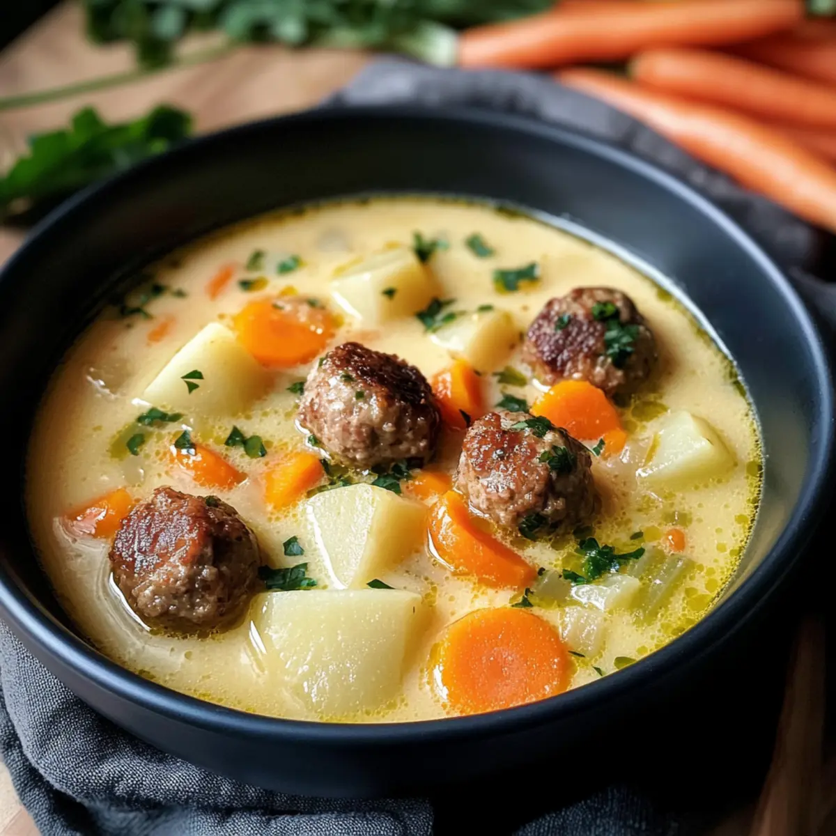 Als ich neulich in meiner Küche stand, um etwas Wärmendes zu zaubern, fiel mir ein Gemüse ins Auge, das oft übersehen wird: der Kohlrabi. Dieser vielseitige und nährstoffreiche Freund eignet sich perfekt für meine Kohlrabi Suppentopf mit Hackbällchen. Mit wenig Aufwand verwandelt sich er in eine wohltuende Suppe, die sowohl Einsteiger als auch erfahrene Köche begeistern wird. Die zarten Hackbällchen in einer herzhaften, low-carb Brühe sind nicht nur ein Genuss, sondern auch eine großartige Möglichkeit, um gesunde Zutaten in einer unkomplizierten Zubereitung zu vereinen. Diese Rezept bringt Komfort auf den Tisch und ist kinderleicht anzupassen – für Vegetarier kannst du ganz einfach die Fleischbällchen weglassen und eine aromatische Gemüsebrühe verwenden. Neugierig, wie du diesen Suppentopf zubereiten kannst? Lass uns loslegen! Warum wirst du diese Suppe lieben? Herzhaft und wärmend: Diese Kohlrabi Suppentopf mit Hackbällchen ist der Inbegriff von Gemütlichkeit und bringt ein Stück Heimat auf deinen Tisch. Einfache Zubereitung: Mit unkomplizierten Zutaten und einem klaren Rezept gelingt dir diese leckere Suppe im Handumdrehen. Vielseitig anpassbar: Ob mit Fleischbällchen oder vegetarisch – die Anpassungsmöglichkeiten sind praktisch und köstlich! Gesund und nahrhaft: Perfekt für Low-Carb-Fans, bietet die Suppe eine Fülle an Nährstoffen durch frisches Gemüse. Ideal fürs Meal Prep: Bereite sie im Voraus vor und genieße mehrere Tage lang eine wohltuende Mahlzeit; sie schmeckt am nächsten Tag sogar noch besser! Zutaten für den Kohlrabi Suppentopf mit Hackbällchen • Diese köstlichen Zutaten werden deine Suppe zu einem Hit machen! Für die Suppe Porree (Lauch) – Gibt der Suppe ein aromatisches Aroma; gründlich waschen, um Schmutz zu entfernen. Zwiebel (Zwiebel) – Sorgt für eine süße Grundnote; fein würfeln für schnellere Garzeit. Kohlrabi – Das Herzstück der Suppe; bietet eine knackige, low-carb Textur. Schälen und in Würfel schneiden. Möhre (Karotte) – Bringt Süße und Farbe; in kleinere Würfel schneiden für gleichmäßiges Garen. Kartoffeln – Fügen Herzhaftigkeit hinzu, können aber durch andere low-carb Gemüse ersetzt werden; festen Typ verwenden, um die Struktur zu erhalten. Olivenöl – Essentiell für das Anbraten der Gemüse und zur Geschmacksverstärkung. Rinderbrühe – Flüssigkeitsbasis für die Suppe; kann durch Hühner- oder Gemüsebrühe ersetzt werden. Sahne – Für eine cremige Konsistenz; kann durch eine pflanzliche Alternative ersetzt werden. Salz – Für die Würze; sparsam verwenden wegen des Natriumgehalts der Brühe. Pfeffer – Fügt eine milde Schärfe hinzu; nach Geschmack anpassen. Für die Hackbällchen Hackfleisch (Gemischtes Fleisch) – Bildet die Hackbällchen und sorgt für Eiweiß; vegetarische Alternativen sind möglich. Knoblauchpulver – Verstärkt den Geschmack der Hackbällchen; frischer Knoblauch kann auch verwendet werden. Sonnenblumenöl – Zum Braten der Hackbällchen; kann durch Olivenöl ersetzt werden. Zum Garnieren Frische Petersilie – Bringt Frische und Farbe bei der Servierung. Mit diesen Zutaten steht dem Genuss deiner Kohlrabi Suppentopf mit Hackbällchen nichts mehr im Wege! Schritt-für-Schritt-Anleitung für den Kohlrabi Suppentopf mit Hackbällchen Step 1: Gemüse vorbereiten Schäle den Kohlrabi, die Karotten, die Zwiebel und die Kartoffeln und schneide sie in gleichmäßige Würfel. Reinige den Lauch gründlich und schneide ihn in feine Ringe. Diese vorbereiteten Zutaten sind die Basis für deinen schmackhaften Kohlrabi Suppentopf mit Hackbällchen. Step 2: Gemüse anbraten Erhitze 2 Esslöffel Olivenöl in einem großen Topf bei mittlerer Hitze. Füge die gewürfelte Zwiebel hinzu und brate sie etwa 3-4 Minuten an, bis sie glasig wird. Anschließend gib den geschnittenen Lauch und die Karotten dazu und rühre alles für eine weitere Minute gut durch. Step 3: Gemüse kochen Füge nun die Kartoffel- und Kohlrabiwürfel in den Topf und gieße die Rinderbrühe darüber. Schneide mit Salz und Pfeffer ab und bringe alles zum Kochen. Reduziere die Hitze und lasse die Mischung 15 Minuten lang leicht köcheln, bis das Gemüse weich ist. Step 4: Hackbällchen vorbereiten In einer Schüssel vermischst du etwa 500g Hackfleisch mit 1 Teelöffel Salz, 1 Teelöffel Pfeffer und 1 Teelöffel Knoblauchpulver. Forme die Mischung zu kleinen Bällchen, die gleichmäßig groß sind, damit sie gleichmäßig garen. Step 5: Hackbällchen braten Erhitze in einer separaten Pfanne etwa 2 Esslöffel Sonnenblumenöl bei mittlerer Hitze. Lege die Hackbällchen hinein und brate sie rundherum 7-8 Minuten lang, bis sie schön goldbraun sind und eine knusprige Oberfläche haben. Step 6: Kombinieren und beenden Gib die gebratenen Hackbällchen in den Topf mit dem Gemüse. Füge 100ml Sahne hinzu und lasse alles zusammen für weitere 10 Minuten köcheln. Rühre gut um, sodass sich die Aromen der Zutaten vereinen und das Gericht eine cremige Konsistenz erhält. Step 7: Servieren Scoop die borscht in Schalen und garniere sie mit frischer, gehackter Petersilie. Dein Kohlrabi Suppentopf mit Hackbällchen ist nun bereit, serviert zu werden. Versammle die Familie um den Tisch und genieße dieses herzliche Gericht! Aufbewahrung des Kohlrabi Suppentopf mit Hackbällchen Kühlschrank: Die Suppe kann bis zu 3 Tage im Kühlschrank aufbewahrt werden. Stelle sicher, dass sie in einem luftdichten Behälter ist, um Frische zu bewahren. Gefrierschrank: Du kannst die Suppe bis zu 3 Monate einfrieren. Fülle sie in gefrierfeste Behälter und lasse etwas Platz für die Ausdehnung. Auftauen: Zum Auftauen die Suppe über Nacht im Kühlschrank lagern oder direkt in einem Topf bei niedriger Hitze sanft erhitzen, bis sie vollständig durchwärmt ist. Wiedererhitzen: Beim Wiedererhitzen etwas Brühe oder Wasser hinzufügen, um die Konsistenz der Kohlrabi Suppentopf mit Hackbällchen zu optimieren, da sie beim Abkühlen dicker wer