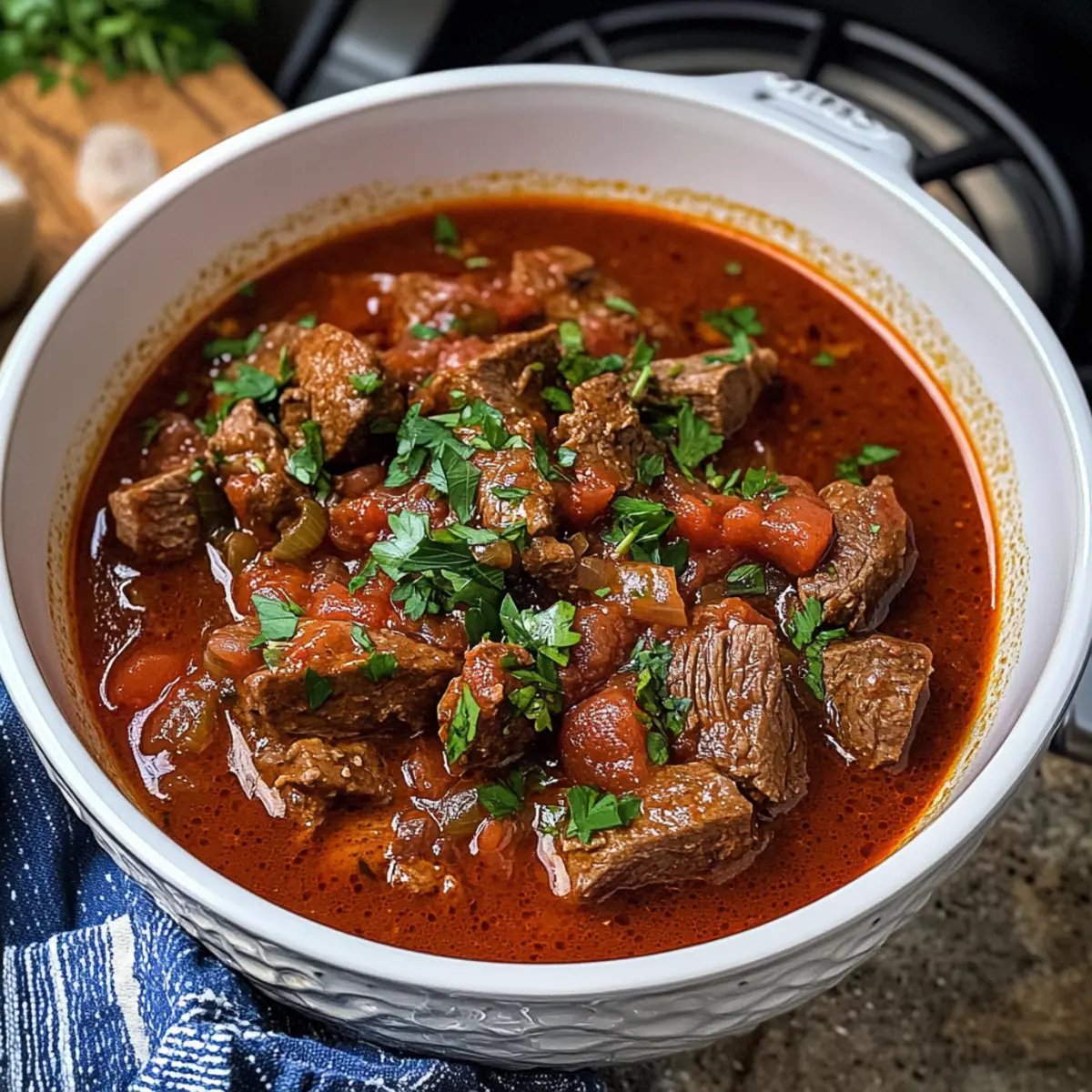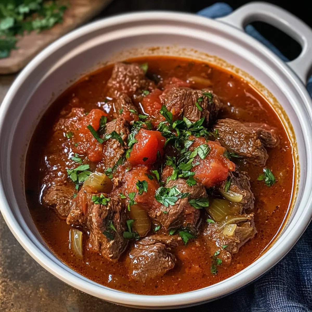 Als ich vor kurzem in einer griechischen Taverne saß, wurde ich von dem intensiven Duft eines Kochs angezogen, der mit Leidenschaft sein Gericht zubereitete. Dieses Gericht war Kokkinisto, ein herzhafter griechischer Rindereintopf, der mich sofort in eine Welt voller Aromen entführte. Die Kombination aus zartem Fleisch, fruchtigen Tomaten und aromatischem Rotwein macht es zu einem perfekten Komfortessen für kalte Winterabende. Mit diesem Rezept für Kokkinisto erlebst du die Flexibilität, es einfach im Instant Pot, Slow Cooker oder auf dem Herd zuzubereiten – ganz gleich, wie viel Zeit du hast. Egal, ob du ein schnelles Abendessen für die Familie suchst oder dich einfach nur nach etwas Warmem sehnst, dieses Gericht bietet nicht nur köstlichen Geschmack, sondern ist auch ein Seelenschmeichler. Bist du bereit, dein Zuhause mit dem Duft des Mittelmeers zu erfüllen? Warum ist Kokkinisto so besonders? Herzhaft und sättigend: Kokkinisto ist die perfekte Wahl für kalte Wintertage und bietet die wohltuende Wärme eines klassischen Comfort Foods. Vielseitig in der Zubereitung: Ob im Instant Pot, Slow Cooker oder auf dem Herd – diese Variation macht es einfach, das Rezept an deinen Zeitplan anzupassen. Aromatische Gewürze: Die Kombination aus Zimt, Nelken und Rotwein verleiht diesem Eintopf eine unverwechselbare Tiefe. Einfache Zubereitung: Selbst Kochanfänger können mit diesem Rezept gleich in die Küche starten und ein ausgezeichnetes Gericht zaubern. Für die ganze Familie: Kokkinisto ist das ideale Familienessen, das alle begeistern wird. Probiere auch unser Koreanischer Kartoffelsalat Rezept, das eine frische Beilage zu diesem herzhaften Hauptgericht bietet! Kokkinisto Zutaten • Hier sind die Zutaten für dein köstliches Kokkinisto! Für das Fleisch Olivenöl – sorgt für eine reichhaltige Geschmackstiefe und hilft beim Anbraten des Fleisches. Substitution: Du kannst auch Kochspray für eine leichtere Option verwenden. Rindfleisch (1,3 kg) – das Hauptprotein; am besten eignet sich eine preiswerte Schnittart wie Schmorbraten oder Gulasch. Hinweis: Vermeide mageres Fleisch für optimale Zartheit. Für die Aromatik Schalotten oder Zwiebel (5 Schalotten oder 1 große) – bilden die aromatische Basis. Substitution: Jede Zwiebelart kann verwendet werden. Knoblauch (3 Zehen, gehackt) – verleiht dem Gericht eine tiefere Geschmacksnote. Lorbeerblatt (1) – bringt ein wunderbares Aroma. Zimtstange (1) – sorgt für eine angenehme Wärme und eine feine Süße. Für die Soße Cayennepfeffer (1 TL) – fügt eine subtile Schärfe hinzu. Granulierter Zucker (1 EL) – balanciert die Säure der Tomaten aus. Substitution: Süßstoff kann ebenfalls verwendet werden. Tomaten aus der Dose (400 g, zerdrückt oder gehackt) – bildet die Grundlage der Soße. Substitution: Frische Tomaten können ebenfalls eingesetzt werden. Tomatenmark (4 EL) – intensiviert den Tomatengeschmack. Rinderfond (125 ml) – sorgt für Tiefe und Flüssigkeit. Hinweis: Fond oder Brühe können auch durch zusätzlichen Wein ersetzt werden. Rotwein (125 ml) – vertieft das Geschmacksprofil. Tipp: Verwende einen mitteltrockenen Wein, teure Optionen sind nicht nötig. Cayennepfeffer (1/4 TL) und Schwarzer Pfeffer (1/4 TL) – sorgen für Komplexität. Zum Garnieren Petersilie (2 EL, gehackt) – bringt Frische und Farbe ins Gericht. Schritt-für-Schritt-Anleitung für Kokkinisto Step 1: Rindfleisch anbraten Erhitze in einem großen Topf oder einem Instant Pot das Olivenöl bei mittlerer Hitze. Füge die Rindfleischwürfel in Chargen hinzu und brate sie an, bis sie von allen Seiten goldbraun sind – etwa 5-7 Minuten pro Charge. Achte darauf, dass der Topf nicht überfüllt ist, um ein gleichmäßiges Anbraten zu gewährleisten. Step 2: Aromaten anbraten Reduziere die Hitze und füge die gehackten Schalotten oder die Zwiebel sowie den Zucker hinzu. Sauté sie unter Rühren, bis sie weich und durchscheinend sind, das dauert etwa 3-5 Minuten. Anschließend gib den Knoblauch, das Lorbeerblatt, die Zimtstange, den Cayennepfeffer, das Salz und den schwarzen Pfeffer hinzu und brate alles für weitere 1-2 Minuten, bis die Gewürze duften. Step 3: Zutaten kombinieren Rühre die zerdrückten Tomaten, das Tomatenmark, den Rinderfond und den Rotwein in den Topf. Bringe die Mischung zum Kochen, während du die angebratenen Rindfleischwürfel zurück in den Topf gibst. Vermische alles gut, um eine herzliche Basis für dein Kokkinisto zu schaffen. Step 4: Kochmethoden anwenden Für das Kochen im Instant Pot, decke ihn ab, stelle ihn auf hohen Druck und koche das Kokkinisto 45 Minuten lang. Lass den Druck nach 10 Minuten auf natürliche Weise ab. Für die Herdmethode bringe die Mischung zum Kochen, reduziere die Hitze und lasse sie 1,5 bis 2 Stunden sanft köcheln, bis das Rindfleisch zart ist. Step 5: Langsame Kochmethode Wenn du einen Slow Cooker verwendest, übertrage die gebrühten Zutaten in den Slow Cooker. Koche das Kokkinisto auf hoher Stufe für 5 Stunden oder auf niedriger Stufe für 7-8 Stunden, bis das Fleisch zart genug ist, um mit einer Gabel zu zerfallen. Dies sorgt für einen intensiven Geschmack und macht das Rindfleisch besonders saftig. Step 6: Finale Zubereitung Wenn das Kokkinisto fertig ist, rühre die gehackte Petersilie hinein und probiere es, um die Gewürze anzupassen. Es sollte eine harmonische Balance von Aromen und eine leicht süßliche Note haben, die für ein perfektes Finish sorgt. Serviere es heiß und genieße die wohltuende Wärme dieses traditionellen griechischen Gerichts. Kokkinisto zum Voraus zubereiten Kokkinisto ist perfekt zur Vorbereitung für stressige Wochentage! Du kannst das Rindfleisch bis zu 24 Stunden im Voraus marinieren, indem du die gewürzten Fleischstücke in einer Schüssel mit den Aromaten (Zwiebel, Knoblauch, Gewürze) mischst und abdeckst. Auch die Soßenzutaten (Tomaten, Tomatenmark, Rotwein) kannst du im Voraus kombinieren und im Kühlschrank lagern. Die fertige Mi