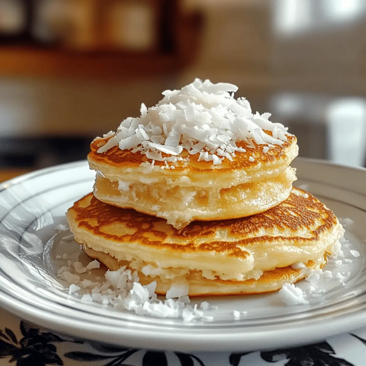 Fluffige Kokoscreme-Pfannkuchen für tropischen Genuss