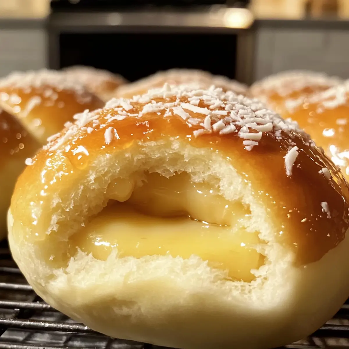 Die warmen, tropischen Aromen frisch gebackener Kokosnusspudding-Brötchen haben mich sofort verzaubert, als ich das erste Mal den Ofen öffnete. Dieses Rezept für Kokosnusspudding-Brötchen ist nicht nur ein Fest für die Sinne, sondern auch eine Einladung, Ihre Lieben mit einer köstlichen und anpassbaren Leckerei zu verwöhnen. Die weichen, fluffigen Brötchen sind ideal für eine entspannte Kaffeepause oder als süßer Abschluss eines Festmahls – und das Beste daran? Sie lassen sich im Voraus zubereiten und sind perfekt für jede Diätvariante. Egal ob vegan, glutenfrei oder klassisch mit zartem Kokosnuss-Custard gefüllt – diese Brötchen sind ein Hit für die ganze Familie! Sind Sie bereit, Ihre Backkünste auf das nächste Level zu heben? Lassen Sie uns gemeinsam herausfinden, wie einfach es ist, diese köstlichen kleinen Schätze zu kreieren! Warum sind Kokosnusspudding-Brötchen ein Muss? Einzigartiger Geschmack: Der unverwechselbare Kokosgeschmack kombiniert mit der Cremigkeit des Puddings wird Ihre Geschmacksknospen verzaubern. Vielseitige Variationen: Ob mit einer herrlichen Schokoladenfüllung oder fruchtigem Pudding – die Anpassungsmöglichkeiten sind grenzenlos! Einfache Zubereitung: Selbst als Backanfänger können Sie diese luftigen Brötchen mühelos meistern. Die Technik des Tang Zhong sorgt für perfekte Ergebnisse. Familienfreundlich: Groß und Klein werden von diesen köstlichen Brötchen begeistert sein; sie sind der ideale Snack für jede Gelegenheit. Vorbereitung im Voraus: Dank ihrer Haltbarkeit sind sie perfekt, um sie im Voraus zuzubereiten – ideal für stressfreie Unterhaltungen! Für weitere köstliche Rezepte, schauen Sie sich auch unsere Herzhafte Minestrone Suppe oder Brownies Rezept Lecker an! Kokosnusspudding-Brötchen Zutaten Hinweis: Diese Zutatenliste enthält alles, was Sie für die Zubereitung Ihrer köstlichen Kokosnusspudding-Brötchen benötigen! Für den Pudding Vollfette Kokosmilch – Sorgt für eine cremige Textur im Pudding; kann durch normale Milch ersetzt werden für eine leichtere Variante. Vanilleschote – Verleiht dem Pudding ein aromatisches Flair; 1 TL Vanilleextrakt ist eine gute Alternative, wenn Sie keine Schote haben. Eiergelbe – Essentiell für die Reichhaltigkeit des Puddings; Ersatz ist nicht empfehlenswert. Zucker – Süßt den Pudding; ersetzen Sie ihn durch Kokoszucker für einen interessanten Geschmack. Maisstärke – Dickt den Pudding ein; keine Substitute nötig für die gewünschte Konsistenz. Ungesalzene Butter – Fügt Cremigkeit hinzu; alternativ kann Margarine verwendet werden. Ungesüßte Kokosflocken – Verstärkt Geschmack und Textur; kann durch geriebene Kokosnuss ersetzt werden. Für den Teig Brotmehl – Gibt den Brötchen Stabilität; Allzweckmehl kann auch verwendet werden. Schnellhefe – Lässt den Teig aufgehen; auch aktive Trockenhefe ist möglich. Salz – Balanciert die Aromen; kein Ersatz notwendig. Honig – Zum Glasieren verwendet; Ahornsirup ist eine hervorragende vegane Alternative. Mit dieser sorgfältigen Auswahl an Zutaten werden Ihre Kokosnusspudding-Brötchen garantiert ein Genuss für die ganze Familie! Schritt-für-Schritt-Anleitung für Kokosnusspudding-Brötchen Schritt 1: Kokosnuss-Pudding zubereiten Erhitzen Sie die vollfette Kokosmilch in einem Topf zusammen mit der aufgeschnittenen Vanilleschote bei mittlerer Hitze, bis sie fast kocht. In einer separaten Schüssel die Eiergelbe, den Zucker, die Maisstärke und das Salz verrühren, bis die Mischung hell wird. Kombinieren Sie die beiden Mischungen und kochen Sie alles unter ständigem Rühren, bis der Pudding dickflüssig ist. Fügen Sie die Butter und die ungesüßten Kokosflocken hinzu, dann lassen Sie die Masse über Nacht im Kühlschrank abkühlen. Schritt 2: Tang Zhong herstellen In einem kleinen Topf das Brotmehl, Wasser und einen Schuss Kokosmilch bei mittlerer bis niedriger Hitze verrühren. Rühren Sie die Mischung kontinuierlich, bis sie dick wird und Blasen wirft, was etwa 3-5 Minuten dauert. Nehmen Sie den Topf vom Herd und lassen Sie den Tang Zhong auf Raumtemperatur abkühlen. Schritt 3: Teig vorbereiten In einer großen Schüssel Brotmehl, Zucker, Hefe und Salz vermengen. Erwärmen Sie die restliche Kokosmilch leicht, bis sie warm ist, und fügen Sie dann den Tang Zhong und ein Ei hinzu. Mixen Sie die Zutaten mit einem Holzlöffel, bis der Teig klebrig wird. Kneten Sie den Teig auf einer bemehlten Fläche etwa 10-15 Minuten lang, bis er elastisch ist und nicht mehr klebt. Lassen Sie den Teig in einer abgedeckten Schüssel 1-2 Stunden ruhen, bis er sich verdoppelt hat. Schritt 4: Brötchen formen Nachdem der Teig aufgegangen ist, teilen Sie ihn in gleich große Portionen und rollen Sie jede Portion zu einer Kugel. Rollen Sie jede Kugel flach aus und geben Sie einen Esslöffel des abgekühlten Kokosnuss-Puddings in die Mitte. Falten Sie den Teig über den Pudding und drücken Sie die Kanten gut zusammen, um die Füllung zu versiegeln. Platzieren Sie die geformten Brötchen mit der Nahtseite nach unten auf ein mit Backpapier ausgelegtes Blech und lassen Sie sie erneut 1-2 Stunden ruhen, bis sie aufgegangen sind. Schritt 5: Backen Heizen Sie den Ofen auf 175°C (163°C Umluft) vor. Sobald die Brötchen aufgegangen sind, bestreichen Sie sie vorsichtig mit einem verquirlten Ei für eine goldene Farbe. Backen Sie die Kokosnusspudding-Brötchen 20-25 Minuten, bis sie goldbraun sind und beim Klopfen hohl klingen. Schritt 6: Fertigstellen Nehmen Sie die frisch gebackenen Brötchen aus dem Ofen und bestreichen Sie sie sofort mit Honig. Bestreuen Sie die warmen Brötchen mit den ungesüßten Kokosflocken für ein zusätzliches Aroma. Lassen Sie die Brötchen einige Minuten auf einem Kuchengitter abkühlen, bevor Sie sie servieren. Kokosnusspudding-Brötchen Variationen Lassen Sie Ihrer Kreativität freien Lauf und passen Sie dieses köstliche Rezept nach Ihrem Geschmack an! Mini Brötchen: Formen Sie kleinere Buns fü