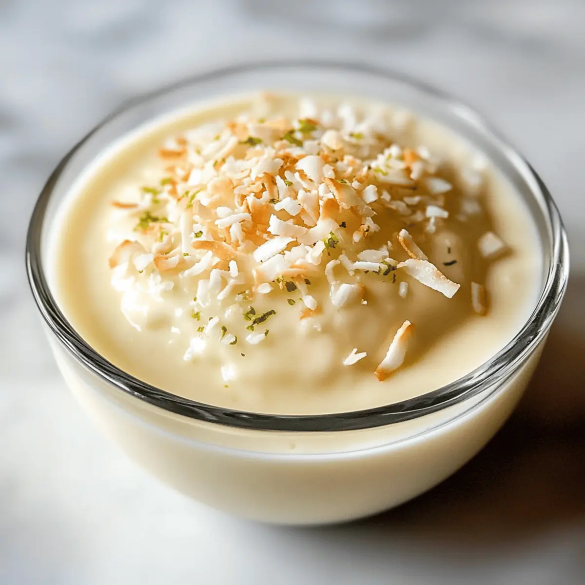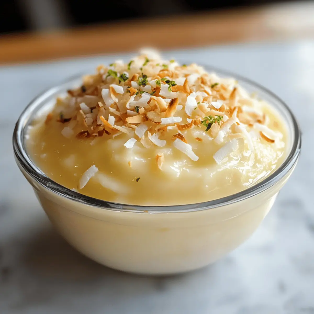 Es gibt Momente, in denen uns der Duft von frischem Kokosnuss einen kurzen Ausflug in tropische Gefilde beschert. Heute lade ich euch ein, mit mir eine köstliche Reise durch mein Rezept für cremigen Kokosnuss-Pudding zu unternehmen. Diese himmlische Nachspeise kombiniert die reichhaltige Note von Kokosmilch mit einer leichten Süße und einem Hauch von Vanille. Ein wahrer Gewinn für eure Sommertreffen oder als krönender Abschluss eines besonderen Essens: Dieser Kokosnuss-Pudding ist nicht nur einfach zuzubereiten, sondern auch ein eleganter Hingucker, der garantiert Eindruck hinterlässt. Seid ihr bereit, diesen tropischen Genuss zu entdecken? Warum ist Kokospudding so unwiderstehlich? Exquisite Kombination: Die Verbindung von Kokosmilch und Zucker ergibt ein cremiges, tropisches Geschmackserlebnis. Einfachheit: Mit nur wenigen Zutaten und ohne komplizierte Techniken ist dieser Pudding leicht nachzumachen. Vielseitig: Ob pur, mit zusätzlichen Früchten oder als Teil eines Desserts, er passt zu vielen Anlässen. Probiert ihn auch mit Cremiges Thailaendisches Rezept für einen kompletten Genuss! Erfrischend: Die leichte Textur ist perfekt für heiße Sommertage und bietet eine gelungene Erfrischung. Begeisterung garantiert: Dieser Pudding wird eure Freunde und Familie sofort begeistern—ideal für eure nächsten Feiern! Kokospudding Zutaten Hinweis: Diese Zutaten sind entscheidend für die Herstellung eines köstlichen Kokospuddings, der eure Sinne verzaubern wird. Für den Pudding Kokosnuss-Extrakt – Fügt einen intensiven Kokosgeschmack hinzu; kann alternativ durch Vanilleextrakt ersetzt werden. Kokosmilch – Bildet die cremige Basis des Puddings; vollfette Kokosmilch aus der Dose sorgt für die besten Ergebnisse. Eigelb – Dient als Verdickungsmittel und bereichert die Textur; für eine vegane Variante kann eine Maisstärke- Mischung verwendet werden. Zucker – Süßt den Pudding; für eine gesündere Option kann Kokoszucker oder ein Zuckersubstitut genutzt werden. Maisstärke – Verdickt die Puddingmasse; alternativ kann Agar-Agar für eine veganfriendly Verdickung verwendet werden. Butter – Steigert die Reichhaltigkeit und verbessert das Mundgefühl; für eine milchfreie Variante einfach durch Kokosnussöl ersetzen. Schritt-für-Schritt-Anleitung für cremigen Kokospudding Schritt 1: Zutaten vermengen In einem mittelgroßen Topf bei mittlerer Hitze die Kokosmilch, den Zucker, die Maisstärke, die Butter, die Eigelb und den Kokosnuss-Extrakt zusammenrühren. Es ist wichtig, die Maisstärke vorher gut in der Kokosmilch aufzulösen, um Klumpen zu vermeiden. Rührt weiter, bis die Mischung vollständig homogen ist, was etwa 2 Minuten dauert. Schritt 2: Pudding erwärmen Erhöht die Hitze leicht und kocht die Mischung unter ständigem Rühren für 4 bis 7 Minuten. Der Pudding sollte allmählich dicker werden und eine glatte, cremige Konsistenz erreichen—wie ein feiner Vanillepudding. Achtet darauf, dass die Mischung am Boden nicht anklebt oder anbrennt, indem ihr ununterbrochen rührt. Schritt 3: Pudding portionieren Sobald der Pudding die gewünschte Dicke erreicht hat, nehmt ihn vom Herd. Teilt die Masse gleichmäßig auf kleine Schalen oder Dessertgläser auf. Lasst Platz für die Kühlung und genießt den Anblick des seidigen Kokospuddings, der nun bereit ist, sich im Kühlschrank für eine erfrischende Auszeit zu setzen. Schritt 4: Abkühlen und servieren Stellt die gefüllten Schalen für mindestens 15 bis 20 Minuten in den Kühlschrank. Dies ermöglicht es dem Kokospudding, die perfekte Konsistenz zu erreichen—kühl und erfrischend. Vor dem Servieren könnt ihr den Pudding mit gerösteten Kokosflocken garnieren, um Textur und Geschmack zu verfeinern. Variationen für Kokospudding Entdeckt, wie ihr den Kokospudding nach eurem Geschmack anpassen und damit neue Geschmackserlebnisse kreieren könnt! Limettenabrieb: Fügt frischen Limettenabrieb hinzu, um eine spritzige Note in euren Pudding zu integrieren. Perfekt für einen erfrischenden Twist! Mango-Püree: Vermischt pürierte Mango unter den Pudding, um ihm eine fruchtige Süße zu verleihen. Eine tropische Kombination, die den Sommer ins Glas bringt. Pandan-Extrakt: Dieser aromatische Extrakt sorgt für eine exotische Farb und Geschmacksnuance. Euer Pudding wird so noch interessanter! Nuss-Mischung: Gebt gehackte Mandeln oder Pistazien obenauf. Diese sorgen für einen herrlichen Crunch und eine nussige Geschmackstiefe. Kokosraspeln: Röstet einige Kokosraspeln und streut diese über euren fertigen Pudding. Sie fügen nicht nur Textur hinzu, sondern auch ein tolles Aroma. Schokoladeneinlage: Schmelzt etwas Zartbitterschokolade und vermischt sie unter den Pudding für eine köstliche Schokolade-Kokos-Kombination. Chili-Flocken: Für die Gewürrliebhaber: Eine Prise Chili-Flocken bringt eine angenehme Schärfe in den Pudding. Spannend und unerwartet! Egal, für welche Variation ihr euch entscheidet, dieser Kokospudding ist eine tolle Basis, die sich wunderbar an euren persönlichen Geschmack anpassen lässt. Vergeßt nicht, auch zu unserem Rezept für Protein Pudding Schokoladengenuss zu schauen, um weitere geschmackliche Inspirationen zu erhalten! Was passt zum cremigen Kokospudding? Es gibt nichts Schöneres, als eine köstliche Nachspeise mit passenden Beilagen zu kombinieren, um ein unvergessliches Geschmackserlebnis zu kreieren. Toasted Coconut Flakes: Diese knusprigen Flocken bringen eine zusätzliche Textur und verstärken den tropischen Geschmack des Puddings. Frische Ananasstücke: Die saftige Süße der Ananas harmoniert perfekt mit dem Kokosgeschmack und sorgt für eine erfrischende Ergänzung. Mango-Püree: Ein fruchtiger Kontrast, der leicht und verführerisch ist—ideal, um die Kokosnuancen zu betonen. Zitronensorbet: Das erfrischende Sorbet bringt eine zitrusartige Frische mit, die den cremigen Pudding wunderbar ausbalanciert. Honigbutter-Brötchen: Diese buttrigen, süßen Brötchen sind der perfekte 