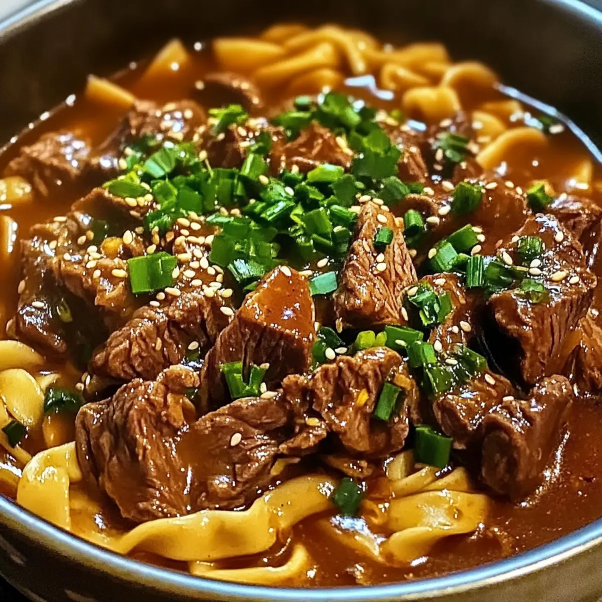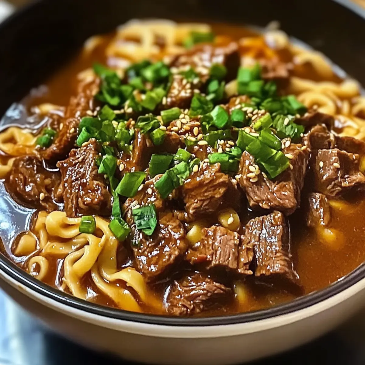 Wenn ich an kalte Abende denke, kommt mir sofort das Bild einer dampfenden Schüssel voller koreanischer Rindfleischnudeln in den Sinn. Diese herzhaften Nudeln, zubereitet im Slow Cooker, sind der Inbegriff von Gemütlichkeit und Genuss. Während das zarte Rindfleisch in einer aromatischen Brühe schmort, entfalten sich die Aromen von Gochujang, Knoblauch und Ingwer und versprechen ein Geschmackserlebnis, das sowohl wärmt als auch zufriedenstellt. Mit minimalem Aufwand lassen sich diese koreanischen Rindfleischnudeln zubereiten, was sie perfekt für geschäftige Wochenabende macht – sie sind nicht nur ein echter Publikumsmagnet, sondern auch ein beruhigendes Wohlfühlessen, das die ganze Familie begeistert. Bereit, die Töpfe und Pfannen zum Glühen zu bringen? Lass uns gemeinsam in die Welt dieses köstlichen Comfort Foods eintauchen! Warum sind koreanische Rindfleischnudeln so beliebt? Einfachheit, die Rezeptur ist unkompliziert und erfordert keine speziellen Kochfertigkeiten, ideal für alle, die gerne kochen. Herzhafter Geschmack, das zarte Rindfleisch und die aromatische Brühe bieten ein einzigartiges Geschmackserlebnis, das den Gaumen verwöhnt. Vielseitigkeit, du kannst die Nudeln nach Belieben anpassen – egal ob mit Huhn, Tofu oder verschiedenen Gemüsesorten. Zeitersparnis, der Slow Cooker erledigt die Arbeit für dich, während du andere Dinge erledigen kannst. Familienfreundlich, dieses Gericht bringt alle zusammen und sorgt für glückliche Gesichter am Tisch. Wenn du nach weiteren Komfortgerichten suchst, schau dir auch unsere Slow Cooker Snacks und Einfaches Rezept für Gewürzreis an! Koreanische Rindfleischnudeln Zutaten • Hier sind die benötigten Zutaten für deine köstlichen koreanischen Rindfleischnudeln, die jeden Bissen zum Erlebnis machen! Für das Rindfleisch Rinderbrust – Hauptprotein; zart und saftig nach dem langsamen Kochen. Schwarzer Pfeffer – Für eine angenehme Schärfe; frisch gemahlener Pfeffer bietet das beste Aroma. Für die Brühe Rinderbrühe – Fügt Tiefe und Geschmack hinzu; Hühnerbrühe kann eine leichtere Option sein. Wasser – Wichtig für die Feuchtigkeit und beim Kochen der Nudeln. Sojasauce – Liefert Umami und Salzgeschmack; verwende eine natriumarme Variante, um weniger Salz zu verwenden. Brauner Zucker – Balanciert die salzigen Aromen; weißer Zucker ist ebenfalls eine gute Alternative. Ingwer, gehackt – Verleiht Wärme und Tiefe; kann im Notfall auch durch Ingwerpulver ersetzt werden. Knoblauch, gehackt – Trägt zu einem robusten Geschmack bei; Knoblauchpulver ist ein mögliches Substitute. Sesamöl – Bringt nussige Nuancen mit; kann auch durch Olivenöl ersetzt werden, um einen anderen Geschmack zu erzielen. Gochujang (koreanische Chilipaste) – Sorgt für authentische Schärfe; rote Paprikaflocken sind eine milde Alternative. Für die Nudeln Nudeln (Udon oder Ramen) – Basis des Gerichts; jede Nudelart funktioniert, sogar glutenfreie Optionen. Für die Garnitur Frühlingszwiebeln – Für Frische und Farbe; können mit Schnittlauch ersetzt werden. Sesamsamen – Optionale Verfeinerung für zusätzlichen Biss und Geschmack. Koriander – Optional für frische Kräuternoten, die das Gericht abrunden. Diese köstlichen Zutaten ergeben zusammen die perfekten koreanischen Rindfleischnudeln – ein Gericht, das du nicht verpassen solltest! Schritt-für-Schritt-Anleitung für koreanische Rindfleischnudeln Step 1: Rindfleisch vorbereiten Das Rindfleisch in gleichmäßige Stücke schneiden und großzügig mit schwarzem Pfeffer würzen. Achte darauf, dass jede Seite gut bedeckt ist, um den Geschmack zu intensivieren. Die Stücke sollten zimmerwarm sein, bevor du mit dem nächsten Schritt fortfährst. Step 2: Sauce mischen In einer großen Schüssel die Rinderbrühe, Sojasauce, braunen Zucker, gehackten Ingwer, Knoblauch, Sesamöl und Gochujang gut vermengen. Rühre die Mischung so lange, bis sich der Zucker vollständig aufgelöst hat. Dies wird die geschmackvolle Basis für deine koreanischen Rindfleischnudeln sein. Step 3: Langsam garen Platziere die gewürzten Rindfleischstücke in deinem Slow Cooker und gieße die vorbereitete Sauce darüber. Decke den Slow Cooker ab und stelle ihn auf niedrig, um die Rindfleischstücke für 6-8 Stunden oder auf hoch für 3-4 Stunden zu garen. Das Fleisch sollte am Ende zart und saftig sein. Step 4: Nudeln kochen In den letzten 15-20 Minuten der Garzeit des Rindfleischs, die Nudeln nach den Anweisungen auf der Verpackung zubereiten. Achte darauf, dass du sie al dente kochst, damit sie beim Mischen mit der Brühe nicht matschig werden. Nach dem Kochen gut abtropfen lassen. Step 5: Kombinieren Sobald das Rindfleisch zart ist, die gekochten Nudeln vorsichtig in den Slow Cooker hinzufügen. Rühre sanft um, damit die Nudeln die köstliche Brühe aufnehmen und sich die Aromen miteinander verbinden. Achte darauf, die Nudeln gleichmäßig zu verteilen. Step 6: Servieren Die koreanischen Rindfleischnudeln in Schüsseln anrichten und nach Belieben mit Frühlingszwiebeln, Sesamsamen und Koriander garnieren. Diese Garnituren verleihen deinem Gericht nicht nur Farbe, sondern auch einen frischen Geschmack. Lass es dir schmecken! Was passt zu koreanischen Rindfleischnudeln? Wenn du ein vollwertiges Menü zaubern möchtest, sind diese Beilagen die perfekte Ergänzung zu deiner herzhaften Schüssel koreanischer Rindfleischnudeln. Gedämpfter Reis: Die soften Kornkörner nehmen die köstliche Brühe perfekt auf und sorgen für ein harmonisches Geschmackserlebnis. Ein schlichtes Gericht, das nie aus der Mode kommt. Eingelegtes Gemüse: Die knusprigen, sauer eingelegten Karotten oder Rettiche bieten einen erfrischenden Kontrast zur herzhaften Brühe, der jeden Bissen auflockert. Sie bringen Farbe und Knackigkeit auf den Tisch. Gekochtes Gemüse: Brokkoli oder Bok Choy, sanft gegart, fügen gesunde, frische Elemente hinzu und runden das Gericht mit einer knackigen Textur ab. Diese Kombination lädt zum