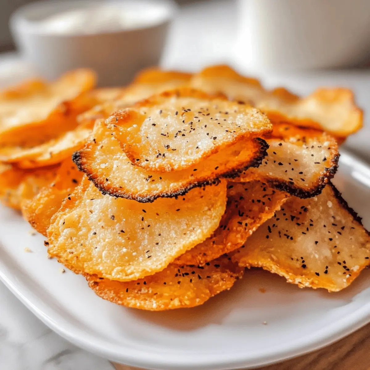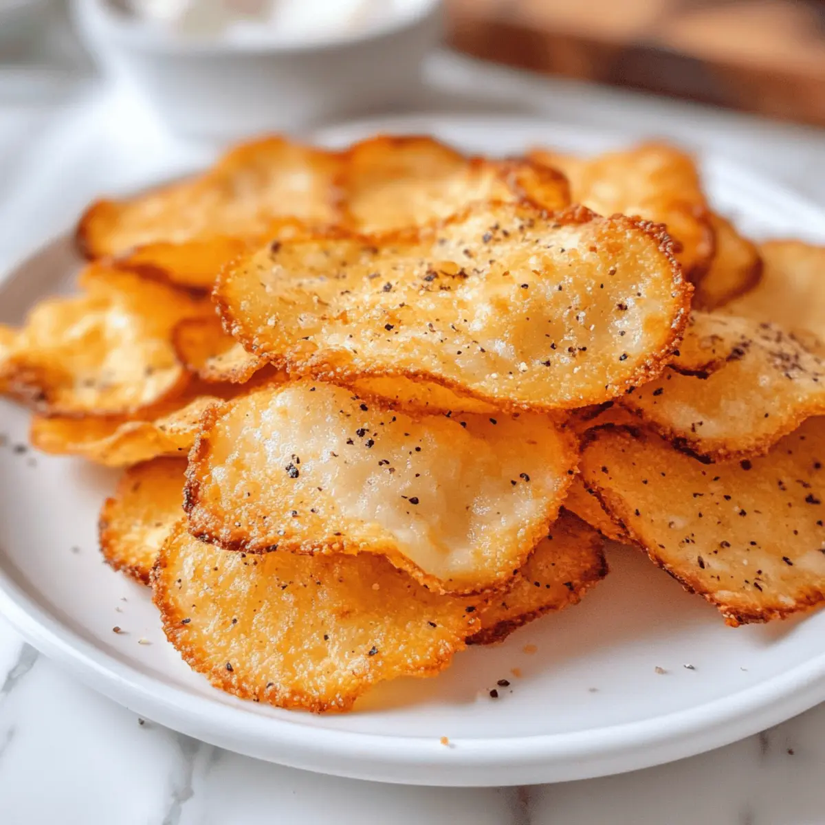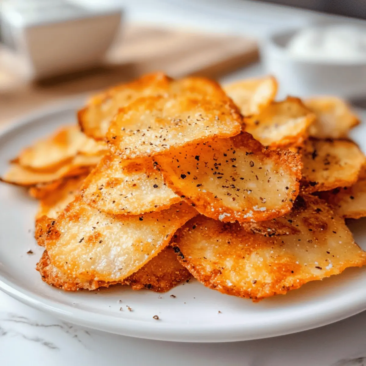 Eines Abends, während ich nach einem gesunden Snack suchte, hatte ich eine kleine Erleuchtung. Warum nicht etwas Einfaches und gleichzeitig Knuspriges ausprobieren? So entstand mein Rezept für die Crispy Low-Carb Cottage Cheese Chips. Diese Chips sind nicht nur blitzschnell zubereitet, sondern auch ein wahres Geschmackserlebnis – perfekt für alle, die auf der Suche nach einer glutenfreien und proteinreichen Snack-Alternative sind. Mit nur einem Hauptbestandteil und der Möglichkeit, sie mit euren Lieblingsgewürzen zu verfeinern, wird jeder Biss zu einer kleinen Geschmacksexplosion. Seid ihr bereit, euer nächstes Lieblingssnack-Rezept zu entdecken? Warum wirst du diese Chips lieben? Einfachheit: Die Zubereitung könnte nicht unkomplizierter sein – mit nur wenigen Schritten hast du knusprige Snacks für jede Gelegenheit. Vielseitigkeit: Experimentiere mit verschiedenen Gewürzen! Von Knoblauchpulver bis hin zu Taco-Gewürz, jede Variante bietet ein neues Geschmackserlebnis. Gesundheit: Diese Chips sind nicht nur glutenfrei, sondern auch arm an Kohlenhydraten und reich an Proteinen – perfekt für deinen gesunden Lebensstil. Snack für alle: Egal ob als Snack für den Fernsehabend oder als Ergänzung zu deinem Mittagessen, sie erfreuen sich großer Beliebtheit bei jedem. Einfach zuzubereiten: In nur 30 Minuten kannst du sie backen und genießen. Ideal, wenn du schnell etwas Knuspriges benötigst! Kombiniere sie zum Beispiel mit einem leckeren Dip wie Guacamole oder salsa für das perfekte Snack-Erlebnis. Wenn dir gesundes Essen am Herzen liegt, schau dir auch unser Rezept für Wuerzige Chinakohl Rinderhack an! Quarkchips Zutaten • Diese köstlichen Krosse Quarkchips sind einfach und schnell zuzubereiten! Für die Chips Quark – Die Hauptzutat, die für die nötige Proteinstruktur sorgt; Vollfett-Quark ist ideal, sorgt jedoch gleichzeitig für einen reicheren Geschmack. Gewürze und Toppings Knoblauchpulver – Verleiht den Chips eine aromatische Note; perfekt für Liebhaber des herzhaften Geschmacks! Taco-Gewürz – Fügt einen würzigen Kick hinzu; ideal für einen Mexiko-inspirierten Snack. Parmesan-Käse – Gleicht den Chips eine herzliche Käsigkeit; große Geschmacksexplosion! Mit diesen Quarkchips hast du nicht nur einen gesunden Snack, sondern auch die Möglichkeit, sie ganz nach deinem Geschmack anzupassen! Schritt-für-Schritt-Anleitung für Krosse Quarkchips Step 1: Ofen vorheizen Heize deinen Ofen auf 180°C vor und lege ein Backblech mit Backpapier aus. Achte darauf, dass das Backpapier gut sitzt, damit die Krosse Quarkchips später leicht zu entnehmen sind. Während der Ofen aufheizt, kannst du die nächsten Schritte vorbereiten, um einen reibungslosen Ablauf zu gewährleisten. Step 2: Quark abtropfen lassen Nehme den Quark aus der Verpackung und lasse ihn gut abtropfen. Dies ist wichtig, um überschüssige Feuchtigkeit zu entfernen, die dazu führen könnte, dass die Chips beim Backen nicht schön knusprig werden. Du kannst den Quark auch in ein Sieb geben und ihn für etwa 10 Minuten ruhen lassen, um die Konsistenz zu verbessern. Step 3: Chips auf das Backblech setzen Mit einem Esslöffel nimmst du portionsweise Quark und setzt diese kleinen Häufchen gleichmäßig auf das Backpapier. Lass dabei einen Abstand von etwa 5 cm zwischen den Häufchen, damit sie beim Backen Platz zum Ausdehnen haben. Drücke jede Portion leicht flach, um die gleichmäßige Backung zu unterstützen. Step 4: Gewürze hinzufügen Jetzt ist es Zeit, deiner Kreativität freien Lauf zu lassen! Streue deine gewünschten Gewürze über die Quarkhäufchen. Ob du Knoblauchpulver, Taco-Gewürz oder Parmesan-Käse verwendest, jeder Belag sorgt für eine besondere Geschmacksnote. Achte darauf, die Gewürze gleichmäßig zu verteilen, um das Aroma in jedem Biss zu garantieren. Step 5: Backen der Chips Schiebe das Backblech in den vorgeheizten Ofen und backe die Quarkchips für etwa 30 Minuten. Halte ein Auge darauf, bis die Ränder leicht goldbraun werden und die Oberseite knusprig aussieht. Der Duft, der aus dem Ofen strömt, wird dir bestätigen, dass deine Krosse Quarkchips fast fertig sind! Step 6: Abkühlen lassen Nehme das Backblech aus dem Ofen und lasse die Krosse Quarkchips darauf vollständig abkühlen. Diese Schritt ist entscheidend, um die knusprige Textur zu bewahren. Lass sie unbedingt ein paar Minuten ruhen, damit die Chips fest werden und ihre Form behalten, bevor du sie servierst. Step 7: Servieren und genießen Sobald die Chips abgekühlt sind, kannst du sie direkt genießen oder mit gesunden Dips wie Guacamole oder Salsa servieren. Diese Krosse Quarkchips sind der perfekte Snack für jede Gelegenheit. Verwöhne dich mit diesem köstlichen, selbstgemachten Snack, der sowohl nahrhaft als auch lecker ist! Lagerungstipps für Krosse Quarkchips Zimmertemperatur: Ideal sind die Chips frisch und warm, jedoch kannst du sie bei Zimmertemperatur in einer luftdichten Dose bis zu 2 Tage aufbewahren. Kühlschrank: Im Kühlschrank halten sich die Krosse Quarkchips bis zu 3 Tage. Achte darauf, sie in einem luftdichten Behälter zu lagern, um Feuchtigkeit zu vermeiden. Aufwärmen: Um die ursprüngliche Knusprigkeit wiederherzustellen, heize die Chips im Ofen bei 180°C für ca. 5-10 Minuten auf. Mikrowellen sind nicht geeignet, da sie die Chips matschig machen. Gefrieren: Das Einfrieren der Chips wird nicht empfohlen, da sie ihre Textur verlieren könnten. Genieß sie lieber frisch zubereitet für das beste Geschmackserlebnis! Tipps für die besten Quarkchips • Gut abtropfen lassen: Achte darauf, den Quark gründlich abzutropfen, um eine perfekt knusprige Textur zu erzielen. Zu viel Feuchtigkeit führt zu matschigen Chips. • Backblech richtig vorbereiten: Verwende Backpapier, um ein Ankleben der Chips zu verhindern. Dies erleichtert das Entnehmen und sorgt für ein schönes Backergebnis. • Gewürze gleichmäßig verteilen: Streue die Gewürze gleichmäßig über die Quarkhäufchen, um sic