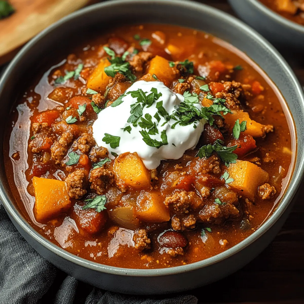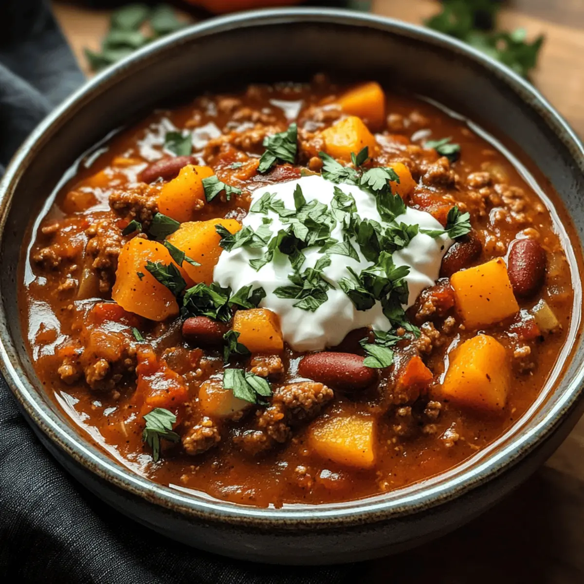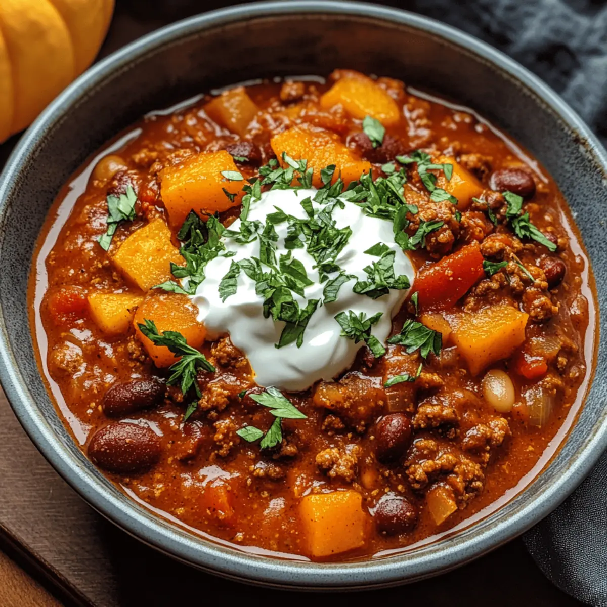 Ein einfach zuzubereitendes Kürbis Chili, das die erdige Süße des Kürbisses mit würzigen Zutaten vereint. Perfekt für gesellige Abende und anpassbar für alle. Die Ausgabe sollte nur die übersetzten Wörter sein.