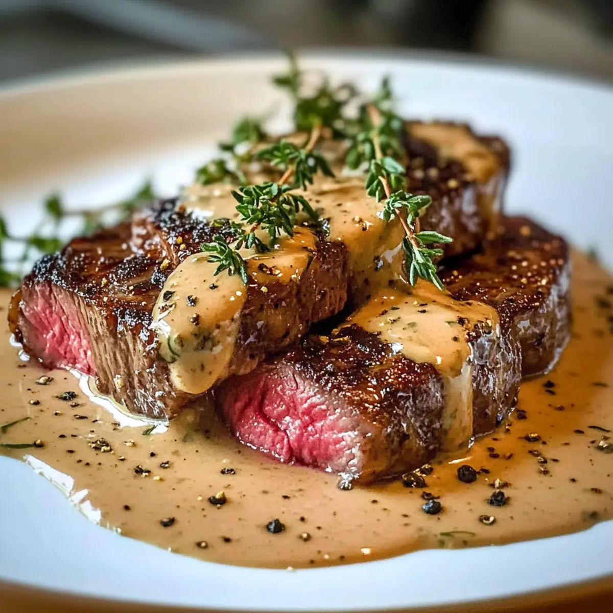Einfachheit: Mit nur wenigen Zutaten zaubert ihr ein Gericht, das jedem Gourmet-Herz höherschlagen lässt. Würzige Aromen: Die Kombination aus frischem Thymian und scharfem Pfeffer verleiht dem Steak eine unwiderstehliche Geschmacksnote. Elegante Präsentation: Die sahnige Cognac-Soße setzt einen luxuriösen Akzent, perfekt für besondere Anlässe. Vielseitiges Pairing: Dieses Gericht harmoniert wunderbar mit Sautierte Karotten Und oder einer einfachen grünen Salatbeilage. Schnell zuzubereiten: In weniger als 30 Minuten könnt ihr ein perfektes Abendessen auf den Tisch bringen. Gönnt euch und euren Gästen dieses elegante Geschmackserlebnis und lasst die Köstlichkeiten eurer eigenen Küche das kulinarische Erlebnis eines Restaurants umarmen!