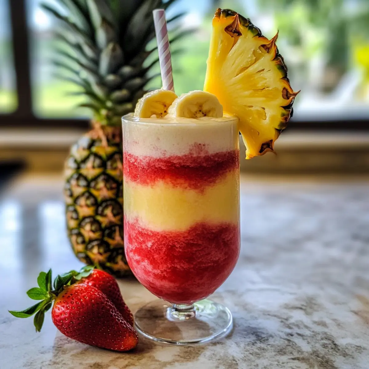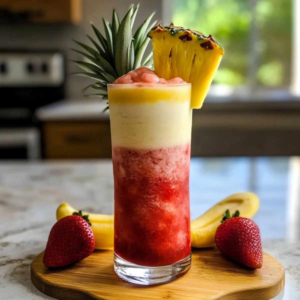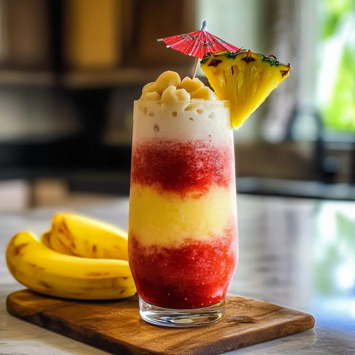 Die Sonne scheint warm vom Himmel, während ich auf der Terrasse sitze und den ersten Schluck meines selbstgemachten Lavafluss Getränks genieße. Dieser fruchtige, tropische gefrorene Cocktail bringt das Urlaubsfeeling direkt zu mir nach Hause! Die Kombination aus einer süßen Erdbeerbasis und einer cremigen Bananen-Kokos-Schicht macht diesen Drink nicht nur zu einem echten Augenschmaus, sondern auch zu einem absoluten Hit bei Partys oder Sommerveranstaltungen. In nur fünf Minuten zubereitet, ist das Lavafluss Getränk die perfekte Wahl, um sich an heißen Tagen eine kühle Erfrischung zu gönnen. Und für alle, die auf Alkohol verzichten möchten, gibt es auch eine leckere, alkoholfreie Variante. Neugierig, wie man diesen tropischen Genuss selbst zaubern kann? Lass uns direkt in die Zubereitung eintauchen! Warum wirst du dieses Rezept lieben? Einfachheit in Perfektion: Die Zubereitung ist unglaublich unkompliziert und erfordert nur wenige Zutaten, die du vielleicht bereits zu Hause hast. Tropische Frische: Der harmonische Mix aus Erdbeeren, Banane und Kokosnussschmack versetzt dich direkt in Urlaubsstimmung und macht den Drink ideal für heiße Sommertage. Farbenspiel: Die beeindruckende Schichtung macht dein Lavafluss Getränk nicht nur lecker, sondern auch zu einem echten visuellen Highlight auf jeder Party. Vielseitigkeit: Ob mit oder ohne Alkohol – die Wahl liegt bei dir! Die alkoholfreie Variante verwandelt sich in einen köstlichen Smoothie, der der ganzen Familie schmecken wird. Schnell und einfach: In nur fünf Minuten kannst du deinen eigenen luxuriösen Cocktail zubereiten – schneller und einfacher geht es nicht! Verwöhne dich mit diesem erfrischenden Getränk und ergänze es mit einem Erdbeer Spinat Salat für ein rundes Sommermenü. Stimmungsaufheller: Egal, ob beim Feiern mit Freunden oder beim Entspannen auf deiner Terrasse – dieses Getränk ist der perfekte Begleiter für unvergessliche Momente. Lavafluss Getränk Zutaten • Um den perfekten tropischen Genuss zu kreieren, hier sind die Zutaten, die du benötigst: Für die Erdbeerbasis: Gefrorene Erdbeeren – gewährleisten eine süße, fruchtige Basis; frisch sind auch eine Option, aber gefrorene Erdbeeren sorgen für die gewünschte dicke Textur. Leichter Rum – fügt dem Getränk alkoholischen Inhalt und Geschmacksfülle hinzu; kann für die alkoholfreie Variante weggelassen oder durch mehr Kokosnuss-Rum ersetzt werden. Kokosnuss-Rum – bringt tropische Noten und Süße; in der alkoholfreien Version kann zusätzliche Kokosnusscreme verwendet werden. Für die Bananenschichtung: Banane – verleiht Cremigkeit und natürliche Süße; gefrorene Bananen sind eine gute Wahl für zusätzliche Kühle. Kokoscreme – sorgt für eine reichhaltige, cremige Textur; süße Kokosmilch ist eine leichtere Option, die ebenfalls gut funktioniert. Ananassaft – verstärkt das tropische Aroma und die Süße; frischer Ananassaft ist ebenfalls eine wunderbare Möglichkeit. Eis – ist entscheidend für die slushige Textur; die Menge kann je nach gewünschter Dicke angepasst werden. Nutze diese Zutaten, um dein eigenes köstliches Lavafluss Getränk zu zaubern und in den Genuss der tropischen Geschmäcker zu kommen! Schritt-für-Schritt-Anleitung für das Lavafluss Getränk Step 1: Erdbeerbasis zubereiten Die gefrorenen Erdbeeren, den leichten Rum und den Kokosnuss-Rum in einem Hochleistungs-Mixer vermengen. Mixe alles bei hoher Geschwindigkeit für etwa 30 Sekunden, bis eine homogene, streichfähige Mischung entsteht. Die leuchtend rote Erdbeerbasis ist nun fertig und sollte in ein Glas gegossen und für später beiseitegestellt werden. Step 2: Bananenschicht vorbereiten Reinige den Mixer, um sicherzustellen, dass keine Erdbeerrückstände vorhanden sind. Füge die Banane, die Kokoscreme, den Ananassaft und eine Tasse Eis hinzu. Mixe alles erneut für etwa 30 bis 45 Sekunden, bis die Mischung cremig und glatt ist. Die Bananenschicht sollte nun eine helle, einladende Farbe haben und bereit sein, über die Erdbeerbasis gegossen zu werden. Step 3: Schichten für den Lavafluss Nehme die Mixerflasche und beginne, die Bananenmischung sorgfältig über die Erdbeerbasis zu gießen. Halte das Glas leicht schräg, damit die Bananenschicht sanft auf die Erdbeerbasis fließen kann und der beeindruckende „Lavafluss“-Effekt entsteht. Achte darauf, dass die Schichten sich nicht vermischen, und genieße den visuellen Anblick! Step 4: Garnierung und Servieren Optional kannst du das Lavafluss Getränk mit einer Scheibe frischer Ananas und einem bunten Cocktail-Schirmchen dekorieren, um dem tropischen Look gerecht zu werden. Serviere das Getränk sofort, um die perfekte konsistenz zu gewährleisten, und genieße den ersten Schluck deines selbstgemachten Lavafluss Getränks! Tipps zur Lagerung des Lavafluss Getränks Zimmertemperatur: Das Getränk sollte nicht bei Zimmertemperatur aufbewahrt werden, da es schnell seine Textur und Frische verliert. Kühlschrank: Du kannst das Lavafluss Getränk für bis zu 1 Stunde im Kühlschrank aufbewahren, jedoch wird die Schichtung beeinträchtigt. Idealerweise frisch servieren! Gefrierschrank: Für die längere Aufbewahrung kannst du die einzelnen Komponenten (Erdbeerbasis und Bananenschicht) bis zu 1 Monat im Gefrierschrank lagern. Stelle sicher, dass sie gut verpackt sind, um Frostbrand zu vermeiden. Auftauen: Zum Servieren die Komponenten im Kühlschrank auftauen lassen und kurz im Mixer aufmixen, um die ursprüngliche Konsistenz zu erhalten, bevor du dein erfrischendes Lavafluss Getränk genießt. Lavafluss Getränk Variationen und Alternativen Entdecke die Freiheit, dein Lavafluss Getränk ganz nach deinem Geschmack umzugestalten und anzupassen! Alkoholfrei: Ersetze die Rums durch Kokosmilch oder Vollmilch für einen cremigen, alkoholfreien Genuss. Ideal für die ganze Familie! Fruchtige Varianten: Probiere Mangos oder Passionsfrüchte in der Erdbeerbasis für ein zusätzliches Geschmackserlebnis. D