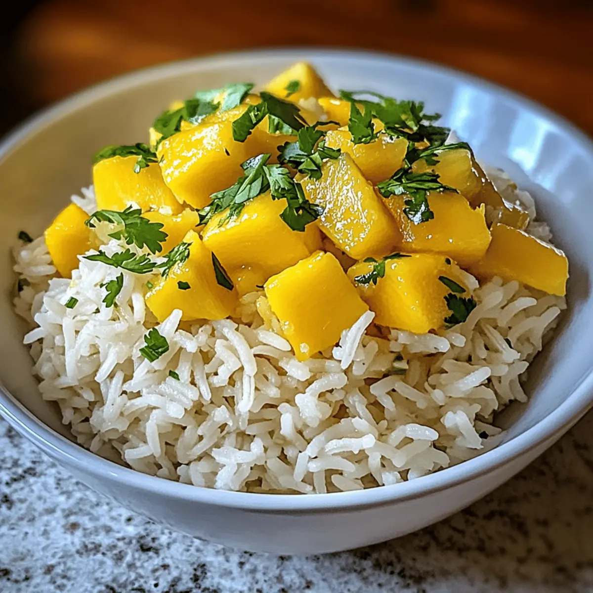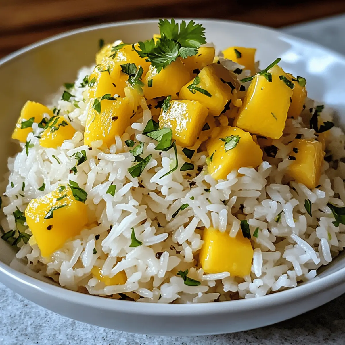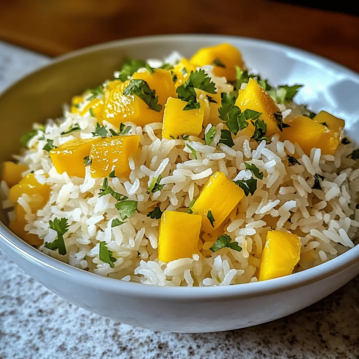 Während ich in der Küche stehe und die frischen Zutaten für mein nächstes Gericht vorbereite, schweifen meine Gedanken zu einem strahlend sonnigen Tag am Strand. Dort könnten die Farben und Aromen von meinem Mango Lime Rice nicht lebendiger sein! Dieser tropische Side Dish, der die süße Saftigkeit von reifen Mangos mit der spritzigen Frische von Limetten vereint, ist nicht nur ein Genuss für den Gaumen, sondern auch super schnell zubereitet. Perfekt für sommerliche Grillfeste oder entspannte Abendessen, lässt er sich ganz einfach anpassen, sei es mit Quinoa statt Reis oder einer Extraportion gegrilltem Hühnchen für mehr Protein. Sind Sie bereit, sich dem verlockenden Geschmack dieser bunten Kreation hinzugeben? Warum wirst du Mango Lime Reis lieben? Einfachheit: Die Zubereitung ist unkompliziert und erfordert nur grundlegende Kochfähigkeiten, perfekt für alle, die schnell ein köstliches Gericht zaubern möchten. Erfrischender Geschmack: Die Kombination aus süßem Mango und spritziger Limette bringt einen Hauch von Sommer auf deinen Teller und lässt dich von tropischen Stränden träumen. Vielseitigkeit: Du kannst mit verschiedenen Zutaten experimentieren – von Quinoa bis zu gegrilltem Hühnchen – und so immer neue Geschmackserlebnisse entdecken. Gesund und nahrhaft: Dieser Reis ist nicht nur vegan und glutenfrei, sondern auch reich an wichtigen Vitaminen, die deine Gesundheit unterstützen. Perfekt für jeden Anlass: Ob du ein Sommerfest planst oder ein schnelles Abendessen zubereiten möchtest, dieser Mango Lime Reis ist ein Hit, der garantiert alle begeistert! Entdecke auch weitere tolle Rezepte wie das Mango Sago Rezept als fruchtigen Nachtisch oder probiere die Panierte Fische Mango für ein komplettes Menü aus! Mango Lime Reis Zutaten Für den Reis Basmati Reis – sorgt für eine fluffige Textur und ist die perfekte Basis für dieses speisenreiche Gericht. Wasser oder Gemüsebrühe – das Kochwasser, das den Reis hydratisiert; Brühe bringt zusätzlichen Geschmack. Reife Mango – liefert natürliche Süße und leuchtende Farbe; bei Bedarf kann auch Dosenmango verwendet werden. Für das Dressing Limette – bringt die nötige Säure und Frische; sowohl Zeste als auch Saft sind entscheidend für die Geschmacksvielfalt. Frischer Koriander – verleiht eine frische Kräuternote; kann durch Minze oder Basilikum ersetzt werden, wenn du etwas Anderes probieren möchtest. Olivenöl oder Kokosöl – verbessert die Reichhaltigkeit und den Geschmack; verwende für einen stärkeren Geschmack extra natives Olivenöl. Salz & Pfeffer – unverzichtbare Gewürze, um den Geschmack nach Belieben abzustimmen. Dieser Mango Lime Reis ist nicht nur ein Fest für die Sinne, sondern passt auch hervorragend zu vielfältigen Anlässen. Genieße ihn und entdecke die frischen Aromen! Schritt-für-Schritt-Anleitung für Mango Lime Reis Schritt 1: Reis abspülen Spüle den Basmati Reis unter kaltem Wasser in einem Sieb so lange, bis das Wasser klar ist. Dieser Schritt ist entscheidend, um überschüssige Stärke zu entfernen und sicherzustellen, dass der Reis beim Kochen fluffig bleibt. Du solltest die Körner gut spülen, um die perfekte Textur für deinen Mango Lime Reis zu erreichen. Schritt 2: Reis kochen Gib den gewaschenen Reis zusammen mit der Wasser oder Gemüsebrühe und einer Prise Salz in einen mittelgroßen Topf. Bringe die Mischung bei mittlerer Hitze zum Kochen. Sobald es kocht, reduziere die Hitze auf niedrig, decke den Topf ab und lasse den Reis 15-20 Minuten köcheln, bis die Flüssigkeit vollständig aufgesogen ist. Schritt 3: Reis ruhen lassen Nimm den Topf vom Herd, lasse ihn aber weiterhin abgedeckt stehen. Gib dem Reis etwa 5 Minuten Zeit, um auszudampfen. Dieser Schritt sorgt dafür, dass die Körner perfekt locker und fluffig werden und ist entscheidend für die Konsistenz deines Mango Lime Reis. Schritt 4: Reis auflockern Verwende eine Gabel, um den gegarten Reis aufzulockern und die Körner voneinander zu trennen. Du wirst die flaumige Textur genießen, die perfekt zu der süßen Mango und der spritzigen Limette passt, die bald hinzugefügt werden. Schritt 5: Mango und Dressing mischen In einer separaten Schüssel vermenge die gewürfelte Mango, Limettenzeste und den Limettensaft sowie den gehackten Koriander. Mische diese Zutaten gut und füge dann die aufgeflockte Reis-Mischung hinzu. Träufle etwas Olivenöl oder Kokosöl darüber und würze das Ganze nach Belieben mit Salz und Pfeffer. Schritt 6: Servieren Serviere den Mango Lime Reis warm oder bei Zimmertemperatur. Garniere das Gericht mit Limettenscheiben und zusätzlichem Koriander für einen frischen Touch. Dieser tropische Reis ist nicht nur ein Blickfang, sondern bringt auch eine Fülle von Aromen zu jedem Anlass. Variationen des Mango Lime Reis Ja, du kannst das Rezept individuell gestalten! Quinoa ersetzen: Tausche den Basmati Reis gegen Quinoa aus, um eine proteinreiche, glutenfreie Option zu erhalten. Quinoa bringt eine nussige Note, die wunderbar mit Mango harmoniert. Blumenkohlreis verwenden: Für eine kohlenhydratarme Variante kannst du Blumenkohlreis anstelle von Basmati Reis verwenden. Einfach pürieren und die Zubereitung bleibt gleich! Protein hinzufügen: Füge gegrilltes Hühnchen oder Garnelen hinzu, um das Gericht zu einem herzhaften Hauptgericht zu erweitern. Perfekt für ein sättigendes Abendessen. Scharfe Note: Integriere gewürfelte Jalapeños oder eine Prise Cayennepfeffer für einen feurigen Kick. Die Schärfe ergänzt die Süße der Mango auf köstliche Weise. Kräutervariationen: Experimentiere statt mit frischem Koriander auch mit Minze oder Basilikum; beide verleihen dem Gericht eine frische, aromatische Note. So bleibt es spannend! Fruchtige Ergänzungen: Gib neben Mango auch Ananas oder Papaya hinzu für eine tropische Geschmacksvielfalt. Diese Kombination zaubert gleich noch mehr sonnige Gefühle auf den Teller. Kreuzkümmel einfügen: Ein Teelöffel Kreuzkümmel verleiht 