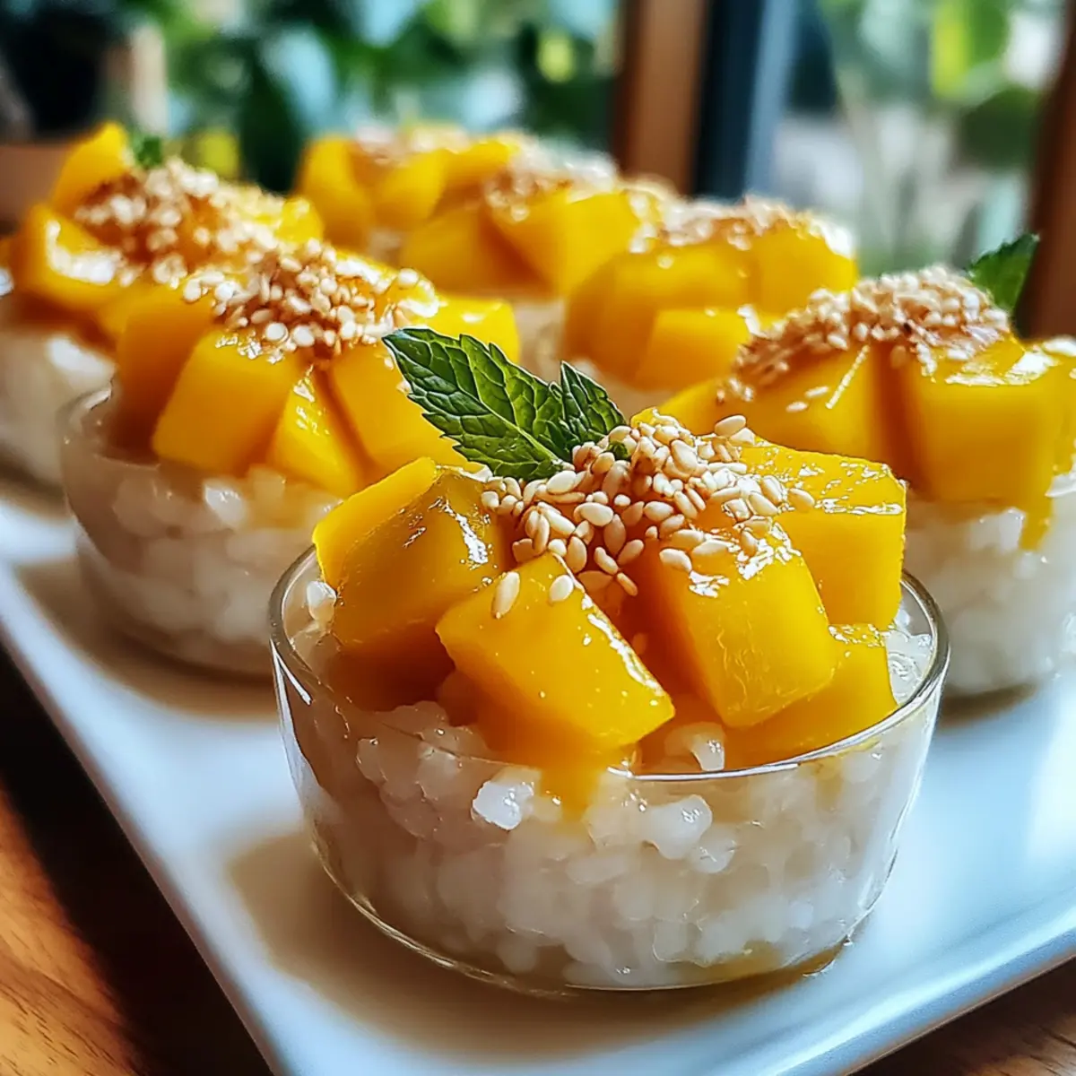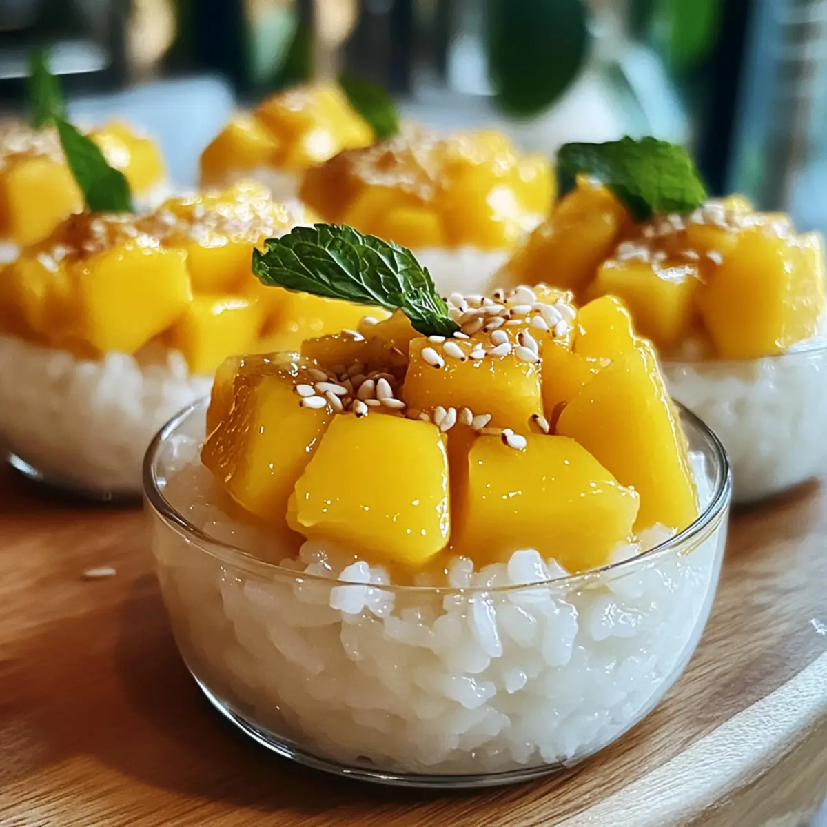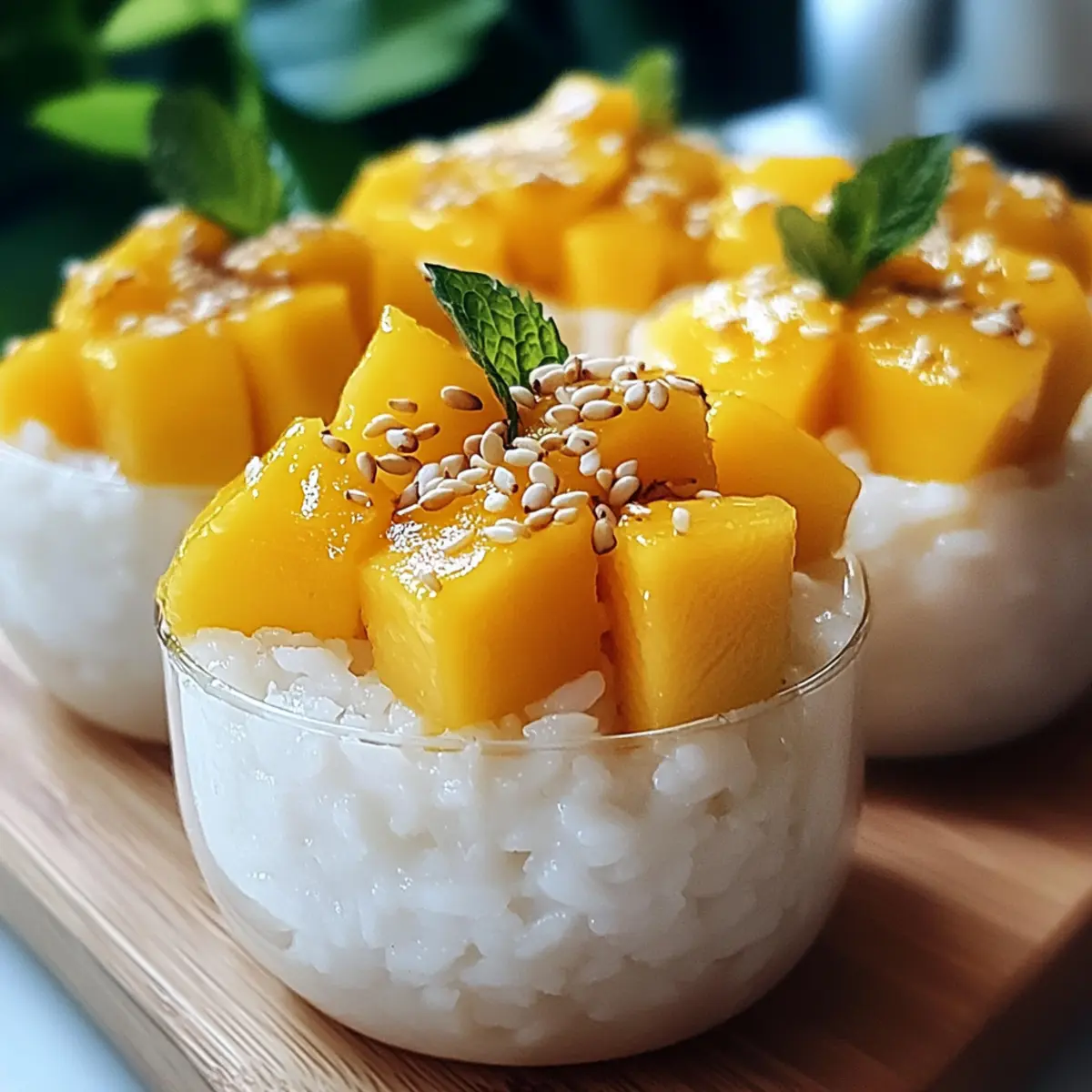 In den Straßen Bangkoks liegt ein Geheimnis, das jeden Gourmet verzaubert: die zarten Tassen mit süßem Mango Sticky Rice. Diese tropischen Köstlichkeiten verbinden den cremigen Genuss von Kokosnuss mit der saftigen Süße reifer Mangos und lassen das Herz eines jeden Heimkochs höherschlagen. Perfekt für all jene, die nach einem einfachen Dessert suchen, das ebenso beeindruckend ist wie köstlich! Mit den Mango Sticky Rice Tassen bringst du nicht nur das Urlaubsfeeling auf den Tisch, sondern versüßt auch jeden besonderen Anlass dank ihrer anpassbaren Variationen. Hast du schon darüber nachgedacht, welche leckeren Toppings du ausprobieren möchtest? Warum wirst du diese Tassen lieben? Einfachheit trifft Genuss: Der Prozess ist unkompliziert und benötigt keine besonderen Fähigkeiten, perfekt für alle, die im Handumdrehen ein köstliches Dessert zaubern möchten. Frische Farben: Die Kombination aus saftigen Mangos und knackigen Minzblättern sorgt für einen visuellen Höhepunkt auf deinem Tisch. Vielseitigkeit pur: Ob mit frischen Früchten, Nüssen oder sogar einer Prise Matcha – du kannst die Tassen nach deinem Geschmack gestalten! Perfekter Party-Hit: Diese Mango Sticky Rice Tassen sind ideal für Feiern und ziehen alle Blicke auf sich. Kombiniere sie mit anderen Leckereien wie Himmlisches Pistazien Tiramisu oder Honig Butter Pfannenmais für ein unvergleichliches Dessert-Arrangement. Tropischer Genuss: Jedes Bisschen fühlt sich an wie ein Kurzurlaub in Thailand – ideal, um den Alltag zu entfliehen! Mango Sticky Rice Tassen Zutaten • Diese Zutaten werden dir helfen, köstliche Mango Sticky Rice Tassen zuzubereiten. Für den Reis Glutinous Rice – Dieser spezielle Reis sorgt für die charakteristische klebrige Textur; unbedingt 30 Minuten einweichen! Kokosmilch – Verwende die vollfette Variante, um dem Reis die cremige Fülle zu verleihen. Zucker – Süßt die Kokosmixtur; als vegane Alternative kannst du Kokosblütenzucker nutzen. Salz – Bringt die Aromen zur Geltung und balanciert die Süße perfekt. Für das Topping Reife Mangos – Die Hauptzutat, die Frische und leuchtende Farbe hinzufügt; wähle orange-gelbe Mangos für optimale Süße. Frischer Limettensaft – Hellt den Mangogeschmack auf und verhindert das Braunwerden der gewürfelten Mango. Geröstete Sesamkörner (optional) – Für zusätzlichen Crunch und optische Anziehung; lasse sie weg für eine schlichtere Präsentation. Frische Minzblätter – Verschönern das Dessert und bringen eine erfrischende Note in die Mango Sticky Rice Tassen. Schritt-für-Schritt-Anleitung für Mango Sticky Rice Tassen Step 1: Reis einweichen Spüle den klebrigen Reis gründlich unter fließendem Wasser ab, bis das Wasser klar ist. Weiche den Reis dann 30 Minuten lang in frischem Wasser ein, bis er leicht aufquillt. Dieser Schritt ist entscheidend, um die perfekte Textur für deine Mango Sticky Rice Tassen zu erreichen. Step 2: Reis dämpfen Nach dem Einweichen, lasse den Reis abtropfen und lege ihn in einen mit Käsetuch ausgelegten Bambusdampfer. Dämpfe den Reis über einem köchelnden Wasserbad für etwa 20 Minuten. Der Reis sollte am Ende elastisch und zart sein – genau richtig für die Tassen! Step 3: Kokosnussmischung zubereiten Während der Reis dämpft, erhitze die Kokosmilch zusammen mit Zucker und Salz in einem kleinen Topf bei niedriger Hitze. Rühre regelmäßig, bis der Zucker vollständig aufgelöst ist und die Mischung eine cremige Konsistenz erreicht. Diese köstliche Mischung wird den Mango Sticky Rice Tassen ihren vollen Geschmack verleihen. Step 4: Mischungen kombinieren Nachdem der Reis dampferig und warm ist, übertrage ihn in eine große Schüssel. Gieße die warme Kokosnussmischung darüber und rühre vorsichtig, bis der Reis gleichmäßig glänzend und mit der Mischung überzogen ist. Dies sollte etwa 5 Minuten dauern, um die Geschmäcker gut zu vereinen. Step 5: Mango vorbereiten Schäle die reifen Mangos und schneide sie in kleine, mundgerechte Würfel. Vermische die Mango-Würfel vorsichtig mit einem Spritzer Limettensaft, um die Frische zu betonen und ein Braunwerden zu verhindern. Diese fruchtige Komponente wird das Highlight deiner Mango Sticky Rice Tassen sein. Step 6: Tassen anrichten Nimm kleine Schalen oder Tassen und fülle sie mit dem Kokos-Sticky-Rice. Stoße die Mischung leicht an, um eine schöne Form zu erhalten. Toppe jede Portion großzügig mit den frisch geschnittenen Mango-Würfeln und garniere nach Belieben mit gerösteten Sesamkörnern sowie frischen Minzblättern für einen extra Farbtupfer. Lagerungstipps für Mango Sticky Rice Tassen Raumtemperatur: Halte die Tassen maximal 2 Stunden bei Raumtemperatur, um die Frische und Qualität des Desserts zu bewahren. Kühlschrank: Bewahre die Mango Sticky Rice Tassen in einem luftdichten Behälter im Kühlschrank für bis zu 3 Tage auf. So bleibt die Konsistenz erhalten. Wiedervorwärmen: Um die Tassen erneut zu genießen, erwärme den Sticky Rice vorsichtig mit etwas Kokosmilch in der Mikrowelle oder im Wasserbad, um die cremige Textur zu regenerieren. Einfrieren: Für eine längere Aufbewahrung kannst du den Sticky Rice ohne Mango in einem luftdichten Behälter bis zu 1 Monat einfrieren. Füge die frischen Mango-Würfel erst nach dem Auftauen hinzu. Was passt gut zu Mango Sticky Rice Tassen? Genieße ein tropisches Festmahl, das alle Sinne anspricht und jeden Gaumen erfreut! Frische Früchte: Biete einen bunten Obstsalat an; die Frische der Früchte ergänzt die Süße der Mango perfekt. Kokos-Chia-Pudding: Eine cremige, nährstoffreiche Ergänzung, die den Kokosgeschmack verstärkt und für Textur sorgt. Geröstete Nüsse: Mandeln oder Erdnüsse bringen einen knusprigen Kontrast zur weichen Textur der Tassen und verleihen zusätzlichen Geschmack. Eiscreme: Eine Kugel Kokos- oder mangoflavor Eis rundet das Dessert ab und sorgt für eine kühle Erfrischung. Matcha-Tee: Ein leicht bitterer, grüner Tee bringt eine interessante