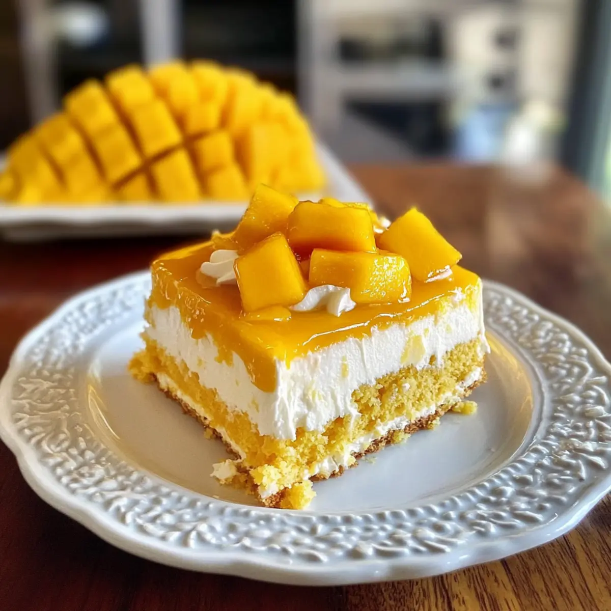 Ein Stück Mango Tres Leches Kuchen ist wie ein kleiner Urlaub auf Ihrem Teller! Dieses köstliche Dessert, das in drei verschiedenen Milchsorten getränkt und mit einer selbstgemachten Mango-Marmelade verfeinert wird, ist der Inbegriff von tropischer Frische und cremigem Genuss. Die Zubereitung ist einfach und schnell, perfekt für diejenigen, die in der Küche nicht viel Zeit verschwenden wollen, aber trotzdem durch homemade Geschmäcker beeindrucken möchten. Und das Beste daran? Dieses Rezept ist vielseitig und lässt sich wunderbar abwandeln – seien es schokoladige Varianten oder fruchtige Kombinationen mit Passionsfrucht und Limette. Sind Sie bereit, den Sommer in Ihre Küche zu holen? Warum werden Sie diesen Kuchen lieben? Tropische Aromen: Jeder Bissen des Mango Tres Leches Kuchens schmeckt wie ein Urlaub auf Ihrer Zunge. Einfachheit: Mit nur wenigen Zutaten und unkomplizierten Schritten zaubern Sie ein beeindruckendes Dessert, ideal für alle, die keine Zeit verschwenden möchten. Vielseitigkeit: Ob schokoladige Variationen oder fruchtige Kombinationen – der Variationsspielraum ist groß, sodass Sie immer wieder neue Geschmäcker entdecken können. Crowd-Pleaser: Gäste und Familie werden von der frisch-herben Mango-Marmelade begeistert sein, die dem Kuchen das gewisse Etwas verleiht. Perfekt zum Teilen oder einfach nur zum Genießen! Wenn Ihnen nach mehr fruchtigen Kreationen ist, entdecken Sie auch unsere Knoblauch Huehnchen Wraps oder die köstlichen Cheese Protein Kekse. Mango Tres Leches Kuchen Zutaten • Verwöhnen Sie sich mit diesem tropischen Dessert! Für den Kuchen Mango – für die süße und fruchtige Basis; verwenden Sie reife Pfirsiche als alternative Frucht. Zucker – süßt den Kuchen; brauner Zucker verleiht ihm eine tiefere Note. Limettensaft – sorgt für die nötige Säure; frische Limettenzesten verstärken das Aroma. Salz – hebt die Aromen im Kuchen hervor. Schwere Sahne – sorgt für die reichhaltige – und cremige Schichtung; Sie können Vollmilch verwenden, aber es wird nicht so reichhaltig sein. Für die Tres Leches Mischung Kondensmilch – verleiht dem Kuchen seine Süße und Cremigkeit. Eingedampfte Milch – sorgt für die nötige Textur beim Durchtränken des Kuchens. Vollmilch – die dritte Milch für die perfekte Konsistenz. Für die Mango-Marmelade Wasser – für die Marmelade; Sie können dies durch Fruchtsaft ersetzen, um mehr Geschmack zu erhalten. Limettensaft – für zusätzlichen Frischekick in der Marmelade. Zucker – süßt die Marmelade; passen Sie die Menge je nach Reife der Mangos an. Für die Garnierung Schlagsahne – sorgt für eine extra cremige Schicht auf dem Kuchen; stabilisieren Sie mit Puderzucker, wenn gewünscht. Frische Mangoscheiben – für eine schöne Präsentation und zusätzliches Aroma. Stellen Sie sich auf einen tropischen Genuss mit diesem Mango Tres Leches Kuchen ein, der Ihre Gäste begeistern wird! Schritt-für-Schritt-Anleitung für Mango Tres Leches Kuchen Step 1: Mango-Marmelade vorbereiten Schälen und würfeln Sie die Mango, dann geben Sie diese zusammen mit Zucker, Limettensaft, Wasser und einer Prise Salz in einen Topf. Bringen Sie die Mischung zum Kochen und lassen Sie sie dann 15-20 Minuten bei mittlerer Hitze köcheln, bis sie eindickt und eine marmeladenartige Konsistenz hat. Rühren Sie gelegentlich um, fügen Sie zum Schluss die Limettenzesten hinzu und lassen Sie die Marmelade vollständig abkühlen. Step 2: Kuchen backen Heizen Sie den Ofen auf 180 Grad Celsius vor und fetten Sie eine rechteckige Backform ein. Bereiten Sie den Kuchenteig gemäß Ihrem Lieblingsrezept vor und füllen Sie ihn in die Backform. Backen Sie den Kuchen für etwa 30-35 Minuten, bis er goldbraun ist und ein Zahnstocher sauber herauskommt. Lassen Sie den Kuchen nach dem Backen in der Form abkühlen, bevor Sie ihn weiterverarbeiten. Step 3: Tres Leches Mischung herstellen Während der Kuchen abkühlt, bereiten Sie die Tres Leches Mischung vor. Mischen Sie eingedampfte Milch, Kondensmilch und Vollmilch in einer Schüssel. Rühren Sie gut um, bis eine homogene Flüssigkeit entsteht. Diese Mischung wird später verwendet, um den abgekühlten Mango Tres Leches Kuchen durchtränken zu können und sorgt für die typische saftige Konsistenz. Step 4: Kuchen durchtränken Wenn der Kuchen abgekühlt ist, nehmen Sie einen Holzspieß oder eine Gabel und stechen Löcher in die Oberfläche des Kuchens. Gießen Sie dann langsam die Tres Leches Mischung gleichmäßig über den Kuchen, so dass sie gut eindringt. Lassen Sie den Kuchen mindestens 30 Minuten saugen, besser noch über Nacht im Kühlschrank, damit die Aromen sich gut entfalten können. Step 5: Fertigstellen und servieren Bestreichen Sie den durchtränkten Mango Tres Leches Kuchen mit der vorbereiteten Mango-Marmelade und garnieren Sie ihn zusätzlich mit frischen Mangoscheiben. Für eine besondere Note können Sie auch Schlagsahne daraufgeben. Servieren Sie den Kuchen in Stücke geschnitten und genießen Sie die tropischen Aromen, die bei jedem Bissen zum Vorschein kommen! Expertentipps für den besten Mango Tres Leches Kuchen Frische Zutaten: Verwenden Sie reife Mangos für maximalen Geschmack. Achten Sie darauf, die Früchte zur richtigen Zeit zu kaufen, um den besten Genuss zu erzielen. Kühlen: Kühlen Sie die Schüssel und Rührbesen für die Schlagsahne im Voraus. So erzielen Sie eine bessere Konsistenz und verhindern Übermixen. Zucker anpassen: Fügen Sie den Zucker schrittweise zur Schlagsahne hinzu, um die Süße genau nach Ihrem Geschmack einzustellen. So vermeiden Sie eine zu süße Creme. Lochstechen: Achten Sie darauf, gleichmäßige Löcher in den Kuchen zu stechen, um ein gleichmäßiges Durchtränken mit der Tres Leches Mischung zu ermöglichen und ein optimales Ergebnis zu erzielen. Ruhen lassen: Lassen Sie den Kuchen mindestens 30 Minuten bis eine Stunde im Kühlschrank ruhen, damit er die gesamte Feuchtigkeit aufnehmen kann. Dies sorgt für d