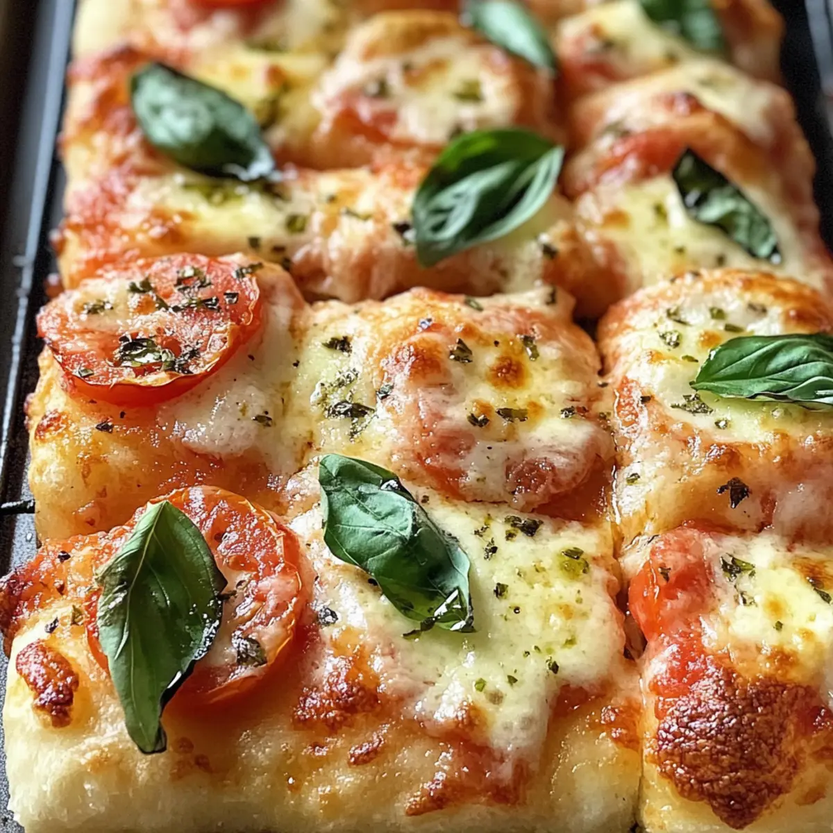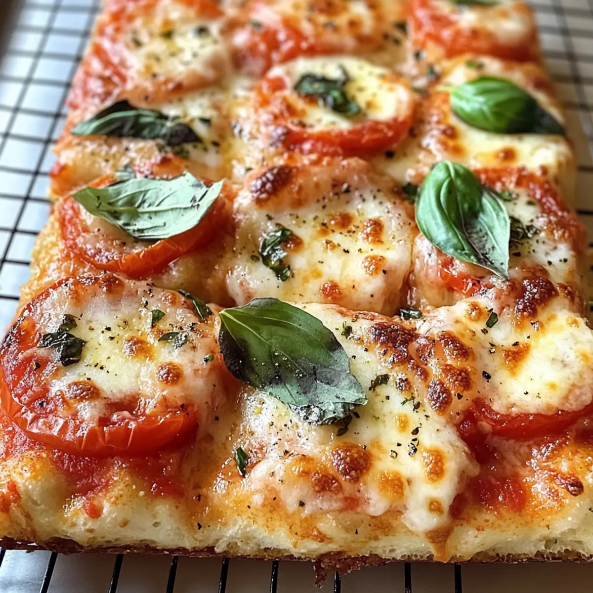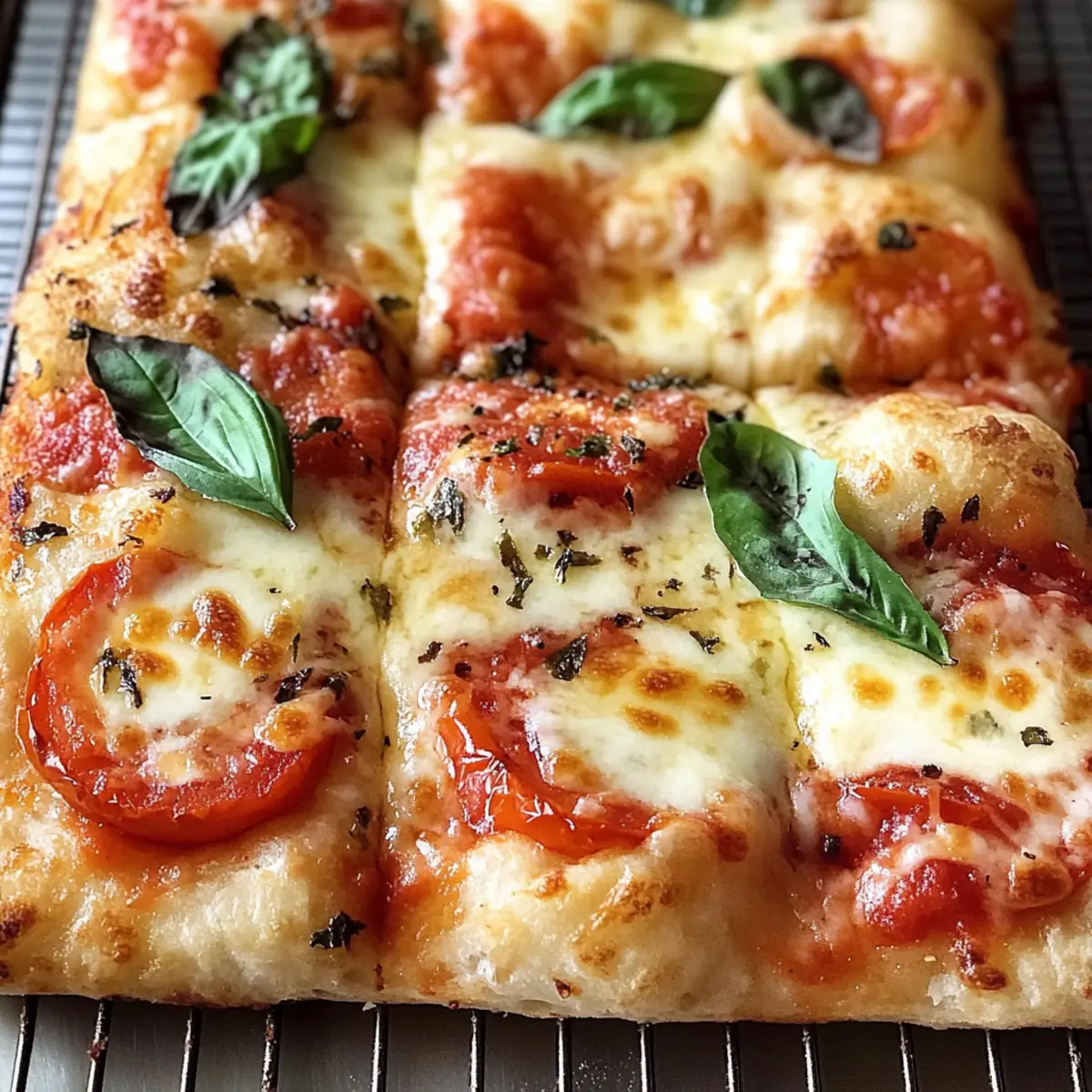In einer gemütlichen Küche, wo der Duft von frisch gebackenem Brot durch die Luft zieht, habe ich das perfekte Rezept entdeckt: Margherita Pizza Focaccia. Diese spezielle Focaccia kombiniert die fluffige, goldene Textur von Brotteig mit dem vertrauten Geschmack einer klassischen Margherita-Pizza. Ideal für gesellige Abendessen oder als herzhaftes Snack für einen ruhigen Abend zu Hause. Ein weiterer Pluspunkt? Sie eignet sich hervorragend als Resteverwertung, denn das Aufwärmen gelingt mühelos! Mit einer knusprigen Kruste, geschmolzenem Mozzarella und dem aromatischen Duft von frischem Basilikum ist diese Focaccia ein wahres Paradebeispiel für vegetarische Küche. Neugierig, wie du diesen Leckerbissen selbst zubereiten kannst? Warum solltest du Margherita Pizza Focaccia lieben? Einfachheit: Die Zubereitung ist kinderleicht und benötigt nur wenige Grundzutaten. Selbst Anfänger in der Küche werden mit diesem Rezept problemlos zurechtkommen. Herzhafter Geschmack: Die Kombination aus frisch geröstetem Knoblauch, saftigen Tomaten und schmelzendem Mozzarella sorgt für ein Geschmackserlebnis, das alle begeistert. Vielseitig: Ob als Hauptgericht zu einem grünen Salat oder als herzhaftes Fingerfood für gesellige Abende – diese Focaccia passt in jede Gelegenheit. Perfekte Resteverwertung: Das einfach Aufwärmen ermöglicht es dir, Reste problemlos zu genießen, ohne an Geschmack zu verlieren. Crowd-Pleaser: Die Kombination aus knusprigem Teig und frischen Zutaten macht sie zum Hit bei Familie und Freunden. Wenn du neugierig gewordenen bist, wie du diese köstliche Focaccia zubereiten kannst, schau dir auch mal unser Rezept für Sautierte Karotten Und an! Margherita Pizza Focaccia Zutaten • Diese Zutatenliste gibt dir alles, was du für den perfekten Margherita Pizza Focaccia benötigst. Für den Teig Schnellhefe – sorgt dafür, dass der Teig fluffig aufgeht; substituiere durch Trockenhefe, die du vorher aktivieren solltest. Zucker – nährt die Hefe für ein besseres Aufgehen. Salz – verstärkt den Geschmack des Teigs. Warmes Wasser – hydratisiert den Teig und aktiviert die Hefe. Weißmehl – sorgt für die nötige Struktur und Textur. Olivenöl – verleiht eine gewisse Reichhaltigkeit und hält den Teig feucht; auch zum Fetten der Form verwenden. Für den Belag Knoblauch – geröstet bringt er einen süßen, milden Geschmack in die Sauce. Tomaten – die Basis für die Margherita-Sauce, sorgen für Saftigkeit und eine angenehme Säure. Frisches Basilikum – bringt Aroma und Frische auf den Belag. Oregano – ergänzende Kräuter für zusätzlichen Geschmack. Parmesankäse – gereifter Käse für zusätzliche Geschmacksnuancen. Mozzarellakäse – der schmelzende Käse für das klassische Margherita-Topping. Rote Pfefferflocken – optional für eine würzige Note. Schritt-für-Schritt-Anleitung für Margherita Pizza Focaccia Step 1: Teig herstellen Mische in einer großen Schüssel die Schnellhefe, Zucker, Salz und warmes Wasser. Füge nach und nach das Weißmehl hinzu, bis ein glatter Teig entsteht. Integriere dann das Olivenöl und knete den Teig für etwa 10 Minuten, bis er elastisch ist. Decke die Schüssel mit einem feuchten Tuch ab und lasse den Teig an einem warmen Ort für 1 Stunde gehen, bis er sich verdoppelt hat. Step 2: Knoblauch rösten Heize den Ofen auf 190°C vor. Wickele den ganzen Knoblauch in Aluminiumfolie und träufle etwas Olivenöl darüber. Röste den Knoblauch für etwa 35 Minuten im vorgeheizten Ofen, bis er weich und süß ist. Lass ihn anschließend etwas abkühlen, bevor du ihn pürierst, um einen intensiven Geschmack für die Sauce zu erhalten. Step 3: Dehnen und Falten Wenn der Teig aufgegangen ist, lege ihn auf eine leicht bemehlte Arbeitsfläche. Führe eine Serie von Dehn- und Falttechniken durch, indem du die Ränder des Teigs zur Mitte ziehst und ihn dann umdrehst. Lass den Teig für weitere 15 Minuten ruhen, um die Glutenstruktur zu entspannen und eine bessere Textur für die Margherita Pizza Focaccia zu erhalten. Step 4: Die Form vorbereiten Lege eine 9×13 Zoll große Backform mit Backpapier aus und tränke sie leicht mit Olivenöl. Übertrage den Teig vorsichtig in die Form und dehne ihn sanft, sodass er die gesamte Fläche ausfüllt. Decke die Form ab und lasse den Teig für 45-60 Minuten ruhen, bis er sichtbar aufgeht. Step 5: Sauce zubereiten Gib die gerösteten Tomaten, das Olivenöl, den gerösteten Knoblauch, frisches Basilikum, Oregano, Salz und Zucker in einen Mixer. Püriere die Mischung, bis sie ganz glatt ist. Diese aromatische Sauce wird das Herzstück deiner Margherita Pizza Focaccia und verleiht ihr einen köstlichen Geschmack. Step 6: Ofen vorheizen Während der Teig ruht, heize den Ofen auf 220°C vor. Dieser Schritt ist entscheidend, um eine perfekt knusprige Kruste zu erzielen. Stelle sicher, dass der Ofen vollständig vorgeheizt ist, bevor du die Focaccia hineinlegst, um die besten Ergebnisse zu erzielen. Step 7: Dellen im Teig machen Sobald der Teig aufgegangen ist, träufle etwas Olivenöl darüber. Mit leicht geölten Händen drücke sanft in den Teig, um gleichmäßige Dellen zu formen, ohne die Luftblasen zu zerdrücken. Diese Dellen sorgen dafür, dass die Einlagen später gleichmäßig verteilt sind und die Focaccia eine schöne Textur erhält. Step 8: Die Focaccia belegen Verteile die vorbereitete Sauce gleichmäßig über den Teig. Streue den geriebenen Parmesan und die Stücke des Mozzarellakäses großzügig darüber. Diese Kombination aus Käse und aromatischer Sauce macht die Margherita Pizza Focaccia unwiderstehlich und sorgt für ein köstliches Aroma während des Backens. Step 9: Backen Backe die Focaccia im vorgeheizten Ofen für 24-30 Minuten, bis der Käse goldbraun und blubbernd ist. Während sie backt, wird der verführerische Duft die Küche erfüllen. Lass die Focaccia danach auf einem Kuchengitter abkühlen und verziere sie vor dem Servieren mit frischem Basilikum und optionalen roten P
