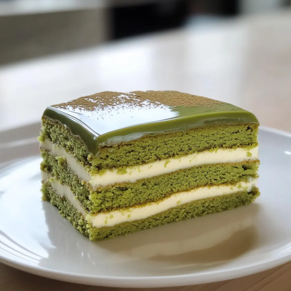 Beim Hineinlaufen in meine kleine Küche begrüßte mich bereits der verführerische Duft des frisch zubereiteten Mehlfreien Matcha-Kuchens. Dieses Rezept vereint auf wunderbare Weise die Vorteile eines glutenfreien Leckerbissens und die Freude am schnellen, unkomplizierten Backen. Mit seiner beeindruckend saftigen und zarten Textur ist dieser Kuchen nicht nur eine Augenweide, sondern auch eine wahre Geschmacksexplosion, die selbst Fast-Food-Anhänger in die Ecke drängt. Wenn du also auf der Suche nach einem einfachen, aber beeindruckenden Dessert bist, das sich perfekt für feierliche Anlässe oder einfach nur zum Naschen eignet, bist du hier genau richtig! Was meinst du, wirst du diesem köstlichen Kuchen eine Chance geben und ihn vielleicht sogar mit einer schokoladigen Ganache verfeinern? Warum ist dieser Kuchen so besonders? Einfachheit, Der mehlfreie Matcha-Kuchen ist nicht nur leicht zuzubereiten, sondern auch schnell gemacht – ideal für vielbeschäftigte Menschen! Wahre Geschmacksexplosion, Die harmonische Kombination aus erdigem Matcha und cremiger Füllung ergibt ein unvergleichliches Geschmackserlebnis, das deine Geschmacksknospen verwöhnt. Gesund und lecker, Glutenfrei und voller gesunder Inhaltsstoffe, dieser Kuchen ist die perfekte Wahl für bewusste Genussliebhaber. Vielseitige Variationen, Ob mit einer Matcha- oder einer schokoladigen Ganache, du hast die Freiheit, deinen persönlichen Lieblingsgeschmack auszuwählen! Lass dich inspirieren und probiere vielleicht auch das Honig Bbq Haehnchenstreifen Rezept oder die Corn Haehnchen Reis Bowl für eine vollständige Mahlzeit. Optische Attraktivität, Mit seiner leuchtenden grün und glänzenden Glasur ist dieser Kuchen nicht nur ein Genuss für den Gaumen, sondern auch für die Augen. Wirst du es wagen, deine Gäste mit diesem beeindruckenden Dessert zu begeistern? Mehlfreier Matcha-Kuchen Zutaten • Ein glutenfreies Backvergnügen! Für den Kuchen Eier (4) – sorgen für Struktur und Feuchtigkeit; können durch Flachs-Eier ersetzt werden, um eine vegane Version zu kreieren. Zucker (60g) – fügt Süße hinzu und unterstützt das Aufgehen des Kuchens; kann durch Kokoszucker ersetzt werden für eine gesündere Alternative. Matcha-Pulver (10g) – verleiht eine reiche grüne Farbe und besonderen Geschmack; achte auf hohe Qualität für das beste Geschmackserlebnis. Maisstärke (50g) – sorgt für Struktur und Leichtigkeit als glutenfreier Ersatz; Arrowroot-Stärke kann ebenfalls verwendet werden. Pflanzenöl (30g) – hält den Kuchen saftig; kann durch geschmolzenes Kokosöl ersetzt werden, um zusätzlichen Geschmack zu erhalten. Heiße Milch (40g) – verbessert die Feuchtigkeit und bindet die Zutaten; für eine vegane Alternative kann pflanzliche Milch verwendet werden. Vanille-Extrakt (1 TL) – bringt aromatische Tiefe; kann mit Mandel-Extrakt für eine andere Geschmacksnote substituiert werden. Für die Füllung Weiße Schokoladenstückchen (100g) – werden für die Cremefüllung verwendet; durch laktosefreie Schokoladenstückchen ersetzen für eine vegane Option. Kalte Schlagsahne (250g) – sorgt für eine reichhaltige Textur in der Füllung; Kokoscreme kann für eine milchfreie Version verwendet werden. Schlagsahne (100g, Zimmertemperatur) – erleichtert das Mischen mit anderen Zutaten. Für den Sirup und die Glasur Zucker für den Sirup (30g) – sorgt für Süße der Kuchenschichten; kann durch Honig oder Ahornsirup ersetzt werden, wenn gewünscht. Wasser (75ml) – zur Herstellung des Zuckersirups. Glukose oder Maissirup (20g) – verleiht der Glasur Glanz; Honig kann verwendet werden, obwohl die Textur variieren kann. Blüten-Gelatine-Blätter (5g) – hilft, die Glasur fest werden zu lassen; für eine vegetarische Option kann Agar-Agar verwendet werden. Dieser mehlfreie Matcha-Kuchen ist eine wahre Freude für die Geschmacksknospen und bietet sich perfekt als glutenfreies Dessert an! Schritt-für-Schritt-Anleitung für den Mehlfreien Matcha-Kuchen Step 1: Ofen vorheizen Heize deinen Ofen auf 170°C vor und lege eine Backform (26 x 38 cm) mit Backpapier aus. Fette das Papier leicht mit Öl oder Butter ein, um ein Ankleben des Kuchens zu vermeiden. Achte darauf, dass der Ofen die Temperatur erreicht hat, bevor du mit dem Mischen der Zutaten beginnst. Step 2: Matcha-Mischung herstellen Vermische 10g Matcha-Pulver in einer Schüssel mit 40g heißer Milch, bis sich das Pulver aufgelöst hat. Füge dann 30g Pflanzenöl hinzu und rühre die Mischung gut durch, bis sie homogen ist. Setze die Matcha-Mischung zur Seite, während du die Eier vorbereitest. Step 3: Eier trennen Trenne 4 Eier, indem du die Eier in zwei Schalen aufschlägst. Gib die Eigelbe in die Schüssel mit der Matcha-Mischung und füge 1 Teelöffel Vanille-Extrakt hinzu. Rühre alles gut durch, sodass eine glatte und einheitliche Masse entsteht. Das ist die Basis für deinen köstlichen mehlfreien Matcha-Kuchen. Step 4: Eiweiße schlagen Schlage die Eiweiße in einer sauberen, trockenen Schüssel schaumig. Füge nach und nach 60g Zucker hinzu, bis sich weiche Spitzen bilden. Sei vorsichtig, das Eiweiß nicht zu über schlagen, um eine fluffige Konsistenz zu bewahren. Mische anschließend 50g gesiebte Maisstärke vorsichtig unter die Eischneemasse. Step 5: Mischungen kombinieren Falte die geschlagenen Eiweiße vorsichtig unter die Matcha-Mischung, um die Luftigkeit zu erhalten. Verwende einen Gummispatel und mache vorsichtige, kreisende Bewegungen von unten nach oben, damit die Mischung nicht zusammenfällt. Dies ist der Schlüssel zu einem luftigen Kuchen. Step 6: Backen Gieße den Teig gleichmäßig in die vorbereitete Form. Backe den Kuchen im vorgeheizten Ofen für etwa 20 Minuten, bis ein Zahnstocher beim Einstechen sauber herauskommt. Lasse den Kuchen nach dem Backen ganz auskühlen, bevor du ihn aus der Form nimmst. Step 7: Füllung zubereiten Schmelze 100g weiße Schokoladenstückchen zusammen mit 100g Schlagsahne in einem Wasserbad oder 