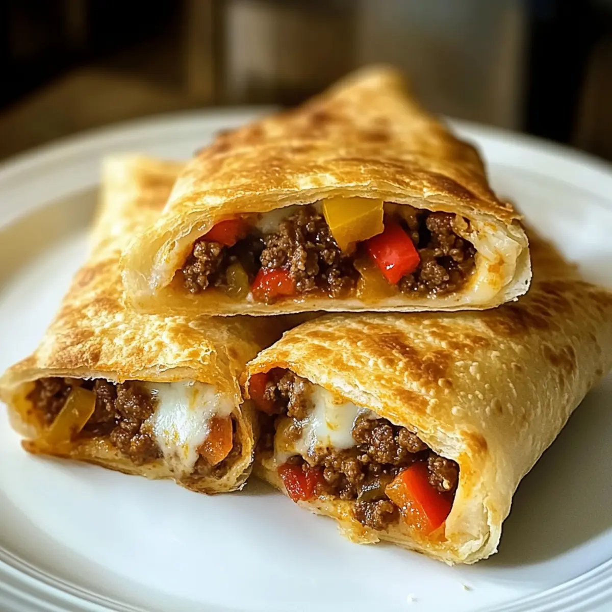 Eines Abends, als ich in der Küche stand und die Aromen von Gewürzen und frisch geschnittenem Gemüse in der Luft schwebten, hatte ich plötzlich Lust auf etwas Knuspriges und Würziges. So kamen mir die Mexikanischen Hot Pockets in den Sinn! Mit einer Füllung aus herzhaftem Hackfleisch, bunten Paprika und einer Vielfalt an Gewürzen sind diese kleinen Köstlichkeiten nicht nur ein Fest für den Gaumen, sondern auch unglaublich vielseitig. In nur 50 Minuten zauberst du dieses himmlische Comfort Food, das sich perfekt für gesellige Abende oder als schnelles Abendessen eignet. Du wirst begeistert sein, wie einfach sie zuzubereiten sind und wie stolz du sein wirst, deine eigenen Hot Pockets zu kreieren. Bist du bereit, deine Geschmacksknospen auf eine aufregende Reise zu schicken? Warum wirst du diese Hot Pockets lieben? Vielseitigkeit: Diese Mexikanischen Hot Pockets sind anpassbar und erlauben es dir, deine Lieblingsfüllungen zu verwenden—von Gemüse über würziges Fleisch bis hin zu vegetarischen Optionen. Einfachheit: Die Zubereitung ist kinderleicht und erfordert keine speziellen Kochkünste. In nur 50 Minuten kannst du ein herzhaftes Gericht servieren. Würzige Aromen: Mit einer perfekten Mischung aus Gewürzen und frischem Gemüse wird jedes Biss zu einem Fest der Geschmäcker. Perfekt für jede Gelegenheit: Ob für Familienabende oder ungezwungene Zusammenkünfte mit Freunden, diese Hot Pockets sind stets ein Hit. Leicht zu lagern: Bereite die Füllung im Voraus vor oder friere die Hot Pockets ein, um sie später wunderbar knusprig zu genießen. In Kombination mit cremigem Guacamole oder tangy Salsa wird jedes Essen zum festlichen Erlebnis! Mexikanische Hot Pockets Zutaten Wichtiger Hinweis: Diese Zutaten ermöglichen es dir, köstliche Mexikanische Hot Pockets ganz nach deinem Geschmack zu kreieren. Für die Füllung Hackfleisch – gibt den Hot Pockets ihren herzhaften Geschmack; ersetze es durch Hackfleisch aus Truthahn oder pflanzliches Protein für eine leichtere Variante. Würfelige rote Zwiebel – bringt Süße und Knusprigkeit; wähle frische Zwiebeln für das beste Aroma. Würfelige grüne Paprika – fügt eine milde Bitterkeit hinzu und balanciert die Füllung. Würfelige rote Paprika – sorgt für zusätzliche Süße und lebendige Farbe. Tomatenmark – intensiviert den Geschmack und sorgt für eine cremige Textur; kann durch frisch gewürfelte Tomaten ersetzt werden. Gemahlener Kreuzkümmel – verleiht die erdigen Untertöne, die für die mexikanische Küche unverzichtbar sind. Paprika – bringt eine rauchige Note; verwende geräucherte Paprika für noch mehr Geschmack. Chiliflocken – fügt eine anpassbare Schärfe hinzu; kann für eine mildere Version weggelassen werden. Kocher Salz – verbessert die Aromen; passe die Menge nach deinen diätetischen Bedürfnissen an. Ausgewaschene Kidneybohnen – sorgt für Ballaststoffe; kann durch schwarze Bohnen ersetzt werden. Geriebener Cheddar-Käse – schmilzt zu einer cremigen Textur; ersetze ihn durch Pepper Jack für etwas Schärfe. Burrito-Größe Weizentortillas – dient als stabiler Behälter für die Füllung; nutze Maistortillas für glutenfreie Optionen. Pflanzenöl oder Rapsöl – verhindert das Ankleben und sorgt für eine goldene Kruste; Butter kann für zusätzlichen Reichtum verwendet werden. Für die Sauce Zwiebel-Scheibe – bringt Geschmack in die Cremesauce. Jalapeño (optional) – fügt eine optionale scharfe Note hinzu; weglassen für eine mildere Sauce. Pfefferkörner – sorgen für eine subtile Wärme in der Sauce; zerstoße sie für eine intensivere Geschmacksrichtung. Weißweinessig – hebt die Aromen in der Sauce; kann durch Zitronensaft ersetzt werden. Weißwein oder Brühe – sorgt für Tiefe; auch alkohol- und fleischfreie Optionen sind möglich. Schlagsahne – verleiht der Sauce eine reiche, cremige Konsistenz; nutze pflanzliche Alternativen für eine leichtere Variante. Geriebener amerikanischer Käse – sorgt für Cremigkeit in der Sauce; kann durch milchfreien Käse ersetzt werden. Schritt-für-Schritt-Anleitung für Köstliche Mexikanische Hot Pockets Step 1: Füllung anbraten Erhitze eine große Pfanne bei mittlerer bis hoher Hitze und füge das Hackfleisch hinzu. Brate es zusammen mit der gewürfelten roten Zwiebel sowie den grünen und roten Paprikas für 5-10 Minuten an, bis das Fleisch schön gebräunt ist. Rühre das Tomatenmark, den Kreuzkümmel, die Paprika, die Chiliflocken und das Kocher Salz ein, um eine aromatische Füllung für deine Mexikanischen Hot Pockets zu kreieren. Step 2: Kombinieren und abkühlen lassen Nimm die Pfanne vom Herd und füge die abgespülten Kidneybohnen sowie den geriebenen Cheddar-Käse hinzu. Mische alles gut durch und lasse die Füllung für etwa 10 Minuten abkühlen, damit sie nicht in den Torillas dampft und sie weich macht. Dies ist der perfekte Moment, um die Aromen in deinem Gericht zu intensivieren. Step 3: Cremesauce vorbereiten Erhitze in einem kleinen Topf etwas Öl bei mittlerer Hitze und füge die Zwiebel-Scheibe, den Jalapeño (falls verwendet) und die Pfefferkörner hinzu. Lasse die Mischung unter gelegentlichem Rühren anbraten, bis die Zwiebeln glasig sind. Danach gib den Weißweinessig und den Weißwein oder die Brühe dazu und lasse die Flüssigkeit um die Hälfte reduzieren, bevor du die Schlagsahne einrührst und den Topf vom Herd nimmst. Step 4: Käse schmelzen Seihe die heiße Cremesauce über die geriebenen Käsesorten in einer Schüssel. Rühre alles kräftig um, bis die Käsesorten vollständig geschmolzen und die Sauce cremig und glatt ist. Diese köstliche Käsesauce wird eine wunderbare Ergänzung zu deinen Mexikanischen Hot Pockets sein und dem Ganzen eine leckere Note verleihen. Step 5: Tortillas füllen Nimm die abgekühlte Füllung und lege eine großzügige Menge in die Mitte einer Burrito-Größe Weizentortilla. Rolle die Tortilla sorgfältig auf, indem du die Seiten leicht einklappst, um die Füllung
