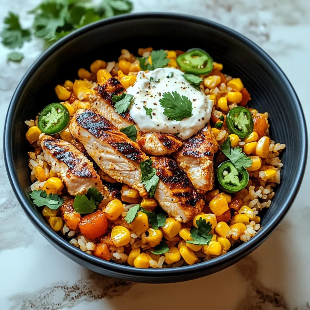 Wenn ich an die Straßen Mexikos denke, überkommt mich sofort die Vorstellung von bunten Märkten und köstlichen Düften, die durch die Luft schweben. In diesem Blogbeitrag möchte ich euch ein Gericht vorstellen, das genau diese Aromen in eure Küche bringt: die Mexikanische Straßenmais-Hühnchen-Schüssel. Es ist nicht nur leicht zuzubereiten, ideal für stressige Wochentage, sondern lässt sich auch ganz nach euren Vorlieben anpassen. Ihr habt die Freiheit, den Schärfegrad zu verändern und die Zutaten auszutauschen, sodass jede Schüssel ein individuelles Geschmackserlebnis wird. Diese Kombination aus saftigem Hühnchen, cremigem Mais und einer spritzigen Limettennote wird euch begeistern! Seid ihr bereit, das Abenteuer in eurer Küche zu beginnen? Warum lieben alle diese Schüssel? Einfachheit: Diese Rezeptur ist extrem unkompliziert und benötigt nur grundlegende Kochfertigkeiten, ideal für Küche-Neulinge oder erfahrene Hobbyköche. Vielseitigkeit: Ob ihr scharfe Jalapeños oder milde Komponenten bevorzugt, die Anpassungsmöglichkeiten sind grenzenlos – jeder kann seine persönliche Note hinzufügen! Aromenvielfalt: Die Kombination aus gegrilltem Hühnchen, cremigem Mais und zesty Limetten bringt ein wahres Geschmackserlebnis, das an die lebendigen Straßen Mexikos erinnert. Gesund und nahrhaft: Vollgepackt mit frischen Zutaten und gesunden Fetten, bietet dieses Gericht eine nahrhafte Alternative zu schnellem Essen. Crowd-Pleaser: Perfekt für ein entspanntes Abendessen mit Freunden oder Familie – jeder wird nach mehr verlangen! Für mehr inspirierende Rezeptideen könnt ihr euch auch unser Guacamole-Rezept anschauen, das hervorragend dazu passt! Mexikanische Straßenmais-Hühnchen-Schüssel Zutaten • Für dieses Rezept gibt es verschiedene Anpassungsmöglichkeiten, die den Genuss noch erhöhen! Für das Hühnchen Hühnchenbrust ohne Knochen und Haut – Der Hauptproteinlieferant, der schnell gar wird und eine saftige Basis bietet. Olivenöl – Zum Braten des Hühnchens, sorgt für eine goldene Kruste. Chili-Pulver – Fügt Wärme hinzu; passt die Menge nach eurem bevorzugten Schärfegrad an. Paprika – Für mehr Farbe und Geschmack; geräucherte Paprika für ein rauchiges Aroma verwenden. Knoblauchpulver & Zwiebelpulver – Verleihen einen herzhaften Geschmack; frischer Knoblauch und Zwiebeln sind ebenfalls eine leckere Option. Kreuzkümmel – Bringt erdige Töne ins Gericht; optional, aber für Authentizität empfehlenswert. Salz & Pfeffer – Grundlegende Gewürze zur Geschmacksverstärkung. Für den Mais Maiskörner – Frisch oder gefroren, für Cremigkeit und Süße; frischer Mais bietet die beste Textur. Butter – Zum Sautieren des Maises für zusätzlichen Reichtum. Für die Sauce Mayonnaise – Sorgt für eine cremige Sauce; griechischer Joghurt ist ein leichterer Ersatz. Sour Cream – Verleiht eine säuerliche Note; einfacher Joghurt kann ebenfalls verwendet werden. Limettensaft – Bringt Frische und Säure; frischer Limettensaft ist unverzichtbar. Für die Garnitur Cotija-Käse – Für eine salzige, bröckelige Textur; Feta oder Parmesan sind gute Alternativen. Frischer Koriander – Fügt Frische hinzu; kann weggelassen werden, wenn ihr ihn nicht mögt. Jalapeño – Für Schärfe; nach persönlichem Geschmack anpassen. Rote Zwiebel – Gibt einen knackigen, süßen Kontrast; grüne Zwiebeln sind eine tolle Alternative. Limettenschnitze – Zum Servieren und für zusätzlichen Limettengeschmack. Für die Basis Gekochter Reis – Die Grundlage für die Schüssel; kann durch Quinoa oder Blumenkohlreis für eine kohlenhydratarme Variante ersetzt werden. Schritt-für-Schritt-Anleitung für die Mexikanische Straßenmais-Hühnchen-Schüssel Step 1: Öl erhitzen Erhitze eine große Pfanne bei mittlerer Hitze und gib etwa 2 Esslöffel Olivenöl hinein. Warte etwa 1-2 Minuten, bis das Öl leicht zu dampfen beginnt und sich gleichmäßig verteilt. Durch diese Vorbereitung wird das Hühnchen gleichmäßig gar und erhält eine schöne goldene Kruste. Step 2: Hühnchen würzen Die Hühnchenbrust sollte gut gewürzt werden, um den vollen Geschmack der Mexikanischen Straßenmais-Hühnchen-Schüssel zu entfalten. Reibe die Hühnchenbrust gleichmäßig mit Chili-Pulver, Paprika, Knoblauchpulver, Zwiebelpulver, Kreuzkümmel, Salz und Pfeffer ein und achte darauf, dass alle Gewürze gut haften. Step 3: Hühnchen kochen Lege die gewürzte Hühnchenbrust vorsichtig in die heiße Pfanne. Brate sie für etwa 6-7 Minuten auf jeder Seite an, bis sie eine goldbraune Farbe annimmt und die Kerntemperatur von 74°C erreicht. Achte darauf, dass sie nicht anbrennen und wende sie vorsichtig mit einer Zange. Step 4: Hühnchen ruhen lassen Nehme das Hühnchen aus der Pfanne und lege es auf ein Schneidebrett. Lass es für 5 Minuten ruhen, damit der Saft im Fleisch bleibt und es zart bleibt. In der Zwischenzeit kannst du dich um den nächsten Schritt kümmern. Step 5: Mais vorbereiten In der gleichen Pfanne, in der du das Hühnchen gebraten hast, füge 1-2 Esslöffel Butter hinzu und lasse sie bei mittlerer Hitze schmelzen. Gib die Maiskörner dazu und brate sie 5-7 Minuten, bis sie leicht angebraten sind und eine schöne goldene Farbe zeigen. Dies wird dem Gericht eine köstliche Süße verleihen. Step 6: Sauce zubereiten In einer Schüssel vermischst du 3 Esslöffel Mayonnaise, 2 Esslöffel Sour Cream und 1 Esslöffel Limettensaft. Füge 50 Gramm zerbröckelten Cotija-Käse hinzu und verrühre alles gut, bis eine cremige und einheitliche Sauce entsteht. Diese Sauce verleiht der Mexikanischen Straßenmais-Hühnchen-Schüssel eine herrliche Frische. Step 7: Hühnchen schneiden Nachdem das Hühnchen geruht hat, schneide es in Streifen oder mundgerechte Stücke. Dadurch kann es leicht in der Schüssel verteilt werden und harmoniert perfekt mit den anderen Zutaten der Mexikanischen Straßenmais-Hühnchen-Schüssel. Step 8: Schüssel aufbauen Nehme eine große Schüssel und füge zuerst di