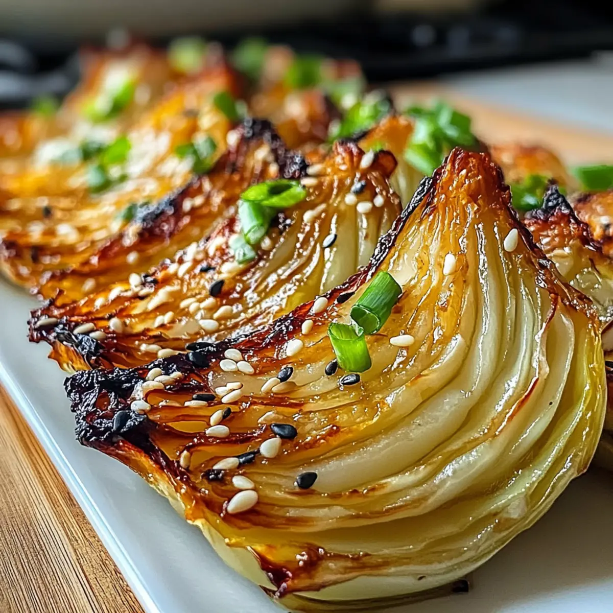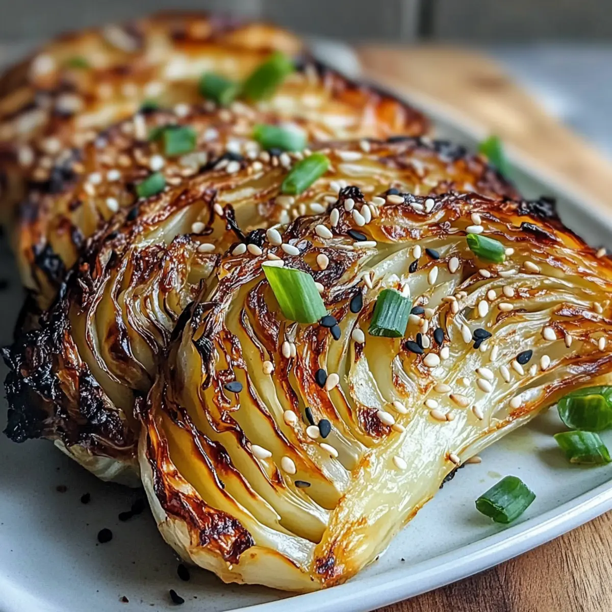 Wenn ich an die Vorzüge von geröstetem Gemüse denke, landet der Gedanken häufig beim Blumenkohl oder der Karotte. Doch wie wäre es, wenn ich Ihnen die Miso Butter Röstkohlkeile vorstelle? Dieses einfache, aber unglaublich leckere Rezept verwandelt alltägliches Gemüse in ein umami-geladenes Geschmackserlebnis, das selbst die größten Skeptiker begeistert. In nur 40 Minuten zaubern Sie eine gesunde Beilage, die herzhaft und dennoch leicht ist, perfekt als Beilage zu Ihren Lieblingsgerichten oder auch als Hauptgericht für sich allein. Die Kombination aus knackigem, geröstetem Kohl, umhüllt von einer würzigen Miso-Butter, lässt nicht nur die Geschmacksknospen tanzen, sondern auch die Herzen höher schlagen. Neugierig, wie Sie dieses unkomplizierte Highlight in Ihrer Küche umsetzen können? Warum sind Miso Butter Röstkohlkeile so besonders? Einfache Zubereitung: Mit nur wenigen Schritten und grundlegenden Kochfähigkeiten verwandeln Sie einfachen Kohl in einen wahren Genuss. Herzhafter Umami-Geschmack: Die Kombination aus Miso und Butter verleiht den Röstkohlkeilen eine Geschmackstiefe, die Sie lieben werden. Vielseitig einsetzbar: Ideal als Beilage zu gegrilltem Fisch oder als Hauptgericht. Diese Röstkohlkeile passen zu jeder Mahlzeit! Gesunde Wahl: Vollgepackt mit Nährstoffen, sind sie eine großartige, gesunde Alternative zu Fast Food; genießen Sie sie ohne schlechtes Gewissen. Veganer Fünf-Sterne-Genuss: Mit einer einfachen Anpassung durch vegane Butter ist dieses Rezept für jeden geeignet – sogar für Veganer. Nutzen Sie auch eine gelegentliche Erhöhung mit Protein Pudding Schokoladengenuss für Fitnessfans für ein rundum sättigendes Erlebnis! Miso Butter Röstkohlkeile Zutaten Für die Röstkohlkeile: • Kohl – Die Hauptzutat, die Struktur und ein herzhaftes Mundgefühl bietet; verwende rote Kohl für eine lebendige Farbe. • Ungesalzene Butter – Fügt Reichtum hinzu und hilft, die Miso-Butter zu verbinden; ersetzen Sie sie durch vegane Butter für eine pflanzliche Variante. • Weiße Miso-Paste – Bietet einen milden, leicht süßen Geschmack, der für das Umami-Profil unerlässlich ist. Alternativ kann rote Miso verwendet werden, reduziere jedoch die Menge auf 1,5 Esslöffel. • Honig oder Ahornsirup – Gibt Süße; Ahornsirup ist ideal für die vegane Option. • Reisessig – Fügt Säure hinzu, um die Aromen auszubalancieren. • Geröstetes Sesamöl – Verleiht ein nussiges Aroma und Tiefe; wichtig für das Gesamtgeschmackserlebnis. • Knoblauch – Frische und Würze; fein gerieben für gleichmäßige Verteilung. • Geröstete Sesamsamen – Zum Garnieren, für zusätzlichen Crunch und visuelle Attraktivität. • Frühlingszwiebeln – Fügt einen frischen und milden Zwiebelgeschmack hinzu; in Ringe geschnitten für die Garnitur. • Frisch gemahlener schwarzer Pfeffer – Verstärkt den Gesamtgeschmack; nach Geschmack hinzufügen. Schritt-für-Schritt-Anleitung für Miso Butter Röstkohlkeile Schritt 1: Ofen vorheizen Heizen Sie Ihren Ofen auf 220°C vor und legen Sie ein Backblech mit Backpapier aus. Dadurch erhalten die Miso Butter Röstkohlkeile eine knusprige Textur und verhindern, dass sie anhaften. Stellen Sie sicher, dass der Ofen vollständig vorgeheizt ist, bevor Sie die Röstkohlkeile hineinlegen. Schritt 2: Kohl vorbereiten Schneiden Sie den Kohl in 8 Keile und lassen Sie den Kern dabei intakt, um die Schichten zusammenzuhalten. Legen Sie die Kohlkeile gleichmäßig auf das Backblech. Achten Sie darauf, dass sie nicht übereinander liegen, damit sie gleichmäßig rösten können und die Kanten schön knusprig werden. Schritt 3: Miso-Butter herstellen In einer Schüssel die weiche Butter, weiße Miso-Paste, Honig oder Ahornsirup, Reisessig, geröstetes Sesamöl und den fein geriebenen Knoblauch gut vermischen, bis eine glatte Paste entsteht. Diese Mischung verleiht den Miso Butter Röstkohlkeilen eine köstliche Umami-Note und sorgt für den perfekten Geschmack. Schritt 4: Kohlkeile bestreichen Verwenden Sie einen Backpinsel, um großzügig die Miso-Butter-Mischung auf allen Seiten der Kohlkeile aufzutragen. Achten Sie darauf, jede Ecke zu erreichen, damit der Geschmack allseitig an den Röstkohlkeilen haftet und sie beim Rösten schön aromatisch werden. Schritt 5: Kohl rösten Backen Sie die Kohlkeile für 25-30 Minuten im vorgeheizten Ofen, und drehen Sie sie nach der Hälfte der Zeit um. Sie wissen, dass sie fertig sind, wenn sie goldbraun und karamelisiert sind. Achten Sie auf eine schöne Bräunung an den Rändern, um den besten Geschmack zu erzielen. Schritt 6: Fertigstellen und garnieren Sobald die Miso Butter Röstkohlkeile fertig sind, nehmen Sie sie aus dem Ofen und legen Sie sie auf einen Servierteller. Bestreuen Sie die Keile mit gerösteten Sesamsamen, geschnittenen Frühlingszwiebeln und frisch gemahlenem schwarzen Pfeffer, um zusätzliche Aromen und eine ansprechende Präsentation zu erzielen. Schritt 7: Servieren Servieren Sie die Miso Butter Röstkohlkeile heiß als Beilage oder leichtes Hauptgericht. Diese köstlichen Keile sind perfekt als Ergänzung zu Ihren Lieblingsgerichten und bieten ein umami-geladenes Geschmackserlebnis, das Sie und Ihre Gäste begeistern wird. Miso Butter Röstkohlkeile Variationen Lassen Sie Ihrer Kreativität freien Lauf und passen Sie das Rezept ganz nach Ihrem Geschmack an! Veganer Genuss: Ersetzen Sie die ungesalzene Butter durch vegane Butter für eine pflanzliche Variante, die ebenso lecker ist. Farbige Vielfalt: Verwenden Sie roten Kohl anstelle von grünem, um nicht nur das Auge, sondern auch den Gaumen zu erfreuen. Der tiefere Geschmack bringt ein besonderes Highlight. Würzige Note: Fügen Sie einen Teelöffel Chili-Flocken hinzu, um dem Gericht eine angenehme Schärfe zu verleihen. Dies gibt dem umami-reichen Geschmack einen tollen Kick. Zitrusfrische: Ein Spritzer frischer Limettensaft vor dem Servieren bringt eine belebende Säure ein und hebt die Aromen wunderbar hervor