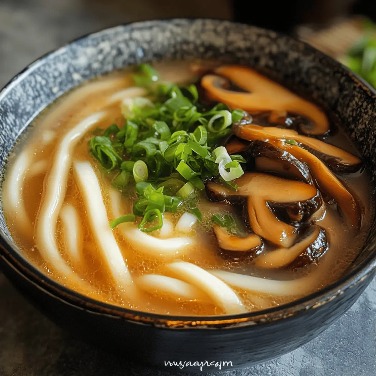Genieße eine köstliche Miso Udon Suppe, die mit umami-reichen Teriyaki-Pilzen gefüllt ist und in nur 30 Minuten zubereitet werden kann.