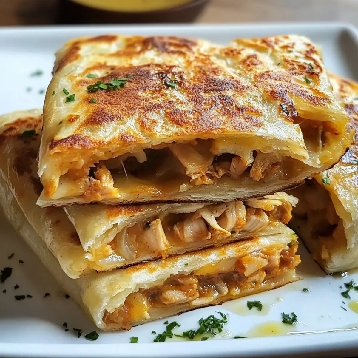 Es gibt diese besonderen Momente in der Küche, in denen man einfach weiß, dass etwas Großartiges in der Luft liegt. Wenn der Duft frisch gebackener Msmen gefüllt mit Hühnchen durch das Haus zieht, spürt man sofort die Vorfreude auf ein herzhaftes, gemütliches Essen. Diese marokkanischen Fladenbrote sind nicht nur köstlich und knusprig, sie sind auch unglaublich vielseitig – perfekt für ein schnelles Mittagessen oder als Highlight bei deinem nächsten Dinner. Mit ihrer geschmeidigen Textur und dem warmen, würzigen Hühnchenfüllung bringen diese kleinen Köstlichkeiten nicht nur Komfort auf den Tisch, sondern sind auch ein Hit bei jedem Anlass. Bist du bereit, eine süchtig machende Geschmacksexplosion zu erleben? Lass uns loslegen! Warum wirst du dieses Rezept lieben? Einfachheit pur: Die Zubereitung ist unkompliziert und benötigt nur grundlegende Kochfähigkeiten. Vielseitige Füllung: Du kannst die Füllung nach deinem Geschmack anpassen, sei es mit Gemüse, Käse oder einer anderen Proteinquelle. Herzhafte Aromen: Die Kombination aus Hühnchen, Gewürzen und geschmolzenem Käse bietet ein fantastisches Geschmackserlebnis, das jeden begeistert. Perfekte Textur: Die knusprige Außenschicht und die saftige Füllung erzeugen eine unwiderstehliche Kombination. Ein tolles Essen für jeden Anlass: Ob beim Familienessen oder für Gäste, die Msmen gefüllt mit Hühnchen sind der Hit! Probiere sie unbedingt mit einem frischen Salat oder einer scharfen Soße. Msmen gefüllt mit Hühnchen Zutaten • Für den Teig Allzweckmehl – sorgt für die Struktur und bekommt eine schöne Kaubarkeit; ersetze es gegen Vollkornmehl für einen herzhafteren Geschmack. Backpulver – hilft dem Teig beim Aufgehen; keine Ersatzmöglichkeiten empfohlen. Salz – verstärkt den Geschmack; verwende Meersalz für eine angenehme Note. Honig – fügt eine süße Note zum Teig hinzu; ersatzweise kannst du Agavensirup verwenden oder es ganz weglassen. Wasser – hydratisiert den Teig; warmes Wasser kann die Aktivierung des Hefes unterstützen. Sonnenblumenöl – sorgt für die Fluffigkeit des Teigs; kann durch Olivenöl ersetzt werden für zusätzlichen Geschmack. Olivenöl – ideal zum Anbraten; jede leichte Speiseöl kann ebenfalls verwendet werden. • Für die Füllung Gelbe Zwiebel – bringt Süße und Tiefe; rote Zwiebel sorgt für einen schärferen Geschmack. Hähnchenschenkel – saftige und geschmacksvolle Füllung; Hähnchenbrust kann verwendet werden, benötigt aber vorsichtigeres Kochen, um Trockenheit zu vermeiden. Ras el Hanout – eine arabische Gewürzmischung, die Wärme verleiht; ersetze es mit einer Mischung aus Kreuzkümmel und Zimt, wenn nicht erhältlich. Kurkuma – sorgt für Farbe und Erdigkeit; kann weggelassen werden, wenn gewünscht. Cayenne – bringt Schärfe; nach Belieben anpassen. Knoblauchpulver – intensiviert Aroma und Geschmack; frischer Knoblauch kann für einen kräftigeren Geschmack ersetzt werden. Getrocknete Petersilie – frischt die Füllung auf; kann weggelassen werden, wenn nicht verfügbar. Käse (Gouda, Cheddar oder Mozzarella) – schmilzt und bindet die Füllung; nutze jeden schmelzbaren Käse, der zur Hand ist. Schritt-für-Schritt-Anleitung für Msmen gefüllt mit Hühnchen Step 1: Teig vorbereiten Mische das Allzweckmehl, Backpulver und Salz in einer großen Schüssel. Mache eine Mulde in der Mitte und füge den Honig sowie das warme Wasser hinzu. Knete den Teig für 10-12 Minuten, bis er glatt und geschmeidig ist. Integriere das Sonnenblumenöl und knete kurz weiter. Dann den Teig abdecken und 30 Minuten ruhen lassen, damit er sich entspannt und aufgehen kann. Step 2: Füllung zubereiten Erhitze etwas Olivenöl in einer Pfanne bei mittlerer Hitze. Füge die fein gehackte Zwiebel hinzu und brate sie 3-4 Minuten lang, bis sie weich und durchsichtig ist. Gib dann die Hähnchenschenkel zusammen mit Ras el Hanout, Kurkuma, Cayenne und Knoblauchpulver in die Pfanne. Koche das Hähnchen 6-7 Minuten lang, bis es gar ist, und lasse es danach vollständig abkühlen. Step 3: Teig formen Nachdem der Teig geruht hat, teile ihn in 9 gleich große Stücke. Forme jedes Stück zu einer kleinen Kugel und lege sie auf eine leicht geölte Oberfläche. Flache jede Kugel mit deinen Händen oder einem Nudelholz sanft ab, um eine runde Form zu schaffen. Lasse die flachen Teigstücke für weitere 30 Minuten ruhen, damit sie elastisch sind. Step 4: Füllen und Falten Dehne jede Teigscheibe vorsichtig zu einem rechteckigen Stück und lege eine Handvoll des abgekühlten Hähnchenfüllung sowie etwas Käse in die Mitte. Klappe die Seiten des Teigs über die Füllung und forme kleine Pakete. Achte darauf, dass die Füllung gut umschlossen ist, damit beim Braten nichts herausläuft. Step 5: Msmen braten Erhitze eine große Pfanne bei mittlerer Hitze und füge etwas Olivenöl hinzu. Lege die gefüllten Msmen hinein und brate sie 5-7 Minuten auf jeder Seite, bis sie goldbraun und knusprig sind. Überprüfe während des Bratens regelmäßig die Unterseite, damit sie nicht anbrennen. Die Msmen gefüllt mit Hühnchen sind nun bereit zum Servieren! Was passt zu Msmen gefüllt mit Hühnchen? Es gibt nichts Besseres, als ein vollwertiges, geschmackvolles Mahl zu genießen, das die Sinne verzaubert. Cremiger Joghurt Dip: Ein erfrischender Joghurt Dip mit Kräutern wird die würzige Füllung wunderbar ausbalancieren. Frischer Gurkensalat: Knackige Gurkenstücke und Tomaten in einer leichten Vinaigrette bieten einen erfrischenden Crunch und Farben. Scharfe Harissa Soße: Diese pikante Soße passt perfekt zu den herzhaften Msmen, um einen würzigen Kick zu verleihen. Sesam- oder Koriandersamen: Ein wenig gerösteter Sesam oder frischer Koriander oben drauf bringt zusätzlichen Crunch und Frische. Leichtes Limonenwasser: Ein spritziges Limonenwasser erfrischt den Gaumen und ergänzt die Geschmäcker harmonisch. Geröstetes Gemüse: Bunte, geröstete Gemüsesorten sorgen für eine köstliche, 