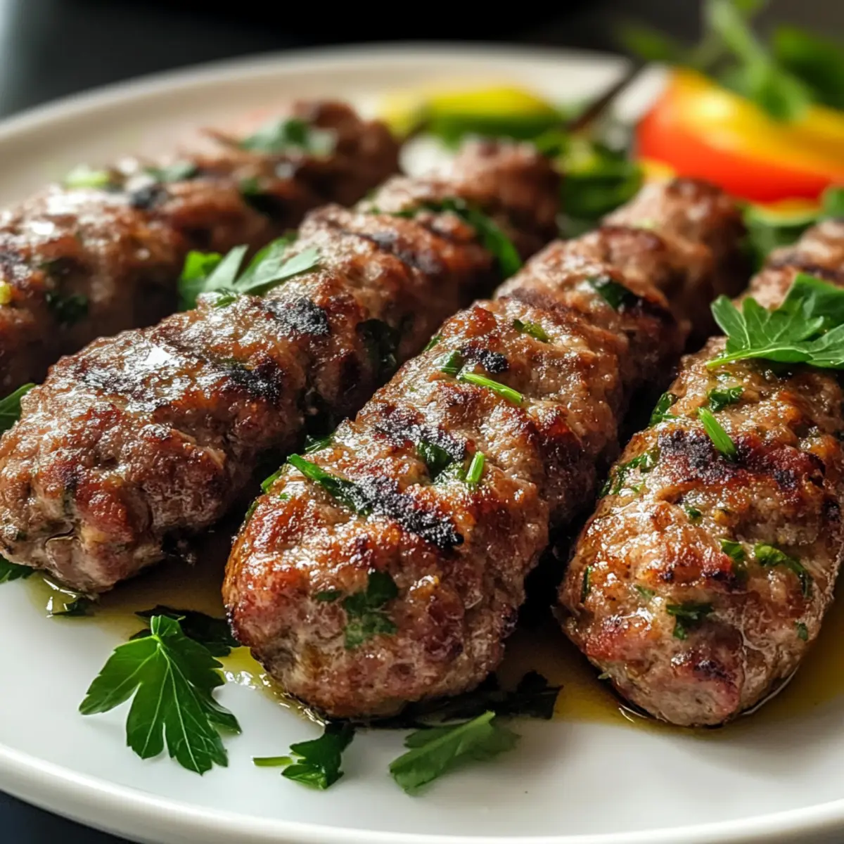 Sobald der Grill vorheizt und die köstlichen Aromen der Gewürze durch meine Küche ziehen, kann ich es kaum erwarten, meine Nahost Kofta-Spieße zuzubereiten. Diese saftigen Kebabs, die perfekt für den Sommer geeignet sind, vereinen ordentlich gewürztes Hackfleisch mit frischen Kräutern und einem Hauch von exotischen Gewürzen. Sie sind nicht nur schnell und einfach in der Zubereitung, sondern auch unglaublich vielseitig – ideal für ein gemütliches Abendessen oder eine feierliche Zusammenkunft. Und das Beste daran? Egal ob du Rindfleisch, Lamm oder sogar eine leichtere Variante mit Pute bevorzugst, diese Kofta-Spieße lassen sich ganz nach deinem Geschmack anpassen. Bereit, deine Familie und Freunde mit diesen köstlichen Leckereien zu beeindrucken? Lass uns gemeinsam in die Zubereitung eintauchen! Warum werden diese Kofta-Spieße Ihr Favorit? Einfachheit, die begeistert: Diese nahöstlichen Kofta-Spieße sind im Handumdrehen zubereitet und erfordern kein Küchenprofi-Geschick. Vielseitigkeit, wie man sie liebt: Ob beim Grillen im Sommer oder in der Pfanne in der kalten Jahreszeit, diese Spieße passen sich jeder Gelegenheit an. Würziges Aroma, das den Gaumen verwöhnt: Die Kombination aus frischen Kräutern und kräftigen Gewürzen sorgt für ein unvergleichliches Geschmackserlebnis. Gesund und nährstoffreich: Mit nur ca. 290 Kalorien pro Portion sind sie eine köstliche und gesunde Wahl. Verwandle deine Mahlzeiten mit diesen gesunden Beilagen in wahre Festtagsgerichte! Familienfreundlich, der Hingucker auf jedem Tisch: Diese Kofta-Spieße werden sicherlich Diskussionen über das nächste Grillfest auslösen. Zutaten für Nahost Kofta-Spieße • Für die Spieße: Hackfleisch (Rind oder Lamm) – Hauptbestandteil, der für saftige und aromatische Spieße sorgt; für eine kalorienärmere Variante kann auch Geflügel verwendet werden. Zwiebel – Bringt Süße und Feuchtigkeit; am besten fein gerieben verwenden. Knoblauch – Verleiht Tiefe und Geschmack; unbedingt nicht weglassen! Frische Petersilie – Frische und Farbe; kann durch Koriander ersetzt werden, um einen anderen Geschmack zu erzielen. Gemahlener Kreuzkümmel – Ein unentbehrliches Gewürz, das die Komplexität verstärkt. Gemahlener Koriander – Fügt einen zitrusartigen Geschmack hinzu, der herzliche Aromen verstärkt. Zimt oder Piment – Einfach köstlich und sorgt für eine subtile Wärme; optional, aber sehr empfehlenswert! Paprika – Gibt eine schöne Farbe und ein süß-rauchiges Profil. Salz und Pfeffer – Unverzichtbar für die Geschmacksverstärkung. Olivenöl (zum Grillen) – Verhindert das Ankleben und fördert eine schöne Bräunung. • Optional für die Beilagen: Zitronensaft – Verleiht den Spießen einen erfrischenden Kick. Tahini oder Tzatziki – Perfekte Saucen, um noch mehr Geschmack hinzuzufügen! Verwandele deine Gerichte mit diesen köstlichen Nahost Kofta-Spießen in wahre Gaumenfreuden! Schritt-für-Schritt-Anleitungen für Saftige Nahost Kofta-Spieße Step 1: Vorbereitung Heize deinen Grill oder eine Pfanne auf mittelhohe Temperatur vor, bis sie heiß ist. Wenn du einen Grill verwendest, solltest du ihn leicht mit Olivenöl einpinseln, um ein Ankleben der Nahost Kofta-Spieße zu verhindern. Dies dauert etwa 10 Minuten. Eine heiße Pfanne sorgt für eine schöne Bräunung und Struktur der Spieße. Step 2: Mischung In einer großen Schüssel gib das Hackfleisch (Rind oder Lamm) hinzu und füge die fein geriebene Zwiebel, den zerkleinerten Knoblauch, die frische Petersilie sowie die Gewürze – gemahlener Kreuzkümmel, gemahlener Koriander, Zimt (falls verwendet), Paprika, Salz und Pfeffer – hinzu. Mische alles vorsichtig mit den Händen, bis sich die Zutaten gut verbinden, aber vermeide es, die Mischung zu überarbeiten, damit die Kofta-Spieße zart bleiben. Step 3: Formen Teile die Fleischmasse in gleich große Portionen, etwa von der Größe eines großen Eifels. Wickle jede Portion um einen Holzspieß, sodass sie die Form eines ovalen Spießes annimmt. Falls du keine Spieße verwenden möchtest, forme einfach flache Patties. Achte darauf, die Mischung gleichmäßig zu verteilen, um ein gleichmäßiges Garen zu gewährleisten. Step 4: Kochen Lege die geformten Kofta-Spieße sorgfältig auf den Grill oder in die vorgeheizte Pfanne. Grille oder brate sie für etwa 8-10 Minuten, bis sie goldbraun sind und eine Innentemperatur von 71 °C (160 °F) erreicht haben. Wende die Spieße schonend, um ein Zerteilen zu vermeiden, und achte darauf, dass sie gleichmäßig gegart werden. Step 5: Ausruhen Nehme die Nahost Kofta-Spieße vom Grill oder aus der Pfanne und lasse sie für ein paar Minuten ruhen. Dies ermöglicht das Entweichen von Dampf und sorgt für eine saftigere Konsistenz. Zum Schluss kannst du einen Spritzer frischen Zitronensaft über die Spieße geben, um ihnen eine erfrischende Note zu verleihen. Bereite deine Nahost Kofta-Spieße im Voraus vor! Diese saftigen Nahost Kofta-Spieße sind perfekt für die Vorbereitung im Voraus, um dir an geschäftigen Tagen Zeit zu sparen! Du kannst die Fleischmasse bis 24 Stunden im Voraus zubereiten und im Kühlschrank aufbewahren. Einfach das Hackfleisch mit den Gewürzen und anderen Zutaten vermischen, zu Spießen formen und luftdicht verpacken. Achte darauf, die Spieße nicht zu überarbeiten, damit sie zart bleiben. Wenn du bereit bist zu servieren, grille sie einfach für 8-10 Minuten oder bis sie die richtige Innentemperatur erreichen. So hast du in kürzester Zeit köstliche Kofta-Spieße, die genauso lecker sind wie frisch zubereitet! Variationen & Alternativen für Nahost Kofta-Spieße Entdecke die vielen Möglichkeiten, diese köstlichen Kofta-Spieße nach deinem Geschmack zu gestalten! Fleischalternativen: Ersetze Rind- oder Lammhack durch Puten- oder Hühnchenhack für eine leichtere Variante. Jeder Biss bleibt saftig und köstlich. Gewürzvielfalt: Experimentiere mit verschiedenen Gewürzen wie geräuchertem Paprika oder einem H