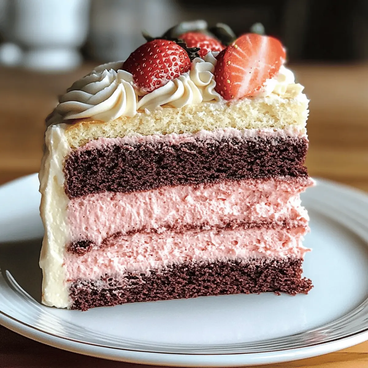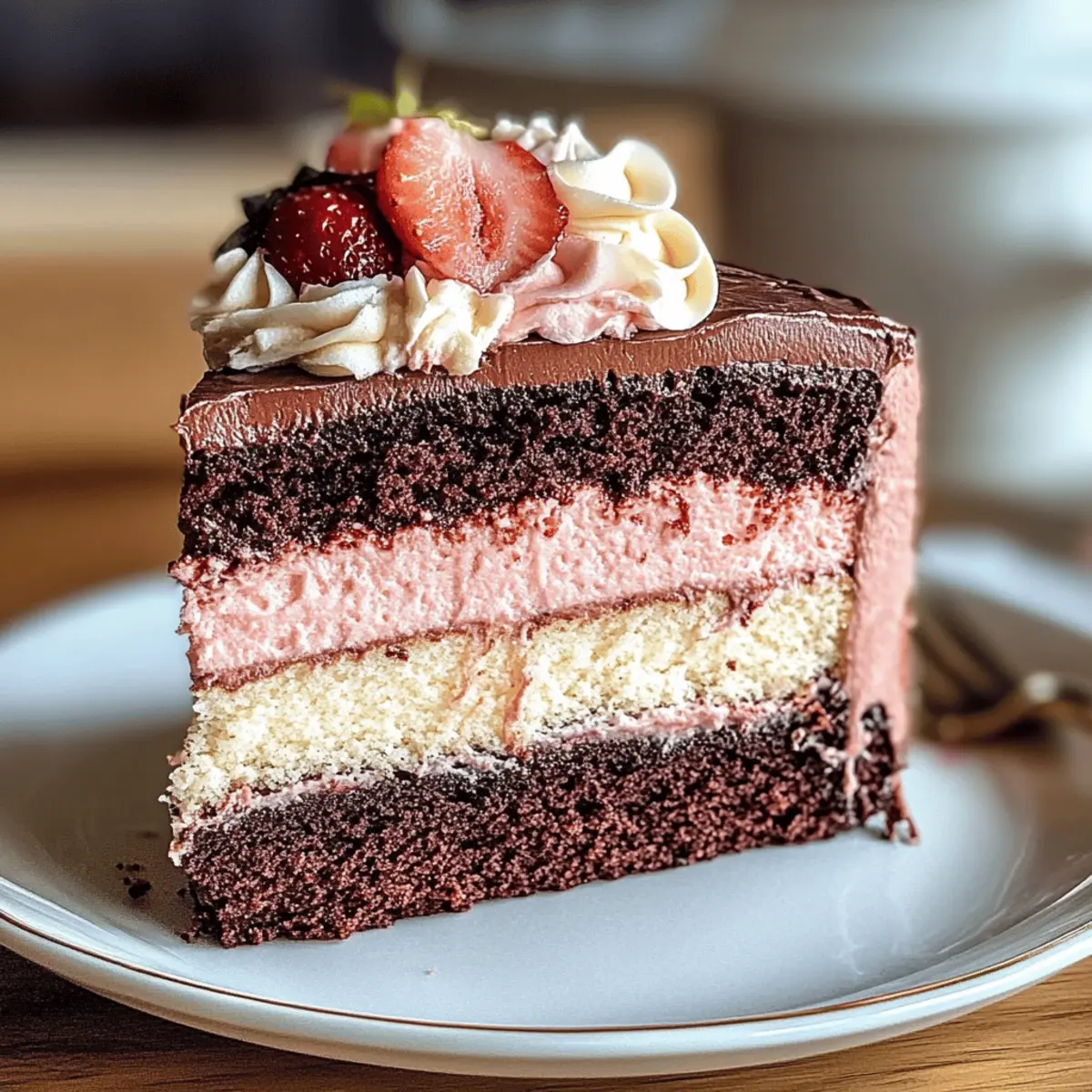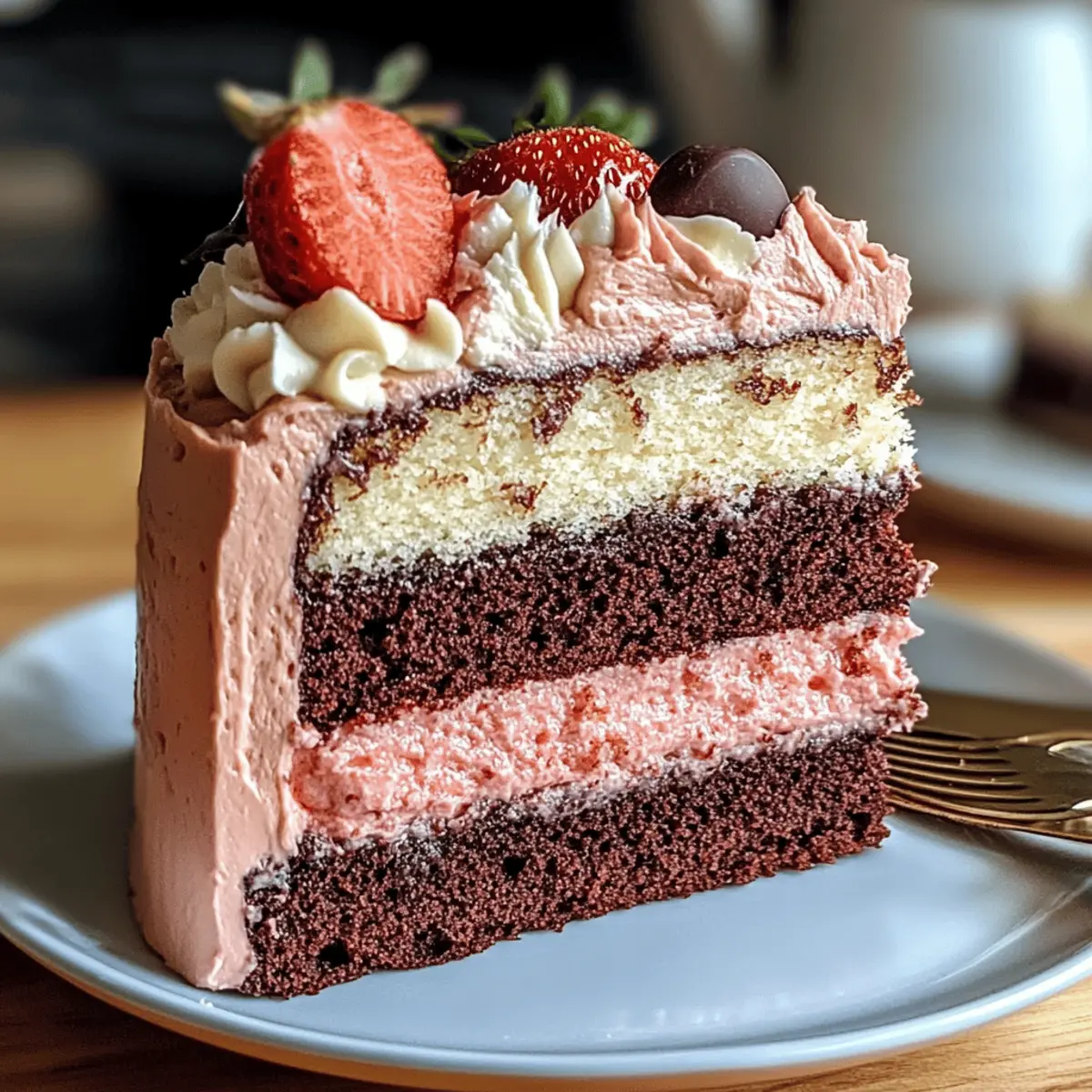 Die Sonne schien durch das Fenster, während ich in der Küche stand und den Duft von frisch gebackenem Kuchen einatmete. Diese Neapolitanische Torte, mit ihren verlockenden Schichten aus Schokolade, Vanille und Erdbeere, ist der perfekte Höhepunkt eines jeden Festes und erinnert an die unbeschwerte Freude von Eiscreme an einem warmen Sommertag. Einfach zuzubereiten und dabei ein echter Blickfang, ist diese Torte nicht nur ein Hochgenuss für den Gaumen, sondern auch eine wahre Augenweide auf jeder Kaffeetafel. Ob als Geburtstagsüberraschung oder lässiger Snack am Nachmittag – sie wird garantiert viele Herzen erobern. Welche Ihrer Lieblingszutaten würden Sie in die nächste Schicht einbringen? Warum ist diese Torte so besonders? Einzigartig in der Kombination: Die Neapolitanische Torte vereint drei Lieblingsgeschmäcker in einem köstlichen Dessert und bietet somit eine aufregende Geschmacksexplosion. Einfache Zubereitung: Mit nur wenigen Zutaten und unkomplizierten Schritten gelingt sie auch Backanfängern mühelos. Visuelles Highlight: Die atemberaubenden Schichten aus Schokolade, Vanille und Erdbeere sind ein echter Hingucker und eignen sich perfekt für jede Feier. Vielfältige Variationen: Passen Sie die Torte mit Ihrem Lieblingsfruchtpüree an oder verwenden Sie alternative Mehlsorten, um verschiedenen Diätbedürfnissen gerecht zu werden – ganz nach Ihrem Geschmack! Diese Torte ist nicht nur ein Genuss, sondern auch eine kreative Möglichkeit, Ihre Backkünste zu zeigen. Wenn Sie noch mehr Inspiration benötigen, schauen Sie sich unser Rezept für Vanille Creme Rezept an und bringen Sie noch mehr Freude in Ihre Küche! Neapolitan Cake Zutaten Für den Teig Weißes Mehl – Bildet die Basis der Torte; glutenfreies Mehl ist eine geeignete Alternative. Kakaopulver – Sorgt für den intensiven Schokoladengeschmack; verwenden Sie Carobpulver für eine koffeinfreie Option. Zucker – Bringt Süße und Feuchtigkeit; Kokoszucker ist eine raffinierte Alternative. Backpulver – Lässt die Torte leicht und locker werden; achten Sie darauf, dass es frisch ist. Salz – Hebt den Geschmack hervor; nur eine Prise für optimale Geschmackskontrolle. Eier – Sorgen für Struktur und Reichhaltigkeit; Flachseier sind eine vegane Option. Milch – Hält die Torte zart; verwenden Sie Mandelmilch für eine laktosefreie Variante. Vanilleextrakt – Fügt Tiefe und Aroma hinzu; Mandelessenz kann eine interessante Abwechslung sein. Geschmolzene Schokolade – Verstärkt die Schokoladenschicht; verwenden Sie hochwertige Schokolade für beste Ergebnisse. Für die Erdbeer-Schicht Erdbeerpüree – Bringt fruchtige Süße in die zweite Schicht; Himbeerpüree kann für eine säuerliche Variation verwendet werden. Für das Frosting Frischkäse – Sorgt für eine cremige Textur und eine leichte Säure; veganer Frischkäse kann ebenfalls verwendet werden. Puderzucker – Bringt Süße und sorgt für eine glatte Textur; verwenden Sie Mönchsfrucht-Süßstoff für eine kalorienreduzierte Variante. Diese Neapolitan Cake Zutaten werden Ihnen helfen, ein meisterhaftes Dessert zu kreieren, das ein echter Hingucker und ein Genuss für Gaumen und Augen ist! Schritt-für-Schritt-Anleitung für die Neapolitanische Torte Step 1: Ofen vorheizen und Backformen vorbereiten Heizen Sie den Ofen auf 175°C vor und bereiten Sie drei runde Kuchenformen vor. Fetten Sie die Formen gut ein oder legen Sie sie mit Backpapier aus, um ein Ankleben der Torte zu verhindern. Dies sorgt dafür, dass die Neapolitanische Torte nach dem Backen problemlos aus den Formen gelöst werden kann. Step 2: Trockene Zutaten vermengen In einer großen Schüssel vermengen Sie das Mehl, Kakaopulver, Zucker, Backpulver und Salz gründlich mit einem Schneebesen. Rühren Sie alles gut durch, bis die trockenen Zutaten gleichmäßig verteilt sind. Damit stellen Sie sicher, dass die Neapolitanische Torte im Ofen gleichmäßig aufgeht und geschmacklich harmoniert. Step 3: Feuchte Zutaten vermengen In einer separaten Schüssel schlagen Sie die Eier, die Milch und den Vanilleextrakt zusammen, bis alles gut kombiniert ist. Gießen Sie diese Mischung langsam zu den trockenen Zutaten und rühren Sie, bis gerade so ein glatter Teig entsteht. Achten Sie darauf, nicht zu lange zu mixen, um eine zarte Textur zu gewährleisten. Step 4: Teig aufteilen und Geschmack hinzufügen Teilen Sie den Teig in drei gleich große Portionen auf. Fügen Sie der ersten Portion die geschmolzene Schokolade hinzu, der zweiten das pürierte Erdbeeren und lassen Sie die dritte Portion unberührt. Rühren Sie jede Mischung sanft unter, um die Geschmäcker gleichmäßig zu verteilen, bevor Sie die Schichten auf die Backformen aufteilen. Step 5: Backen der Torte Verteilen Sie jede der drei Teigmischungen gleichmäßig in die vorbereiteten Formen. Backen Sie die Kuchen im vorgeheizten Ofen für 25-30 Minuten, oder bis ein Zahnstocher in der Mitte sauber herauskommt. Sobald sie gebacken sind, nehmen Sie die Torten aus dem Ofen und lassen Sie sie in den Formen vollständig abkühlen. Step 6: Torte zusammensetzen Nachdem die Kuchen vollständig abgekühlt sind, legen Sie die Schichten aufeinander. Bestreichen Sie die Oberseite der ersten Schicht mit Frischkäsefrosting, bevor Sie die nächste Schicht darauflegen. Wiederholen Sie dies mit der zweiten Schicht, bis die ganze Neapolitanische Torte gestapelt ist, und decken Sie sie dann vollständig mit dem Frosting ab. Step 7: Kühlung und Dekoration Stellen Sie die fertig zusammengesetzte Neapolitanische Torte in den Kühlschrank, damit das Frosting fest wird und die Schichten sich setzen. Nach mindestens einer Stunde können Sie die Torte nach Belieben dekorieren, etwa mit frischen Früchten oder bunten Streuseln, um ein zusätzliches visuelles Highlight zu schaffen. Variationen & Substitutionen für die Neapolitanische Torte Entfesseln Sie Ihre Kreativität in der Küche und passen Sie diese köstliche Torte nach Ihren Wünschen an! Obstvaria
