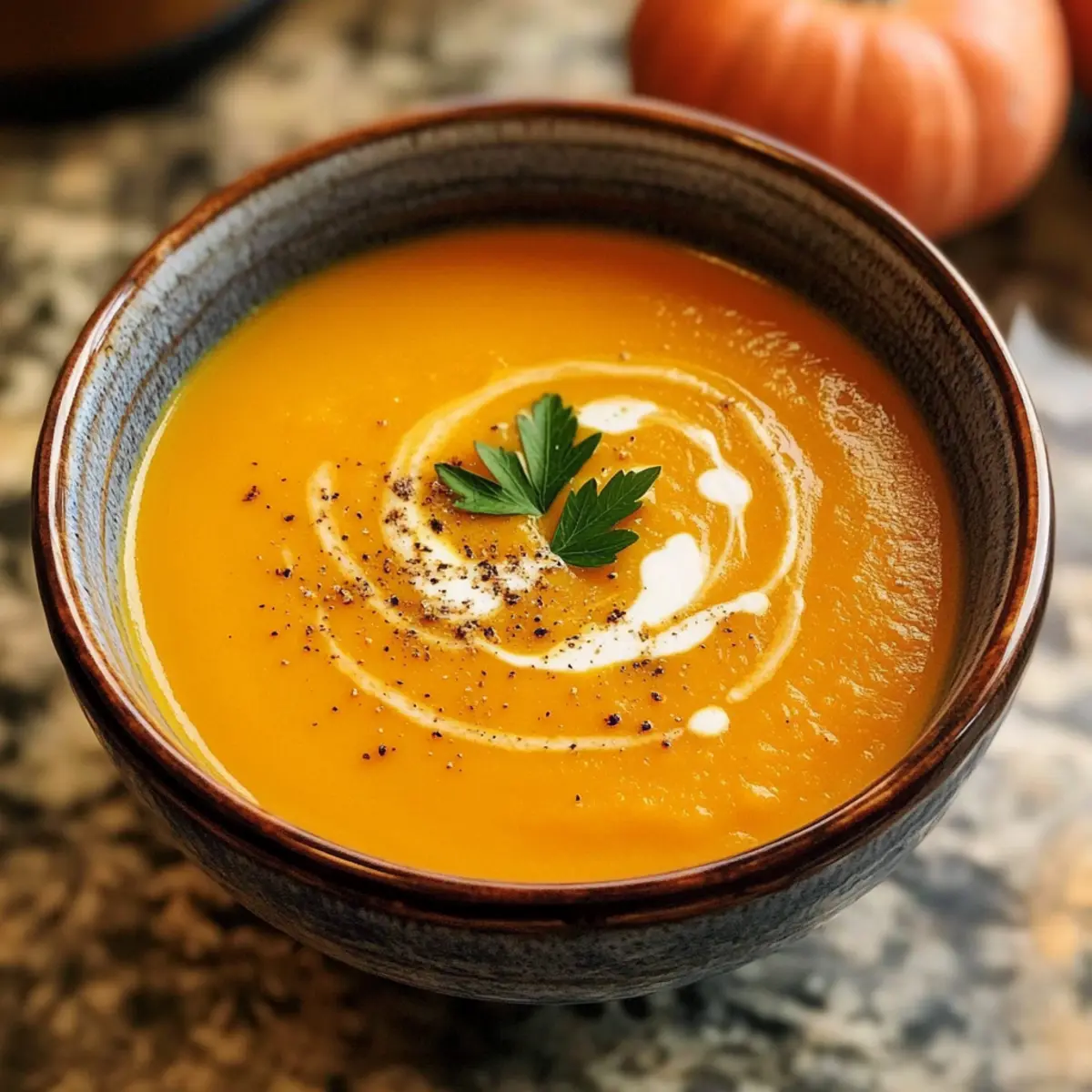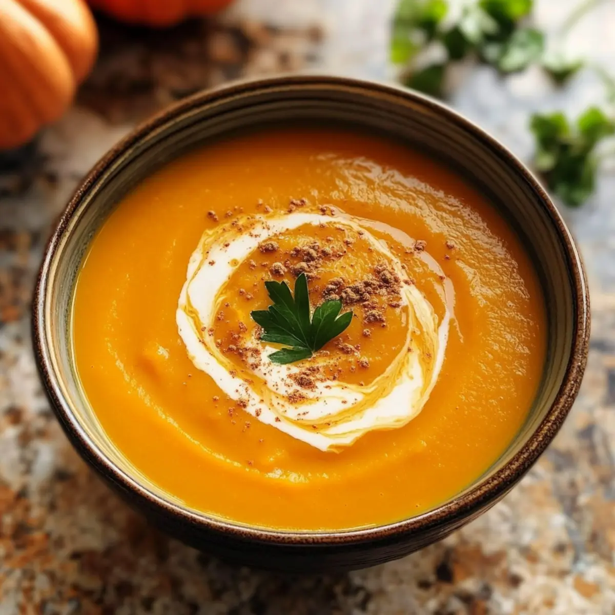 „Wusstest du, dass die einfachsten Rezepte oft die ehrenhaftesten Geschichten erzählen? Omas Kürbissuppe ist da keine Ausnahme. Diese wunderbare, vegane Suppe verströmt den unwiderstehlichen Duft von geröstetem Kürbis und einer Prise Muskatnuss, der jeden Raum mit Wärme erfüllt. Zudem ist sie nicht nur schnell und einfach zuzubereiten, sondern auch kostengünstig, perfekt für diejenigen, die den Zauber hausgemachter Gerichte wiederentdecken wollen. Stell dir vor, wie die samtige Textur dieser Suppe deine Sinne umhüllt – ein wahrhaftiger Gaumenschmaus an kalten Tagen. Am besten genießt du sie mit frisch gebackenem Brot oder garniert mit knusprigen Kürbiskernen. Kannst du schon den ersten Löffel schmecken?“ Warum ist Omas Kürbissuppe so besonders? Herzhaft, die perfekte Kombination aus gesunden Zutaten und traditionellem Geschmack macht diese Suppe zu einem Genuss für die ganze Familie. Einfachheit, sie lässt sich mit minimalem Aufwand in kurzer Zeit zubereiten – ideal für hektische Tage. Vielfalt, du kannst kreativ werden und verschiedene Gemüsesorten oder Gewürze hinzufügen, um deinen ganz persönlichen Twist zu kreieren. Diese Suppe ist ein wahres Komfortgericht, das Erinnerungen weckt und alle am Tisch zusammenbringt. Probiere auch Cremiger Lachs Florentiner oder Mit Kirschen Rezept für weitere Köstlichkeiten. Omas Kürbissuppe Zutaten • Omas Kürbissuppe wird mit frischen, preiswerten Zutaten zubereitet, die jedem Löffel einen wohltuenden Geschmack verleihen. Für die Suppe Hokkaido Kürbis – der Hauptbestandteil für Geschmack und cremige Textur; kann durch Butternut-Kürbis ersetzt werden, falls nicht erhältlich. Gemüsebrühe – sorgt für Tiefe und verstärkt den Umami-Geschmack; Wasser kann verwendet werden, verliert jedoch an Reichhaltigkeit. Zwiebel – gibt Süße und Aroma; kann durch Schalotten oder Lauch ersetzt werden für einen milden Geschmack. Knoblauch – intensiviert das Geschmacksprofil; weglassen für eine mildere Variante. Muskatnuss – ergänzt die natürliche Süße des Kürbisses; Allgewürz oder Zimt sind gute Alternativen. Salz & Pfeffer – essenziell zur Würzung; nach Geschmack anpassen, je nach Salzgehalt der Brühe. Sahne (oder pflanzliche Sahne) – sorgt für eine samtige Konsistenz; für eine leichtere Variante weglassen oder durch Kokosmilch ersetzen für einen tropischen Flair. Schritt-für-Schritt-Anleitung für Omas Kürbissuppe Step 1: Kürbis rösten Schneide den Hokkaido-Kürbis in Spalten und lege diese auf ein mit Backpapier ausgelegtes Blech. Beträufele die Kürbisspalten leicht mit Öl und würze sie mit Salz und Pfeffer. Röste den Kürbis im vorgeheizten Ofen bei 200°C für etwa 30 Minuten, bis er zart und leicht gebräunt ist. Dies intensiviert den natürlichen Geschmack der Kürbisse für deine Omas Kürbissuppe. Step 2: Gemüse anbraten Während der Kürbis röstet, erhitze in einem großen Topf bei mittlerer Hitze etwas Öl. Füge die gewürfelten Zwiebeln und den gehackten Knoblauch hinzu und dünste sie 5–7 Minuten lang, bis sie transluzent sind. Diese Aromen bilden die geschmackliche Grundlage für die köstliche Omas Kürbissuppe. Step 3: Kürbis und Brühe hinzufügen Sobald der Kürbis fertig geröstet ist, füge ihn zusammen mit der Gemüsebrühe zu den Zwiebeln und dem Knoblauch in den Topf. Bring die Mischung bei hoher Hitze zum Kochen, reduziere dann die Hitze und lasse sie 15 Minuten lang leicht köcheln, damit sich die Aromen gut vermischen. Step 4: Suppe pürieren Nimm jetzt einen Stabmixer zur Hand und püriere die Suppe, bis sie eine samtige Konsistenz erreicht hat. Solltest du keinen Stabmixer haben, kannst du die Suppe auch portionsweise in einem Standmixer pürieren. Wenn die Suppe zu dick ist, füge nach Bedarf noch etwas Gemüsebrühe hinzu, bis du die gewünschte Konsistenz erreicht hast. Step 5: Würzen und servieren Füge eine Prise Muskatnuss und die Sahne (oder pflanzliche Sahne) zur pürierten Suppe hinzu. Rühre alles gut um und schmecke die Suppe mit Salz und Pfeffer ab, um die Aromen zu perfektionieren. Serviere die heiße Omas Kürbissuppe in Schalen, eventuell garniert mit einem Schuss Sahne und einem Hauch Muskatnuss für den letzten Schliff. Was passt zu Omas Kürbissuppe? Wärmender Genuss und eine silken Textur – die perfekte Begleitung für ein köstliches Menü sind nur einen Löffel entfernt. Crostini mit Kräutern: Knusprige Scheiben, die mit frischen Kräutern und Knoblauch geroastet werden, bringen eine herzhafte und aromatische Note. Ideal, um in die Suppe zu dippen und jeden Bissen zu verfeinern. Frischer Garten-Salat: Eine bunte Mischung aus grünen Blättern, Tomaten und Gurken sorgt für eine erfrischende, knackige Beilage. Der Salat bringt Leichtigkeit und Kontrast zur reichhaltigen Suppe – perfekt, um die Geschmäcker auszubalancieren. Knusprige Kürbiskerne: Röste einige Kürbiskerne und streue sie über die Suppe. Sie geben nicht nur einen schönen visuellen Effekt, sondern auch einen wunderbaren Crunch und eine zusätzliche Nussigkeit. Vollkornbrot: Frisch gebacken oder leicht geröstet, bietet es die perfekte Grundlage für einen herzhaften, sättigenden Biss. Einfach ideal zum Dippen und für den extra Komfort an kalten Tagen. Apfelmost: Ein Glas gekühlter Apfelmost ergänzt die herbstlichen Aromen der Suppe wunderbar. Der süße und spritzige Geschmack rundet das Menü ab und sorgt für ein harmonisches Geschmackserlebnis. Käse-Cracker: Eine Kombination aus herzhaftem Käse und einem krossen Keks bringt Textur und Geschmack. Der pikante Käse harmoniert perfekt mit der süßen Note des Kürbisses – ein köstlicher Snack für vor oder nach dem Hauptgericht. Variationen für Omas Kürbissuppe Lass deiner Kreativität freien Lauf und passe das Rezept ganz nach deinem Geschmack an! Vegan: Ersetze die Sahne durch Kokosmilch für eine exotische Note. Diese Alternative verleiht der Suppe eine herrlich cremige Konsistenz und einen nachvollz
