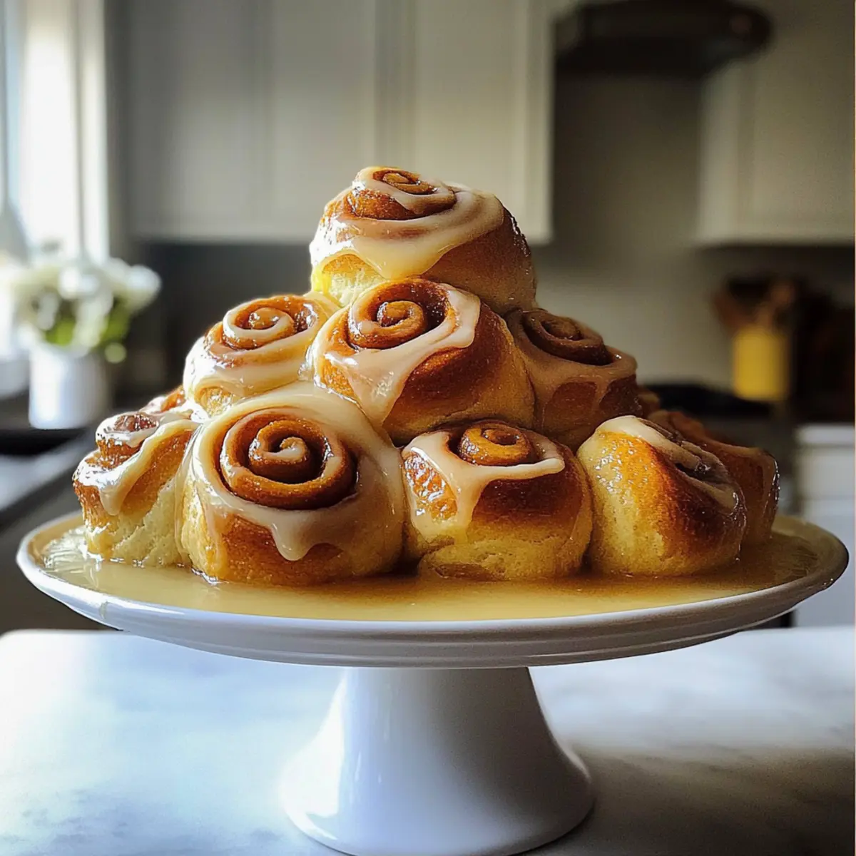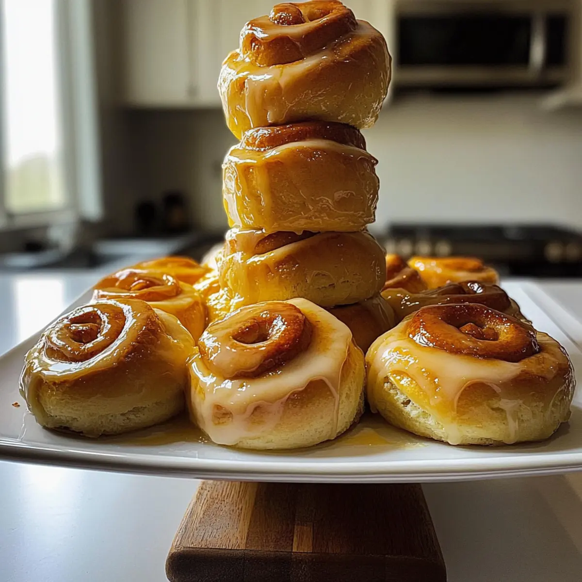 Sobald die Rollen warm sind, die Zuckerglasur gleichmäßig über die Oberseite träufeln. Die Glasur wird beim Abkühlen leicht fest, sorgt aber für eine herrlich süße und glanzvolle Oberfläche. Jetzt sind deine fluffigen Orange Kardamom Rollen bereit, serviert zu werden!