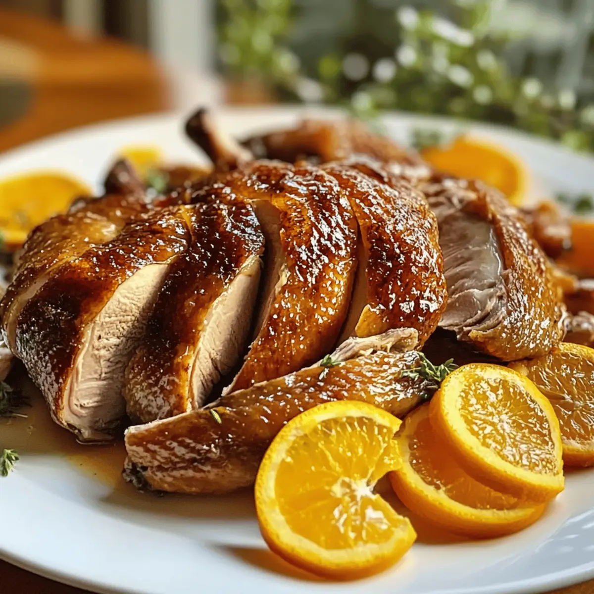 Die sanften Aromen von frisch geröstetem Entenbraten entführen mich sofort in festliche Zeiten, in denen die Familie am Tisch versammelt war. Heute lade ich euch ein, mit mir das perfekte Rezept für einen wunderbar knusprigen Entenbraten zu entdecken – ein Gericht, das nicht nur optisch beeindruckt, sondern auch eure Geschmacksknospen verwöhnt. Diese perfekt geröstete Ente, gepaart mit ihren saftigen Fleischstücken und einer aromatischen Kruste, ist ideal für besondere Anlässe und wird selbst die anspruchsvollsten Gäste begeistern. Ihr werdet nicht nur Zeit in der Küche sparen, sondern auch ein Stück Restaurant-Feeling in eure eigenen vier Wände bringen. Bereitet euch darauf vor, zu experimentieren, denn ich teile auch spannende Variationen und köstliche Marinade-Ideen! Was denkt ihr, bereit, dieses Gourmet-Gericht selbst auszuprobieren? Warum werden Sie dieses Rezept lieben? Einfachheit: Die Zubereitung ist kinderleicht und erfordert keine speziellen Kochkenntnisse – ideal für Einsteiger und Hobbyköche. Köstliche Aromen: Die Kombination aus frischen Kräutern und Zitrusfrüchten verleiht der Ente einen unvergleichlichen Geschmack. Vielseitigkeit: Experimentieren Sie mit verschiedenen Marinaden, wie einer Mischung aus Sojasauce und Honig für einen asiatischen Touch oder traditionellen Kräutermischungen. Beeindruckende Präsentation: Das goldbraune, knusprige Äußere macht dieses Gericht zum Highlight jeder Feier. Klassisches Gericht: Roast Duck ist ein zeitloses Rezept, das in vielen Küchen eine Rolle spielt und besondere Anlässe feiert. Wenn ihr mehr über verschiedene Salate für eure Beilagen erfahren wollt, schaut euch meinen beliebten Bete Karotten Salat an! Zutaten für die perfekte Ente • Um eure kulinarischen Fähigkeiten auf die nächste Stufe zu heben, braucht ihr diese erstklassigen Zutaten für ein unvergessliches Erlebnis! Für die Ente Whole Duck (5-6 pounds) – Der Hauptdarsteller dieses Gerichts; wählt frische oder hochwertige gefrorene Ente für unvergleichlichen Geschmack. Kosher Salt (2 tablespoons) – Verstärkt den Geschmack und hilft, eine knusprige Haut zu erzielen; großzügig würzen! Fresh Herbs (2 tablespoons, thyme, rosemary, sage) – Verleiht während des Röstens aromatische Noten für ein geschmackvolles Erlebnis. Garlic (4 cloves, minced) – Sorgt für Tiefe und Reichhaltigkeit; ergänzt die Ente optimal. Orange Zest (from 1 medium orange) – Bringt Zitrusnoten ins Spiel, die das Fett der Ente ausbalancieren. Freshly Ground Black Pepper (1 teaspoon) – Fügt milden Schärfe und Komplexität zum Geschmack hinzu. Optional Orange Slices – Dienen zur Garnierung und verbessern die Präsentation der Ente. Für die Marinade Soy Sauce – Perfekt für eine asiatische Note; ersetzt das Salz für einen anderen Geschmack. Honey – Verleiht der Marinade Süße und hilft, die Haut schön karamellisieren zu lassen. Schritt-für-Schritt-Anleitung für perfekt gebratene Ente mit knuspriger Haut Step 1: Ente vorbereiten Die Ente unter kaltem Wasser abspülen und gründlich mit Küchenpapier abtrocknen, um eine knusprige Haut zu gewährleisten. Achten Sie darauf, das innere der Ente zu reinigen und die sichtbaren Federreste zu entfernen. Legen Sie die Ente auf ein Schneidebrett und bereiten Sie sich auf das nächsten Schritte vor. Step 2: Haut einritzen Mit einem scharfen Messer die Haut der Ente vorsichtig rautenförmig einschneiden, ohne dabei das Fleisch zu verletzen. Diese Einschnitte helfen, das Fett während des Röstens abzulassen, was zu einer knusprigen Haut führt. Achten Sie darauf, gleichmäßige Abstände zu halten, um eine gleichmäßige Garung zu gewährleisten. Step 3: Ente würzen Die Ente von innen und außen großzügig mit koscherem Salz und frisch gemahlenem schwarzen Pfeffer einreiben. Fügen Sie die gehackten Knoblauchzehen und die frischen Kräuter hinzu, um den Geschmack zu intensivieren. Stellen Sie sicher, dass die Gewürze gleichmäßig verteilt sind. Lassen Sie die Ente nach dem Würzen für etwa 30 Minuten ruhen, damit die Aromen einziehen können. Step 4: Füllen der Ente Füllen Sie die Bauchhöhle der Ente mit den Zwiebelscheiben und den Orangenspalten. Diese Zutaten sorgen für zusätzliche Feuchtigkeit und Geschmack während des Garens. Platzieren Sie die gefüllte Ente auf einem Rost, um die Luftzirkulation zu maximieren. Step 5: Ofen vorheizen Heizen Sie den Backofen auf 190 °C (375 °F) vor. Dies ist wichtig, um sicherzustellen, dass die Ente gleichmäßig gart und die Haut gleich zu Beginn knusprig wird. Während der Ofen vorheizt, können Sie die Ente weiter vorbereiten und alles bereitstellen. Step 6: Ente rösten Die Ente auf dem Rost in den vorgeheizten Ofen geben und ohne Abdeckung für etwa 2 Stunden rösten. Bästen Sie die Ente alle 30 Minuten mit dem eigenen Fett, um die Haut knusprig zu halten und das Fleisch saftig zu machen. Überprüfen Sie regelmäßig die Garzeit, um sicherzustellen, dass die ideale Temperatur erreicht wird. Step 7: Garzeit überprüfen Verwenden Sie ein Fleischthermometer, um die Kerntemperatur der Ente zu überprüfen. Diese sollte mindestens 74 °C (165 °F) im dicksten Teil des Schenkels erreichen. Wenn die Temperatur erreicht ist, nehmen Sie die Ente aus dem Ofen und lassen Sie sie für 15-20 Minuten ruhen, damit sich die Säfte im Fleisch verteilen können. Step 8: Servieren Die Ente nach der Ruhezeit auf einem großen Teller anrichten. Schneiden Sie die Haut vorsichtig ein und portionieren Sie das Fleisch. Garnieren Sie das Gericht mit frischen Orangenscheiben, um die Aromen hervorzuheben. Dieses Rezept für perfekt gebratene Ente mit knuspriger Haut wird Ihre Gäste beeindrucken und Ihre Geschmacksknospen erfreuen. Was passt zur perfekt gebratenen Ente mit knuspriger Haut? Die sanften Aromen und die knusprige Textur der Ente lassen sich wunderbar mit verschiedenen Beilagen kombinieren, um ein rundum festliches Menü zu schaffen. Geröstetes Gemüse: Eine Misc