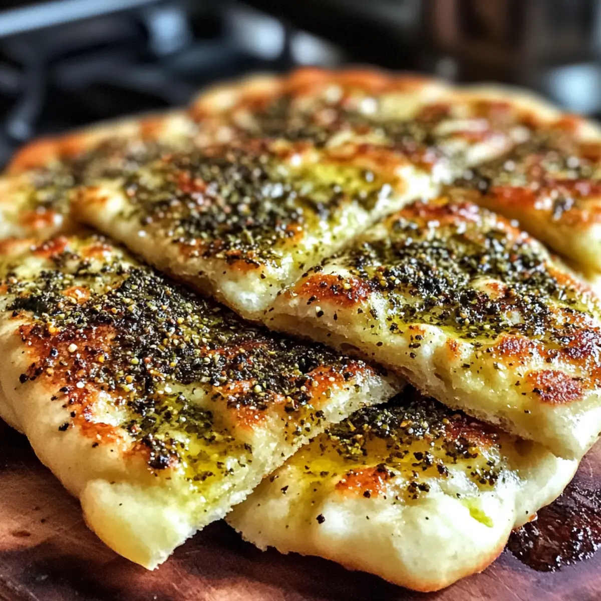 Als ich das erste Mal in ein charmantes Café in Beirut eintrat, umhüllte mich der unwiderstehliche Duft von frisch gebackenem Brot. Dort entdeckte ich den pillowigen libanesischen Manakeesh, der mit einer aromatischen Mischung aus Za’atar und Olivenöl belegt ist. Diese himmlisch weichen Fladenbrote sind nicht nur eine genussvolle Abwechslung zum typischen Fast Food, sondern auch ein einfaches Rezept, das in kürzester Zeit zubereitet werden kann. Besonders schön ist, dass es auch glutenfreie und vegane Anpassungen für jeden Geschmack gibt. Egal, ob zum Brunch oder als schmackhafte Vorspeise – dieser Manakeesh sorgt für Wohlfühlmomente und weckt Erinnerungen an die lebhaften Straßen von Beirut. Bist du bereit, deine Küche in ein kleines Stück Libanon zu verwandeln? Lass uns gleich loslegen mit diesem köstlichen Rezept! Warum ist dieser Manakeesh so besonders? Einfache Zubereitung: Die Herstellung dieses pillowigen Manakeesh erfordert nur grundlegende Backfähigkeiten und Begeisterung. Aromatische Mischung: Der Za’atar und das Olivenöl verleihen dem Fladenbrot einen unverwechselbaren Geschmack, der deine Sinne verführt. Vielseitigkeit: Ob als Snack oder Hauptgericht – dieser Manakeesh passt zu jeder Gelegenheit! Gesunde Alternativen: Mit Variationen für Glutenunverträgliche und Veganer kannst du jedem Gericht gerecht werden. Perfekte Konsistenz: Die Kombination aus weichem, fluffigem Brot mit knuspriger Kruste macht jeden Biss zu einem Genuss. Das Beste daran? Du kannst es mit frischen Dips oder Salaten kombinieren, um dein Erlebnis zu bereichern! Pillowiger libanesischer Manakeesh Zutaten • Entdecke die Geheimnisse für perfekten Manakeesh! Für den Teig: Allzweckmehl – sorgt für die Struktur und ein weiches Brot; für glutenfreies Manakeesh mit einem glutenfreien Mehlmix ersetzen. Warmes Wasser (110°F) – aktiviert die Hefe für das richtige Aufgehen des Teigs; kaltes Wasser bitte vermeiden. Hefe (Trocken- oder Instant) – lockert den Teig für eine fluffige Textur; stelle sicher, dass die Hefe frisch ist für die besten Ergebnisse. Olivenöl – fügt Geschmack und Feuchtigkeit hinzu; verwende hochwertiges, extra natives Olivenöl für verstärkten Geschmack. Salz – verstärkt den Gesamtgeschmack des Brotes; bitte nicht reduzieren, da es für den Geschmack unerlässlich ist. Für das Topping: Za’atar – ein Gewürzmix, der ein einzigartiges, kräuteriges Aroma bietet; frisches, duftendes Za’atar wählen für optimalen Geschmack. Olivenöl (zum Mischen) – sorgt dafür, dass der Za’atar gleichmäßig auf dem Fladenbrot verteilt werden kann; für zusätzlichen Geschmack ein hochwertiges Öl verwenden. Schritt-für-Schritt-Anleitung für pillowigen libanesischen Manakeesh mit Za’atar Step 1: Teigzubereitung In einer Rührschüssel warmes Wasser (ca. 43°C) mit der Hefe vermengen und 5-10 Minuten ruhen lassen, bis die Mischung schäumt. Füge dann das Allzweckmehl, das Olivenöl und das Salz hinzu; alles gut verrühren, bis ein homogener Teig entsteht. Knete den Teig etwa 10 Minuten lang auf einer bemehlten Fläche, bis er weich und elastisch ist. Step 2: Erste Gare Den vorbereiteten Teig zu einer Kugel formen und in einer leicht geölten Schüssel platzieren. Den Teig mit einem feuchten Tuch abdecken und an einem warmen Ort etwa 1 Stunde gehen lassen, bis er sich verdoppelt hat. Achte darauf, dass der Teig schön aufgeht und seidig aussieht, was das perfekte Zeichen für die weitere Verarbeitung ist. Step 3: Formen Den gegangenen Teig leicht durchkneten und in gleichmäßige Portionen teilen. Jede Portion auf einer bemehlten Arbeitsfläche zu einem flachen Kreis ausrollen, der etwa 0,6 cm dick ist. Die flachen Brotstücke sollten gleichmäßig und rund sein, um sicherzustellen, dass sie gleichmäßig gebacken werden. Step 4: Topping Den Za’atar mit 2-3 Esslöffeln Olivenöl in einer kleinen Schüssel gut vermischen, bis eine pasteuse Konsistenz entsteht. Diese Mischung gleichmäßig mit einem Backpinsel auf jedes Fladenbrot verteilen, sodass jeder Biss des pillowigen libanesischen Manakeesh mit dem aromatischen Za’atar und dem Öl überzogen ist. Step 5: Backen Den Ofen auf 245°C vorheizen, idealerweise mit einem Pizzastein, damit die Unterseite der Brote schön knusprig wird. Die Fladenbrote auf ein mit Backpapier ausgelegtes Blech legen und ca. 10-12 Minuten backen. Achte darauf, dass sie goldbraun werden und der Boden knusprig ist, bevor du sie herausnimmst. Step 6: Servieren Die frisch gebackenen Manakeesh warm servieren, idealerweise gleich nach dem Backen. Diese pillowigen libanesischen Manakeesh sind perfekt als Snack, zum Brunch oder als herzhafte Vorspeise. Sie lassen sich hervorragend mit frischen Dips oder einem Salat kombinieren und bereiten jedem Gast Freude! Zeitsparende Vorbereitung für pillowigen libanesischen Manakeesh Die Zubereitung der pillowigen libanesischen Manakeesh lässt sich hervorragend im Voraus planen, sodass du an hektischen Tagen Zeit sparst! Du kannst den Teig bis zu 24 Stunden im Kühlschrank aufbewahren, nachdem du ihn geknetet hast. Achte darauf, ihn gut abzudecken, um eine Austrocknung zu verhindern. Ebenso kannst du die Za’atar-Ölmischung bis zu 3 Tage im Voraus zubereiten; lagere sie einfach in einem verschlossenen Behälter im Kühlschrank. Wenn du bereit bist zu backen, forme den Teig, lasse ihn für ca. 30 Minuten bei Raumtemperatur ruhen und decke ihn mit einem Tuch ab, während du den Ofen vorheizt. So bleibst du organisiert und erhältst dennoch fluffige, qualitativ hochwertige Manakeesh, die genau so köstlich sind wie frisch zubereitet! Lagerungstipps für pillowigen libanesischen Manakeesh Raumtemperatur: Lagere übriggebliebene Manakeesh in einem luftdichten Behälter für bis zu 24 Stunden. So bleibt das Brot frisch und aromatisch. Kühlschrank: Für eine längere Haltbarkeit die Manakeesh im Kühlschrank aufbewahren; sie bleiben so bis zu 3 Tage genießbar. Wickel sie in Frischhaltefolie 