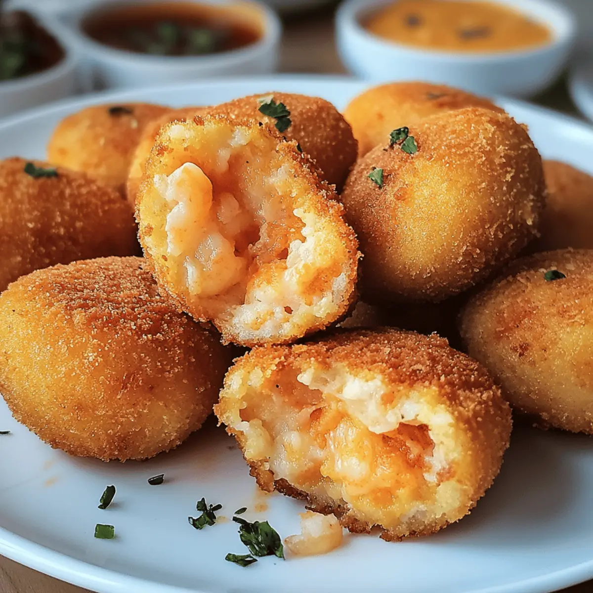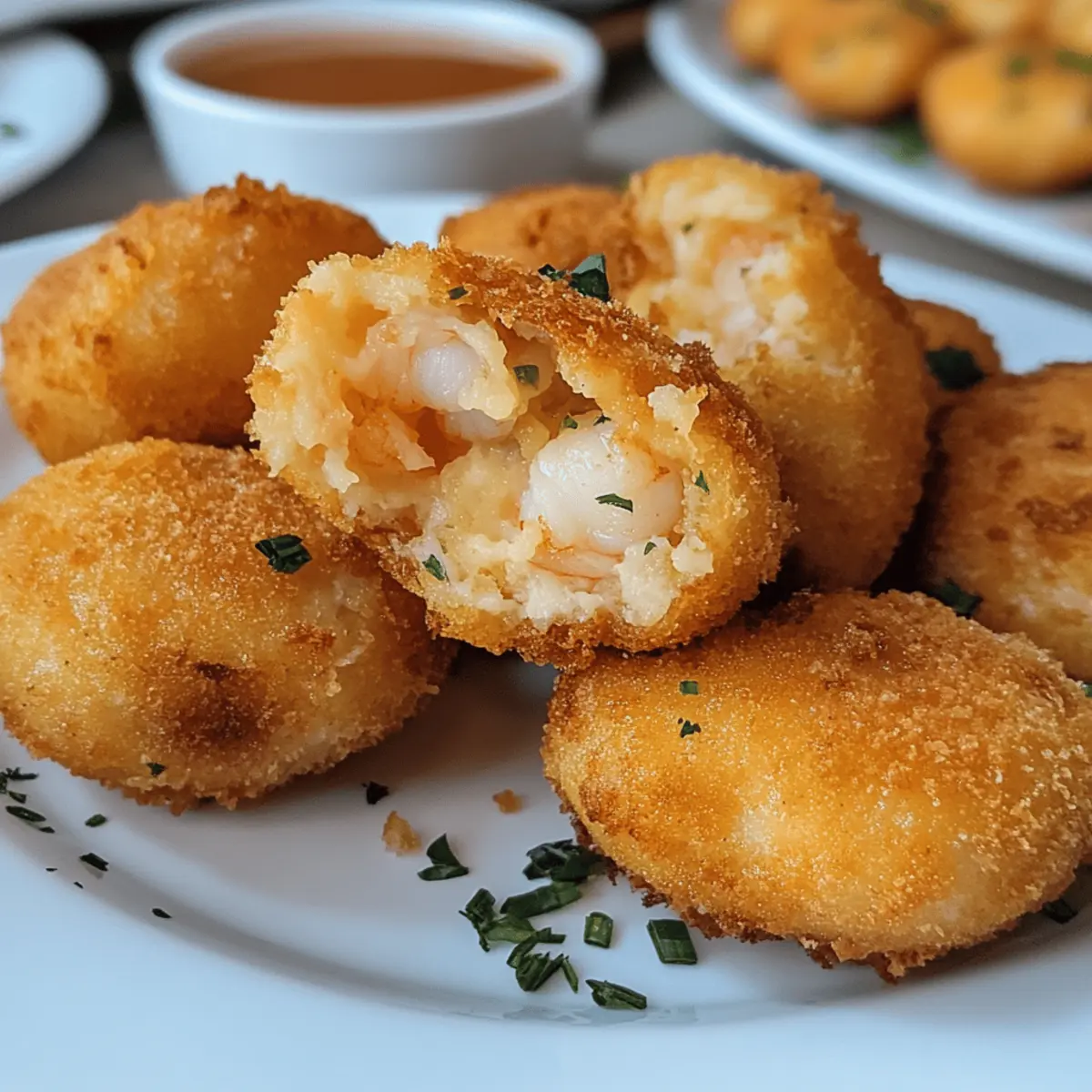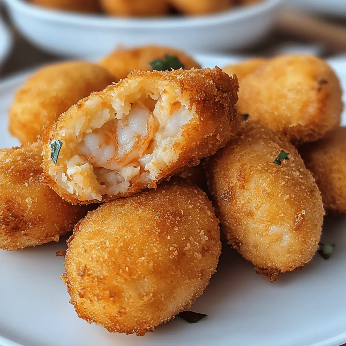 Es gibt Momente im Leben, die uns unverhofft überraschen und die Sinne betören – ich erinnere mich an den ersten Biss in einen knusprigen portugiesischen Shrimp-Croquette. Diese kleinen Leckerbissen vereinen die besten Aromen des Meeres mit einer knusprigen, goldenen Hülle, die beim Reinbeißen ein köstliches Geheimnis preisgibt. Bei der Zubereitung dieser köstlichen Appetithäppchen, die perfekt für gesellige Abende oder entspannte Kochmomente sind, können Sie sich darauf freuen, dass Ihre Lieben begeistert sein werden. Dank der Verwendung von zartem Garnelenfleisch und cremigen Kartoffeln sind diese Croquettes nicht nur einfach zuzubereiten, sondern auch eine genussvolle Bereicherung für jedes Essen. Neugierig, wie Sie mit dieser Grundlage Ihrer Kreativität freien Lauf lassen können? Warum werden Sie dieses Rezept lieben? Einfachheit: Die Zubereitung dieser köstlichen Garnelen-Kroketten erfordert nur grundlegende Kochkenntnisse, sodass Sie sich ganz auf den Geschmack konzentrieren können. Vielseitigkeit: Ob als Fingerfood auf Partys oder als leichtes Hauptgericht, diese Kroketten passen sich jeder Gelegenheit an und erfreuen alle. Herzhafter Geschmack: Die Kombination aus frischen Garnelen und kräftigen Kräutern sorgt für ein Geschmacksabenteuer, das niemanden kalt lässt. Schnell zubereitet: Sie können die Kroketten im Voraus zubereiten und sie bei Bedarf einfach aus dem Gefrierfach holen – ideal für spontane Gäste! Kreative Variationen: Experimentieren Sie mit verschiedenen Füllungen, wie z.B. Herzhafter Minestrone Suppe oder Brownies Rezept Lecker, um immer wieder neue Geschmackserlebnisse zu kreieren. Erleben Sie, wie diese knusprigen Snacks mühelos das Highlight Ihres nächsten Kochabends werden! Zutaten für Garnelen-Kroketten • Entdecken Sie die essenziellen Zutaten für unsere köstlichen portugiesischen Garnelen-Kroketten, die nicht nur einfach zuzubereiten sind, sondern auch Ihre Sinne verzaubern werden. Für die Füllung Garnelen – Die Hauptzutat, die mit ihrem frischen Geschmack die Grundlage für diese köstlichen Kroketten bildet; verwenden Sie frische oder aufgetaute Garnelen. Kartoffelpüree – Sorgt für eine cremige Konsistenz und Stabilität; nutzen Sie gerne Reste zum schnelleren Zubereiten. Kräuter (Petersilie, Koriander) – Bringen Sie frische Noten in die Füllung; frische Kräuter sind am besten, aber getrocknete können in der Not verwendet werden. Knoblauch – Fügt aromatische Tiefe hinzu; verwenden Sie frischen, gehackten Knoblauch oder Knoblauchpulver für schnellen Genuss. Salz & Pfeffer – Der Schlüssel zur perfekten Würze; passen Sie die Mengen nach Ihrem Geschmack an. Für die Panade Breadcrumbs – Kreiert die knusprige Außenschicht; ersetzen Sie sie durch Panko für extra Crunch. Eier – Binden die Mischung zusammen; vegane Alternativen wie Leinsamenmehl können ebenfalls verwendet werden. Mit diesen Zutaten sind Sie bestens gerüstet, um jeden Bissen zu einem unvergesslichen Geschmackserlebnis zu machen – ideal für gesellige Abende oder als kleiner Snack für zwischendurch! Schritt-für-Schritt-Anleitung für Köstliche Portugiesische Garnelen-Kroketten Step 1: Zutaten vorbereiten Zuerst die Garnelen, Kräuter und den Knoblauch fein hacken. Verwenden Sie frische Garnelen oder aufgetaute, um den besten Geschmack zu erzielen. Achten Sie darauf, die Zutaten gleichmäßig vorzubereiten, um eine gleichmäßige Kochzeit zu gewährleisten. Dies sollte etwa 10 Minuten in Anspruch nehmen und die Vorfreude auf die Garnelen-Kroketten erhöhen. Step 2: Füllung mischen In einer großen Schüssel die vorbereiteten Garnelen, das Kartoffelpüree, die gehackten Kräuter, den Knoblauch, Salz und Pfeffer gut vermengen. Achten Sie darauf, dass alle Zutaten gut miteinander verbunden sind, um eine glatte und cremige Füllung zu erhalten. Dies dauert nur 5 Minuten und ist der Schlüssel zum herzhaften Geschmack der Garnelen-Kroketten. Step 3: Kroketten formen Nehmen Sie eine Portion der Füllung und formen Sie daraus kleine Bällchen oder flache Patties. Diese sollten etwa einen Durchmesser von 5 cm haben, um eine gleichmäßige Garzeit zu gewährleisten. Legen Sie die geformten Kroketten auf ein mit Backpapier ausgelegtes Blech, während Sie die restliche Füllung verarbeiten. Dieser Schritt kann 10-15 Minuten in Anspruch nehmen, je nach Anzahl der Kroketten. Step 4: Kroketten panieren Verquirlen Sie in einer Schüssel die Eier und bereiten Sie eine zweite Schüssel mit Breadcrumbs vor. Tauchen Sie jede Krokettenform zuerst in die Eier und wenden Sie sie anschließend in den Breadcrumbs, sodass sie vollständig bedeckt sind. Stellen Sie sicher, dass die Panade schön gleichmäßig wird, was zusätzliche Knusprigkeit helfen wird. Dieser Vorgang sollte zirka 10 Minuten dauern. Step 5: Frittieren oder Backen Erhitzen Sie in einer Pfanne genügend Öl, bis es heiß ist (ca. 180°C), oder heizen Sie den Backofen auf 200°C vor. Braten Sie die Kroketten in der Pfanne goldbraun an (ca. 3-4 Minuten pro Seite) oder backen Sie sie für 15-20 Minuten im Ofen, bis sie knusprig und goldbraun sind. Achten Sie darauf, die Kroketten nicht zu überladen, damit sie gleichmäßig garen. Step 6: Servieren Die köstlichen portugiesischen Garnelen-Kroketten warm servieren, idealerweise mit einer Dipsauce Ihrer Wahl oder auf einem frischen Salat. Lassen Sie sie einige Minuten abkühlen, bevor Sie die ersten Bisse genießen – die perfekte Kombination aus knuspriger Außenhülle und cremiger Füllung wird Ihre Gäste begeistern! Expertentipps für Garnelen-Kroketten Öltemperatur prüfen: Stellen Sie sicher, dass das Öl heiß genug ist, um die Knusprigkeit der Garnelen-Kroketten zu erreichen – etwa 180°C ist ideal. Panade gut andrücken: Drücken Sie die Breadcrumbs fest an die Kroketten, um sicherzustellen, dass sie beim Frittieren nicht abfallen. Würze anpassen: Experimentieren Sie mit zusätzlichen Gewürzen in der Füllung, um den Geschmack der 