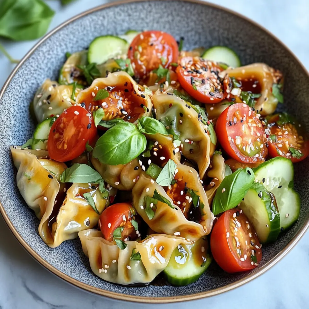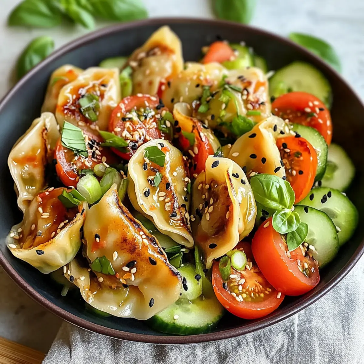 Es war ein lauer Abend, und während ich in meiner Küche stand, entdeckte ich eine spannende Möglichkeit, meine Lieblings-Gyoza auf eine neue Weise zu genießen. Der Potsticker-Salat kombiniert die vertraute Gemütlichkeit von gedämpften Teigtaschen mit der Frische knackiger Gemüse – perfekt für alle, die sich nach einer schnellen, gesunden Mahlzeit sehnen. Diese Rezeptur ist nicht nur blitzschnell zubereitet, sondern auch absolut anpassbar, um deine liebsten saisonalen Zutaten einzubinden. Mit glutenfreien Optionen mithilfe von Tamari ist dieser Salat eine köstliche Lösung für all jene, die sich von Fast Food verabschieden möchten. Was hältst du davon, deine nächsten Abendessen mit dieser kreativen Fusion zu bereichern? Warum wirst du diesen Potsticker-Salat lieben? Einfachheit pur: Die Zubereitung ist unkompliziert und benötigt keine speziellen Kochkünste. Perfekt für stressige Abende! Vibrante Aromen: Die Kombination aus frischen Gemüse und herzhaften Gyoza-Dumplings sorgt für ein Geschmackserlebnis, das begeistert. Anpassungsfähig: Du kannst mit verschiedenen Gemüsevariationen experimentieren oder proteinreiche Zutaten wie Hühnchen oder Tofu hinzufügen. Gesunde Wahl: Mit nur etwa 300 Kalorien pro Portion ist dieser Salat leicht und nährstoffreich. Ideale Beilage: Serviere dazu knusprige Reisnudeln oder einen kräftigen Quinoa-Salat für ein vollständiges Menü. Potsticker-Salat Zutaten • Dieser Salat ist einfach und köstlich, perfekt für jede Gelegenheit! Für die Gyoza: Gefrorene Gyoza-Dumplings – Ideal für einen schnellen Komfortgeschmack; wähle eine Marke, die dir schmeckt. Für die Salatbasis: Heirloom-Tomaten – Fügen süße Noten und leuchtende Farben hinzu. Englische Gurke – Sorgt für einen erfrischenden Crunch zu den warmen Dumplings. Frühlingszwiebeln – Geben dem Salat eine milde Zwiebelnote. Rote Chilischote – Für die nötige Schärfe, je nach Vorliebe anpassen. Basilikumblätter – Bringen ein duftendes Element ins Spiel und heben den gesamten Geschmack. Für das Dressing: Tamari – Eine glutenfreie Sojasauce, die den Umami-Geschmack verstärkt. Balsamico-Essig – Fügt eine erfrischende Süße hinzu, die die Aromen ausgleicht. Ahornsirup – Ein natürlicher Süßstoff, der nach Geschmack angepasst werden kann. Für das Topping: Geröstete Sesamsamen – Sie sorgen für eine nussige Note und zusätzlichen Crunch. Knoblauch-Chilisauce – Optional für ein extra Geschmackserlebnis mit Schärfe. Jede Zutat fügt dem Potsticker-Salat eine besondere Note hinzu und macht ihn zu einem unvergesslichen Gericht! Step-by-Step Instructions for Potsticker-Salat Step 1: Dumplings dämpfen Beginne mit dem Dämpfen der gefrorenen Gyoza-Dumplings gemäß den Anweisungen auf der Verpackung, normalerweise etwa 6–8 Minuten in einem Dampfkorb. Achte darauf, dass sie bis zur Durchwärmung und einem zarten Biss gar sind. Nach dem Dämpfen mit einem Esslöffel Sesamöl vermengen, um ein Ankleben zu verhindern. Step 2: Dressing zubereiten In einer kleinen Schüssel Tamari, Balsamico-Essig und Ahornsirup zusammengeben. Mit einem Schneebesen gut vermischen, bis alle Zutaten vollständig emulgiert sind. Dieses Dressing wird eine harmonische Balance für den Potsticker-Salat bieten und die Aromen intensivieren. Step 3: Gemüse schneiden Die Heirloom-Tomaten in Spalten schneiden, die englische Gurke in Scheiben verarbeiten und die Frühlingszwiebeln fein hacken. Füge die geschnittenen Gemüsestücke in eine große Schüssel und ergänze sie mit der fein gehackten roten Chilischote für einen Hauch von Schärfe. Step 4: Salat vermengen Nachdem die Gyoza-Dumplings leicht abgekühlt sind, füge sie zur Gemüsemischung in der Schüssel hinzu. Zupfe die Basilikumblätter darüber und füge die gerösteten Sesamsamen hinzu. Sanft alles vermengen, damit sich die Aromen für den Potsticker-Salat gut verbinden, ohne die Dumplings zu zerdrücken. Step 5: Servieren Serviere den Potsticker-Salat bei Zimmertemperatur, da dies die Aromen am besten zur Geltung bringt. Achte darauf, die Komponenten erst kurz vor dem Servieren zu mischen, um die Frische der Zutaten zu bewahren. Je nach Geschmack kannst du noch einen zusätzlichen Spritzer Dressing darübergeben. Potsticker-Salat Variationen und Alternativen Entdecke, wie du deinen Potsticker-Salat ganz nach deinem Geschmack anpassen kannst und frisch-kreative Akzente setzt! Glutenfrei: Ersetze Tamari mit glutenfreiem Soja-Ersatz, um die gleichen würzigen Aromen ohne Gluten zu genießen. Proteinreich: Füge gewürfeltes Hühnchen oder Tofu hinzu, um dem Salat eine sättigende Proteinquelle zu verleihen. So wird jede Portion noch nahrhafter! Schärfer: Verwende Chili-Flocken oder frische Jalapeños, um dem Salat einen würzigen Kick zu verpassen. Perfekt für Liebhaber der Schärfe! Crunchy: Gebe geröstete Erdnüsse oder Mandeln für zusätzlichen Crunch und einen nussigen Geschmack hinzu. Sie bringen nicht nur eine neue Textur, sondern auch einen tollen Biss. Kräutervielfalt: Probiere mit frischem Koriander oder Petersilie, um dem Salat eine aromatische Frische zu schenken. Jede Kräutervariante bringt ihre ganz eigene Note in den Salat! Fruchtige Note: Füge Stücke von tropischen Früchten wie Ananas oder Mango hinzu, um eine süße Überraschung und spannende Geschmackskombinationen zu schaffen. Zucker-Alternativen: Tausche den Ahornsirup gegen Agavendicksaft oder Honig aus, um ein anderes Süßungsaroma zu probieren. Die Vielfalt der Süße kann den Gesamteindruck verändern. Reichhaltige Variationen kannst du auch durch die Zugabe von zartem wokgebratenem Gemüse erreichen. Perfekt, um noch mehr Farben und Nährstoffe in dein Gericht zu integrieren! Aufbewahrungstipps für Potsticker-Salat Zimmertemperatur: Bei Raumtemperatur sollte der Salat innerhalb von 1–2 Stunden verzehrt werden, um die Frische der Zutaten zu gewährleisten. Kühlschrank: Aufbewahrung in einem luftdichten Behälter im Kühlschrank für bi