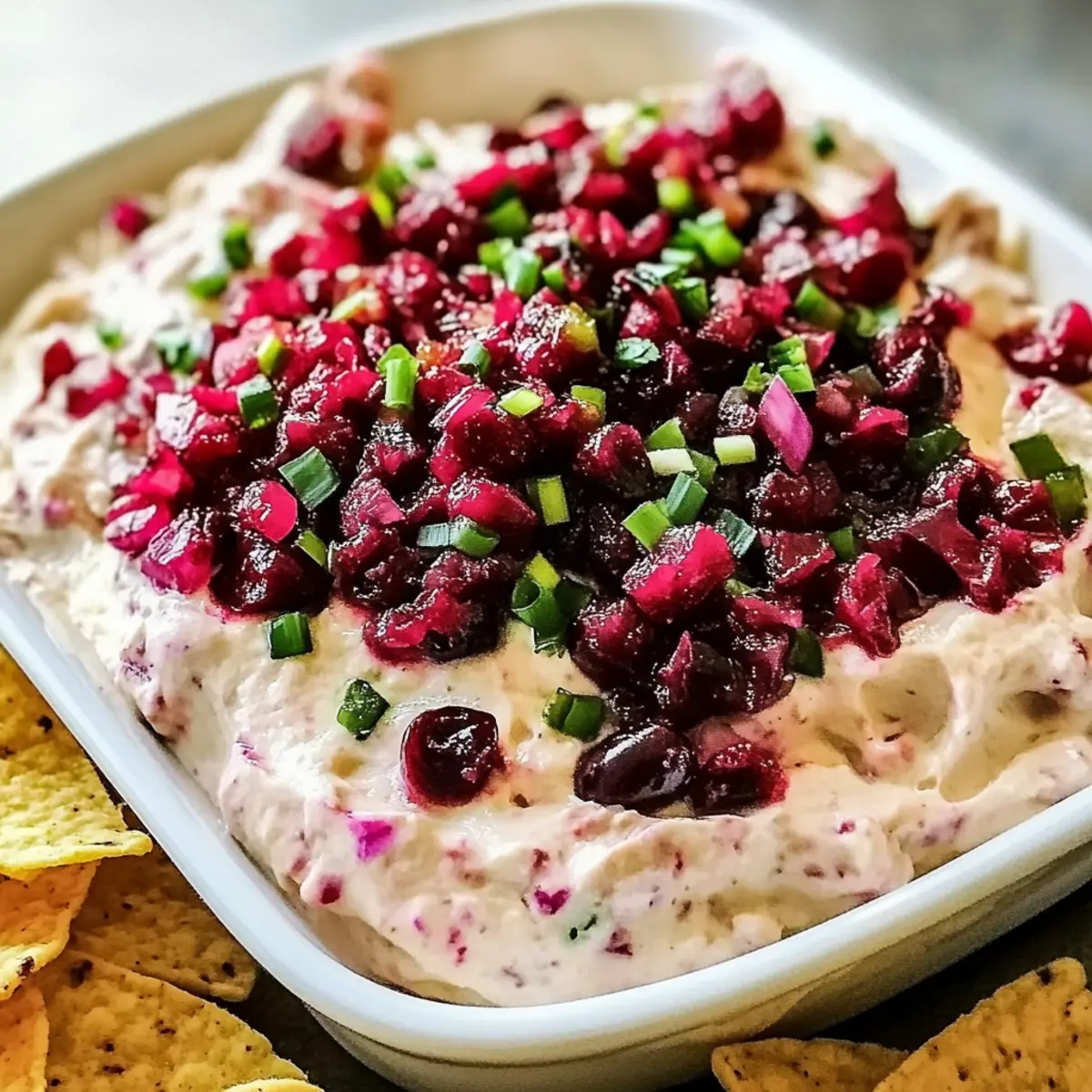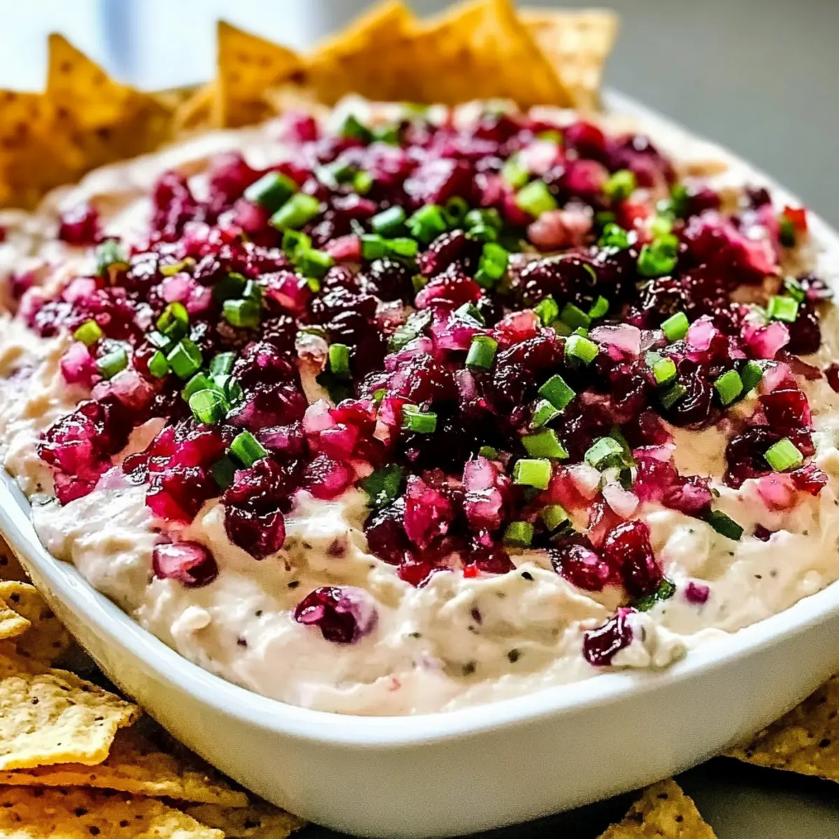 „Ich kann es kaum erwarten, euch dieses aufregende Rezept vorzustellen: der Preiselbeer-Jalapeño-Cremekäse-Dip. Wenn ihr auf der Suche nach einer schnellen und leckeren Möglichkeit seid, eure Gäste zu beeindrucken, dann ist dieser Dip genau das Richtige für euch! In nur 15 Minuten zubereitet, kombiniert er die Cremigkeit von Frischkäse mit der erfrischenden Säure von Preiselbeeren und einem pikanten Kick von Jalapeños. Die Anpassungsfähigkeit dieses Rezepts ist ein weiterer Bonus: Ihr könnt den Süße- und Schärfegrad ganz nach eurem Geschmack einstellen. Egal, ob ihr ihn mit Tortilla-Chips oder frischem Gemüse serviert, dieser Dip wird garantiert zum Star eurer nächsten Feier. Seid ihr bereit, euren Gästen ein wahres Geschmackserlebnis zu bieten?“ Warum ist dieser Dip so unwiderstehlich? Einfachheit: Die Zubereitung des Preiselbeer-Jalapeño-Cremekäse-Dips ist kinderleicht und benötigt nur 15 Minuten. So bleibt mehr Zeit für eure Gäste! Köstlicher Geschmack: Die Kombination aus süßen Preiselbeeren und würzigen Jalapeños sorgt für ein Geschmackserlebnis, das eure Geschmacksknospen begeistern wird. Vielseitigkeit: Ihr könnt die Zutaten ganz nach eurem Geschmack anpassen – von der Schärfe der Jalapeños bis hin zur Art des Käses. Warum nicht auch ein wenig Lachs Mit Spargel dazu servieren? Begeisterung garantiert: Dieser Dip ist nicht nur lecker, sondern auch ein echter Hingucker auf jeder Feier. Serviert ihn mit Tortilla-Chips oder frischen Gemüsesticks für ein gelungenes Buffet! Gesunde Wahl: Mit frischen Zutaten ist dieser Dip eine köstliche, kalorienbewusste Option für jeden Anlass. Preiselbeer-Jalapeño-Cremekäse-Dip Zutaten • Dieser Dip ist einfach, schnell und perfekt für eure nächste Feier! Für den Dip Frischkäse – Die Basis des Dips, sorgt für eine reichhaltige und cremige Textur. Substitution: Neufchâtel-Käse für eine leichtere Option. Frische Preiselbeeren – Bringt eine fruchtige Süße und eine angenehme Säure, die hervorragend mit Jalapeños harmoniert. Substitution: Preiselbeersoße aus dem Glas für eine noch schnellere Zubereitung nutzen. Jalapeños – Fügt eine pikante Note hinzu; passt die Menge je nach gewünschtem Schärfegrad an. Frühlingszwiebeln – Sorgt für zusätzlichen Crunch und einen milden Zwiebelgeschmack. Substitution: Schnittlauch oder Schalotten für eine ähnliche Textur. Geriebener Cheddar-Käse – Verleiht dem Dip Tiefe und zusätzliche Cremigkeit. Substitution: Verwende Pepper Jack für mehr Würze. Sauerrahm – Bringt eine angenehme Säure und Cremigkeit in die Mischung. Substitution: Griechischer Joghurt für eine gesündere Variante. Honig (optional) – Verstärkt die Süße und balanciert die Aromen der Preiselbeeren und Jalapeños. Omitieren für einen weniger süßen Dip. Salz und Pfeffer – Abschmecken nach Belieben. Für das Servieren Tortilla-Chips oder Cracker – Ideal zum Dippen, bringen Knusprigkeit in das Geschmackserlebnis. Frisches Gemüse – Karotten- oder Selleriesticks sind eine gesunde Ergänzung und bringen Frische. Schritt-für-Schritt-Anleitung für Preiselbeer-Jalapeño-Cremekäse-Dip Step 1: Frischkäse vorbereiten Schlage den weich gewordenen Frischkäse in einer großen Schüssel mit einem Handmixer oder einer Gabel, bis er schön glatt und cremig ist. Dies sollte etwa 2 bis 3 Minuten dauern. Achte darauf, dass keine Klumpen zurückbleiben, um eine gleichmäßige Textur für deinen Preiselbeer-Jalapeño-Cremekäse-Dip zu erzielen. Step 2: Sauerrahm hinzufügen Füge nun den Sauerrahm hinzu und mische alles gut durch, bis die Zutaten bestens kombiniert sind. Dies sollte etwa 1 bis 2 Minuten in Anspruch nehmen. Der Sauerrahm sorgt dafür, dass der Dip eine cremige Konsistenz erhält und gleichzeitig eine leichte Säure beisteuert, die die süßen Preiselbeeren ausgleicht. Step 3: Preiselbeeren einarbeiten Wenn du frische Preiselbeeren verwendest, zerkleinere diese grob und füge sie dann zur Mischung hinzu. Bei Verwendung von Preiselbeersoße kannst du sie direkt hineingeben. Mische alles gut, sodass die Preiselbeeren gleichmäßig in den Dip verteilt sind. Dies gibt deinem Preiselbeer-Jalapeño-Cremekäse-Dip die fruchtige Note, die ihn besonders macht. Step 4: Jalapeños untermischen Stirn in die fein gehackten Jalapeños, wobei du die Menge je nach gewünschtem Schärfegrad anpassen kannst. Achte darauf, gleichmäßig zu rühren, damit sich die Jalapeños optimal im Dip verteilen. Der peperonische Kick wird zu einem aufregenden Element in deinem Dip beitragen und ihn zu einem echten Highlight machen. Step 5: Frühlingszwiebeln hinzufügen Falte die in Ringe geschnittenen Frühlingszwiebeln unter den Dip, um zusätzlichen Crunch und Geschmack zu bringen. Dieser Schritt dauert nur ein paar Sekunden, achte darauf, dass die Zwiebeln gut in die Mischung integriert werden, damit der Preiselbeer-Jalapeño-Cremekäse-Dip eine schöne Textur erhält. Step 6: Käse einmischen Nun füge den geriebenen Cheddar-Käse hinzu und vermische alles gründlich, bis der Käse gleichmäßig verteilt ist. Dies wird etwa 1 bis 2 Minuten dauern. Der Käse wird dem Dip eine zusätzliche Cremigkeit verleihen und die Geschmackstiefe steigern. Step 7: Abschmecken Schmecke den Dip mit Salz und Pfeffer ab. Wenn du es süßer magst, füge auch einen Teelöffel Honig hinzu und rühre nochmals gut um. Die individuelle Anpassung des Geschmacks ist wichtig, um den perfekten Preiselbeer-Jalapeño-Cremekäse-Dip herzustellen, der allen schmeckt. Step 8: Kühlen Übertragen den Dip in eine Servierschüssel, decke sie ab und stelle sie für mindestens 30 Minuten in den Kühlschrank. Dies gibt den Aromen Zeit, sich zu vermischen und intensiviert den Geschmack deines Preiselbeer-Jalapeño-Cremekäse-Dips. Step 9: Servieren Serviere den Dip kühl mit Tortilla-Chips, Crackern oder frischem Gemüse. Dies sorgt für ein einladendes und abwechslungsreiches Snack-Erlebnis, das ideal für deine nächste Feier od