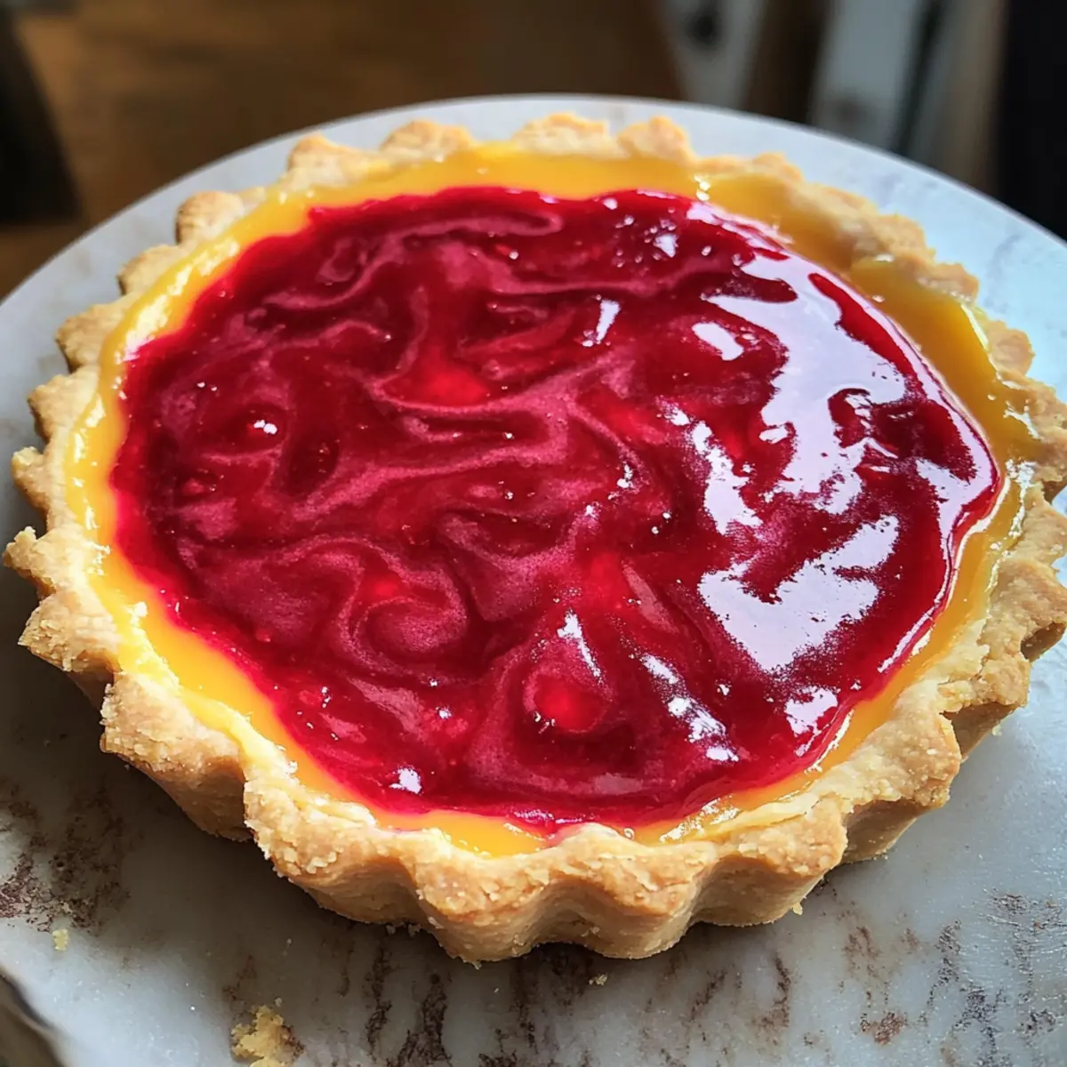 In der Küche gibt es Momente, die einfach magisch sind. Der Augenblick, in dem der zarte Duft von frisch gebackenem Gebäck durch die Räume zieht, ist unvergleichlich. Heute lade ich euch ein, mit mir eine Preiselbeere-Orange-Curd-Torte zu kreieren, die nicht nur dem Gaumen schmeichelt, sondern auch das Auge erfreut. Diese Torte vereint die spritzige Süße von Orangen mit der herben Note von Preiselbeeren zu einem cremigen Traum, der perfekt für festliche Anlässe oder gemütliche Familienabende ist. Ein großer Vorteil dieser Rezeptur ist die Vielseitigkeit—ob glutenfrei oder in kleinen Portionsformen, sie passt sich jedem Anlass an. Außerdem ist sie einfach zuzubereiten, sodass ihr mehr Zeit mit euren Liebsten verbringen könnt. Seid ihr bereit, eure Geschmacksknospen zu verwöhnen und gemeinsam ein wunderbares Dessert zu zaubern? Warum wirst du diese Torte lieben? Einzigartige Geschmackskombination: Die Verbindung von spritzigen Orangen und herben Preiselbeeren sorgt für einen unwiderstehlichen Geschmack, der begeistert. Einfache Zubereitung: Auch ohne ausgeklügelte Backkünste kannst du dieses Rezept leicht nachmachen—ideal für spontane Gelegenheiten oder geplante Feste. Vielseitigkeit: Ob als glutenfreie Variante oder in Mini-Portionen, diese Torte passt sich problemlos deinen Bedürfnissen an. Atemberaubende Präsentation: Die leuchtenden Farben und die cremige Konsistenz machen sie zu einem echten Hingucker auf jedem Tisch—perfekt, um Gäste zu beeindrucken. Zeit sparen: Du kannst die Torte im Voraus zubereiten und sie bleibt im Kühlschrank bis zum Servieren frisch—weniger Stress für dich! Preiselbeere Orange Curd Torte Zutaten • Hinweis: Entdecke die köstlichen Zutaten für die Preiselbeere Orange Curd Torte, die eine perfekte Balance zwischen Süße und Säure bietet. Für die Curd Preiselbeeren – bringen eine frische, herbe Note und sorgen für die leuchtend rote Farbe; frisch oder gefroren verwendbar. Orangen – hinzufügen von spritziger Süße; verwende immer frische Orangen für optimalen Geschmack, kein Saft aus der Flasche. Zucker – süßt die Curd und balanciert die Säure der Preiselbeeren aus. Eier – sorgen für eine reichhaltige, cremige Textur der Curd. Butter – verleiht der Curd eine samtige und reiche Konsistenz. Für den Tortenboden Tartschalen (fertig oder selbstgemacht) – bilden die Basis für die Curd; eine glutenfreie Option kann ebenfalls verwendet werden. Diese Zutaten ermöglichen es dir, eine unwiderstehliche Preiselbeere Orange Curd Torte zu münden, die großartig aussieht und ebenso schmeckt! Schritt-für-Schritt-Anleitung für die Preiselbeere Orange Curd Torte Step 1: Ofen vorheizen Heize den Ofen auf 175°C (350°F) vor. Dies ist ein wichtiger Schritt, um sicherzustellen, dass die Preiselbeere Orange Curd Torte gleichmäßig gebacken wird. Ein vorgeheizter Ofen verhindert, dass der Teig eine schlaffe Kruste bekommt. Step 2: Preiselbeeren und Zucker kochen Nehme einen mittelgroßen Topf und gebe die Preiselbeeren zusammen mit dem Zucker bei mittlerer Hitze hinein. Koche die Mischung unter ständigem Rühren für etwa 6–8 Minuten, bis die Preiselbeeren aufplatzen und eine leuchtend rote Sauce entsteht. Achte darauf, dass die Mischung nicht anbrennt. Step 3: Pürieren und abseihen Nachdem die Preiselbeeren gekocht sind, püriere die Mischung mit einem Stabmixer, bis sie schön glatt ist. Wenn du eine samtige Textur der Curd möchtest, kannst du die Mixtur durch ein Sieb abseihen, um die Schalen zu entfernen. Dies verleiht deiner Preiselbeere Orange Curd Torte eine cremige Konsistenz. Step 4: Eier temperieren In einer separaten Schüssel verquirlst du die Eier, um sie gut zu vermengen. Nimm etwas von der warmen Preiselbeermischung und gieße sie langsam zu den Eiern, während du ständig umrührst. Dies verhindert, dass die Eier gerinnen und sorgt dafür, dass die Curd schön cremig bleibt. Step 5: Curd kochen Gieße die temperierte Eimischung zurück in den Topf mit der Preiselbeermischung. Koche die Mischung bei mittlerer bis niedriger Hitze unter ständigem Rühren für 7–10 Minuten, bis sie dickflüssig wird und den Rücken eines Löffels beschichtet. Die Curd sollte leicht blubbern, aber nicht kochen. Step 6: Butter einrühren Nehme den Topf vom Herd und füge die Butter hinzu. Rühre die Butter in die heiße Curd, bis sie vollständig geschmolzen ist und du eine glatte, cremige Textur erhältst. Dies trägt zur Reichhaltigkeit und zum Geschmack der Preiselbeere Orange Curd Torte bei. Step 7: Curd in den Tortenboden gießen Gieße die zubereitete Curd vorsichtig in die vorgebackene Tartschale. Verwende einen Spatel, um die Curd gleichmäßig zu verteilen, sodass die Oberfläche schön glatt ist. Achte darauf, dass keine Luftbläschen im Teig entstehen, damit die Torte gleichmäßig backt. Step 8: Torte backen Backe die Torte für 20–25 Minuten im vorgeheizten Ofen. Achte darauf, dass die Ränder fest sind, während die Mitte gut wackeln darf. Diese leichte Bewegung zeigt an, dass die Curd perfekt gebacken ist und beim Auskühlen fest wird. Step 9: Abkühlen und kühlen Lass die Preiselbeere Orange Curd Torte zunächst bei Raumtemperatur abkühlen, bevor du sie für mindestens 1 Stunde in den Kühlschrank stellst. Dies hilft der Curd, sich vollständig zu setzen und erleichtert das Schneiden und Servieren. Preiselbeere Orange Curd Torte Varianten Lass deiner Kreativität freien Lauf und passe diese bezaubernde Torte nach deinem Geschmack an! Glutenfrei: Verwende eine glutenfreie Tartschale, um diese köstliche Torte für alle Genüsse zugänglich zu machen. Zitronen-Variante: Ersetze die Orangen durch frische Zitronen für eine intensivere, erfrischende Geschmacksnote. Ein Hauch von Zitrusschale bringt zusätzlichen Pepp! Kokos-Lieber: Füge zu der Curd geraspelte Kokosnüsse hinzu, um eine tropische Note zu zaubern. Du wirst den süßen Kontrast lieben! Individuelle Tartlets: Bereite die Torte in Mini-Tartformen