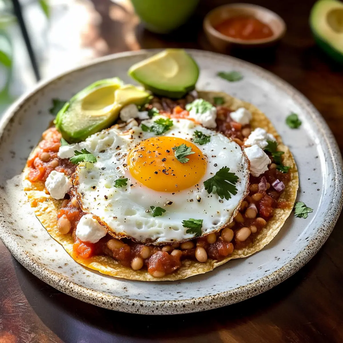 In einer kleinen mexikanischen Küche, umgeben von bunten Fliesen und dem Duft von frisch gebrühtem Kaffee, kam der Moment, der mir die Augen für Frühstücksgenüsse öffnete: Huevos Rancheros. Diese köstliche Kombination aus knusprigen Tortillas, cremigen Refried Beans, perfekt gebratenen Eiern und einer spritzigen Salsa wird nicht nur eure Morgenroutine aufpeppen, sondern macht auch jeden Brunch zu einem Fest für die Sinne. Als ein schnelles und anpassbares Gericht bietet es eine Freiheit, die man selten beim Frühstück findet – ob mit Avocado, frischem Koriander oder einem Hauch von Käse, die Möglichkeiten sind endlos! Seid ihr bereit für einen herzhaften Start in den Tag? Lasst uns gemeinsam diese leckeren Ranchereier zubereiten! Warum wirst du dieses Rezept lieben? Einfachheit pur: Die Zubereitung von Ranchereiern erfordert nur grundlegende Kochkenntnisse und ist schnell umsetzbar. Vielseitige Anpassungsmöglichkeiten: Du kannst Zutaten nach Belieben austauschen, sei es bei den Tortillas oder den Bohnen. Reichhaltiger Geschmack: Die Kombination aus frischen Zutaten und Gewürzen sorgt für ein geschmackliches Erlebnis, das deine Sinne verzaubert. Herzhaft und sättigend: Ideal für ein nahrhaftes Frühstück oder einen Brunch mit Freunden, der alle begeistert. Schneller Genuss: Perfekt für morgens, wenn die Zeit knapp ist. Die einzelnen Komponenten lassen sich zügig zubereiten und einfach zusammensetzen. Bring deinen Frühstücksgenuss auf die nächste Stufe mit diesen Ranchereiern und entdecke auch unser Minestrone Suppe Rezept für ein herzhaftes Mittagessen oder die köstlichen Brownies Rezept Lecker als süßen Abschluss! Ranchereier Zutaten Entdecke die köstlichen Zutaten für die perfekte Zubereitung! Für die Tortillas Mais-Tortillas – Sie bilden die knusprige Basis des Gerichts und sind traditionell unverzichtbar. Öl – Zum Frittieren der Tortillas; wähle dein Lieblingsöl für den besten Geschmack. Für die Füllung Eier – Das Hauptprotein, idealerweise in der klassischen sunny-side-up-Variante zubereitet. Refried Beans – Diese sorgen für Cremigkeit und eine füllende Textur; du kannst sie aus der Dose nutzen oder selbst zubereiten. Für den Geschmack Salsa – Frisch oder aus dem Glas, sie bringt den nötigen Pep in dein Frühstück. Salz und Pfeffer – Unverzichtbare Gewürze, um den Geschmack abzurunden. Optionale Zutaten Avocado – Sorgt für zusätzliche Cremigkeit und einen Hauch von Luxus. Queso Fresco – Ein zerbröselter Käse, der deinem Gericht noch mehr Geschmack verleiht. Frischer Koriander – Für die Garnitur, der Frische und Farbe bringt. Experimentiere mit verschiedenen Toppings und finde dein perfektes Rezept für Ranchereier! Schritt-für-Schritt-Anleitung für Ranchereier Schritt 1: Tortillas frittieren Erhitze in einer großen Pfanne bei mittlerer Hitze ausreichend Öl, um die Tortillas leicht zu frittieren (ca. 2-3 Esslöffel). Frittiere jede Mais-Tortilla für etwa 1-2 Minuten pro Seite, bis sie goldbraun und knusprig ist. Lass sie anschließend auf Küchenpapier abtropfen, um überschüssiges Öl zu entfernen. Schritt 2: Bohnen erwärmen Während die Tortillas abtropfen, erhitze die Refried Beans in einem kleinen Topf bei schwacher Hitze. Rühre regelmäßig um und lasse sie für 4-5 Minuten köcheln, bis sie warm und gut streichfähig sind. Alternativ kannst du sie auch in der Mikrowelle für etwa 1-2 Minuten aufwärmen. Schritt 3: Eier braten Verwende nun die gleiche Pfanne, in der die Tortillas frittiert wurden, und erhitze gegebenenfalls etwas mehr Öl. Brate die Eier bei mittlerer Hitze für 2-3 Minuten, bis die Ränder leicht knusprig und das Eigelb nach Wunsch, z.B. sunny-side-up, weich ist. Würze die Eier mit Salz und Pfeffer. Schritt 4: Anrichten Nehme die warmen Tortillas und verteile jeweils eine großzügige Schicht der erwärmten Refried Beans darauf. Setze vorsichtig ein gebratenes Ei auf jede Tortilla und löffele frisch zubereitete Salsa darüber. Achte darauf, dass alles gut verteilt ist, um den vollen Geschmack der Ranchereier zu genießen. Schritt 5: Garnieren und Servieren Verleihe deinen Ranchereiern mit optionalen Toppings wie Avocadoscheiben, zerbröseltem Queso Fresco und frischem Koriander den letzten Schliff. Die Garnitur sorgt nicht nur für mehr Geschmack, sondern auch für ein einladendes Aussehen. Serviere die Ranchereier sofort, um die knusprigen Tortillas und die warmen Zutaten zu genießen. Aufbewahrungstipps für Ranchereier Raumtemperatur: Halte die Ranchereier nicht länger als 2 Stunden bei Raumtemperatur, um die Frische zu bewahren. Kühlschrank: Gekochte Komponenten können bis zu 3 Tage in luftdichten Behältern im Kühlschrank aufbewahrt werden. Halte die Tortillas, Bohnen und Salsa separat, um die Texturen zu erhalten. Gefrierschrank: Tortillas, Bohnen und Salsa lassen sich hervorragend einfrieren; achte jedoch darauf, die Eier nicht einzufrieren, da sie ihre Konsistenz verlieren können. Aufwärmen: Um die Ranchereier aufzuwärmen, erhitze die Bohnen und die Salsa in der Mikrowelle oder auf dem Herd, brate die Eier frisch und serviere sie auf den erwärmten Tortillas. Ranchereier Variationen & Alternativen Lass deiner Kreativität freien Lauf und entdecke, wie du die Ranchereier nach deinem Geschmack anpassen kannst! Glutenfrei: Ersetze die Mais-Tortillas durch glutenfreie Tortillas oder selbstgemachte Süßkartoffel-Tortillas für eine ebenso köstliche Option. Vegetarisch: Tausche die Refried Beans gegen Kichererbsen oder Quinoa aus, um einen proteinreichen, fleischfreien Genuss zu kreieren. Extra würzig: Füge frisch gehackte Jalapeños oder eine scharfe Salsa hinzu, um deinen Ranchereiern einen feurigen Kick zu geben. Herzhafter Genuss: Verleihe deinen Ranchereiern mehr Substanz, indem du chorizo oder gebratenes Gemüse wie Paprika und Zwiebeln hinzufügst. Avocado-Überraschung: Statt frischer Avocado kannst du Guacamole verwenden, um einen cremigen und geschmackvollen Akze