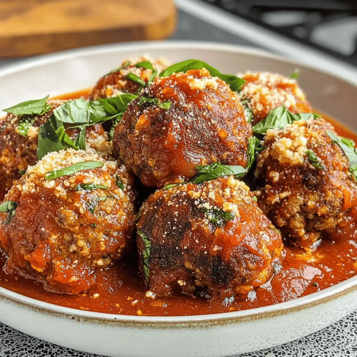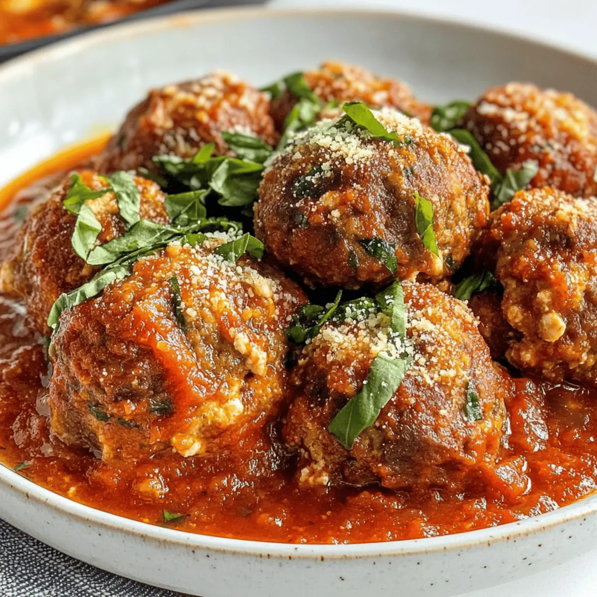 Während ich in meiner Küche stehe und die Zutaten für diese köstlichen Ricotta-Möge vorbereite, kann ich das unvergessliche Aroma von frisch gebackenem Brot und tomatensauce in der Luft schon fast schmecken. Diese Ricotta-Möge sind nicht nur außergewöhnlich zart und saftig, sondern auch perfekt für ein schnelles Abendessen unter der Woche. Durch die Zugabe von Ricotta erhalten sie eine einzigartige, luftige Textur, die sie von gewöhnlichen Fleischklößchen abhebt. Sie lassen sich hervorragend über Pasta servieren oder in einem herzhaften Fleischklößchen-Sandwich genießen. Es ist also nicht nur einfach, sondern auch eine prima Möglichkeit, die Familie und Freunde zu begeistern. Wer kann da schon widerstehen? Sind Sie bereit, diese Gaumenfreude zu genießen? Warum sind diese Fleischbällchen so besonders? Einzigartige Textur: Die Zugabe von Ricotta macht diese Fleischbällchen außergewöhnlich zart und saftig. Sie haben eine fluffige Konsistenz, die einfach schmelzend im Mund ist. Schnelle Zubereitung: Mit einem klaren Rezept können selbst Anfänger im Handumdrehen köstliche Fleischbällchen zaubern. Perfekt für ein schnelles Abendessen! Vielfältige Serviermöglichkeiten: Ob über Pasta, in einem Fleischklößchen-Sandwich oder neben einem frischen Salat – diese Bällchen sind unglaublich vielseitig. Herzlicher Geschmack: Die Kombination aus frischen Kräutern und aromatischen Gewürzen sorgt für eine Geschmacksexplosion, die alle begeistert. Für Ideen, wie Sie diese Speise personalisieren können, schauen Sie sich auch unsere anderen Rezeptideen an! Ricotta Fleischbällchen Zutaten • Eine köstliche Mischung für perfekten Genuss! Für die Fleischbällchen Gemahlenes Rindfleisch – Hauptproteinquelle; kann durch gemahlenen Truthahn oder Hähnchen für eine fettärmere Option ersetzt werden. Trockenes Paniermehl – Sorgt für Struktur und bindet die Fleischbällchen, benutze glutenfreies Paniermehl für eine glutenfreie Version. Großes Ei – Dient als Bindemittel und ist entscheidend für die Kohäsion der Fleischbällchen. Vollfette Ricotta – Fügt Zartheit und Feuchtigkeit hinzu; kann durch fettarme Ricotta für eine leichtere Option ersetzt werden. Geriebener Parmesan – Verleiht Geschmack und kann durch Pecorino Romano für ein intensiveres Aroma ersetzt werden. Frische Petersilie, gehackt – Bringt Frische; ersetzt durch Basilikum oder Spinat für verschiedene Geschmäcker. Frischer Basilikum, gehackt – Fügt aromatische Noten hinzu; bei Bedarf kann getrockneter Basilikum verwendet werden – weniger verwenden! Frischer Knoblauch, gehackt – Gibt Tiefe; kann bei Bedarf durch Knoblauchpulver ersetzt werden (1/4 TL pro Knoblauchzehe). Geriebene Zwiebel – Steigert die Feuchtigkeit und Süße; Zwiebelpulver ist eine alternative Option. Salz – Verstärkt die Aromen; nach Geschmack anpassen. Pfeffer – Fügt milde Schärfe hinzu; frisch gemahlener Pfeffer sorgt für besseren Geschmack. Olivenöl – Zum Anbraten der Fleischbällchen verwendet; kann durch Pflanzenöl ersetzt werden. Für die Marinara-Sauce Marinara-Sauce – Die perfekte Begleitung für die zarten Ricotta Fleischbällchen; sorgt für zusätzlichen Geschmack und Feuchtigkeit. Diese Ricotta Fleischbällchen sind ein wahres Geschmackserlebnis, das Sie und Ihre Familie im Handumdrehen begeistern wird! Schritt-für-Schritt-Anleitungen für Ricotta Fleischbällchen Step 1: Mischung vorbereiten In einer großen Schüssel kombinieren Sie das gemahlene Rindfleisch, das trockene Paniermehl, das Ei, die Ricotta, 1/4 Tasse Parmesan, die Petersilie, den Basilikum, den Knoblauch, die Zwiebel, Salz und Pfeffer. Mischen Sie alle Zutaten sanft mit den Händen, bis sie gerade so kombiniert sind. Achten Sie darauf, nicht zu übermixen, um die Zartheit der Ricotta Fleischbällchen zu bewahren. Step 2: Fleischbällchen formen Formen Sie aus der vorbereiteten Mischung gleichmäßige Bällchen mit einem Durchmesser von etwa 3,5 cm. Stellen Sie sicher, dass die Bällchen gleichmäßig sind, damit sie gleichmäßig garen. Legen Sie die geformten Fleischbällchen auf einen großen Teller oder eine Backform und lassen Sie sie kurz ruhen, während Sie die Pfanne vorbereiten. Step 3: Fleischbällchen anbraten Erhitzen Sie in einer großen Pfanne bei mittlerer Hitze etwas Olivenöl. Fügen Sie die geformten Ricotta Fleischbällchen vorsichtig hinzu, wobei Sie darauf achten, dass sie nicht überfüllt sind. Braten Sie sie für etwa 2-3 Minuten pro Seite an, bis sie auf allen Seiten schön goldbraun sind. Die Bräunung sorgt für eine köstliche, leicht knusprige Fläche. Step 4: In Sauce köcheln lassen Gießen Sie die Marinara-Sauce gleichmäßig über die gebratenen Fleischbällchen in der Pfanne. Decken Sie die Pfanne ab und lassen Sie die Bällchen bei niedriger Hitze etwa 15-20 Minuten köcheln, bis sie vollständig durchgegart sind. Achten Sie darauf, dass die Sauce leicht blubbert, was auf die perfekte Zubereitung hinweist. Step 5: Servieren Sobald die Ricotta Fleischbällchen fertig sind, nehmen Sie die Pfanne vom Herd. Bestreuen Sie die Bällchen mit dem verbleibenden Parmesan und servieren Sie sie über Pasta oder in einem Fleischklößchen-Sandwich. Genießen Sie das fantastische Aroma und die Zartheit dieser herrlichen Fleischbällchen! Variationen & Substitutionen Entdecken Sie spannende Möglichkeiten, um Ihre Ricotta Fleischbällchen noch individueller und köstlicher zu gestalten! Lassen Sie Ihrer Kreativität freien Lauf. Vegetarische Option: Ersetzen Sie das gemahlene Rindfleisch durch pflanzliches Hack und verwenden Sie eine milchfreie Ricotta-Alternative für ein ähnliches Geschmackserlebnis. Käsevariationen: Probieren Sie verschiedene Käsesorten wie Feta oder Fontina für einen einzigartigen Geschmack; jede Variante bringt eine andere Note in die Bällchen. Würzige Variante: Fügen Sie eine Prise Cayennepfeffer oder frisch gehackte Chilischoten hinzu, um die Fleischbällchen ordentlich au