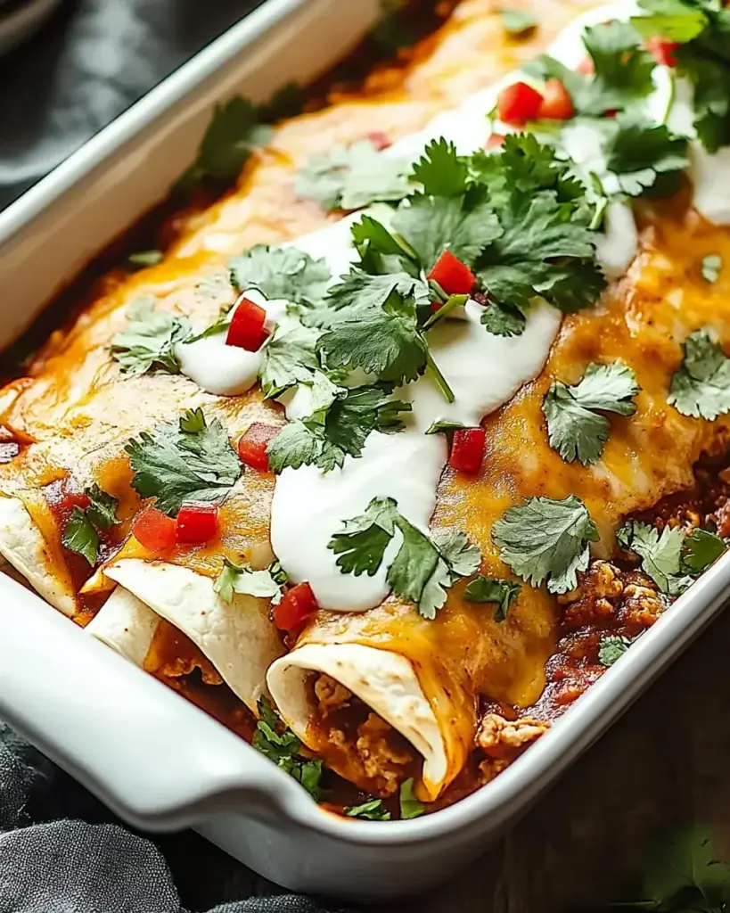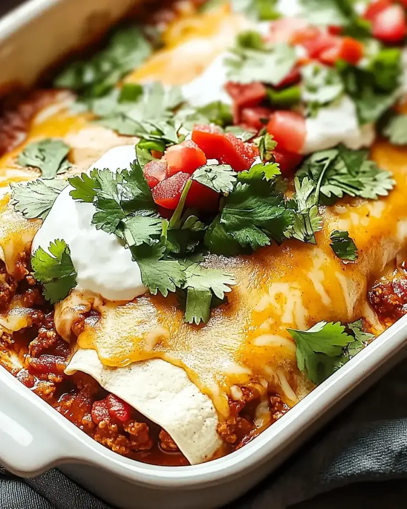 Einführung in Ground Beef Enchiladas Wenn ich an die besten Abendessen denke, die ich je zubereitet habe, kommen mir sofort die Ground Beef Enchiladas in den Sinn. Dieses Rezept ist nicht nur einfach, sondern auch eine wahre Geschmacksexplosion! Perfekt für einen geschäftigen Wochentag, wenn die Zeit knapp ist, aber der Hunger groß. Die Kombination aus würzigem Rinderhackfleisch, frischen Zutaten und geschmolzenem Käse wird Ihre Lieben begeistern. Egal, ob Sie ein schnelles Familienessen oder ein gemütliches Treffen mit Freunden planen, diese Enchiladas sind die ideale Lösung. Lassen Sie uns gemeinsam in die Welt der mexikanischen Küche eintauchen! Warum Sie Ground Beef Enchiladas lieben werden Die Ground Beef Enchiladas sind der Inbegriff von Komfortessen. Sie sind nicht nur schnell zubereitet, sondern auch unglaublich schmackhaft. In weniger als einer Stunde können Sie ein herzhaftes Gericht auf den Tisch bringen, das die ganze Familie lieben wird. Die Kombination aus würzigem Rinderhackfleisch und geschmolzenem Käse sorgt für ein Geschmackserlebnis, das einfach glücklich macht. Glauben Sie mir, einmal probiert, werden Sie sie immer wieder machen wollen! Zutaten für Ground Beef Enchiladas Um die köstlichen Ground Beef Enchiladas zuzubereiten, benötigen Sie einige grundlegende Zutaten, die Sie wahrscheinlich schon in Ihrer Küche haben. Hier ist eine Liste: Rinderhackfleisch: Die Hauptzutat, die für den herzhaften Geschmack sorgt. Sie können auch Hähnchen- oder pflanzliche Alternativen verwenden. Zwiebel: Sie verleiht den Enchiladas eine süße Note und sorgt für zusätzliche Textur. Knoblauch: Ein Muss für den aromatischen Kick. Frisch gehackt ist am besten, aber Pulver funktioniert auch. Gewürfelte Tomaten: Diese bringen Frische und Saftigkeit in die Füllung. Achten Sie auf die Qualität, um den besten Geschmack zu erzielen. Kreuzkümmel: Ein Gewürz, das den Enchiladas ihren charakteristischen mexikanischen Geschmack verleiht. Paprikapulver: Für eine milde Süße und eine schöne Farbe. Tortillas: Die Basis für Ihre Enchiladas. Weiche Maistortillas sind ideal, aber auch Weizentortillas sind eine gute Wahl. Geriebener Käse: Gouda oder Cheddar schmelzen wunderbar und machen das Gericht besonders cremig. Salsa: Sie sorgt für zusätzliche Würze und Frische. Wählen Sie eine milde oder scharfe Variante, je nach Vorliebe. Salz und Pfeffer: Für die perfekte Würze. Diese sollten nach Geschmack hinzugefügt werden. Frische Korianderblätter: Optional, aber sie bringen eine frische Note und Farbe auf den Teller. Die genauen Mengenangaben finden Sie am Ende des Artikels, wo Sie das Rezept auch ausdrucken können. So haben Sie alles griffbereit, wenn Sie sich ans Kochen machen! So machen Sie Ground Beef Enchiladas Jetzt wird es spannend! Lassen Sie uns Schritt für Schritt durch den Prozess der Zubereitung dieser köstlichen Ground Beef Enchiladas gehen. Es ist einfacher, als Sie denken, und das Ergebnis wird Ihre Geschmacksknospen erfreuen! Schritt 1: Rinderhackfleisch anbraten Beginnen Sie mit einer großen Pfanne und erhitzen Sie sie bei mittlerer Hitze. Geben Sie das Rinderhackfleisch hinein und braten Sie es an, bis es schön braun ist. Achten Sie darauf, es gut zu zerkleinern, damit es gleichmäßig gart. Nach etwa 5 Minuten fügen Sie die gewürfelte Zwiebel und den gehackten Knoblauch hinzu. Braten Sie alles zusammen weiter, bis die Zwiebel weich und durchsichtig ist. Der Duft, der dabei entsteht, ist einfach himmlisch! Schritt 2: Tomaten und Gewürze hinzufügen Sobald das Fleisch und das Gemüse gut angebraten sind, geben Sie die gewürfelten Tomaten in die Pfanne. Fügen Sie auch den Kreuzkümmel, das Paprikapulver, Salz und Pfeffer hinzu. Rühren Sie alles gut um und lassen Sie die Mischung für etwa 5 Minuten köcheln. So können sich die Aromen wunderbar entfalten und verbinden. Schritt 3: Ofen vorheizen und Auflaufform vorbereiten Während die Füllung köchelt, heizen Sie den Ofen auf 180 °C vor. Nehmen Sie eine Auflaufform und fetten Sie sie leicht ein. Das sorgt dafür, dass die Enchiladas nicht ankleben und schön goldbraun werden. Schritt 4: Tortillas füllen und aufrollen Jetzt kommt der kreative Teil! Nehmen Sie eine Tortilla und geben Sie einen Löffel der Rinderhackfleischmischung in die Mitte. Streuen Sie etwas geriebenen Käse darüber und rollen Sie die Tortilla auf. Legen Sie die gefüllte Tortilla mit der Nahtseite nach unten in die vorbereitete Auflaufform. Wiederholen Sie diesen Schritt, bis alle Tortillas gefüllt sind. Schritt 5: Salsa und Käse hinzufügen Gießen Sie die Salsa gleichmäßig über die Enchiladas. Achten Sie darauf, dass jede Tortilla gut bedeckt ist. Zum Schluss streuen Sie den restlichen geriebenen Käse darüber. So wird alles schön schmelzen und eine köstliche Kruste bilden. Schritt 6: Backen Schieben Sie die Auflaufform in den vorgeheizten Ofen und backen Sie die Enchiladas für 20-25 Minuten. Achten Sie darauf, dass der Käse geschmolzen und goldbraun ist. Der Anblick wird Ihnen das Wasser im Mund zusammenlaufen lassen! Schritt 7: Garnieren und Servieren Bevor Sie die Enchiladas servieren, können Sie sie nach Belieben mit frischen Korianderblättern garnieren. Das gibt nicht nur einen frischen Geschmack, sondern sieht auch toll aus! Servieren Sie die Enchiladas heiß und genießen Sie das herzliche, mexikanische Flair in Ihrem Zuhause. Tipps für den Erfolg Verwenden Sie frische Zutaten für den besten Geschmack. Frisches Gemüse und hochwertiges Fleisch machen einen großen Unterschied. Bereiten Sie die Füllung im Voraus zu. So sparen Sie Zeit, wenn es ans Zusammenstellen geht. Experimentieren Sie mit verschiedenen Käsesorten. Feta oder Monterey Jack können interessante Geschmacksvariationen bieten. Servieren Sie die Enchiladas mit einer Beilage aus Reis oder Bohnen für ein vollständiges Mahl. Halten Sie Salsa und Guacamole bereit, um das Gericht zu verfeinern. Benötigte Ausrüstung Große Pfanne: I
