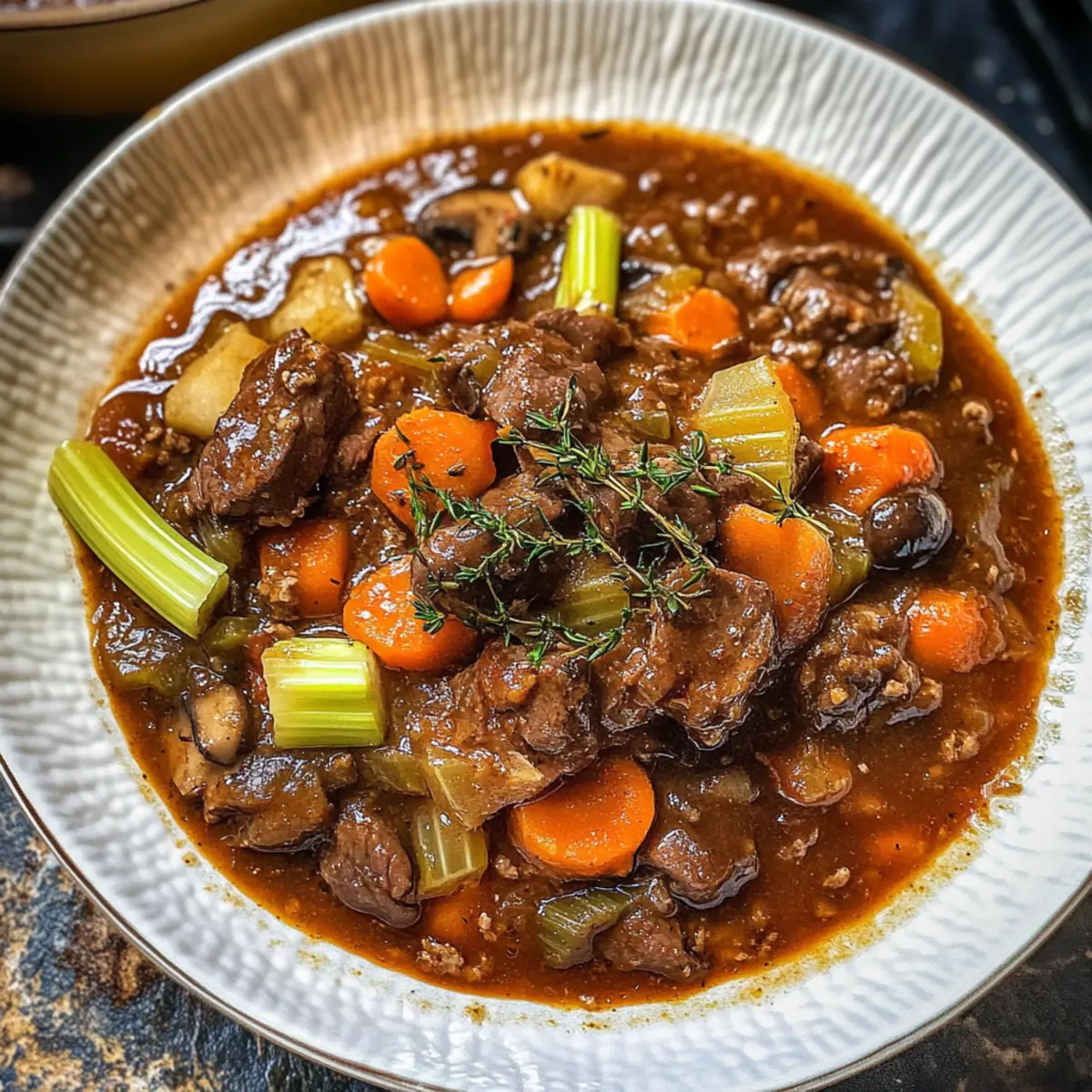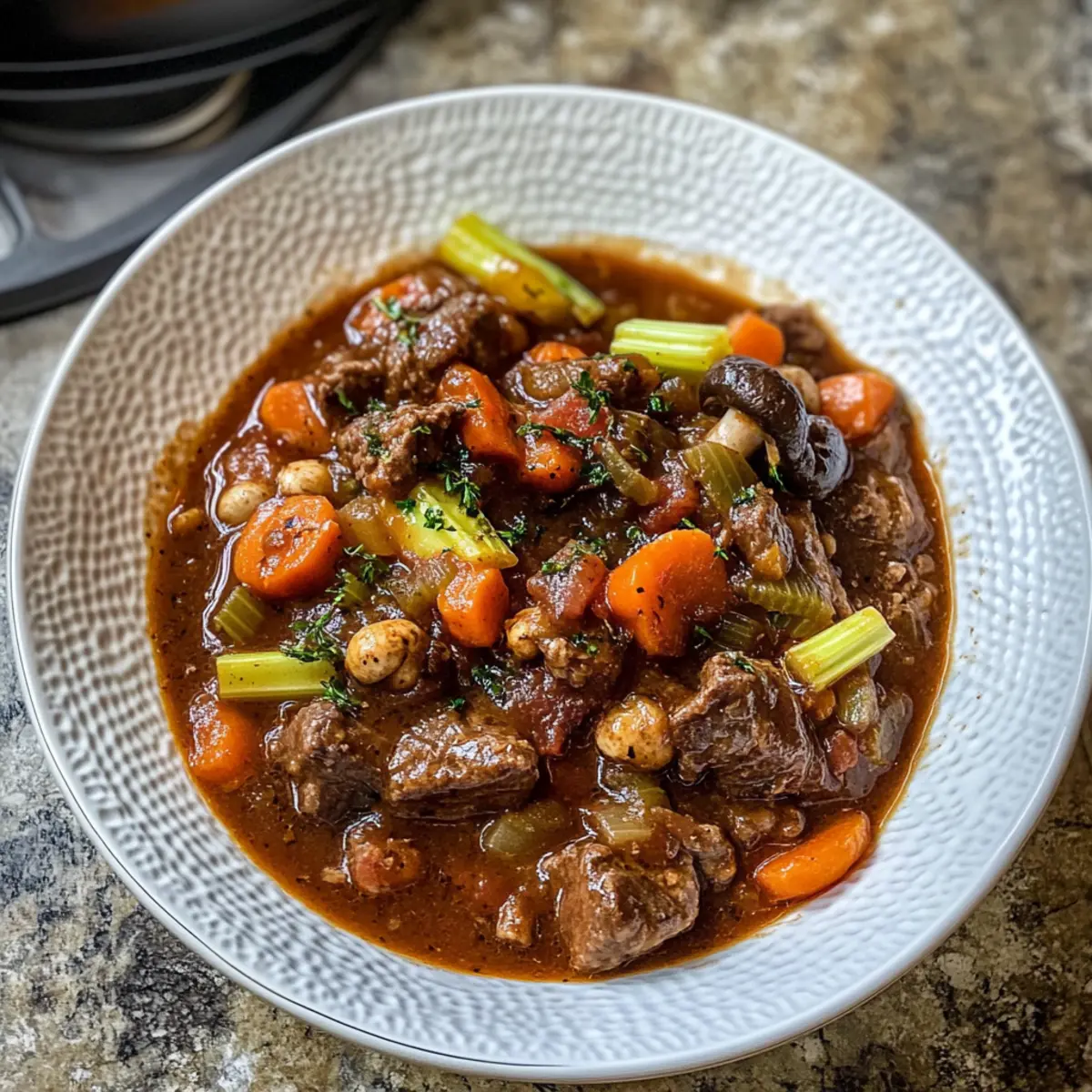 Da steht er, der winterliche Abend, und ich entdecke, dass in meinem Kühlschrank ein köstlicher Schatz auf mich wartet: Spezzatino di Manzo, ein herzhaftes Rindfleischeintopf, das in aller Ruhe vor sich hin köchelt. Mit zarten Rindfleischstücken, die in einer vollmundigen Rotweinsauce sanft gegart werden, verzaubert dieses Gericht auch die müdesten Gemüter. Es ist nicht nur eine Umarmung für den Bauch, sondern auch ein perfektes Rezept für gesellige Abende, das sich wunderbar mit cremiger Polenta kombinieren lässt. Und das Beste? Die Zubereitung ist kinderleicht und die Aromen werden dich sofort begeistern! Hast du schon einmal daran gedacht, dein eigenes Heim mit dem Duft dieses italienischen Klassikers zu füllen? Warum wirst du dieses Rezept lieben? Einfache Zubereitung: Die unkomplizierte Methode macht es leicht, selbst für Kochanfänger, ein köstliches Abendessen zu kreieren. Herzhafter Geschmack: Die Kombination aus Rindfleisch, Rotwein und Gemüse sorgt für ein unvergessliches Geschmackserlebnis. Vielseitige Variationen: Ob mit Polenta oder Kartoffelpüree, dieses Gericht passt zu vielen Beilagen. Ideales Comfort Food: Perfekt geeignet für kalte Winterabende, bringt es Gemütlichkeit in dein Zuhause. Schnelles Kochen im Slow Cooker: Zeit sparen und trotzdem tolle Aromen erzielen? Kein Problem mit der Slow-Cooker-Version! Lade deine Freunde ein und genieße gemeinsam dieses wunderbare Gericht, das auch mit Knoblauchbrot oder frischem Salat serviert werden kann. Rindfleisch-Eintopf Zutaten Für den Eintopf Olivenöl – Für das Anbraten der Zutaten und um zusätzlichen Reichtum zu verleihen; bei Bedarf kann auch Pflanzenöl verwendet werden. Rinderbraten (900 g) – Die Hauptproteinbasis sorgt für eine herzhafte Struktur; kann durch Bruststück ersetzt werden. Pancetta (100 g) – Fügt Tiefe und herzhaften Geschmack hinzu; kann durch Speck ersetzt werden. Zwiebel (1 große) – Essentiell für die aromatische Basis; habe auch Schalotten für einen milderen Geschmack zur Hand. Karotten (2) – Bringen Süße und Farbe ins Spiel; andere Wurzelgemüse wie Sellerie können ebenfalls verwendet werden. Sellerie (2 Stangen) – Ergänzt die Geschmacksbasis; kann weggelassen oder gegen Fenchel für eine besondere Note ausgetauscht werden. Meersalz (2 TL) & schwarzer Pfeffer (1 TL) – Unverzichtbare Gewürze; nach Belieben anpassen. Brauner Zucker (1 TL, optional) – Balanciert die Säure der Tomaten aus; kann durch Honig oder Ahornsirup ersetzt werden. Champignons (200 g) – Sorgen für erdige Noten; auch Champignons sind geeignet. Knoblauch (4 Zehen) – Hebt den Gesamtgeschmack hervor; bei Bedarf kann auch Knoblauchpulver verwendet werden. Tomatenmark (2 EL) – Gibt der Sauce mehr Tiefe; kann durch zerdrückte Tomaten für mehr Textur ersetzt werden. Balsamico-Essig (2 EL) – Verleiht Säure und Süße; Apfelessig kann als Alternative verwendet werden. Rotwein (80 ml) – Fügt Komplexität und Tiefe hinzu; verwende einen hochwertigen trockenen Wein für beste Ergebnisse. Rinderbrühe (600 ml) – Liefert Feuchtigkeit und Geschmack; kann durch Gemüsebrühe für eine leichtere Version ersetzt werden. Lorbeerblatt (1) – Fügt aromatische Noten hinzu; kann durch Thymian oder Oregano ersetzt werden. Rosmarin (1 Zweig) – Verbessert den Geschmack mit seinem harzigen Duft; Thymian kann als Ersatz verwendet werden. Maisstärke (2 TL) – Verdickt die Eintopftxtur; Mehl kann als traditioneller Verdicker verwendet werden. Schritt-für-Schritt-Anleitung für Rindfleisch-Eintopf Step 1: Ofen vorheizen Heize den Ofen auf 160°C (320°F) vor. Dies ist die ideale Temperatur für das langsame Garen des Rindfleisch-Eintopfs. So wird das Fleisch zart und die Aromen können sich harmonisch entfalten. Step 2: Rindfleisch anbraten Erhitze in einem großen Bräter etwas Olivenöl. Brate das gewürfelte Rindfleisch in kleinen Portionen etwa 5-7 Minuten lang an, bis es von allen Seiten gut bräunt. Nimm das Fleisch dann aus dem Topf und lege es in eine Schüssel, um es kurz zur Seite zu stellen. Step 3: Pancetta knusprig braten Gib die Pancetta in den gleichen Topf und brate sie bei mittlerer Hitze an, bis sie knusprig und goldbraun ist. Dies verleiht dem Rindfleisch-Eintopf eine zusätzliche, herzhaft-rauchige Note. Nimm die Pancetta ebenfalls aus dem Topf und stelle sie zu dem Rindfleisch. Step 4: Gemüse anbraten Füge die gewürfelte Zwiebel, Karotten und Sellerie in den heißen Topf hinzu und brate alles bei niedriger Hitze etwa 10 Minuten lang an, bis das Gemüse weich ist. Dies bildet die geschmackliche Basis des Eintopfs. Achte darauf, dass die Zwiebeln glasig, aber nicht braun werden. Step 5: Mit Wein ablöschen Gieße den Rotwein in den Topf, um die Aromen zu intensivieren und den Bratensatz zu lösen. Lasse den Wein 2-3 Minuten köcheln, bis er leicht reduziert ist, was die Aromen des Rindfleisch-Eintopfs weiter vertieft. Step 6: Restliche Zutaten hinzufügen Rühre die geschnittenen Champignons, zerdrückten Knoblauch, Balsamico-Essig und Tomatenmark in das Gemüse ein. Mische alles gründlich, sodass die Aromen gut miteinander verschmelzen. Lass die Mischung für weitere 2 Minuten köcheln, um die Rohheit des Tomatenmarks zu reduzieren. Step 7: Brühe und Gewürze hinzufügen Gib die Rinderbrühe in den Topf, zusammen mit dem angebratenen Rindfleisch, dem Lorbeerblatt und dem Rosmarin. Rühre gut um, damit die Zutaten gleichmäßig verteilt werden. Decke den Topf ab und stelle ihn in den vorgeheizten Ofen. Step 8: Eintopf garen Lasse den Rindfleisch-Eintopf für 90 Minuten im Ofen köcheln. Überprüfe nach dieser Zeit die Zartheit des Rindfleisches; es sollte zart sein und leicht auseinanderfallen. Wenn nötig, lasse es weitere 30 Minuten im Ofen garen, um optimale Ergebnisse zu erzielen. Step 9: Sauce eindicken Löse die Maisstärke in ein wenig Wasser auf und rühre sie in den Eintopf ein, um die Sauce zu verdicken. Lasse den Eintopf nochmals für 10 Minuten köcheln. Sc