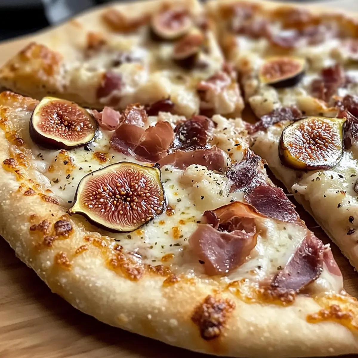 Wenn ich in die Küche gehe, freue ich mich immer darauf, neue Geschmackskombinationen zu entdecken. Heute lade ich dich ein, mit mir in die Welt der saftigen Feigen- und Prosciutto-Pizza einzutauchen! Diese Pizza bietet eine himmlische Balance aus Süße und Herzhaftigkeit dank der köstlich jammy Feigen und dem knusprigen Prosciutto, die auf einer cremigen Knoblauchsauce thronen. Perfekt für ein schnelles Abendessen unter der Woche oder um Gäste zu beeindrucken, ist dieses Rezept nicht nur schnell zubereitet, sondern es wird auch zum Highlight deines nächsten Pizzaabends. Bist du bereit, diese großartige Kombination aus Geschmack und Textur auszuprobieren? Lass uns direkt loslegen! Warum wirst du diese Pizza lieben? Einfache Zubereitung: Die Schritte sind unkompliziert, sodass du diese köstliche Pizza auch an stressigen Wochenabenden zaubern kannst. Himmlische Geschmackskombination: Die süßen Feigen harmonieren perfekt mit dem salzigen Prosciutto und schaffen ein einzigartiges Gourmet-Erlebnis, das deine Geschmacksknospen verzaubern wird. Vielseitig anpassbar: Magst du es gerne anders? Probiere, die Feigen durch Birnen oder die Knoblauchsauce mit frischen Kräutern zu variieren – der Möglichkeiten sind keine Grenzen gesetzt! Beeindruckend für Gäste: Diese Pizza ist ein echter Hingucker und wird bei deinen Freunden und deiner Familie garantiert für Begeisterung sorgen. Perfekte Textur: Die Kombination aus knusprigem Boden und cremigem Belag sorgt für das ideale Pizza-Vergnügen. Praktische Reste: Solltest du mal etwas übrig bleiben, kannst du sie einfach im Kühlschrank aufbewahren oder einfrieren und später schnell wieder aufwärmen. Wenn du in der Stimmung für noch mehr genussvolle Rezepte bist, schau dir auch unsere aromatische Pizza für die ganze Familie an! Saftige Feigen- und Prosciutto-Pizza Zutaten • Diese Zutaten sind der Schlüssel zu deinem neuen Lieblingsrezept! Für die Knoblauchsauce 3 tbsp Butter – Fügt der Sauce eine reichhaltige Note hinzu; alternative: Verwende Olivenöl für eine leichtere Variante. 2 tbsp Mehl – Dient als Verdickungsmittel für die Sauce; kein Ersatz empfohlen. 1 cup Vollmilch – Bietet eine cremige Basis; kann auch mit fettarmer Milch für eine leichtere Option ersetzt werden. 1 tsp Knoblauchpulver – Verleiht der Sauce zusätzlichen Geschmack; frischer, gehackter Knoblauch bringt noch mehr Intensität. 1/2 cup geriebener Parmesan – Sorgt für salzige Tiefe; Pecorino Romano ist ein guter Ersatz für einen schärferen Geschmack. Für den Pizzaboden 2 lb Pizzateig (in 2 Kugeln geteilt) – Die Grundlage für deine Pizza; fertiger Teig ist in Ordnung, hausgemacht bringt jedoch einen frischeren Geschmack. Für den Belag 1 cup Knoblauchsauce – Die Basis deiner Pizza, zubereitet mit den oben genannten Zutaten. 1/2 cup Feigenmarmelade – Fügt Süße und Komplexität hinzu; frische Feigen sind eine großartige Alternative, wenn sie Saison haben. 2 cups geriebener Mozzarella – Sorgt für eine köstliche, schmelzenden Textur; verwende fettreduzierten Mozzarella für eine festere Schmelze. 2 cups gewürfelter Fontina – Bringt Cremigkeit und Geschmack; Gruyère ist eine exzellente Substitution. 1 cup gehackte getrocknete Feigen (ohne Stiele) – Verstärkt das süß-salzige Geschmackserlebnis; frische Feigen bringen eine erfrischende Note. 12 Scheiben Prosciutto – Sorgt für eine salzige, herzhaft Note; dünn geschnittener Serrano-Schinken oder Pancetta sind mögliche Alternativen. 1/2 cup geriebener Parmesan – Für zusätzlichen Geschmack oben auf der Pizza; kann durch jeden harten Käse ersetzt werden. Die Zutaten dieser saftigen Feigen- und Prosciutto-Pizza kombinieren sich wunderbar, um ein unvergessliches Geschmackserlebnis zu schaffen! Schritt-für-Schritt-Anleitung für Saftige Feigen- und Prosciutto-Pizza Step 1: Knoblauchsauce zubereiten Schmelze in einem kleinen Topf bei mittlerer Hitze 3 Esslöffel Butter. Rühre 2 Esslöffel Mehl ein, um einen Roux zu bilden, und koche die Mischung unter ständigem Rühren für 2-3 Minuten. Füge dann allmählich 1 Tasse Vollmilch hinzu, bis die Sauce eindickt; das dauert etwa 5 Minuten. Gib 1 Teelöffel Knoblauchpulver sowie 1/2 Tasse geriebenen Parmesan hinzu und lasse die Sauce anschließend abkühlen. Step 2: Ofen vorheizen Heize deinen Ofen auf 260°C (500°F) vor, um die perfekte knusprige Kruste zu erhalten. Platziere einen Pizzastein im Ofen, damit er etwa eine Stunde vor dem Backen richtig heiß wird. Dies hilft, die Hitze gleichmäßig zu verteilen und sorgt für eine perfekte Backumgebung für deine saftige Feigen- und Prosciutto-Pizza. Step 3: Teig vorbereiten Rolle den Pizzateig auf einer leicht bemehlten Arbeitsfläche oder zwischen zwei Bögen Backpapier auf. Strebe eine runde Form mit einem Durchmesser von etwa 30 cm an. Achte darauf, dass der Teig dünn genug ist, um eine knusprige Kruste zu erzielen, aber dick genug, dass er den Belag halten kann. Dies ist der primäre Schritt, um sicherzustellen, dass deine Pizza lecker wird. Step 4: Pizza zusammenstellen Verteile gleichmäßig eine Tasse der vorbereiteten Knoblauchsauce auf dem ausgerollten Pizzateig. Tupfe 1/2 Tasse Feigenmarmelade darauf, sodass sie kleine Prisen von Süße abgibt. Bestreue die Pizza mit 2 Tassen geriebenem Mozzarella, gefolgt von 2 Tassen gewürfeltem Fontina und 1 Tasse gehackten getrockneten Feigen. Zum Schluss lege 12 Scheiben Prosciutto gleichmäßig darauf und streue 1/2 Tasse geriebenen Parmesan über die Pizza. Step 5: Backen Sobald der Ofen vorgeheizt ist, transferiere die zusammengestellte Pizza vorsichtig auf den heißen Pizzastein. Backe sie 7-10 Minuten lang oder bis die Kruste goldbraun und knusprig ist und der Käse Blasen wirft und geschmolzen ist. Halte ein Auge auf die Pizza, damit sie nicht verbrennt – ein köstlicher Duft wird dir sagen, dass sie fast fertig ist. Step 6: Abkühlen und servieren Lass die Pizza nach dem Backen ein paar Minuten abkühlen, damit sich de