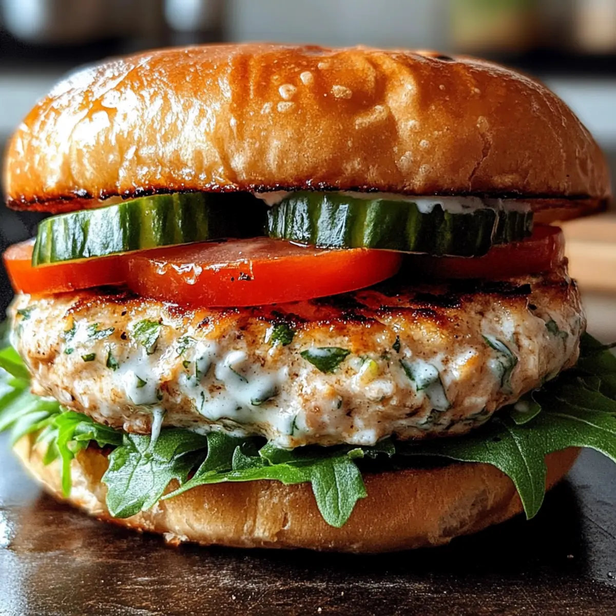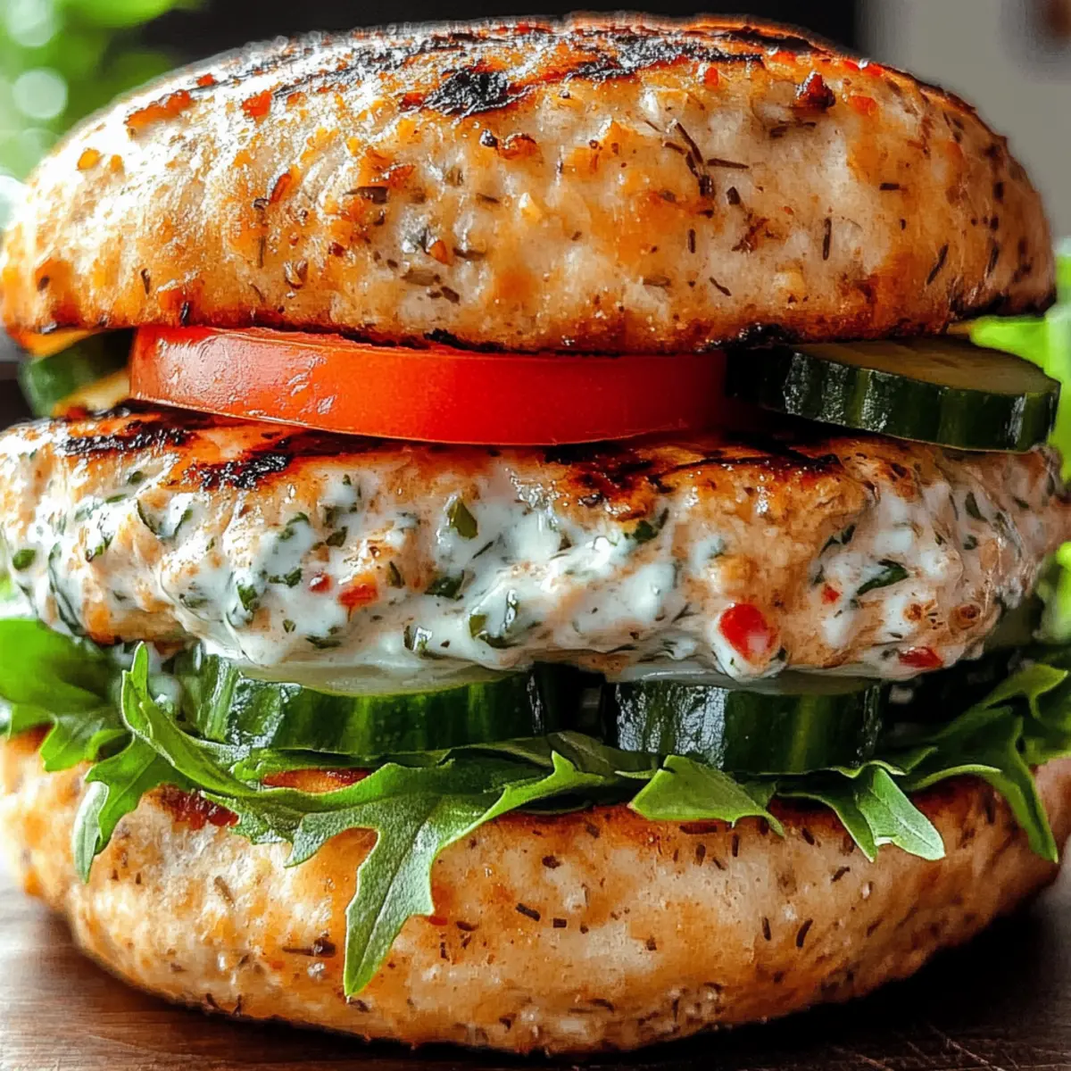 Ein köstliches Aroma zieht durch die Küche, als ich die ersten Zutaten für meine saftigen griechischen Hähnchenburger mit Tzatziki-Glück vorbereite. Diese Burger sind nicht nur eine wahre Geschmacksexplosion, sondern auch eine gesunde, mediterrane Option, die selbst die anspruchsvollsten Geschmacksknospen begeistert. Mit ihrer schnellen Zubereitungszeit und der Anpassungsfähigkeit an spezielle Diätbedürfnisse sind sie perfekt für ein unkompliziertes Abendessen oder die nächste Grillparty. Wer kann da schon widerstehen? Bereite dich darauf vor, in eine Welt voller frischer Aromen einzutauchen, und lass uns gemeinsam herausfinden, wie auch du diese herrlichen Burger auf den Tisch zaubern kannst. Warum sind diese Burger so besonders? Vielfalt: Diese saftigen Hähnchenburger sind anpassbar für jeden Geschmack! Ob glutenfrei, milchfrei oder scharf – einfach variieren und alle glücklich machen. Gesundheitlich: Mit 350 Kalorien pro Burger sind sie eine nahrhafte Wahl, die auch bei besonderem Augenmerk auf die Ernährung hervorragend schmeckt. Schnelle Zubereitung: Die schnellen Zubereitungsschritte machen sie ideal für hektische Wochentage oder entspannte Grillabende mit Freunden. Aroma: Die Kombination aus frischem Zitronensaft, aromatischem Knoblauch und würzigem Feta ergibt ein unverwechselbares Geschmacksprofil, das die mediterrane Küche lebendig werden lässt. Beilagen: Kombiniere sie mit einem erfrischenden Erdbeer Spinat Genuss für ein rundum schmackhaftes Erlebnis! Saftige griechische Hähnchenburger Zutaten • Werfen wir einen Blick auf die köstlichen Zutaten! Für die Burger Gemahlenes Hähnchen – Hauptproteinquelle; wähle 93% mager für mehr Saftigkeit. Feta-Käse – Verleiht reichhaltigen Geschmack; ersetze durch Ziegenkäse oder lasse ihn weg für milchfreie Varianten. Zwiebel – Sorgt für Geschmack und Feuchtigkeit; fein gehackt für gleichmäßige Verteilung. Knoblauch – Essentiell für Tiefe; am besten frische, gehackte Zehen verwenden. Frische Petersilie/Dill – Frische Kräuter bringen Helligkeit; tausche sie gegen deine Lieblingskräuter aus. Getrockneter Oregano – Klassischer mediterraner Geschmack; frischer Oregano kann verwendet werden, wenn verfügbar. Salz – Verbessert den Gesamtschmack; nach Geschmack anpassen. Schwarzer Pfeffer – Fügt Würze hinzu; frisch gemahlen für den besten Geschmack. Rote Pfefferflocken – Optional für extra Schärfe; weglassen für eine mildere Variante. Zitronenschale – Frisches Zitrusaroma; verleiht dem Geschmack mehr Tiefe. Zitronensaft – Sorgt für Säure und Frische; frisch gepresst ist ideal. Semmelbrösel/Mandelmehl – Bindet die Mischung; Mandelmehl ist die glutenfreie Option. Eier – Dient als Bindemittel für die Burger-Patties. Für die Tzatziki Griechischer Joghurt – Basis für die Sauce; sorgt für Cremigkeit und Frische. Gurke – Für das erfrischende Element; gut abtropfen lassen, um die Sauce nicht wässrig zu machen. Knoblauch – Fügt Tiefe hinzu; frisch gehackt oder gerieben verwenden. Olivenöl – Verleiht mehr Geschmack und cremige Konsistenz; hochwertiges Öl verwenden. Zitronensaft – Für zusätzliche Frische; frisch gepresst ist am besten. Frische Kräuter (Dill/Petersilie) – Kräuter für einen aromatischen Kick; nach Geschmack anpassen. Für die Garnitur Frisches Gemüse – Salat, Tomaten, Gurken für zusätzlichen Crunch; wähle deine Favoriten. Brötchen/Pita – Zum Servieren; wähle Vollkorn- oder glutenfreie Varianten. Die saftigen griechischen Hähnchenburger mit Tzatziki-Glück sind ein Genuss, der ganz nach deinem Geschmack angepasst werden kann. Überrasche deine Freunde und Familie mit einem Geschmack, der sie in den sonnigen Süden entführt! Schritt-für-Schritt-Anleitung für Saftige griechische Hähnchenburger mit Tzatziki-Glück Step 1: Zutaten vorbereiten Starten Sie, indem Sie die Zwiebel, den Knoblauch und die frischen Kräuter fein hacken. Diese Schritte sind wichtig, um eine optimale Verteilung der Aromen in den saftigen griechischen Hähnchenburgern zu gewährleisten. Währenddessen können Sie auch die Zitrone auspressen und die Schale abreiben, um den frischen Geschmack hinzuzufügen. Step 2: Burger-Masse herstellen In einer großen Schüssel kombinieren Sie das gemahlene Hähnchen, die gehackte Zwiebel, den Knoblauch, den Feta und die frischen Kräuter. Fügen Sie die Gewürze, Zitronenschale und Zitronensaft hinzu und vermischen Sie alles sanft mit den Semmelbröseln und dem Ei. Achten Sie darauf, die Mischung nicht zu überarbeiten, damit die Burger zart bleiben. Step 3: Patties formen Formen Sie aus der Mischung gleichmäßige Patties, die etwa 2 cm dick sind. Diese Dicke sorgt dafür, dass die saftigen griechischen Hähnchenburger beim Kochen gleichmäßig garen. Legen Sie die Patties auf einen großen Teller oder eine Backform und stellen Sie sie für 30 Minuten in den Kühlschrank, damit sie etwas fester werden. Step 4: Grill oder Pfanne vorbereiten Wenn Sie die Patties grillen möchten, heizen Sie den Grill auf mittelhohe Temperatur vor. Alternativ können Sie auch eine Pfanne auf mittlerer Hitze erwärmen und etwas Olivenöl hinzufügen. Das Öl hilft, die Burger schön braun und knusprig zu machen. Step 5: Patties garen Legen Sie die Patties auf den Grill oder in die Pfanne. Grillen Sie die Hähnchenburger für 6 bis 7 Minuten pro Seite oder bis sie eine innere Temperatur von 75 °C erreichen. Achten Sie darauf, dass sie goldbraun sind, bevor Sie sie wenden. Wenn Sie die Burger im Ofen backen, stellen Sie ihn auf 190 °C ein und lassen Sie sie 20 bis 25 Minuten garen. Step 6: Tzatziki zubereiten Während die Burger garen, bereiten Sie die Tzatziki-Sauce vor. Mischen Sie in einer Schüssel den griechischen Joghurt, die abgetropfte Gurke, den gehackten Knoblauch, das Olivenöl und den Zitronensaft. Rühren Sie alles gut um und schmecken Sie die Sauce mit frischen Kräutern ab. Step 7: Burger servieren Sobald die Patties gar sind, beleg