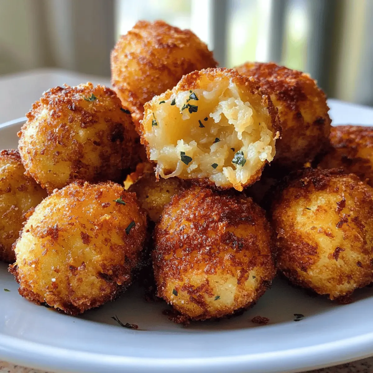 Du kannst die rohen oder bereits frittierten Bällchen bis zu 2 Monate im Gefrierbehälter oder in einem Gefrierbeutel aufbewahren. Stelle sicher, dass sie gut verpackt sind, um Gefrierbrand zu vermeiden. Zum Wiedererwärmen frittiere die gefrorenen Bällchen direkt aus dem Gefrierfach für 3-5 Minuten bei 175 °C (350 °F) oder backe sie bei 200 °C (400 °F) für 20-25 Minuten, damit sie knusprig bleiben.