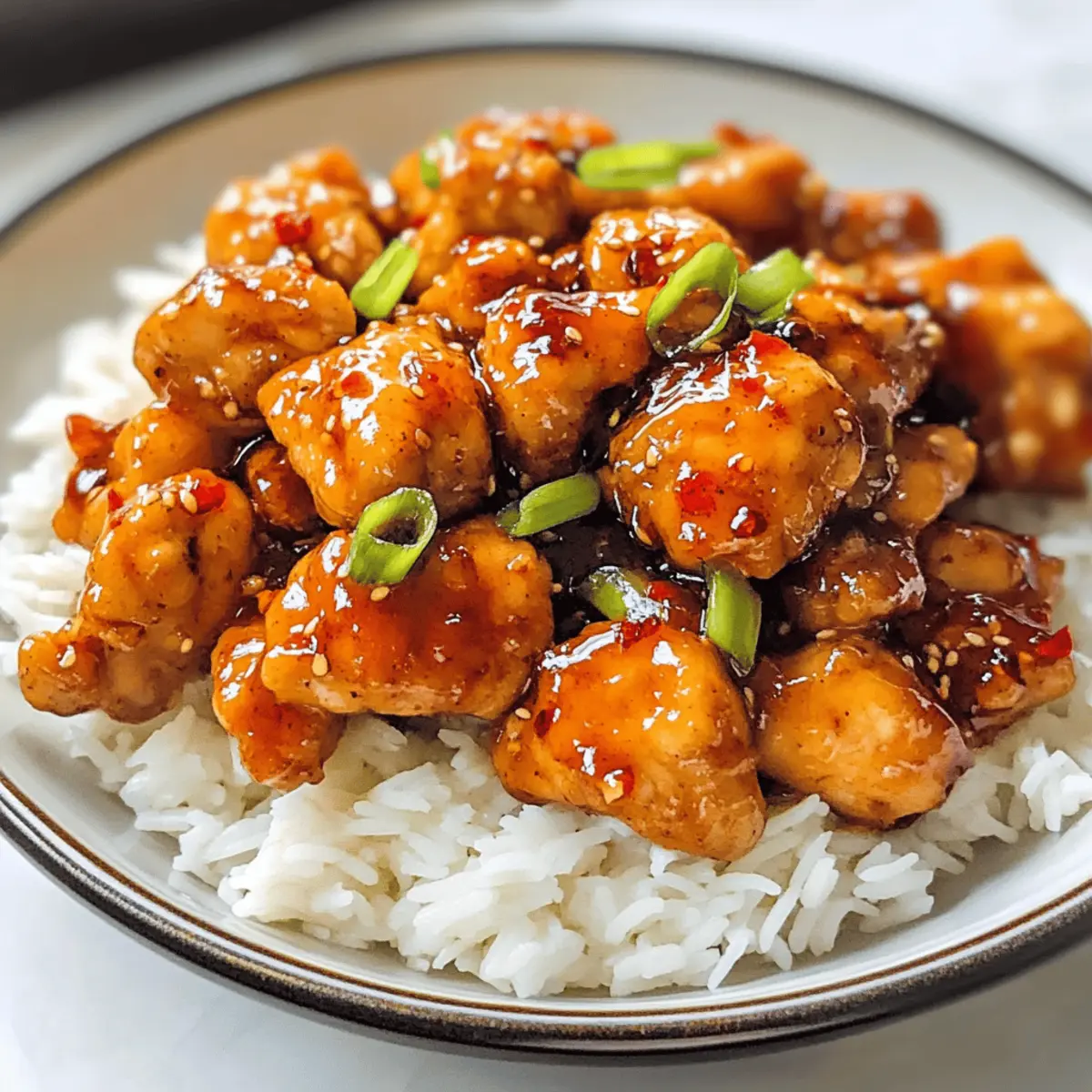 Als ich kürzlich in einem kleinen Restaurant saß und den köstlichen Duft von frisch zubereitetem Spicy Orange Chicken wahrnahm, wusste ich sofort, dass ich das selbst ausprobieren musste. Dieses Rezept für Easy Pan-Fried Spicy Orange Chicken wird nicht nur mit knusprigen Stücken von zartem Hähnchen begeistern, sondern bietet auch eine gesunde Abwandlung der beliebten klassischen chinesisch-amerikanischen Speise. Das Beste daran? Es ist schnell und einfach zubereitet, perfekt für ein schnelles Abendessen nach einem langen Tag oder ein leckeres Mittagessen. Wie wäre es, wenn du diesem Gericht deine eigene Note verleihst und es gleich ausprobierst? Warum wirst du dieses Rezept lieben? Einfache Zubereitung: Die Schritte sind klar und unkompliziert, sodass auch weniger erfahrene Köche Freude beim Nachkochen haben werden. Gesunde Variante: Genießen Sie den Geschmack ohne das frittierte Gefühl – dieses Rezept ist leicht und dennoch sättigend. Wunderbare Geschmackskombination: Die Verbindung von frischem Orangensaft, Sojasauce und dunklem Zucker sorgt für eine köstliche Tiefe, die jeden Bissen zu einem Erlebnis macht. Vielseitig einsetzbar: Ob als schnelles Abendessen oder als beeindruckendes Gericht für Gäste – diese Rezeptur lässt sich wunderbar anpassen! Familienfreundlich: Mit ihrer ausgewogenen Mischung aus Aromen und Texturen wird das Gericht garantiert allen schmecken – sogar den jüngsten Familienmitgliedern! Du könntest es auch mit Wuerzige Chinakohl Rinderhack servieren, um ein noch vielfältigeres Menü zu kreieren. Zutaten für scharfes orangenen Hähnchen Für die Sauce: Frisch gepresster Orangensaft – sorgt für lebhaften Geschmack und Säure; kann durch gekauften Saft ersetzt werden. Orangenschale – verstärkt das Zitrusaroma; frische Schale ist vorzuziehen. Shaoxing Wein – fügt Tiefe hinzu; kann durch trockenen Sherry ersetzt oder ganz weggelassen werden. Reisessig – sorgt für eine angenehme Säure; kein direkter Ersatz, aber weißer Essig ist im Notfall möglich. Hellbrauner Zucker – bringt Süße ins Spiel; kann durch weißen Zucker oder Honig ersetzt werden. Sojasauce – liefert einen herzhaften Umami-Geschmack; Tamari ist eine glutenfreie Option. Sesamöl – gibt einen nussigen Geschmack; kann durch Olivenöl ersetzt werden, wobei sich der Geschmack ändert. Chiliöl (optional) – fügt Schärfe hinzu; kann weggelassen werden, wenn es mild sein soll. Maisstärke – dient zum Andicken der Sauce und zum Bestäuben des Hähnchens; kein Ersatz nötig. Für das Hähnchen: Hähnchenschenkel ohne Knochen und Haut – saftig und zart, ideal zum Braten; Brustfleisch kann verwendet werden, ist aber möglicherweise trockener. Neutrales Öl – zum Braten des Hähnchens; kann auch durch Pflanzen- oder Rapsöl ersetzt werden. Salz und weißer Pfeffer – zum Würzen; nach Geschmack anpassen. Für das Gemüse: Shiitake-Pilze – fügt Umami hinzu; andere Pilze können verwendet werden, wenn Shiitake nicht verfügbar sind. Gehackter Ingwer – sorgt für Wärme und Schärfe; frisch ist am besten, aber abgeriebener kann ersetzt werden. Gehackter Knoblauch – verbessert den Gesamtgeschmack; frischer Knoblauch wird empfohlen. Vogelaugen-Chilis – für Schärfe; kann durch deinen bevorzugten Chili ersetzt werden. Frühlingszwiebeln – sorgen für Frische in der Garnitur und einen milden Zwiebelgeschmack. Die oben genannten Zutaten bringen das Rezept für scharfes orangenen Hähnchen zum Leben und garantieren ein leckeres und unvergessliches Geschmackserlebnis! Schritt-für-Schritt-Anleitung für scharfes orangenen Hähnchen aus der Pfanne Step 1: Zutaten vorbereiten Zuerst alle Zutaten vorbereiten. Das Hähnchen in mundgerechte Stücke schneiden, den Ingwer, Knoblauch und die Vogelaugen-Chilis fein hacken. Die Shiitake-Pilze in Scheiben schneiden und die Frühlingszwiebeln in Ringe schneiden. In einer Schüssel den frisch gepressten Orangensaft, Orangenschale, Shaoxing Wein, Reisessig, hellbraunen Zucker, Sojasauce, Sesamöl und Maisstärke gut vermengen, um die Sauce zu erstellen. Step 2: Hähnchen braten Heize eine große beschichtete Pfanne bei mittelhoher Temperatur auf. Füge eine ausreichende Menge neutrales Öl hinzu, sodass der Boden leicht bedeckt ist. Wenn das Öl heiß ist (visuell, wenn es leicht schimmert), die Hähnchenstücke in die Pfanne geben. Brate sie in Chargen für 4-6 Minuten auf jeder Seite, bis sie goldbraun und knusprig sind. Achte darauf, die Pfanne nicht zu überladen, damit das Hähnchen gleichmäßig bräunt. Step 3: Pilze anbraten Sobald das Hähnchen fertig ist, nimm es aus der Pfanne und lege es beiseite. Im verbliebenen Öl die geschnittenen Shiitake-Pilze anbraten, bis sie leicht goldbraun sind, etwa 3-4 Minuten. Achte darauf, dass sie nicht zu weich werden. Füge die gebratenen Pilze dann zum Hähnchen zurück und halte sie warm. Step 4: Aromaten anbraten In derselben Pfanne, in der das Hähnchen und die Pilze waren, fügst du etwas mehr Öl hinzu, falls nötig. Brate den gehackten Ingwer, Knoblauch, Vogelaugen-Chilis und die Frühlingszwiebeln für etwa 1 Minute an, bis sie stark duften. Dies beschleunigt den Kochprozess, also achte darauf, dass die Temperaturen hoch bleiben, aber nichts verbrennt. Step 5: Sauce hinzufügen Gieße die zuvor vorbereitete Sauce in die Pfanne mit den aromatischen Zutaten. Bringe die Mischung zum Kochen und lasse sie 3-5 Minuten köcheln, bis die Sauce leicht eindickt und glänzend wird. Rühre gelegentlich um, um ein Anbrennen zu vermeiden und die Aromen gut zu vermischen. Step 6: Hähnchen und Pilze vermengen Füge das Hähnchen und die Shiitake-Pilze zurück in die Pfanne, während die Sauce noch köchelt. Schwenke das Hähnchen und die Pilze für 2-3 Minuten in der Sauce, sodass sie gut überzogen sind und sich die Aromen vollständigen entfalten können. Das Hähnchen sollte heiß und glänzend sein, was auf eine perfekte Zubereitung hinweist. Step 7: Anrichten und servieren Servie
