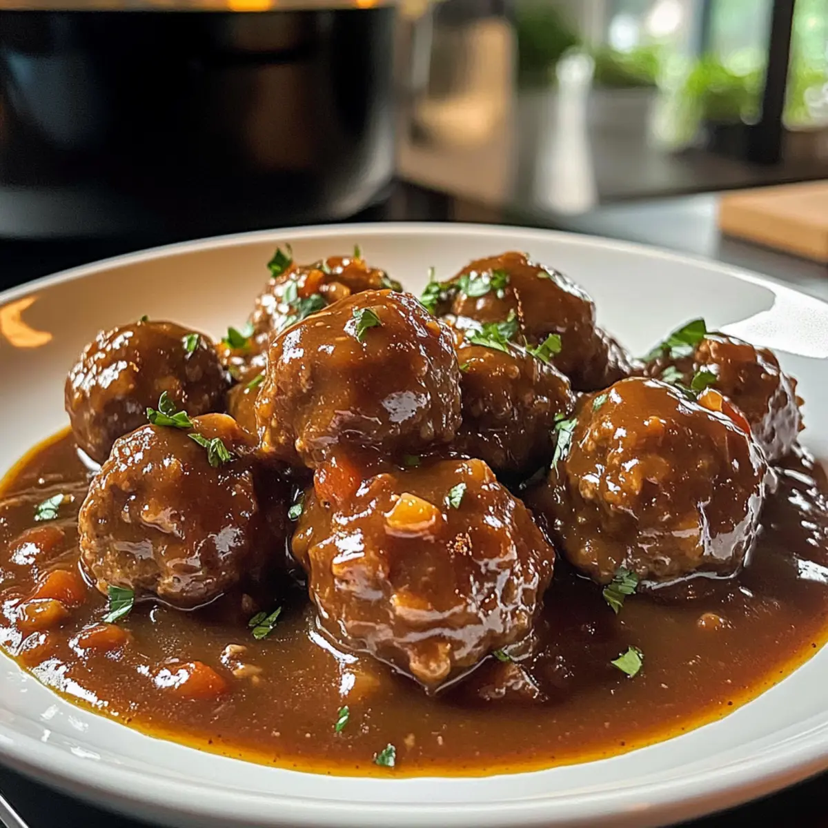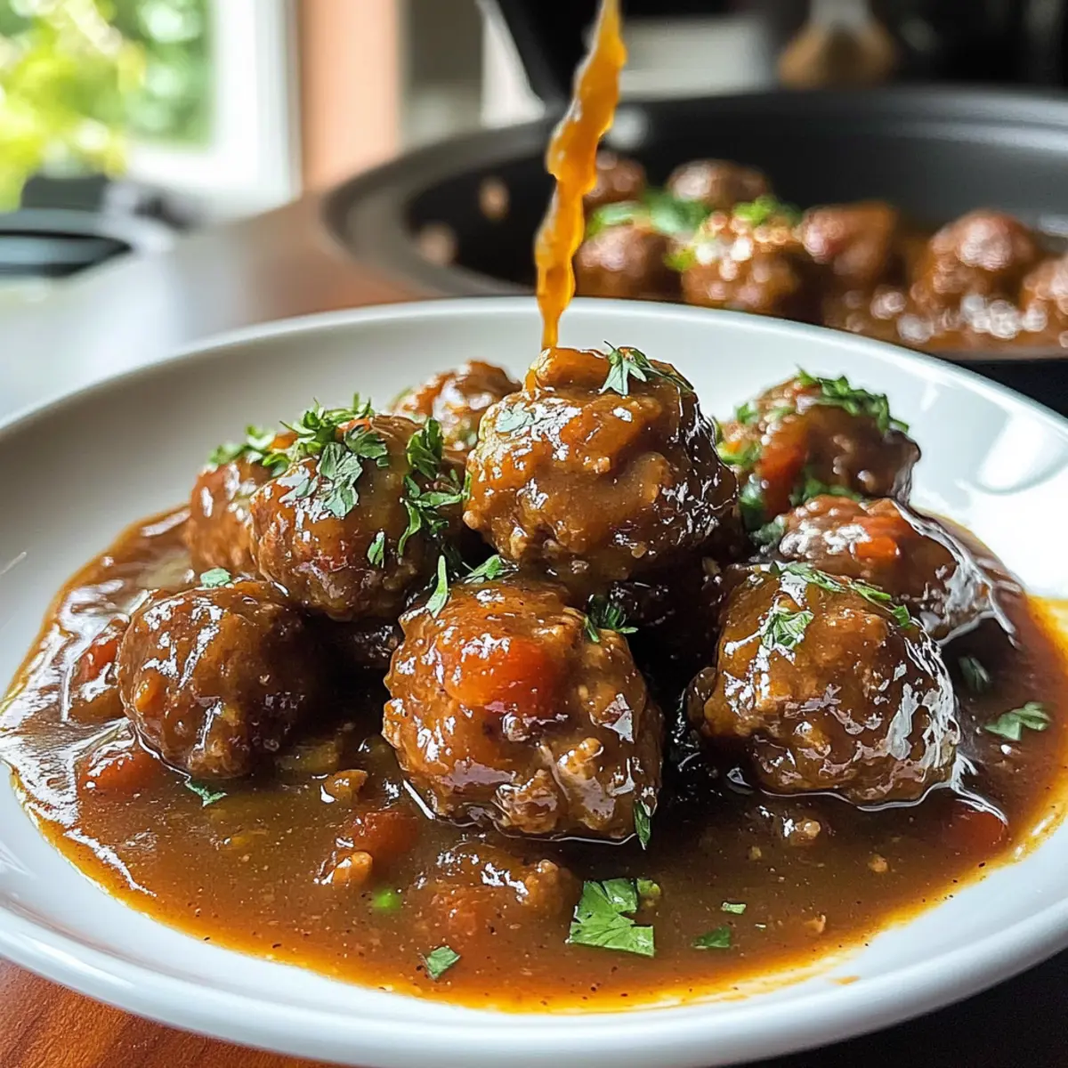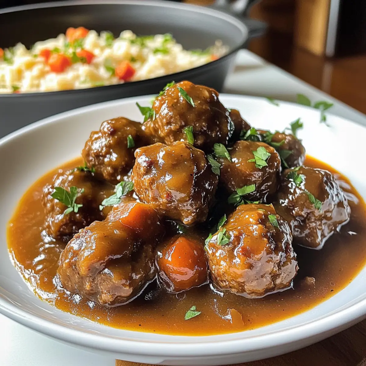 Hatte ich nicht gerade gehört, wie das köstliche Aroma von saftigen Schmortopf Fleischbällchen und Soße durch die Küche zieht? Wenn ich an gemütliche Abende mit meinen Liebsten denke, kommt mir dieses Gericht sofort in den Sinn. Es ist der Inbegriff von Comfort Food – einfach zuzubereiten und perfekt für ein gelungenes Familienessen. Während die Fleischbällchen sanft im Slow Cooker schmoren, entsteht eine dicke, wohlschmeckende Soße, die jeden Bissen zu einem kleinen Fest macht. Du wirst begeistert sein, wie schnell du dieses Gericht zubereiten kannst, um deine Gäste zu verwöhnen. Bist du bereit, diesen unwiderstehlichen Geschmack zu entdecken und vielleicht ein neues Lieblingsrezept in deinem Repertoire zu finden? Warum solltest du dieses Rezept lieben? Einfachheit: Die Zubereitung ist so unkompliziert, dass auch Kochanfänger problemlos mitmachen können. Herzhafter Geschmack: Die Kombination aus saftigen Fleischbällchen und reichhaltiger Soße sorgt für einen echten Geschmacksgenuss. Familienfreundlich: Ideal für ein gemütliches Abendessen mit der ganzen Familie – die Kinder werden es lieben! Vielfältige Serviermöglichkeiten: Ob mit Pasta, über Reis oder zu frischem Brot, deiner Kreativität sind keine Grenzen gesetzt. Probiere auch mal, die Fleischbällchen mit einer Portion Sautierte Karotten Und oder einem Brokkoli Pasta Gesund zu ergänzen. Zeitersparnis: Einfach alle Zutaten in den Slow Cooker geben und zurücklehnen – die Magie des Kochens passiert ganz von alleine! Schmortopf Fleischbällchen und Soße Zutaten • Entdecke die einfachen Zutaten für dieses herzliche Rezept! Für die Fleischbällchen Rinderhackfleisch – Hauptproteinquelle; wähle mageres Fleisch für eine gesündere Variante. Paniermehl – Stellt die Struktur der Fleischbällchen sicher; glutenfreies Paniermehl ist eine tolle Alternative. Eier (2 große) – Dienen als Bindemittel, um die Fleischbällchen zusammenzuhalten. Parmesan (½ Tasse, gerieben) – Fügt eine köstliche, reichhaltige Note hinzu; Pecorino Romano eignet sich ebenso gut. Knoblauchpulver (1 TL) – Bringt eine subtile Tiefe an Geschmack; frischer Knoblauch kann verwendet werden, die Menge nach Geschmack anpassen. Zwiebelpulver (1 TL) – Verstärkt die herzhaften Aromen; frisch gehackte Zwiebel ist auch möglich. Salz (1 TL) & Pfeffer (½ TL) – Essentielle Gewürze, die für den perfekten Geschmack sorgen; nach Belieben anpassen. Für die Soße Gehackte Tomatensauce (15 oz) – Die Basis für die Soße, gibt Feuchtigkeit und Reichtum; hausgemachte Tomatensauce bietet eine frischere Note. Niedrig-Natrium-Rinderbrühe (1 Tasse) – Gibt der Soße Tiefe und hält den Natriumgehalt niedrig; Gemüsebrühe für eine leichtere Variante ist ebenfalls eine Option. Worcestershire-Sauce (2 EL) – Verstärkt den Umami-Geschmack; kann durch Sojasauce oder Tamari ersetzt werden. Schritt-für-Schritt-Anleitung für Schmortopf Fleischbällchen und Soße Step 1: Fleischbällchen-Mischung vorbereiten In einer großen Schüssel das Rinderhackfleisch, Paniermehl, die Eier, geriebenen Parmesan, Knoblauchpulver, Zwiebelpulver, Salz und Pfeffer gut miteinander vermengen. Verwende deine Hände, um die Zutaten gleichmäßig zu kombinieren, bis eine homogene Masse entsteht. Dies sollte etwa 3-5 Minuten in Anspruch nehmen. Achte darauf, nicht zu fest zu drücken, um zarte Fleischbällchen zu gewährleisten. Step 2: Fleischbällchen formen Bilde aus der vorbereiteten Mischung gleichmäßige Fleischbällchen mit einem Durchmesser von etwa 2,5 cm. Platziere die geformten Fleischbällchen auf einem mit Backpapier ausgelegten Blech. Du solltest insgesamt etwa 20-24 Fleischbällchen erhalten. Achte darauf, dass genügend Platz zwischen den Bällchen bleibt, um ein Zusammenkleben zu verhindern. Step 3: Fleischbällchen anbraten (optional) Erhitze eine Pfanne bei mittlerer Hitze und gib ein wenig Öl dazu. Brate die Fleischbällchen für etwa 5 Minuten, bis sie goldbraun sind. Dies ist optional, verleiht den Schmortopf Fleischbällchen und Soße jedoch zusätzlichen Geschmack und eine schöne Textur. Wende die Bällchen gelegentlich, um eine gleichmäßige Bräunung zu erreichen. Step 4: Slow Cooker vorbereiten Lege die braun gebratenen oder rohen Fleischbällchen gleichmäßig in den Slow Cooker. Gieße die gehackte Tomatensauce und die Rinderbrühe gleichmäßig über die Fleischbällchen. Ein wenig Worcestershire-Sauce darüberträufeln und alles vorsichtig umrühren, damit die Fleischbällchen gleichmäßig mit der Soße bedeckt sind. Achte darauf, dass alle Bällchen gut eingetaucht sind, um den vollen Geschmack der Soße zu gewährleisten. Step 5: Kochen Stelle den Slow Cooker auf die niedrige Stufe und lasse die Schmortopf Fleischbällchen und Soße 6-8 Stunden lang garen, bis die Fleischbällchen zart sind. Alternativ kannst du ihn auf die hohe Stufe einstellen und die Garzeit auf 3-4 Stunden reduzieren. Überprüfe nach 3 Stunden auf die Konsistenz, um sicherzustellen, dass die Fleischbällchen gut durchgegart sind. Step 6: Servieren Sobald die Schmortopf Fleischbällchen und Soße fertig sind, rühre die Soße sanft um und serviere die Bällchen heiß über Pasta, Reis oder mit frischem Brot. Achte darauf, genug Soße über die Bällchen zu träufeln, um das Gericht besonders köstlich zu machen. Garniere nach Belieben mit frisch gehackter Petersilie für eine schöne farbliche Note. Was passt gut zu Schmortopf Fleischbällchen und Soße? Hast du schon einmal darüber nachgedacht, wie du mit köstlichen Beilagen das Geschmackserlebnis deiner Schmortopf Fleischbällchen und Soße noch steigern kannst? Pasta: Serviere die Fleischbällchen auf einem Bett aus al dente Spaghetti. Die Soße umhüllt die Nudeln und macht sie unwiderstehlich süßlich. Cremige Polenta: Die weiche Polenta bietet eine wunderbare Grundlage, die die herzhaften Aromen der Soße perfekt aufnimmt. Ein Genuss! Geröstetes Gemüse: Bunte Röstgemüse wie Karotten und Z