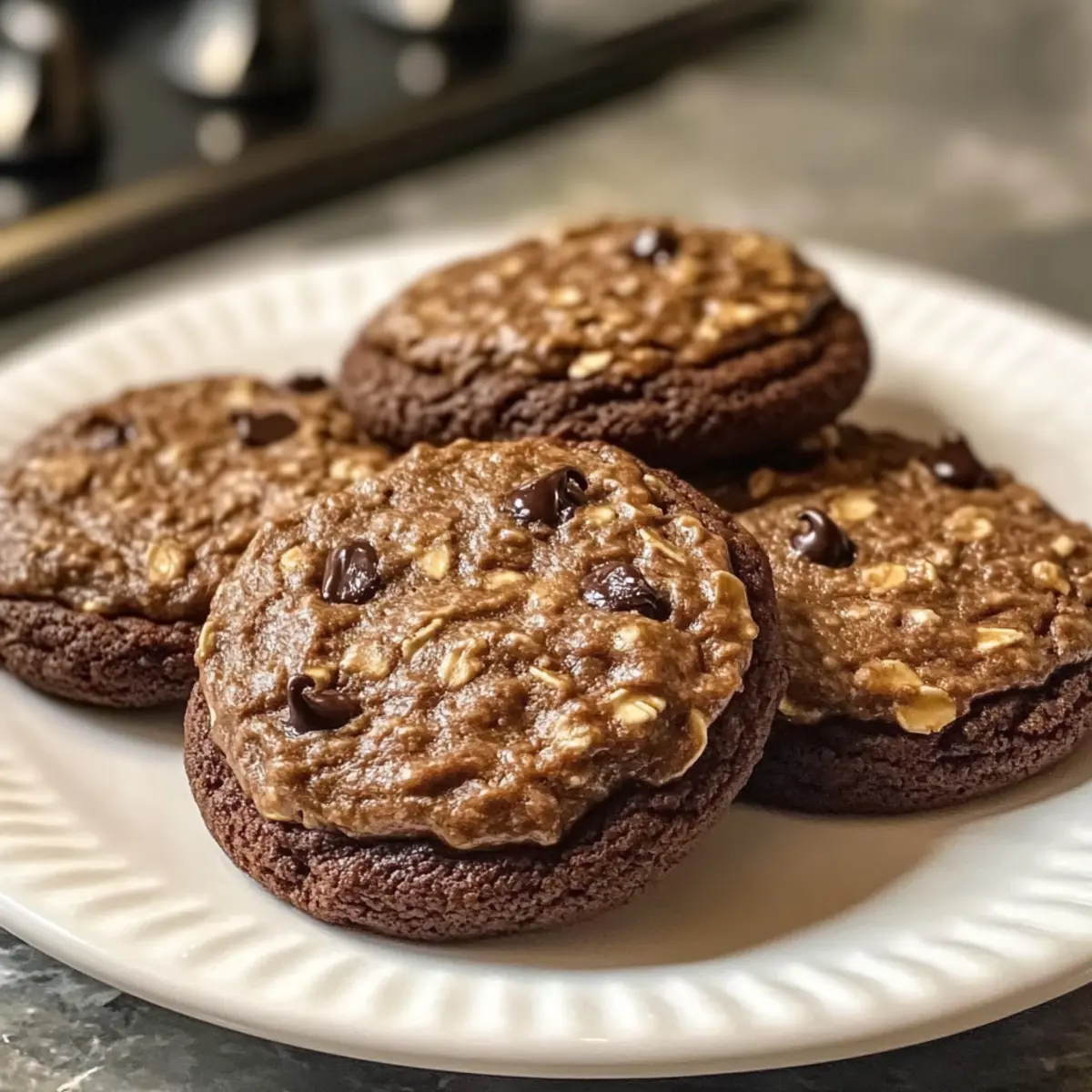 Hast du schon einmal von der unerwarteten Magie gehört, die entsteht, wenn nur drei Zutaten aufeinander treffen? Diese 3-Zutaten-Schokoladen-Oat-Cookies sind der Beweis dafür, dass köstliche Leckereien nicht kompliziert sein müssen. Mit einer tollen Kombination aus zarten Haferflocken, nussiger Bindekraft und süßen Schokoladenstückchen bieten sie nicht nur ein schnelles und einfaches Rezept, sondern sind auch glutenfrei, wenn du die richtigen Haferflocken verwendest. Perfekt für den kleinen Hunger zwischendurch oder als süßer Abschluss nach dem Abendessen – diese Kekse sind ein Hit bei Jung und Alt. Bist du bereit, der Versuchung nachzugeben? Lass uns gemeinsam in die Zubereitung dieser unwiderstehlichen Köstlichkeit eintauchen! Warum wirst du diese Kekse lieben? Einfache Zubereitung: Diese Kekse benötigen nur drei grundlegende Zutaten, und das Rezept ist so unkompliziert, dass selbst Anfänger in der Küche damit punkten können. Reichhaltiger Geschmack: Die Kombination aus zarten Haferflocken und schmelzenden Schokoladenstückchen sorgt für einen köstlichen, schokoladigen Genuss, der jedes Mal begeistert. Vielseitigkeit: Du kannst die Schokoladenstückchen ganz nach deinem Geschmack variieren – probiere mal weiße Schokolade oder eine Prise Zimt für ein besonderes Aroma! Schnelle Backzeit: In nur 10-12 Minuten aus dem Ofen – perfekt für einen spontanen Snack oder wenn unerwartete Gäste vorbeischauen. Freundlicher Genuss: Diese Kekse sind nicht nur lecker, sondern auch glutenfrei, wenn du sie mit zertifizierten glutenfreien Haferflocken zubereitest. So können alle mitgenießen! Wenn du nach weiteren schnellen und einfachen Rezepten suchst, schaue dir diese Herzhafte Minestrone Suppe oder die leckeren Zitronen Brownies Einfach an. Schokoladen-Oat-Kekse Zutaten Für den Teig Gerollte Haferflocken – sorgen für Struktur und eine tolle Textur; du kannst auch schnelle Haferflocken verwenden, wenn du eine weichere Konsistenz bevorzugst. Nussbutter (z.B. Erdnuss- oder Mandelbutter) – wirkt als Bindemittel und verleiht einen nussigen Geschmack; Sonnenblumenkernbutter ist eine gute, nussfreie Alternative. Schokoladenstückchen – bringt Süße und schokoladige Explosionen in jeden Biss; dunkle Schokolade sorgt für einen intensiveren Geschmack oder du ersetzt sie durch getrocknete Früchte für eine gesündere Option. Entdecke die unbeschreibliche Freude der Schokoladenkaffee-Whoopie-Pies und lass dich von dieser köstlichen Kombination verführen! Schritt-für-Schritt-Anleitung für Schokoladen-Oat-Kekse Step 1: Ofen vorheizen Heize den Ofen auf 175°C (350°F) vor. Ein gut vorgeheizter Ofen sorgt dafür, dass deine Schokoladen-Oat-Kekse gleichmäßig backen und die perfekte Konsistenz erreichen. Während der Ofen aufheizt, kannst du bereits die Backbleche mit Backpapier auslegen, um das Anhaften der Kekse zu verhindern. Step 2: Zutaten vermengen Gib die gerollten Haferflocken und die Nussbutter in eine große Rührschüssel. Verwende einen Löffel oder einen Teigschaber, um die beiden Hauptzutaten gründlich zu vermischen, bis eine homogene Masse entsteht. Dieser Schritt ist entscheidend, damit die Kekse später gut zusammenhalten und lecker schmecken. Step 3: Schokoladenstückchen hinzufügen Füge nun die Schokoladenstückchen zu der Haferflocken-Nussbutter-Mischung hinzu. Klappe sie vorsichtig unter, bis sie gleichmäßig verteilt sind. Die Schokolade sorgt für süße Geschmacksexplosionen in jedem Biss deiner Schokoladen-Oat-Kekse. Achte darauf, die Mischung nicht zu übermischen, um die Cookie-Textur zu bewahren. Step 4: Keksformen auftragen Nimm mit einem Esslöffel Portionen des Teigs und forme kleine Häufchen auf das vorbereitete Backblech. Achte darauf, genügend Platz zwischen den Keksen zu lassen (ca. 5 cm), damit sie beim Backen Platz zum Ausdehnen haben. Die Kekse sind noch weich, sollten aber eine gut definierte Form behalten. Step 5: Kekse backen Schiebe das Blech in den vorgeheizten Ofen und backe die Schokoladen-Oat-Kekse für etwa 10-12 Minuten. Sie sind fertig, wenn die Ränder goldbraun sind, das Innere jedoch weiterhin weich aussieht. Lass dir die Vorfreude auf die leckeren Kekse nicht entgehen – der Duft wird köstlich sein! Step 6: Abkühlen lassen Nimm das Blech aus dem Ofen und lass die Kekse für ein paar Minuten darauf abkühlen. Dies gibt ihnen die Gelegenheit, etwas fester zu werden. Danach kannst du die Schokoladen-Oat-Kekse vorsichtig auf ein Kuchengitter legen, damit sie vollständig abkühlen und ihre perfekte Konsistenz erreichen. Was passt zu 3-Zutaten-Schokoladen-Oat-Keksen? Die perfekte Ergänzung zu deinen köstlichen Keksen kann das Geschmackserlebnis noch verstärken und ein rundum befriedigendes Mahl schaffen. Cremige Vanilleeis: Ein Löffel warmes Eis zu den Keksen sorgt für einen unwiderstehlichen Kontrast. Die Kühle des Eises harmoniert perfekt mit der Schokoladennote. Frische Beeren: Himbeeren oder Erdbeeren bieten eine fruchtige Frische, die den süßen Keksen einen schönen Ausgleich verleiht. Ihr saftiger Biss bringt eine zusätzliche Geschmacksdimension. Kaffee: Eine Tasse frisch gebrühter Kaffee verstärkt den Kakaogeschmack der Kekse und macht sie zum idealen Begleiter für gemütliche Nachmittage. Die Bitterkeit des Kaffees balanciert die Süße perfekt. Milch: Ob klassisch oder pflanzlich, ein Glas kühler Milch zur Seite hebt das Geschmackserlebnis und macht die Kekse zusammen zu einem unschlagbaren Duo. Diese Kombination ist zeitlos und beliebt bei Groß und Klein. Nussbutter-Dip: Ein bisschen cremige Mandel- oder Erdnussbutter als Dip fügt einer neuen Geschmacksebene hinzu. Es ist eine großartige Möglichkeit, die nussigen Aromen zu intensivieren. Schokoladenfondue: Für einen besonderen Genuss kannst du die Kekse in geschmolzene Schokolade dippen. So wird jeder Biss zum luxuriösen Erlebnis, das schmelzende Köstlichkeit bietet, die du nicht widerstehen kannst. Lagerungstipps für Schokoladen-Oat-Kek