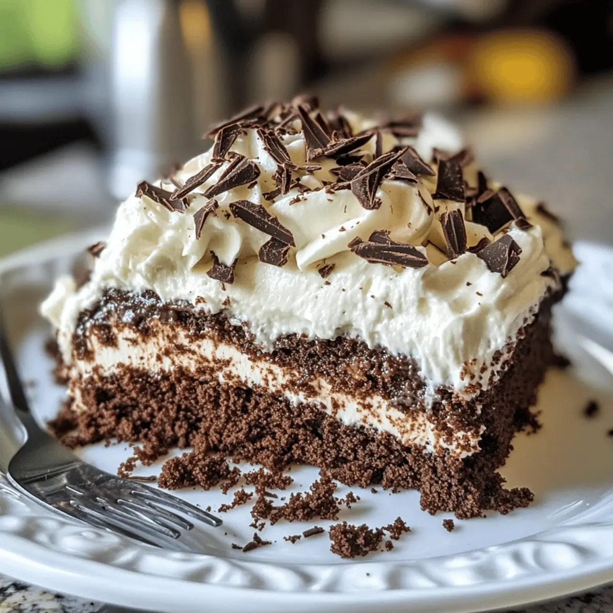 Schlage die kalte Schlagsahne steif und verteile sie großzügig über den durchtränkten Kuchen. Garniere den Schokoladigen Tres Leches Kuchen mit Schokoladenspänen und optionaler frischer Minze für einen zusätzlichen Frischekick. Dieser köstliche Kuchen ist nun bereit, deinen Gästen serviert zu werden und sie zu begeistern!