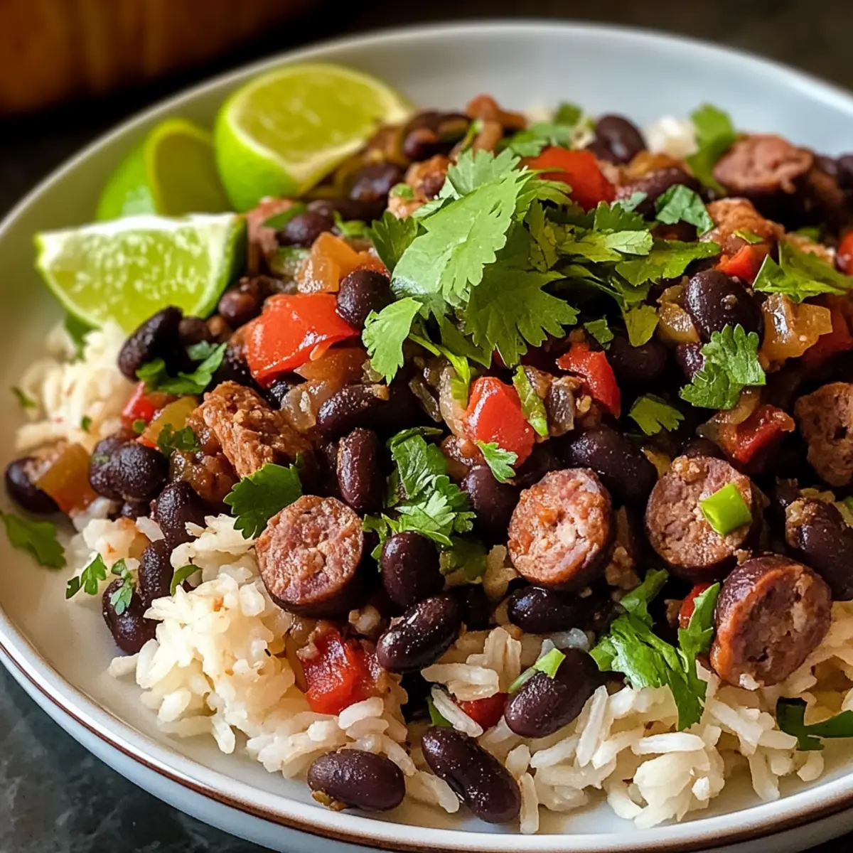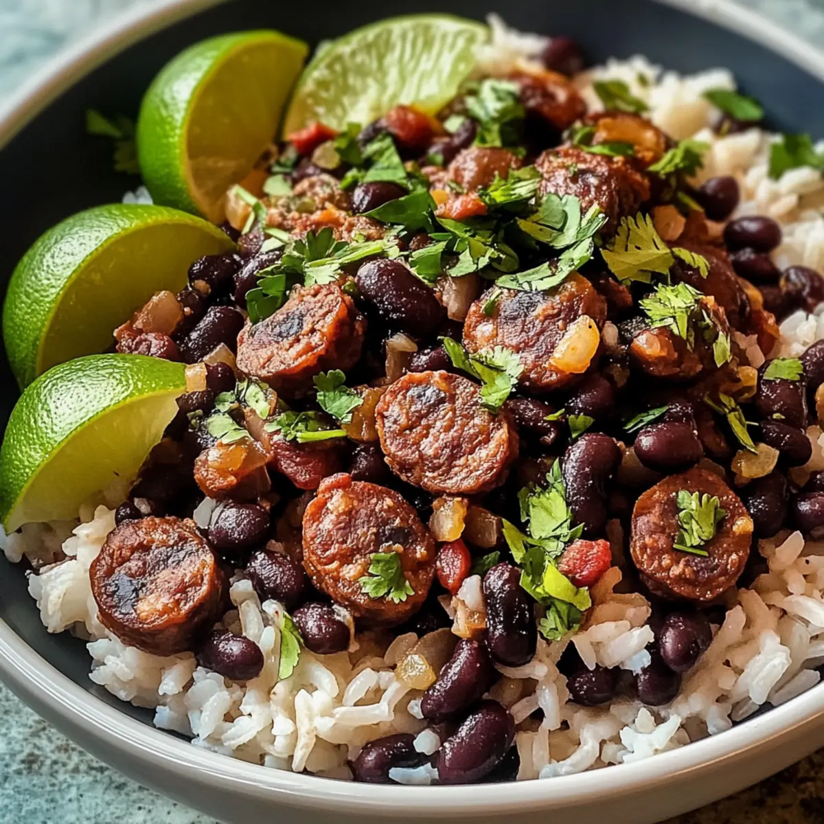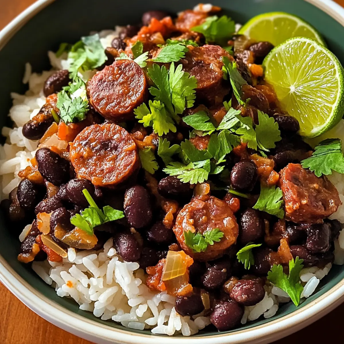 Während ich in der Küche stehe und die Aromen von geräucherter Rindfleischwurst und gewürzten schwarzen Bohnen wahrnehme, fühle ich mich sofort in eine gemütliche Abenddämmerung versetzt. Dieses Rezept für Schwarze Bohnen und Reis mit Rindfleischwurst ist nicht nur ein Fest für die Geschmacksknospen, sondern auch eine großartige Lösung für stressige Wochentage. Es ist schnell zubereitet und eignet sich perfekt für alle, die eine herzhafte, budgetfreundliche Mahlzeit suchen. Der beeindruckende Mix aus Texturen und Aromen macht es zu einem Publikumsliebling, wobei es sich leicht an persönliche Vorlieben anpassen lässt. Egal, ob Sie die Wurst gegen eine vegetarische Option austauschen oder noch mehr Gemüse hinzufügen möchten – dieses Gericht lässt sich spielend variieren. Welche kreative Wendung werden Sie Ihrem nächsten Gericht hinzufügen? Warum werden Sie dieses Rezept lieben? Schnelle Zubereitung: Mit nur wenigen Zutaten ist die Zubereitung von Schwarze Bohnen und Reis mit Rindfleischwurst ein Kinderspiel – perfekt für stressige Wochentage! Vielseitig anpassbar: Tauschen Sie die Rindfleischwurst gegen Hähnchen oder sogar eine vegetarische Option aus und gestalten Sie das Gericht nach Ihrem Geschmack. Herzhafter Geschmack: Die Kombination aus gewürzten schwarzen Bohnen und rauchiger Wurst bietet einen reichen, herzhaften Geschmack, der sowohl sättigend als auch befriedigend ist. Budgetfreundlich: Diese Mischung ist nicht nur lecker, sondern auch ideal für das Budget – eine vollkommen sättigende Mahlzeit, die Ihr Portemonnaie schont. Publikumsliebling: Ob bei einem Familienessen oder einer Feier mit Freunden, dieses Gericht kommt immer gut an und sorgt für zufriedene Gesichter! Wenn Sie auf der Suche nach weiteren köstlichen Optionen sind, probieren Sie auch unser Rezept für Erdbeer Matcha Sago. Schwarze Bohnen und Reis Zutaten • Für alle, die es eilig haben, diese Schwarze Bohnen und Reis mit Rindfleischwurst Kombination ist einfacher als Sie denken! Für die Basis Olivenöl – verleiht Geschmack und eignet sich hervorragend zum Anbraten; kann durch Pflanzenöl oder Butter ersetzt werden. Schwarze Bohnen – die Hauptproteinquelle; für schnelle Zubereitung nutzen Sie Dosenbohnen, getrocknete müssen vorher eingeweicht werden. Langkornreis – das Herzstück des Gerichts; brauner Reis kann ebenfalls verwendet werden, benötigt jedoch längere Kochzeit. Für die Aromen Geräucherte Rindfleischwurst – sorgt für einen reichen, rauchigen Geschmack; kann durch Hähnchenwurst oder Chorizo ersetzt werden. Zwiebel – bildet die aromatische Basis; verwenden Sie rote Zwiebeln für einen süßeren Geschmack. Paprika – fügt Süße und Textur hinzu; jede Farbe eignet sich, oder ersetzen Sie sie durch gewürfelte Jalapeños für Schärfe. Knoblauch – verstärkt den Geschmack; frischer Knoblauch ist am besten, aber Knoblauchpulver kann auch verwendet werden (1/4 Teelöffel). Gemahlener Kreuzkümmel – sorgt für Wärme und Erdigkeit; kann durch Koriander substituiert werden. Geräuchertes Paprikapulver – sorgt für einen tiefen, rauchigen Geschmack; normales Paprikapulver kann verwendet werden, hat aber nicht die Rauchigkeit. Getrockneter Oregano – bringt krautige Noten; kann durch italienische Gewürze oder Thymian ersetzt werden. Chilipulver – verleiht eine sanfte Schärfe; anpassen je nach Vorliebe oder weg lassen für ein mildes Gericht. Hühnerbrühe – fügt Tiefe hinzu; verwenden Sie Gemüsebrühe für eine vegetarische Option. Für die Garnitur Frischer Koriander – bringt frische Farbe ins Gericht; kann durch Petersilie ersetzt werden. Limettenstücke – sorgen für eine helle, frische Note; Zitronen können auch benutzt werden. Salz und schwarzer Pfeffer – essentielle Gewürze; nach Geschmack anpassen. Schritt-für-Schritt-Anleitung für Schwarze Bohnen und Reis mit Rindfleischwurst Step 1: Wurst anbraten Erhitzen Sie in einer großen Pfanne bei mittlerer Hitze etwas Olivenöl. Fügen Sie die in Scheiben geschnittene geräucherte Rindfleischwurst hinzu und braten Sie sie 5-8 Minuten lang an, bis sie goldbraun und knusprig ist. Nehmen Sie die Wurst aus der Pfanne und stellen Sie sie beiseite, damit sie nicht weiter gart. Step 2: Gemüse anschwitzen Verwenden Sie das verbliebene Fett in der Pfanne, um die gewürfelte Zwiebel und die Paprika hinzuzufügen. Braten Sie sie etwa 5-8 Minuten lang bis sie weich sind und die Zwiebel glasig wird. Geben Sie den gehackten Knoblauch, Kreuzkümmel, geräuchertes Paprikapulver, Oregano und Chilipulver hinzu. Rühren Sie alles gut um und braten Sie es für 1-2 Minuten an, bis die Gewürze duften. Step 3: Bohnen und Brühe hinzufügen Fügen Sie die abgespülten schwarzen Bohnen und die Hühnerbrühe in die Pfanne hinzu. Rühren Sie alles gut um, bringen Sie es zum Kochen und reduzieren Sie dann die Hitze. Decken Sie die Pfanne ab und lassen Sie das Ganze 20-30 Minuten köcheln, während Sie gelegentlich umrühren. Schmecken Sie die Mischung mit Salz und Pfeffer ab und fügen Sie schließlich die angebratene Wurst wieder hinzu. Step 4: Reis kochen Während die Bohnenmischung köchelt, spülen Sie den Langkornreis unter fließendem Wasser, bis das Wasser klar ist. In einem separaten Topf kombinieren Sie den abgespülten Reis mit der Brühe, Salz und Pfeffer. Bringen Sie die Mischung zum Kochen, reduzieren Sie dann die Hitze, decken Sie den Topf ab und lassen Sie den Reis 15-18 Minuten lang ohne Rühren kochen, bis er gar ist. Step 5: Anrichten und Servieren Sobald der Reis gar ist, nehmen Sie ihn vom Herd und lassen ihn ein paar Minuten ruhen. Lockern Sie den Reis mit einer Gabel auf und servieren Sie ihn dann in Schalen. Löffeln Sie die würzige Mischung aus schwarzen Bohnen und Rindfleischwurst darüber und garnieren Sie das Gericht mit frischem Koriander und Limettenstücken für zusätzlichen Geschmack. Lagerungstipps für Schwarze Bohnen und Reis mit Rindfleischwurst Zimmertemperatur: Reste soll