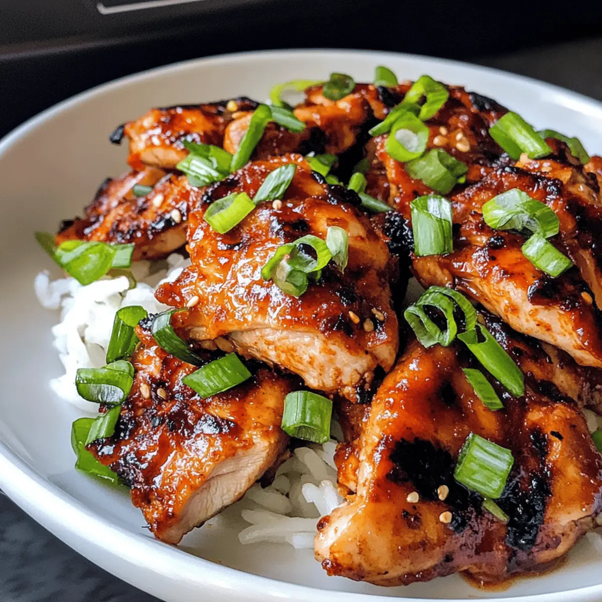 Es sind diese hektischen Abende, an denen ich wirklich nach einem Gericht sehne, das schnell zubereitet ist, aber gleichzeitig den Gaumen verwöhnt. So entdeckte ich das Rezept für Easy Spicy Chicken Bulgogi, das gewöhnliche Hähnchenschenkel in ein geschmackliches Fest verwandelt. Durch eine köstliche Marinade aus Sojasauce, Gochujang und einem Hauch Kiwi wird das Fleisch wunderbar zart und erhält eine unverwechselbare, leicht süßliche Schärfe. Dieses Rezept ist nicht nur unglaublich einfach zuzubereiten, sondern gibt auch jedem Essen einen Hauch von asiatischer Raffinesse. Egal ob für ein schnelles Abendessen nach einem langen Arbeitstag oder für ein besonderes Wochenendessen – diese Bulgogi-Variationen werden zweifellos alle begeistern! Neugierig darauf, wie Sie dieses Geschmackserlebnis zubereiten können? Warum Sie dieses Rezept lieben werden Einfachheit in jedem Schritt: Die Zubereitung erfordert nur grundlegende Kochfähigkeiten, und mit wenigen Zutaten erstellen Sie ein köstliches Gericht. Intensiver Geschmack: Die Kombination von Sojasauce, Gochujang und Süße sorgt für ein geschmackliches Erlebnis, das sowohl herzhaft als auch leicht scharf ist. Vielseitig einsetzbar: Servieren Sie es mit Reis, in Wraps oder mit frischem Gemüse – die Möglichkeiten sind endlos! Schnell und zeitsparend: In nur 30 Minuten können Sie dieses Gericht zubereiten und somit perfekt für hektische Wochentage. Ein Gaumenschmaus für alle: Dieses Rezept wird sowohl Kochanfänger als auch erfahrene Köche begeistern. Wenn Sie nach weiteren tollen Ideen suchen, schauen Sie sich auch unsere Herzhafte Minestrone Suppe oder die Zitronen Brownies Einfach an! Zutaten für Spicy Chicken Bulgogi • Mischen Sie diese Zutaten für ein einzigartiges Geschmackserlebnis. Für die Marinade Sojasauce – sorgt für einen herzhaften Umami-Geschmack; verwenden Sie normale, keine salzarme Sojasauce. Dunkler Brauner Zucker – bringt Süße und Tiefe ins Gericht; fest zusammendrücken beim Messen. Mirin – ein süßer koreanischer Reiswein, der die Aromen verstärkt; in asiatischen Märkten erhältlich. Gochujang – fügt eine süßliche Schärfe hinzu; verwenden Sie mehr für extra Würze, je nach Vorliebe. Knoblauch – gibt der Marinade ein aromatisches Flair. Reife Kiwi – wirkt als natürlicher Zartmacher; kann durch asiatische Birne oder Ananas ersetzt werden. Zwiebel – sorgt für Süße und Tiefe im Geschmack. Sesamöl – bringt einen nussigen Geschmack; ein Esslöffel reicht für signifikante Tiefe. Schwarzer Pfeffer – verstärkt das Gesamtaroma. Für das Hähnchen Hähnchenschenkel ohne Knochen und Haut – sind perfekt für saftige und geschmackvolle Ergebnisse; die Hauptproteinquelle in diesem Rezept. Dieses einfache Rezept für Spicy Chicken Bulgogi wird die Art und Weise, wie Sie Hähnchen zubereiten, revolutionieren! Schritt-für-Schritt-Anleitung für Spicy Chicken Bulgogi Step 1: Marinade zubereiten Mischen Sie in einem Mixer die Sojasauce, den dunklen braunen Zucker, Mirin, Knoblauch, die reife Kiwi, Zwiebel, Sesamöl, Gochujang und schwarzen Pfeffer, bis eine glatte Paste entsteht. Dies dauert etwa 1-2 Minuten. Diese köstliche Marinade wird Ihrem Spicy Chicken Bulgogi den perfekten Geschmack geben. Step 2: Hähnchen marinieren Gießen Sie die Marinade in einen Ziplock-Beutel und fügen Sie die Hähnchenschenkel hinzu. Massieren Sie das Hähnchen, damit es gut mit der Marinade überzogen wird. Verschließen Sie den Beutel und entfernen Sie überschüssige Luft. Lassen Sie das Hähnchen mindestens 1 Stunde im Kühlschrank marinieren, um den Geschmack zu intensivieren. Step 3: Ofen vorheizen Heizen Sie Ihren Ofen auf 220 °C (425 °F) vor. Dies ist wichtig, um die Hähnchenschenkel gleichmäßig und schnell zu garen. Wenn der Ofen die Temperatur erreicht hat, sind Sie bereit für den nächsten Schritt im Zubereitungsprozess des Spicy Chicken Bulgogi. Step 4: Hähnchen backen Legen Sie die marinierten Hähnchenschenkel mit der flachen Seite nach unten auf ein mit Folie ausgelegtes Backblech. Backen Sie sie für 15 Minuten, bis sie anfangen, eine goldene Farbe zu bekommen. Diese Methode sorgt dafür, dass das Hähnchen saftig bleibt und eine schöne Karbonisierung erhält. Step 5: Hähnchen grillen Wechseln Sie auf die Grillfunktion oder erhöhen Sie die Hitze auf 260 °C (500 °F). Wenden Sie das Hähnchen und grillen Sie es weitere 5 Minuten, bis die Innentemperatur 74 °C (165 °F) erreicht. Beobachten Sie es genau, da die Grillzeit variieren kann und die äußere Farbe einen köstlichen Char anzeigt. Step 6: Hähnchen ruhen lassen Lassen Sie das Hähnchen 5-10 Minuten ruhen. Dies ermöglicht es den Säften, sich im Fleisch zu verteilen, was wichtig ist, um das Spicy Chicken Bulgogi saftig zu halten. Verwenden Sie diese Zeit auch, um Ihre Beilagen vorzubereiten und alles für das Servieren zu richten. Step 7: Servieren Servieren Sie das Spicy Chicken Bulgogi mit dampfendem Reis, frischem Gemüse oder sogar in Wraps. Die Kombination der Aromen und Texturen wird sicher ein Highlight Ihres Essens sein. Genießen Sie die Aromen und die Vielfalt, die dieses Gericht bietet! Was passt zu Easy Spicy Chicken Bulgogi? Ein schmackhaftes Abendessen gemeinsam zu genießen, ist ein wahres Fest der Sinne. Perfekt abgestimmt auf das würzige und süße Aroma Ihres Bulgogi. Dampfreis: Ergänzt die Aromen und macht das Gericht noch sättigender. Der weiche, fluffige Reis nimmt die Sauce auf und macht jeden Bissen perfekt. Kimchi: Dieses traditionelle koreanische Gericht bringt eine würzige Note und Fermentationsgeschmack, die perfekt mit dem zarten Hähnchen harmonieren. Es sorgt für einen überraschenden Kontrast in Textur und Geschmack. Frisches Gemüse: Bieten Sie knackige Gurken oder Karotten an, um Frische und Knackigkeit hinzuzufügen. Diese gesunden Elemente heben das Gericht hervor und fördern eine ausgewogene Mahlzeit. Einfach in zarte Scheiben schneiden und als Beilage servieren. Asiati