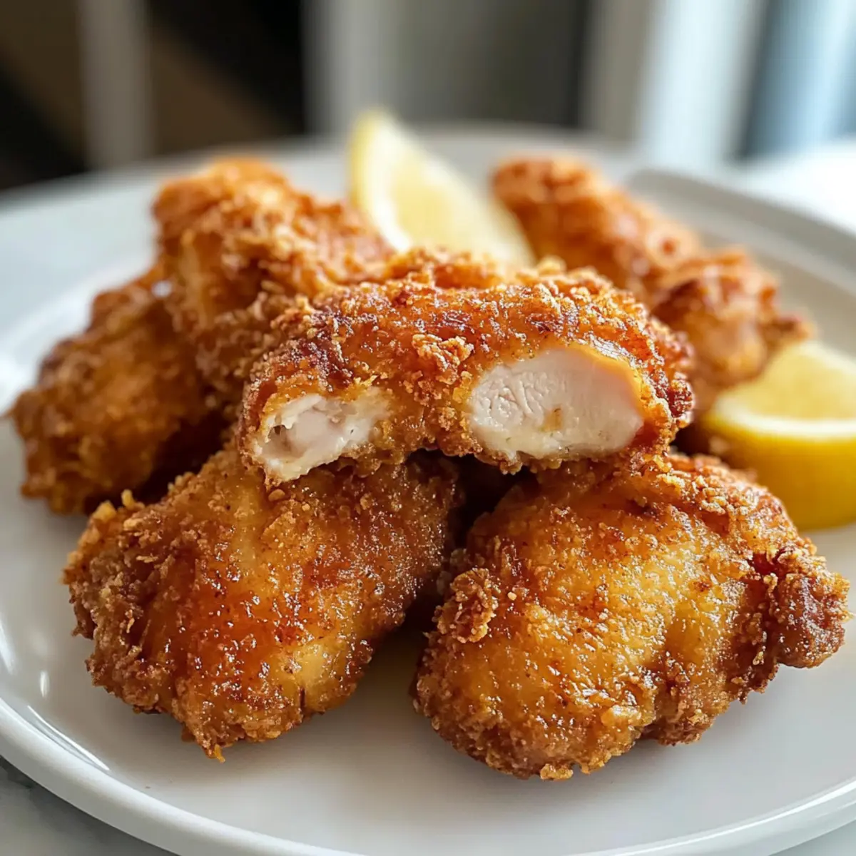 Während ich in meiner Küche stehe, steigt der verlockende Duft von gewürztem Hähnchen in die Nase – und plötzlich ist der Alltag wie weggeblasen. Heute präsentiere ich euch mein Rezept für Spicy Keto Frittierte Hähnchenkeulen, die nicht nur köstlich, sondern auch völlig im Einklang mit einem low-carb Lebensstil stehen. Diese knusprigen Hähnchenkeulen aus saftigem Fleisch, umhüllt von einer knusprigen Panade aus Schweinekrusten und aromatischen Gewürzen, sind ein echter Hit! In kürzester Zeit zubereitet, bringen sie Freude auf den Tisch und sind perfekt für Familienessen oder Meal Prep. Seid ihr bereit, euren nächsten kulinarischen Triumph zu erleben? Lasst uns gleich loslegen! Warum wird dieses Rezept dein Favorit? Einfachheit, die begeistert: Die Zubereitung dieser Spicy Keto Frittierte Hähnchenkeulen ist schnell und unkompliziert – perfekt für Anfänger! Knuspriger Genuss, der hält: Die Kombination aus Schweinekrusten und Gewürzen sorgt für eine unwiderstehliche Knusprigkeit, die das Herz eines jeden Chicken-Liebhabers höherschlagen lässt. Vielseitig, wie du es magst: Ob als Hauptgericht mit Beilagen oder als Snack für die Gäste – diese Hähnchenkeulen sind ein wahres Multitalent! Gesund und köstlich: Sorgfältig ausgewählte Zutaten machen dieses Rezept zu einer hervorragenden Low-Carb-Option, die deine Ernährung unterstützt. Schnell und lecker: In weniger als 30 Minuten auf dem Tisch – ideal für das hektische Abendessen unter der Woche! Wenn du noch mehr leckere Ideen suchst, schau dir auch unser Rezept für cremigen Coleslaw an, um die perfekte Beilage zu finden! Spicy Keto Frittierte Hähnchenkeulen Zutaten • Entdecke die köstlichen Zutaten für deinen nächsten Leckerbissen! Für die Hähnchen: • Hähnchenschenkel – Saftige Grundlage des Rezepts; am besten entbeint und ohne Haut für mehr Zartheit. • Eier – Binden die panierung an das Hähnchen. Für die Panade: • Schwarzer Pfeffer – Verleiht der Panade einen würzigen Kick; frisch mahlen für ein intensives Aroma. • Salz – Hebt den Geschmack des Hähnchens und der Panade hervor. • Schweinekrusten – Hauptsächliche low-carb Panade, die für den Crunch sorgt; fein zerstoßen für gleichmäßige Bedeckung. • Geriebener Parmesan – Fügt der Panade eine herzhafte Note hinzu. • Paprika – Bringt Farbe und milde Würze. • Cayennepfeffer – Für zusätzlichen Schärfe; nach persönlichem Geschmack anpassen. Zum Frittieren: • Kokosöl – Ideal zum Frittieren; sorgt für eine knusprige Textur bei der richtigen Temperatur. Mit diesen köstlichen Zutaten wirst du deine eigenen Spicy Keto Frittierte Hähnchenkeulen zubereiten und einen tiefen Genuss erleben! Schritt-für-Schritt-Anleitung für Spicy Keto Frittierte Hähnchenkeulen Step 1: Ofen und Panade vorbereiten Heize deinen Ofen auf 175°C vor. In einer flachen Schüssel verquirlst du die Eier zusammen mit dem frisch gemahlenen schwarzen Pfeffer. In einer anderen Schüssel vermengst du die zerstoßenen Schweinekrusten, geriebenen Parmesan, Paprika, Salz und Cayennepfeffer gründlich, bis alles gut verteilt ist. Step 2: Hähnchen panieren Trockne die Hähnchenschenkel gründlich mit einem Küchentuch ab, um überschüssige Feuchtigkeit zu entfernen. Tauche jedes Hähnchenstück zuerst in die Eiermischung, sodass es gut benetzt ist, und wälze es dann in der vorbereiteten Schweinekrusten-Mischung, bis es gleichmäßig bedeckt ist. Step 3: Hähnchen frittieren Erhitze das Kokosöl in einer gusseisernen Pfanne bei mittlerer bis hoher Hitze, bis es glänzt und leicht zu rauchen beginnt. Lege die panierten Hähnchenschenkel vorsichtig in das heiße Öl und frittiere sie für etwa 2-3 Minuten pro Seite, bis sie goldbraun und knusprig sind. Step 4: Hähnchen fertig backen Nehme die frittierten Hähnchenschenkel mit einer Zange aus der Pfanne und lege sie auf ein Backblech. Backe sie im vorgeheizten Ofen für weitere 10-15 Minuten, bis die Innentemperatur 75-80°C erreicht, um sicherzustellen, dass sie gut durchgegart sind. Step 5: Servieren und genießen Nehme die Spicy Keto Frittierte Hähnchenkeulen aus dem Ofen und lasse sie kurz ruhen, bevor du sie servierst. Sie sind köstlich knusprig und perfekt für ein Familienessen oder als Snack. Kombiniere sie nach Belieben mit Beilagen wie cremigem Coleslaw oder knackigem Gemüse für ein komplettes Gericht. Expertentipps für Spicy Keto Frittierte Hähnchenkeulen Richtige Trocknung: Stelle sicher, dass das Hähnchen gut abgetrocknet ist, um ein besseres Anhaften der Panade zu gewährleisten. Feuchtigkeit kann dazu führen, dass das Öl spritzt. Schicht für Schicht: Überfülle die Pfanne nicht beim Frittieren. Frittiere in kleinen Chargen, um eine gleichmäßige Temperatur des Öls aufrechtzuerhalten und knusprige Ergebnisse zu erzielen. Vorbereitung ist alles: Lass die panierten Hähnchenschenkel vor dem Frittieren 10-15 Minuten ruhen. Das hilft der Panade, besser zu haften und sorgt für einen gleichmäßigeren Crunch. Temperatur prüfen: Verwende ein Fleischthermometer, um sicherzustellen, dass die Innentemperatur des Hähnchens mindestens 75°C erreicht. So bleibt das Fleisch saftig und perfekt durchgegart. Variationen entdecken: Du kannst die Hähnchenkeulen auch leicht würzen, indem du zusätzliche Gewürze wie Knoblauchpulver oder Zwiebelpulver in die Panade gibst. So bleibt das Rezept flexibel und spannend. Aufbewahrung von Spicy Keto Frittierte Hähnchenkeulen Kühlschrank: Bewahre die Hähnchenkeulen in einem luftdichten Behälter auf und genieße sie innerhalb von bis zu 4 Tagen, um Frische und Geschmack zu bewahren. Gefrierfach: Für eine längere Haltbarkeit kannst du die Hähnchenkeulen bis zu 3 Monate einfrieren. Wickele sie einzeln in Frischhaltefolie, um Gefrierbrand zu vermeiden. Wiedererwärmung: Um die Knusprigkeit nach dem Kühlen wiederherzustellen, heize den Ofen auf 175°C vor und backe die Hähnchenkeulen 10-15 Minuten lang, bis sie wieder warm und k