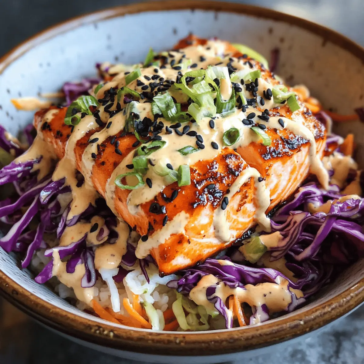Die Aromen eines asiatischen Marktes, kombiniert mit der Frische des Meeres – das ist das Erlebnis, das dieser Spicy Salmon Bowl bietet. Hier vereinen sich zart mariniertes Lachsfilet und ein knackiger asiatischer Slaw zu einem Gericht, das nicht nur gesund ist, sondern auch in nur 30 Minuten zubereitet werden kann. Als Highlight dieser Schale erwartet euch eine cremige, würzige Mayo, die dem Ganzen den ultimativen Kick verleiht. Diese bekömmliche und vielseitige Mahlzeit eignet sich perfekt für eine schnelle Woche oder in der Meal-Prep-Planung, ganz gleich, ob ihr einen leichten Genuss mit viel Geschmack sucht oder einfach etwas Neues ausprobieren wollt. Seid ihr bereit, eure Geschmacksknospen zu verwöhnen? Warum begeistert dieser Spicy Salmon Bowl? Einfachheit: Die Zubereitung ist kinderleicht und benötigt nur 30 Minuten. Perfekt für vielbeschäftigte Tage! Gesunde Zutaten: Mit frischem Lachs, knackigem Slaw und einer cremigen, würzigen Mayo ist dieser Bowl nicht nur lecker, sondern auch nahrhaft. Vielseitigkeit: Passen Sie die Rezeptelemente ganz nach Ihrem Geschmack an: mehr Gemüse, mildere Saucen oder alternative Dressings. Wohlfühlmoment: Diese Kombination aus zartem Lachs und knackigem Gemüse sorgt für ein befriedigendes Geschmackserlebnis, das selbst eingefleischte Fast Food-Liebhaber überzeugen wird. Probieren Sie, wie in unserem Rezept für Wuerzige Chinakohl Rinderhack oder genießen Sie die Aromen eines Erdbeer Spinat Genusses für eine leichte Abwechslung! Spicy Salmon Bowl Zutaten Für den Lachs • Lachs – Der Hauptbestandteil, der reichhaltigen Geschmack und Omega-3-Fettsäuren liefert. Wählen Sie wild gefangenen Lachs für die besten Ergebnisse. • Reisessig – Fügt Säure hinzu, um den Lachs und den Slaw zu zarten. • Sojasauce (oder Kokosaminos) – Verleiht einen umami Geschmack; verwenden Sie Kokosaminos für eine glutenfreie Variante. • Sesamöl – Trägt einen reichen, nussigen Geschmack bei; kann bei Allergien durch Olivenöl ersetzt werden. • Sriracha – Fügt Kälte zur Marinade und Sauce hinzu; je nach Gewürzvorliebe anpassen. • Honig – Wirkt als Süßungsmittel, das die Sauce ausgleicht; kann durch Agavensirup ersetzt werden. • Knoblauchpulver & Zwiebelpulver – Verbessert den Geschmack der Marinade; frische Zutaten sind ebenfalls möglich. Für die würzige Mayo • Mayonnaise – Basis für die cremige, würzige Mayo; kann durch avocadobasierte Mayo für eine gesündere Option ersetzt werden. • Süß-Chili-Sauce – Fügt Süße und einen Hauch von Schärfe zur Mayo hinzu; optional, aber empfehlenswert. Für den Slaw • Kohl – Bildet die Basis des asiatischen Slaws, sorgt für Knackigkeit und Volumen; andere Gemüse können hinzugefügt werden. • Frühlingszwiebeln – Bringt einen frischen, scharfen Geschmack; kann durch Schnittlauch ersetzt werden. • Salz & Pfeffer – Essentielle Gewürze für die Balance. Genießen Sie diesen Spicy Salmon Bowl und entdecken Sie, wie einfach es ist, ein gesundes Gericht zu kreieren, das gleichzeitig zufriedenstellt und begeistert. Step-by-Step Instructions für Spicy Salmon Bowl mit cremiger Mayo Sauce Step 1: Lachs marinieren Mischen Sie in einer Schüssel Reisessig, Sojasauce, Sesamöl, Sriracha, Honig, Knoblauchpulver und Zwiebelpulver gut zusammen. Legen Sie die Lachsfilets in die Marinade und lassen Sie sie 15-20 Minuten im Kühlschrank ziehen, damit sie den vollen Geschmack aufnehmen und zart werden. Step 2: Würzige Mayo zubereiten In einer kleinen Schüssel geben Sie die Mayonnaise, Sriracha und, falls gewünscht, die süße Chili-Sauce. Verquirlen Sie die Zutaten mit einem Schneebesen, bis die Mischung glatt und cremig ist. Stellen Sie die würzige Mayo beiseite, während Sie den Slaw vorbereiten. Step 3: Slaw vorbereiten In einer großen Schüssel kombinieren Sie den geschnittenen Kohl, Reisessig, Sojasauce, Sesamöl, fein gehackten Knoblauch und geriebenen Ingwer. Rühren Sie alles gut um und lassen Sie den Slaw für ca. 10 Minuten stehen, damit sich die Aromen entfalten und der Kohl leicht zusammenfällt. Step 4: Lachs braten Erhitzen Sie eine Pfanne bei mittlerer Hitze und geben Sie die marinierten Lachsfilets hinein. Braten Sie den Lachs für etwa 2-3 Minuten auf jeder Seite, bis er goldbraun und durchgegart ist. Gießen Sie die übrig gebliebene Marinade in die Pfanne und reduzieren Sie sie für 1-2 Minuten, um den Lachs gleichmäßig zu glasieren. Step 5: Bowls anrichten Verteilen Sie den vorbereiteten Slaw gleichmäßig auf die Servierschalen. Legen Sie die gebratenen Lachsfilets darauf und beträufeln Sie alles großzügig mit der würzigen Mayo. Garnieren Sie die Bowls nach Belieben mit Frühlingszwiebeln oder Sesamsamen für einen zusätzlichen Geschmackskick. Vorbereitungen für den Spicy Salmon Bowl Dieser Spicy Salmon Bowl eignet sich hervorragend zur Vorbereitung, sodass Sie an hektischen Tagen wertvolle Zeit sparen können! Sie können die Lachsfilets bis zu 24 Stunden im Voraus marinieren; das bringt den Geschmack optimal zur Geltung und macht das Fleisch zart. Der asiatische Slaw lässt sich ebenso gut bis zu 3 Tage im Kühlschrank aufbewahren – mischen Sie einfach den geschnittenen Kohl mit dem Dressing und speichern Sie es getrennt, um eine matschige Konsistenz zu vermeiden. Wenn Sie bereit sind, den Bowl zu genießen, braten Sie den marinierten Lachs in der Pfanne und richten Sie die Schalen an, indem Sie den Slaw als Basis verwenden und den fertigen Lachs sowie die würzige Mayo darauf geben. Dies ermöglicht es Ihnen, jederzeit ein frisch zubereitetes, köstliches Gericht zu servieren – so bleibt die Qualität einfach immer erhalten! Was passt zu Spicy Salmon Bowl? Dieser Spicy Salmon Bowl ist nicht nur ein Gaumenschmaus allein, sondern lässt sich wunderbar mit verschiedenen Beilagen und Ergänzungen kombinieren. Jasminreis: Erweitert das Gericht um eine zarte, sättigende Komponente, die die scharfen Aromen ausgleicht. Frischer Gurkensalat: 