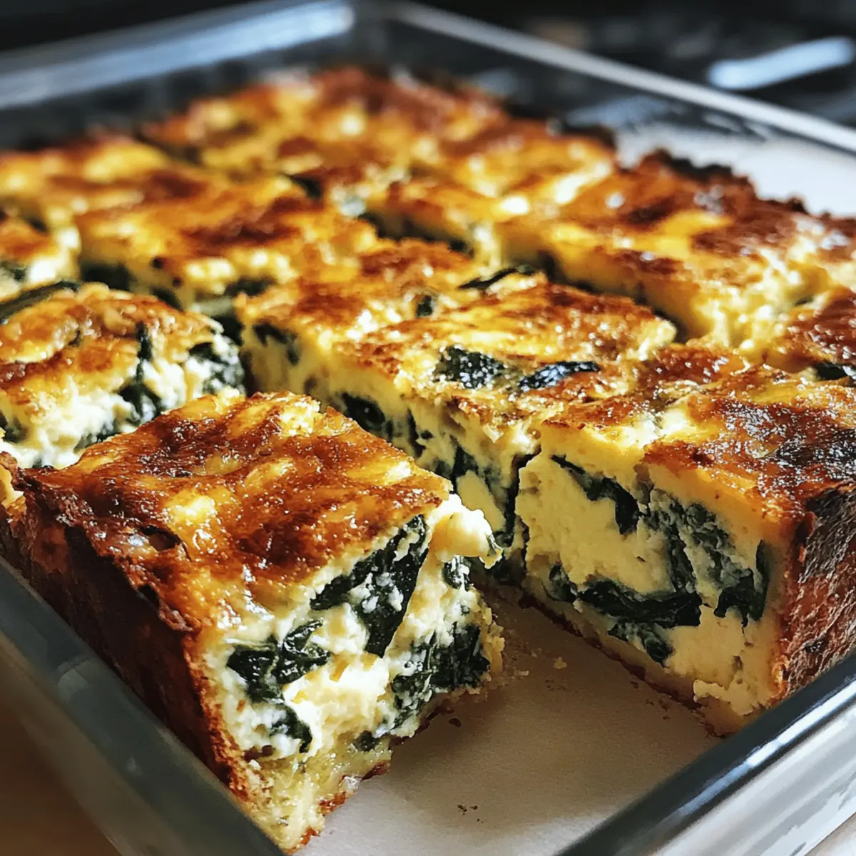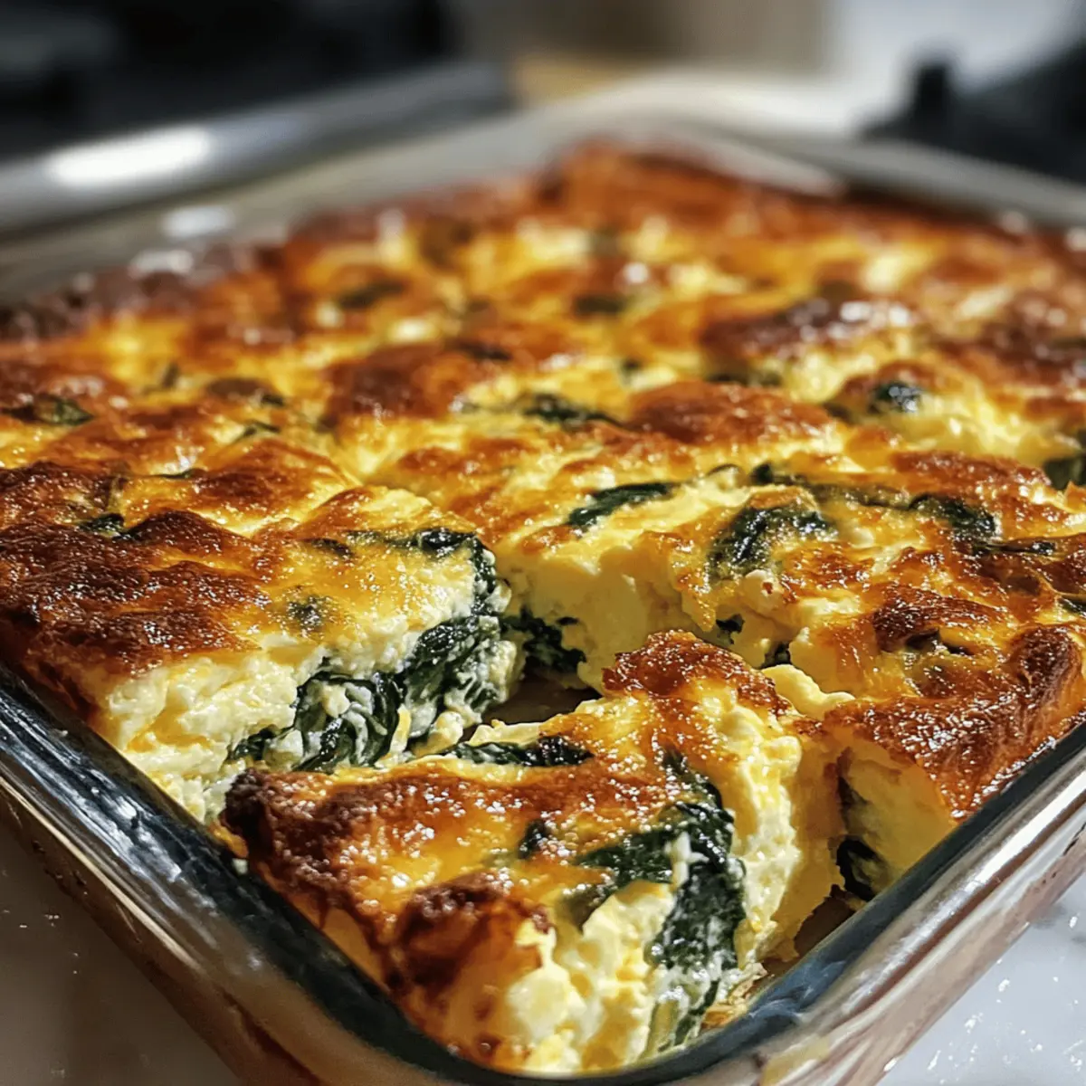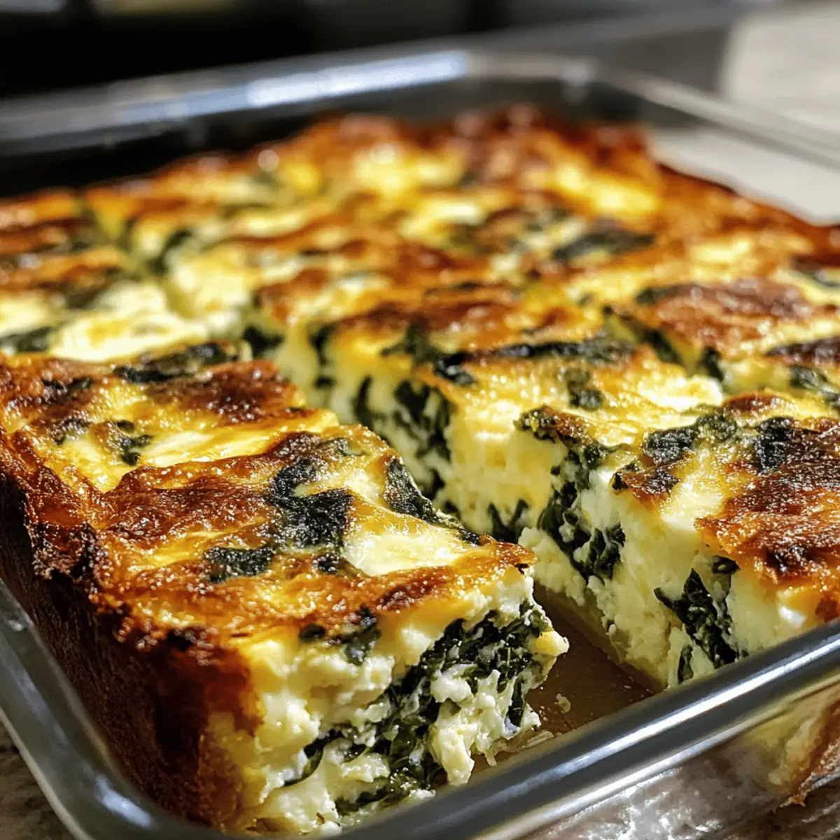Neulich, beim Durchblättern meiner Rezeptesammlung, fiel mir ein einfaches, aber geniales Gericht ins Auge: das High-Protein Spinach Cottage Cheese Egg Bake. Diese herzhafte Eiergerichte kombiniert eine cremige Textur mit einem unverwechselbaren Geschmack und eignet sich perfekt für einen energiereichen Start in den Tag. Mit einer ordentlichen Portion Protein aus Eiern und Hüttenkäse ist es nicht nur schnell zubereitet, sondern auch eine großartige Option für alle, die gesunde, vegetarische und glutenfreie Mahlzeiten schätzen. Egal, ob du es zum Frühstück oder als leichte Abendmahlzeit genießen möchtest, dieses Gericht ist vielseitig und lässt sich wunderbar vorbereiten. Neugierig, wie du dieses einfache, aber köstliche Rezept zubereiten kannst? Lass uns gleich loslegen! Warum wirst du dieses Rezept lieben? Einfachheit: Die Zubereitung ist schnell und mühelos, perfekt für alle Kochlevel. Du brauchst nur eine Schüssel – und fertig! Vielseitigkeit: Ob zum Frühstück, zum Brunch oder als leichte Abendmahlzeit, dieser Auflauf passt zu jeder Gelegenheit. Probiere auch mal unsere Cottage Cheese Protein für einen zusätzlichen Eiweißkick! Reich an Geschmack: Mit frischem Spinat und cremigem Hüttenkäse vereint dieses Gericht Textur und kräftigen Geschmack, sodass du jedes Mal begeistert sein wirst. Vorbereitungsfreundlich: Ideal für Meal Prep! Du kannst den Auflauf im Voraus zubereiten und für die ganze Woche genießen. Gesunde Wahl: Mit etwa 140–180 Kalorien pro Portion ist er nicht nur nahrhaft, sondern auch glutenfrei – eine großartige Ergänzung zu deiner Ernährung! Zutaten für Spinat Quark Eier Auflauf • Für den Auflauf • Eier – liefern Struktur und Protein, wähle große Eier für die besten Ergebnisse. • Hüttenkäse – sorgt für Cremigkeit und einen Proteinboost; Vollfett-Version empfohlen für mehr Geschmack. • Frischer Spinat – trägt zur Frische und Faserstoffversorgung bei; er kann durch aufgetauten gefrorenen Spinat ersetzt werden, vergewissere dich jedoch, dass überschüssige Feuchtigkeit entfernt wird. • Gehackte Frühlingszwiebeln/Zwiebeln – optionale aromatische Zutat für zusätzlichen Geschmack. • Salz und Pfeffer – essentielle Gewürze für die perfekte Abstimmung. • Olivenöl oder Butter – zum Einfetten der Backform; für eine milchfreie Variante können auch pflanzliche Optionen verwendet werden. • Optionale Zusätze – gehackte Kräuter, Pilze oder Paprika für zusätzliche Textur und Geschmack. Dieses Rezept für den Spinat Quark Eier Auflauf ist ein absolutes Muss für alle, die gesunde, proteinreiche und köstliche Gerichte lieben! Schritt-für-Schritt-Anleitungen für Spinat Quark Eier Auflauf Step 1: Ofen vorheizen und Backform vorbereiten Heize deinen Ofen auf 190 °C (375 °F) vor. Während der Ofen vorheizt, nimm eine 20×20 cm (8×8 Zoll) Backform und fette sie gründlich mit Olivenöl oder Butter ein. Achte darauf, dass die gesamte Fläche gut eingefettet ist, damit der Spinat Quark Eier Auflauf später leicht herausgenommen werden kann. Step 2: Eier und Hüttenkäse vermischen In einer großen Schüssel gib die großen Eier und den Hüttenkäse. Verwende einen Schneebesen oder einen Handmixer, um die Mischung gründlich zu verrühren, bis sie schön cremig und homogen ist. Dieser Schritt sorgt dafür, dass die Eier und der Hüttenkäse gleichmäßig verteilt sind und der Auflauf eine lockere Textur erhält. Step 3: Spinat und Gewürze hinzufügen Füge nun den frisch gehackten Spinat und die optionalen, gehackten Frühlingszwiebeln in die Eimischung hinzu. Schrecke die Mischung mit einer Prise Salz und Pfeffer ab. Mische alles sorgfältig, bis der Spinat gleichmäßig in der Eimasse verteilt ist. Achte darauf, dass nicht zu viel Flüssigkeit im Spinat verbleibt, um einen matschigen Auflauf zu vermeiden. Step 4: Mischung in die Backform gießen Gieße die vorbereitete Eier- und Spinatmischung gleichmäßig in die eingefettete Backform. Streiche die Oberfläche mit einem Spatel glatt, sodass die Mischung schön gleichmäßig verteilt ist. Dies gewährleistet eine gleichmäßige Garung und ein ansprechendes Aussehen des fertigen Spinat Quark Eier Auflaufs. Step 5: Backen Platziere die Backform vorsichtig im vorgeheizten Ofen und backe den Auflauf für etwa 30–35 Minuten. Achte darauf, dass die Ränder leicht goldbraun werden und die Mitte fest ist. Ein guter visueller Hinweis, dass der Auflauf fertig ist, ist eine leicht wackelige, aber fest strukturierte Mitte, die beim Antippen nicht mehr flüssig erscheint. Step 6: Abkühlen und Servieren Sobald der Spinat Quark Eier Auflauf fertig gebacken ist, nimm ihn aus dem Ofen und lasse ihn für etwa 10 Minuten abkühlen. Dies macht das Schneiden in gleichmäßige Stücke einfacher und minimiert das Risiko, dass der Auflauf auseinanderfällt. Schneide ihn in quadratische Portionen und serviere ihn warm! Variationen für Spinat Quark Eier Auflauf Möchtest du dein Gericht aufpeppen? Hier sind einige kreative Ideen für Variationen! Gemüse-Mix: Tausche frischen Spinat gegen Zucchini oder Grünkohl aus, um neue Texturen und Aromen zu entdecken. Feta-Käse: Füge zerbröckelten Feta hinzu, um deinem Auflauf eine würzige Note zu verleihen. Wurstalternative: Für eine kohlenhydratarme Version kannst du gebratene Putenwurst oder extra Eier hineinmischen, während du kohlenhydratlastige Beilagen weglässt. Kräuter-Boost: Experimentiere mit frischen Kräutern wie Basilikum oder Petersilie für zusätzlichen Geschmack. Diese kleinen Änderungen machen einen großen Unterschied! Scharfe Note: Wenn du es etwas würziger magst, füge eine Prise Chili-Flocken hinzu oder serviere mit einer scharfen Sauce. Pilz-Twist: Integriere sautierte Champignons, um einen herzhaften Geschmack und eine interessante Textur beizusteuern. Mikrowellenfreundlich: Bereite eine Portionsgröße in einer mikrowellengeeigneten Schüssel zu. Ideal für schnelle Snacks oder Abendessen! Käsemis