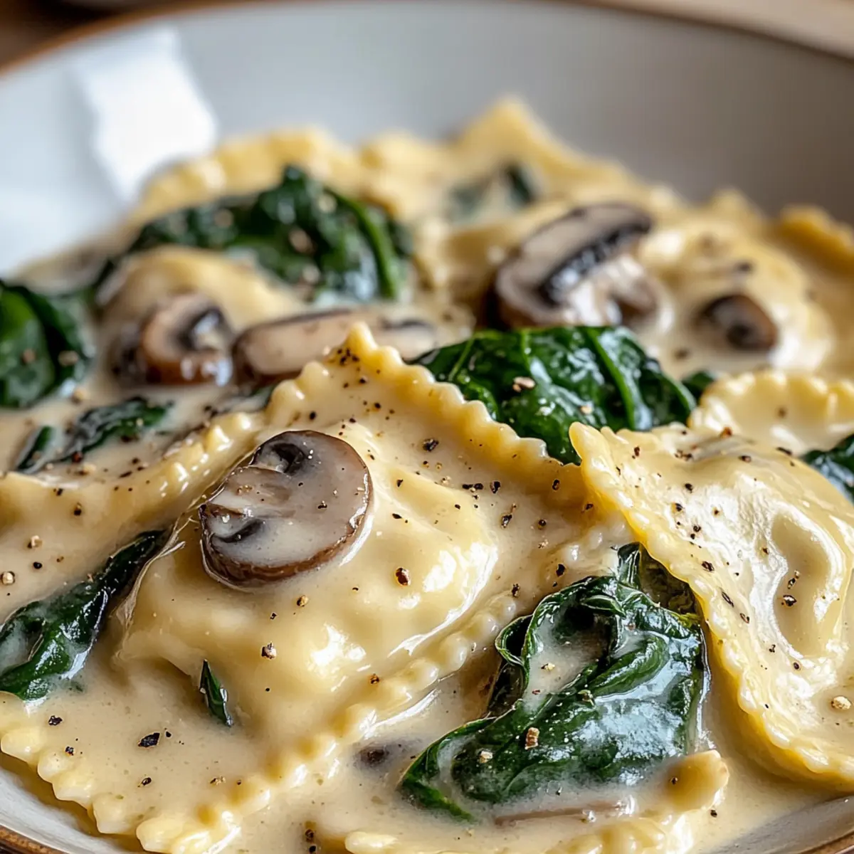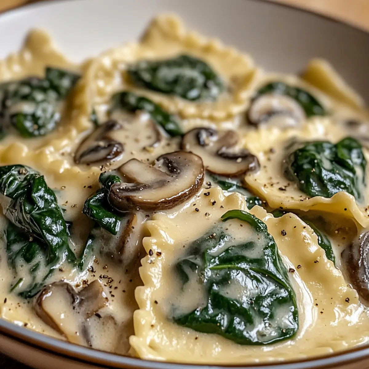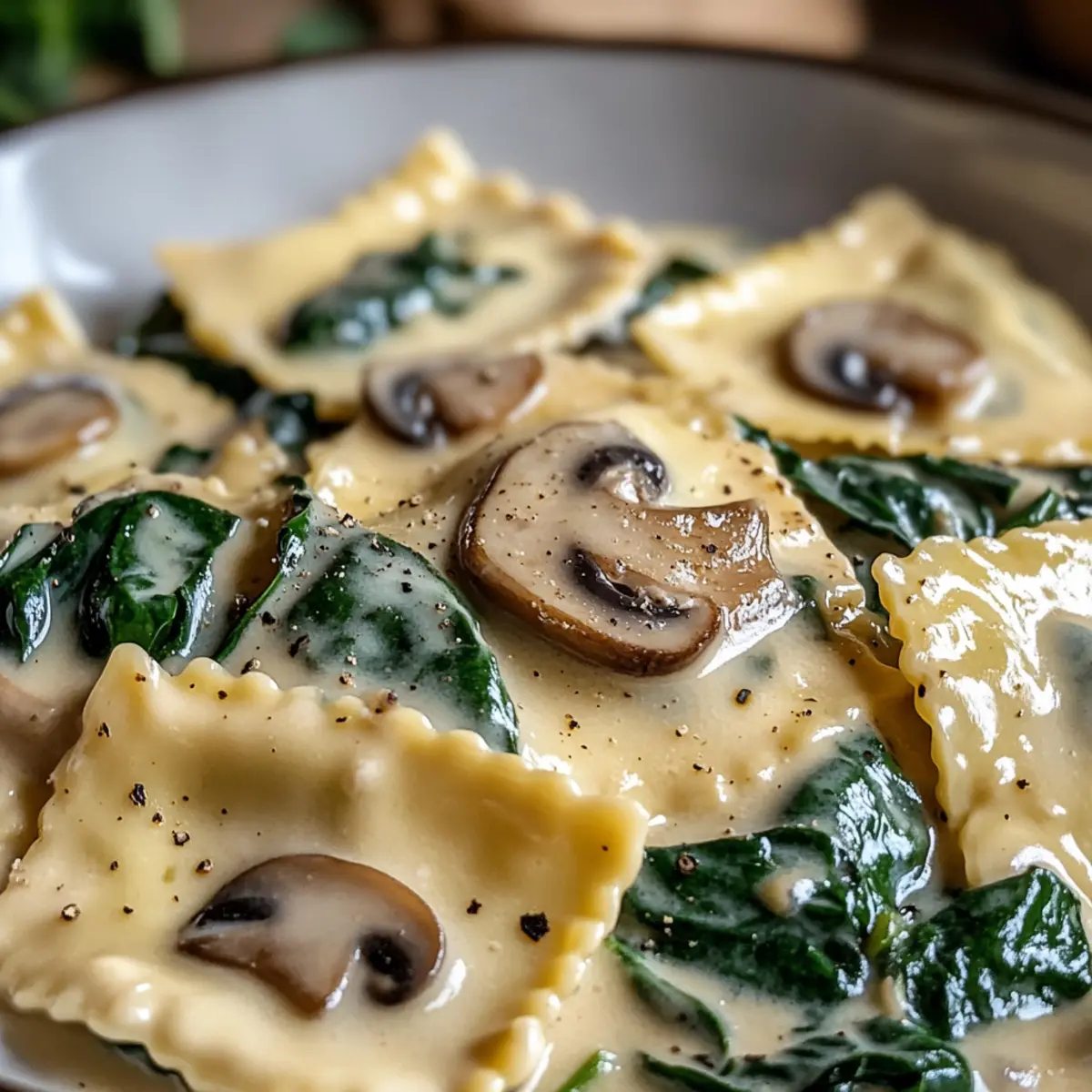 Die sanften Aromen von Spinat und Pilz Alfredo Ravioli erinnern mich an einen gemütlichen Abend in einem italienischen Restaurant, wo das Licht gedämpft und der Duft von frisch zubereitetem Essen die Luft erfüllt. Diese cremige Pasta ist nicht nur ein Hochgenuss, sondern auch ein wahres Komfortessen, das in weniger als 30 Minuten zubereitet werden kann. Egal, ob du einen schnellen Wochentags-Lunch zubereiten oder bei einem besonderen Anlass beeindrucken möchtest, diese Ravioli bieten dir die perfekte Kombination aus herzhafter Füllung und luxuröser Sauce. Und das Beste? Sie sind auch glutenfrei erhältlich! Bist du bereit, deinen Gaumen mit diesem köstlichen Rezept zu verwöhnen? Warum werden diese Ravioli dein Favorit? Einfachheit, die Zubereitung dieser Spinat und Pilz Alfredo Ravioli ist so unkompliziert, dass selbst Kochanfänger mühelos mithalten können. Cremiger Geschmack, die Verbindung von frischen Zutaten und einer reichhaltigen Alfredo-Sauce sorgt für ein unvergleichliches Geschmackserlebnis, das jeden begeistert. Vielfalt, du kannst die Ravioli als Hauptgericht oder als Beilage zu leichten Salaten oder knusprigem Brot servieren. Schnell und praktisch, in weniger als 30 Minuten auf dem Tisch, perfekt für hektische Wochentage. Glutenfrei, es gibt eine glutenfreie Option, die es Jedem ermöglicht, dieses köstliche Gericht zu genießen. Überzeuge dich selbst und entdecke dazu unseren Curry Gebackener Kabeljau für ein weiteres geschmackvolles Erlebnis! Spinat und Pilz Alfredo Ravioli Zutaten • Für unvergessliches Geschmackserlebnis! Spinat und Käse Ravioli – Hauptbestandteil, der Struktur und Herzhaftigkeit bietet. Du kannst gefrorene oder selbstgemachte Ravioli wählen, um die Aromen zu verstärken. Olivenöl oder Butter – Fügt Reichtum hinzu und hilft, die Pilze anzuschwitzen. Wähle je nach diätetischen Vorlieben. Geschnittene Pilze (Button, Cremini usw.) – Trägt zu einem umami Geschmack und Textur bei. Jede Sorte kann je nach Geschmack verwendet werden. Frischer Spinat (gehackt) – Fügt Frische und Nährstoffe hinzu. Kann durch andere Blattgemüse wie Grünkohl ersetzt werden, wenn gewünscht. Schlagsahne – Sorgt für Cremigkeit und Körper in der Sauce. Für eine leichtere Option kannst du auch halb und halb verwenden. Geriebener Parmesan – Verleiht der Sauce Tiefe und einen herzhaften Touch. Nährhefe ist eine vegane Alternative. Knoblauch (gehackt) – Verstärkt das gesamte Aroma des Gerichts. Frischer Knoblauch sorgt für maximale Potenz. Salz und Pfeffer – Essenziell zur Geschmacksanpassung. Passe je nach persönlichem Geschmack und diätetischen Bedürfnissen an. Italienische Gewürze – Bringt eine Kräutermischung zur Geschmackssteigerung. Verwende frische Kräuter für ein lebendigeres Aroma. Frische Petersilie (gehackt, optional) – Für die Garnitur, die Farbe und Frische in das fertige Gericht bringt. Schritt-für-Schritt Anleitung für Spinat und Pilz Alfredo Ravioli Step 1: Ravioli kochen Folge den Anweisungen auf der Verpackung, um die Spinat und Pilz Alfredo Ravioli in einem großen Topf mit kochendem Salzwasser zu garen. Koche sie etwa 4-5 Minuten, bis sie al dente sind. Nach dem Kochen abseihen und beiseite stellen, während du die Sauce zubereitest. Step 2: Pilze anbraten Erhitze in einer großen Pfanne bei mittlerer Hitze zwei Esslöffel Olivenöl oder Butter. Füge die geschnittenen Pilze hinzu und brate sie für etwa 5 Minuten, bis sie weich und goldbraun sind. Dabei gelegentlich umrühren, um ein Anbrennen zu vermeiden, und die Aromen zu entfalten. Step 3: Knoblauch und Spinat hinzufügen Gib den gehackten Knoblauch zu den Pilzen in die Pfanne und lasse ihn 1 Minute braten, bis er aromatisch ist. Füge dann den gehackten Spinat hinzu und brate weiter, bis er zusammenfällt und die gesamte Mischung leuchtend grün erscheint, etwa 2-3 Minuten. Step 4: Alfredo-Sauce zubereiten Gieße die Schlagsahne in die Pfanne und bringe die Mischung sanft zum Köcheln. Reduziere die Hitze und füge den geriebenen Parmesan sowie die italienischen Gewürze, Salz und Pfeffer hinzu. Rühre alles gut um und lasse die Sauce 3-4 Minuten köcheln, bis sie leicht eingedickt ist. Step 5: Ravioli und Sauce kombinieren Füge die abgetropften Ravioli direkt in die Pfanne mit der Alfredo-Sauce hinzu. Wende sie vorsichtig, um sicherzustellen, dass jede Ravioli gleichmäßig mit der cremigen Sauce umhüllt ist. Lass die Mischung kurz zusammen köcheln, damit die Aromen sich verbinden. Step 6: Servieren Verteile die Spinat und Pilz Alfredo Ravioli auf Tellern und garniere sie optional mit frischer, gehackter Petersilie. Genieße das Gericht sofort, um die cremige Konsistenz und die frischen Aromen optimal zu erleben. Was passt gut zu Spinat und Pilz Alfredo Ravioli? Genieße die Aromen dieser cremigen Pasta, während du sie mit einer Vielzahl köstlicher Beilagen kombinierst. Frischer Garten-Salat: Ein knackiger Salat mit gemischtem Grün und einem leichten Dressing bringt Frische und bringt die Cremigkeit der Ravioli in Einklang. Knoblauchbrot: Warme, knusprige Scheiben mit Knoblauchbutter vereinen knusprige Texturen und ergänzen die reichhaltige Alfredo-Sauce perfekt. Geröstete Gemüse: Bunte, geröstete Gemüsesorten wie Zucchini und Paprika fügen Röstaromen und Vitalität hinzu, die die Ravioli wunderbar ausbalancieren. Zitronenwasser: Ein spritziges, erfrischendes Getränk, das die Aromen hebt und den Gaumen nach den reichhaltigen Ravioli reinigt. Parmesan-Käse-Cracker: Diese würzigen Knabbereien sorgen für den perfekten Crunch und verstärken den Geschmack des Parmesans aus der Sauce. Panna Cotta: Ein leichtes Dessert mit einer sahnigen Textur rundet das Mahl ab und sorgt für ein süßes Finale nach den herzhaften Ravioli. Experten Tipps für Spinat und Pilz Alfredo Ravioli Frische Zutaten verwenden: Verwende frisch geschnittene Pilze und Spinat, um den Geschmack zu intensivieren. Tiefkühlvarianten haben oft weniger Aroma. Richtige Hit