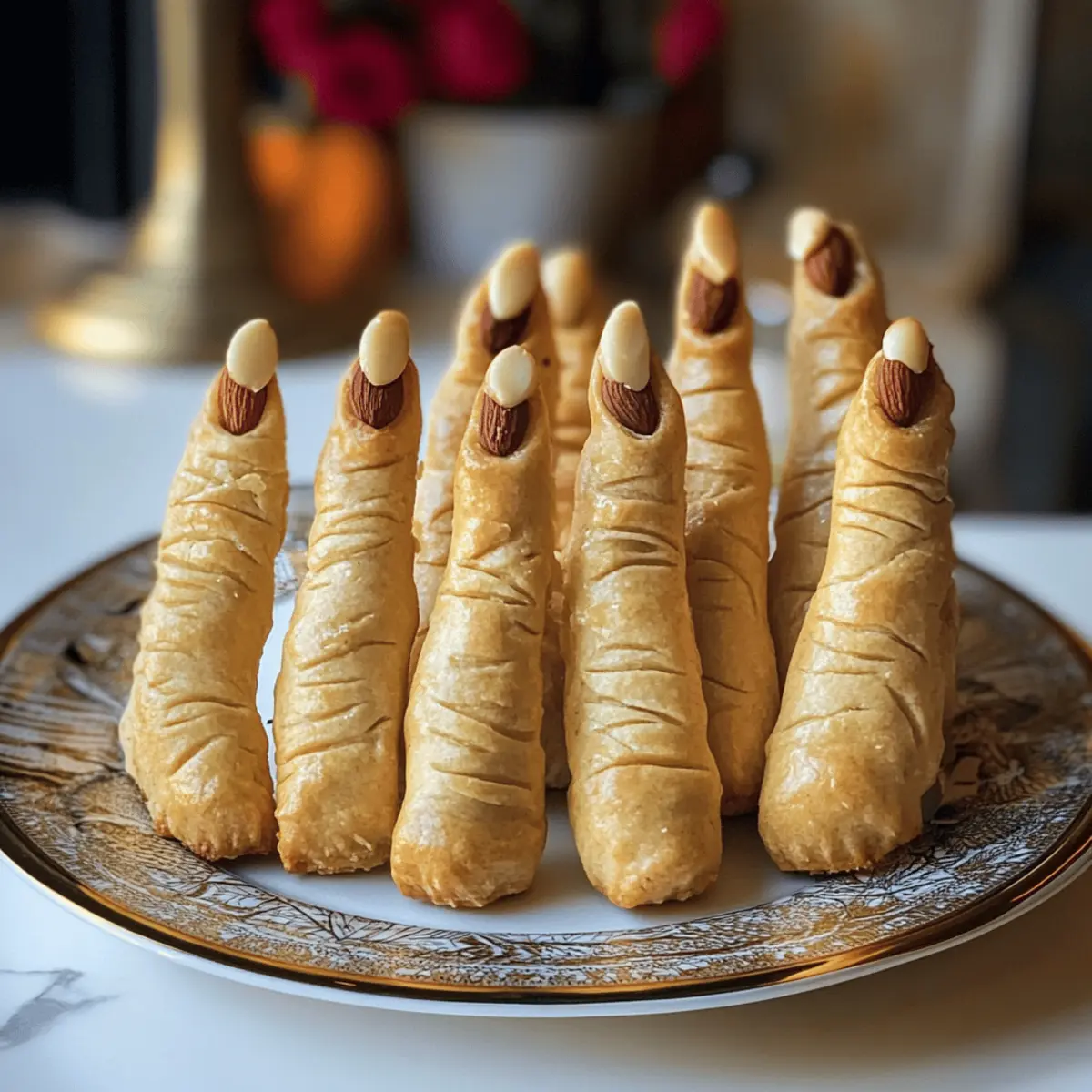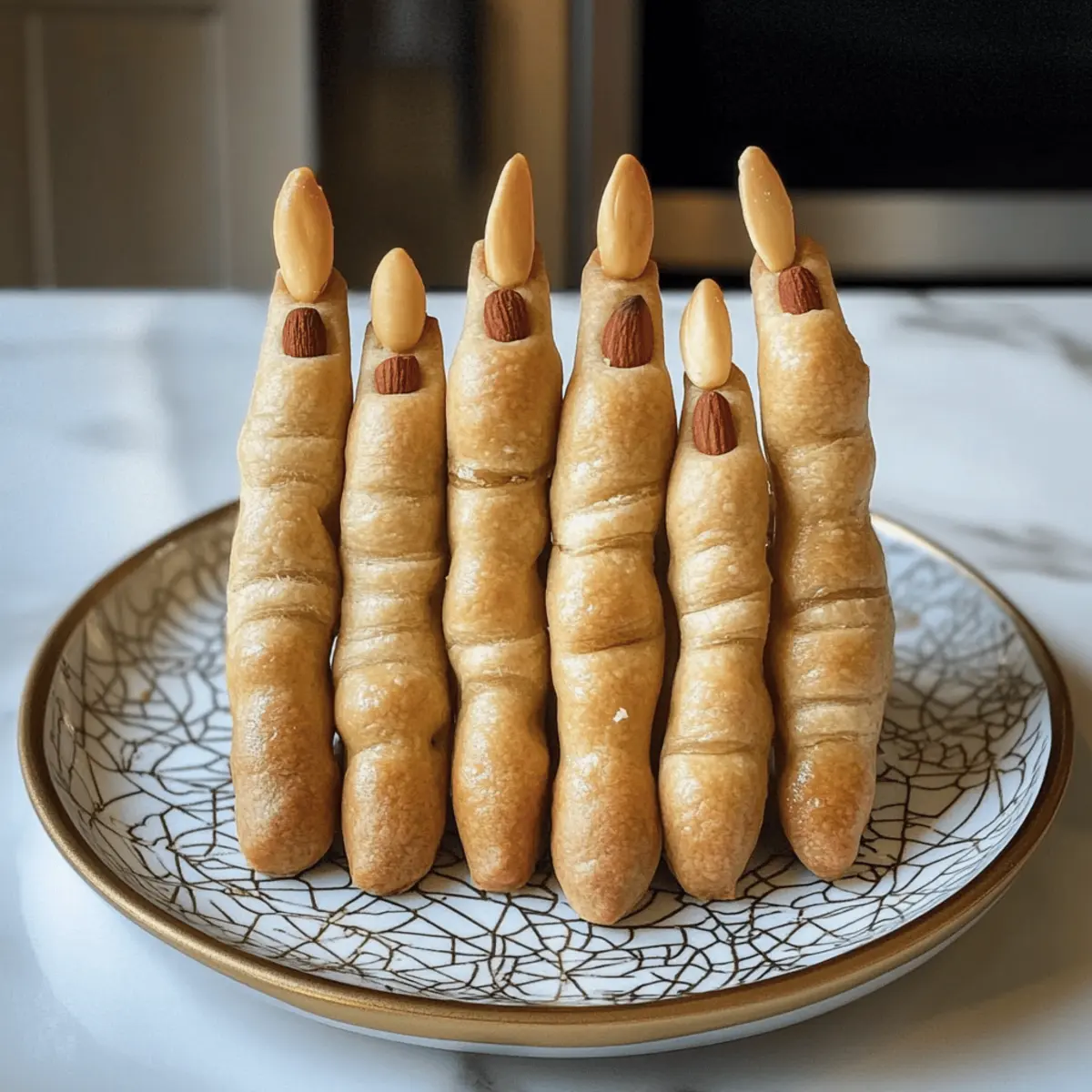 Es war einmal in einer geheimnisvollen Küche, wo ich in der Vorbereitung für eine Halloween-Feier gefangen war. Diese Spooky Witch Finger Breadsticks sind die perfekte Ergänzung für jede schaurige Zusammenkunft, die nicht nur gruselig aussieht, sondern auch köstlich schmeckt. Vorbereitet in nur wenigen Minuten, überzeugen sie mit einem knusprigen Äußeren und einem weichen, herzhaften Inneren – ein Hit für Groß und Klein. Egal, ob ihr sie pur genießt oder mit dipfähigen Saucen kombiniert, diese vegetarischen Snacks bringen Spaß und Freude auf euren Tisch. Möchtet ihr wissen, wie einfach und kreativ das Zubereiten dieser gruseligen Finger ist? Warum sind diese Brotsticks einzigartig? Einzigartig und gruselig: Diese Spooky Witch Finger Brotsticks sind nicht nur funkelnde Eyecatcher für jede Halloween-Feier, sondern bieten auch die Möglichkeit zur individuellen Anpassung. Einfache Zubereitung: Mit nur wenigen Zutaten und simplen Schritten seid ihr in kürzester Zeit bereit für eure schaurige Soiree. Vielseitig: Ob scharfe Chili-Flocken, aromatische Kräuter oder geschmolzener Käse – die Variationen halten eure Gäste immer wieder überrascht. Familienfreundlich: Diese vegetarischen Snacks sind ideal für Groß und Klein und bringen Spaß in jede Zusammenkunft, ob beim Gruselfilmabend oder der Halloween-Party. Lecker und knusprig: Mit ihrem knusprigen Äußeren und der weichen Mitte sind sie ein wahrer Gaumenschmaus, den niemand ablehnen kann. Möchtet ihr mehr über Werbung und Präsentation dieser Leckerei erfahren? Schaut euch unsere Serviervorschläge an, um die Brotsticks gemeinsam mit schmackhaften Dips zu genießen! Halloween Brotstick Zutaten Für den Teig • Pizzateig – 1 Pfund; stellt die Basis für die Brotsticks dar. Verwendung von selbstgemachtem oder gekauftem Teig ist möglich. • Eier – 1, geschlagen; dient als Eigelb-Waschmittel für eine schöne, glänzende Kruste. Für das Topping • Mandeln oder Kürbiskerne – Ideal als Nägel; Mandeln simulieren perfekt fingernägelartige Akzente. • Salz – Eine Prise sorgt für zusätzlichen Geschmack; verwendet Meersalz für extra Knusprigkeit. • Olivenöl – 2 Esslöffel; verleiht Geschmack und Glanz. Alternativ kann geschmolzene Butter verwendet werden. • Gewürze (Knoblauchpulver, Rosmarin) – Zum Würzen; flexibel einsetzbar, um den Geschmack anzupassen und zu vertiefen. • Rote Lebensmittelfarbe (optional) – Für einen blutigen Touch; sorgt für einen visuellen Effekt speziell zu Halloween. Diese Halloween Brotstick Zutaten versprechen nicht nur Spaß bei der Zubereitung, sondern auch eine köstliche Erfahrung, die eure Gäste begeistern wird! Step-by-Step Instructions für Spooky Witch Finger Brotsticks Step 1: Ofen vorheizen Heizt den Ofen auf 190 °C (375 °F) vor und bereitet ein Backblech vor, indem ihr es mit Backpapier auslegt. Dieser Schritt sorgt dafür, dass die Spooky Witch Finger Brotsticks gleichmäßig gebacken werden und nicht kleben bleiben. Ein gut vorbereiteter Arbeitsplatz macht die ganze Zubereitung einfacher und sorgt für eine stressfreie Kochumgebung. Step 2: Teig vorbereiten Rolle den Pizzateig auf einer leicht bemehlten Oberfläche aus und schneide ihn in gleichmäßige Streifen. Diese Streifen sollten etwa einen Zentimeter dick sein, um die Form von „Fingern“ erreichen zu können. Achte darauf, dass die Stücke lang genug sind, um einen gruseligen Effekt zu erzielen. Step 3: Finger formen Nehmt jeden Teigstreifen und formt ihn mit euren Händen in eine verkrümmte, fingerähnliche Form. Dies könnt ihr erreichen, indem ihr die Enden verjüngt und umbiegt, sodass sie wie echte Finger aussehen. Dieser Schritt verleiht euren Spooky Witch Finger Brotsticks ein authentisches, unheimliches Aussehen – als wären sie frisch aus einer Hexenküche gekommen. Step 4: Nägel hinzufügen Drückt eine Mandel oder einen Kürbiskern an einem Ende jedes geformten Fingers, um einen „Nagel“ zu gestalten. Achte darauf, die Mandeln fest in den Teig zu drücken, damit sie während des Backens nicht abfallen. Diese kleinen Details machen den Unterschied und steigern den gruseligen Effekt eurer Halloween-Brotsticks. Step 5: Eigelb-Wäsche auftragen Verquirlt das Ei in einer kleinen Schüssel und bestreicht die Oberflächen der geformten Finger mit dem Eigelb. Durch diesen Schritt bekommt die Kruste der Spooky Witch Finger Brotsticks eine schöne, goldene Farbe und glänzende Oberfläche beim Backen. Dies erhöht die visuelle Attraktivität und das allgemeine Aussehen deiner schaurigen Köstlichkeit. Step 6: Würzen Bestreut die vorbereiteten Brotsticks mit etwas Salz und den gewünschten Gewürzen, wie Knoblauchpulver oder Rosmarin. Dies verleiht den Spooky Witch Finger Brotsticks nicht nur zusätzlichen Geschmack, sondern sorgt auch dafür, dass sie einladend duften, während sie im Ofen backen. Die Gewürze sind eine tolle Möglichkeit, den Finger-Brotsticks eine persönliche Note zu geben. Step 7: Backen Platziere das Backblech im vorgeheizten Ofen und backe die Brotsticks für 15-20 Minuten, bis sie goldbraun und knusprig sind. Die ideale Backzeit kann leicht variieren, also achte darauf, sie zu beobachten und sicherzustellen, dass sie nicht zu dunkel werden. Der herrliche Duft wird schon bald eure Küche erfüllen und euch auf die schauerliche Präsentation vorbereiten. Step 8: Abkühlen lassen und servieren Lasst die gebackenen Spooky Witch Finger Brotsticks ein paar Minuten auf dem Blech abkühlen, bevor ihr sie serviert. Wenn ihr möchtet, könnt ihr auf die Spitzen der Brotsticks etwas rote Lebensmittelfarbe auftragen, um einen blutigen Effekt zu erzielen. Diese letzten Details machen eure Halloween-Feier perfekt und laden alle ein, diesen schaurigen Snack zu genießen. Vorbereitung für Spooky Witch Finger Brotsticks Die Spooky Witch Finger Brotsticks sind eine ausgezeichnete Wahl für alle, die Zeit sparen möchten, insbesondere während der geschäftigen Halloween-Ze
