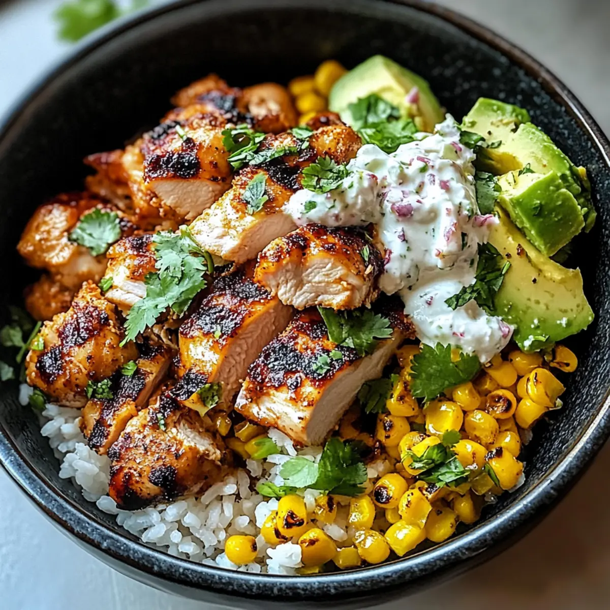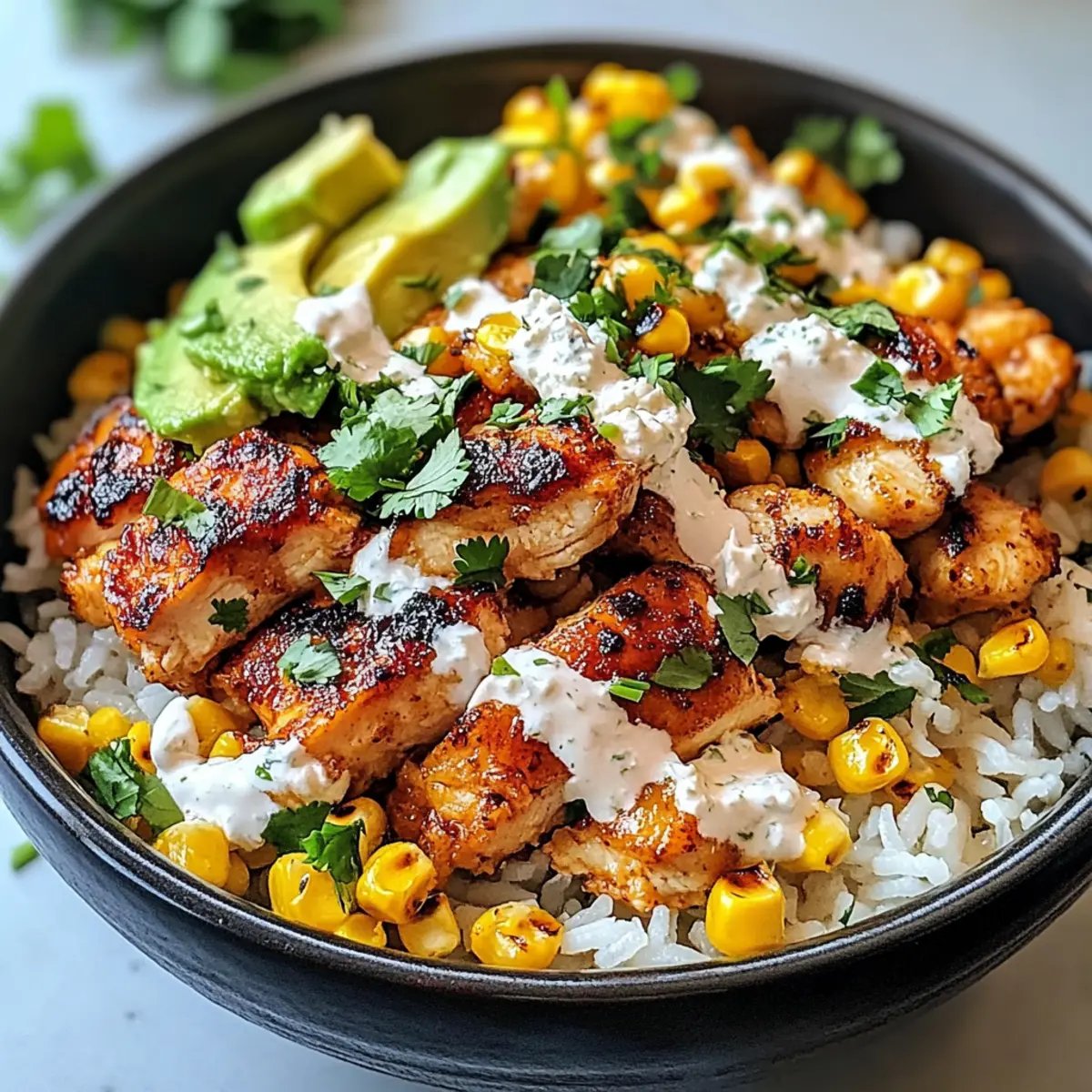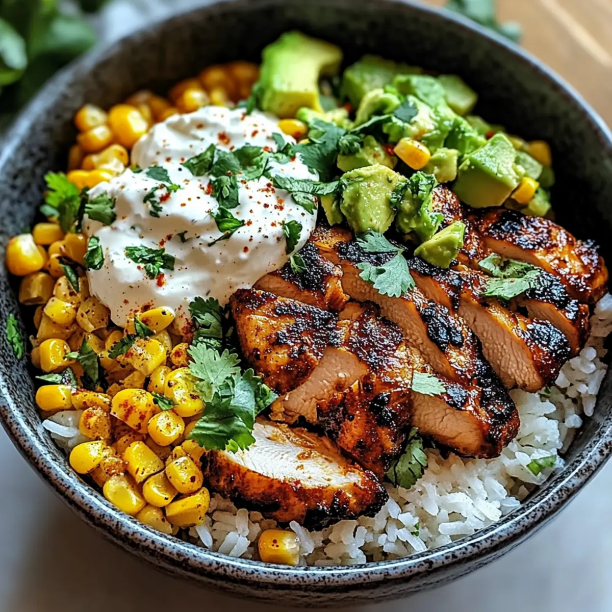 • Cremige Guacamole: Die frische, cremige Guacamole ergänzt die Aromen der Schüssel und bringt eine köstliche Textur ins Spiel. Ihre cremigkeit harmoniert perfekt mit dem würzigen Hühnchen und dem süßen Mais.